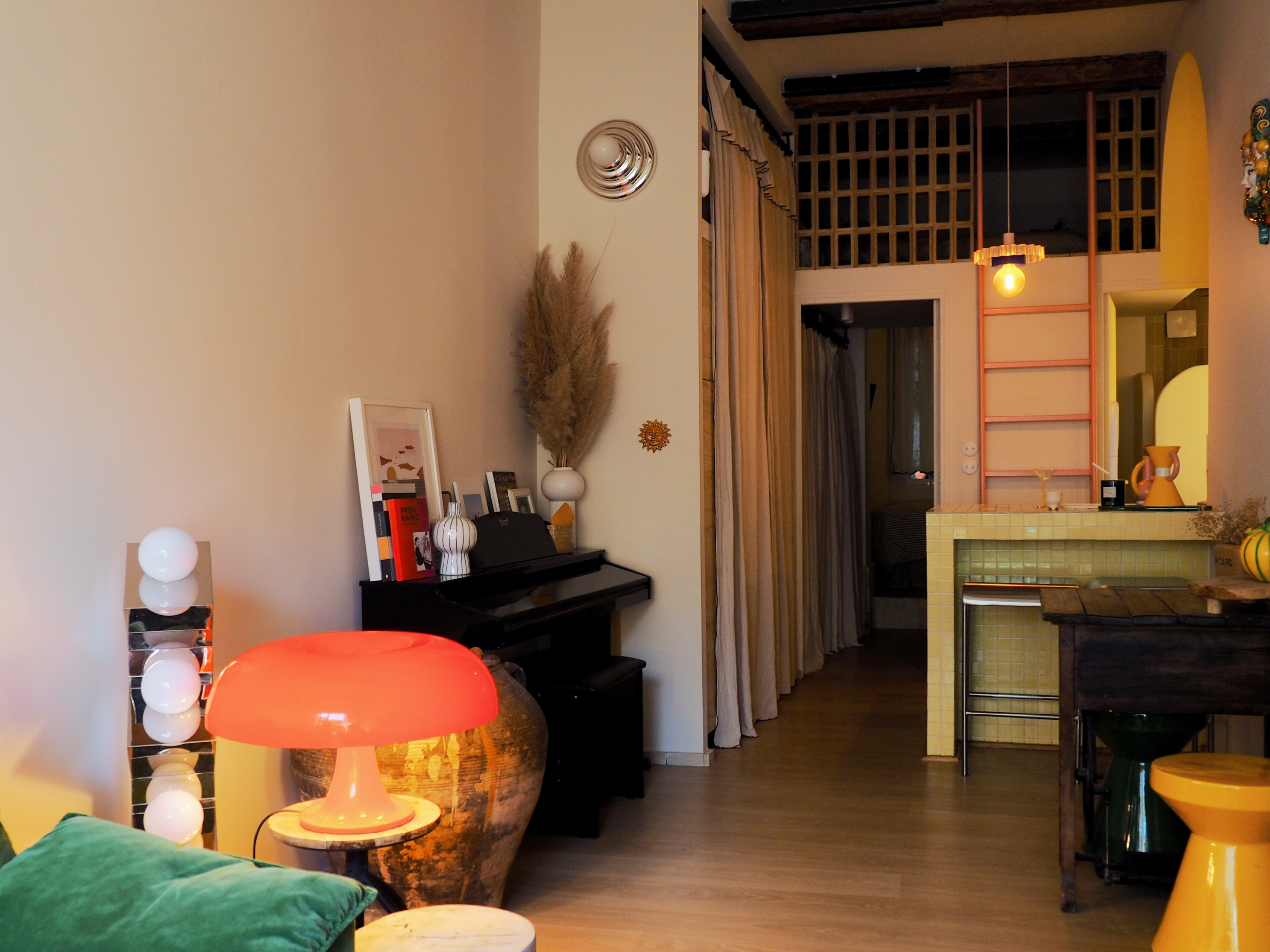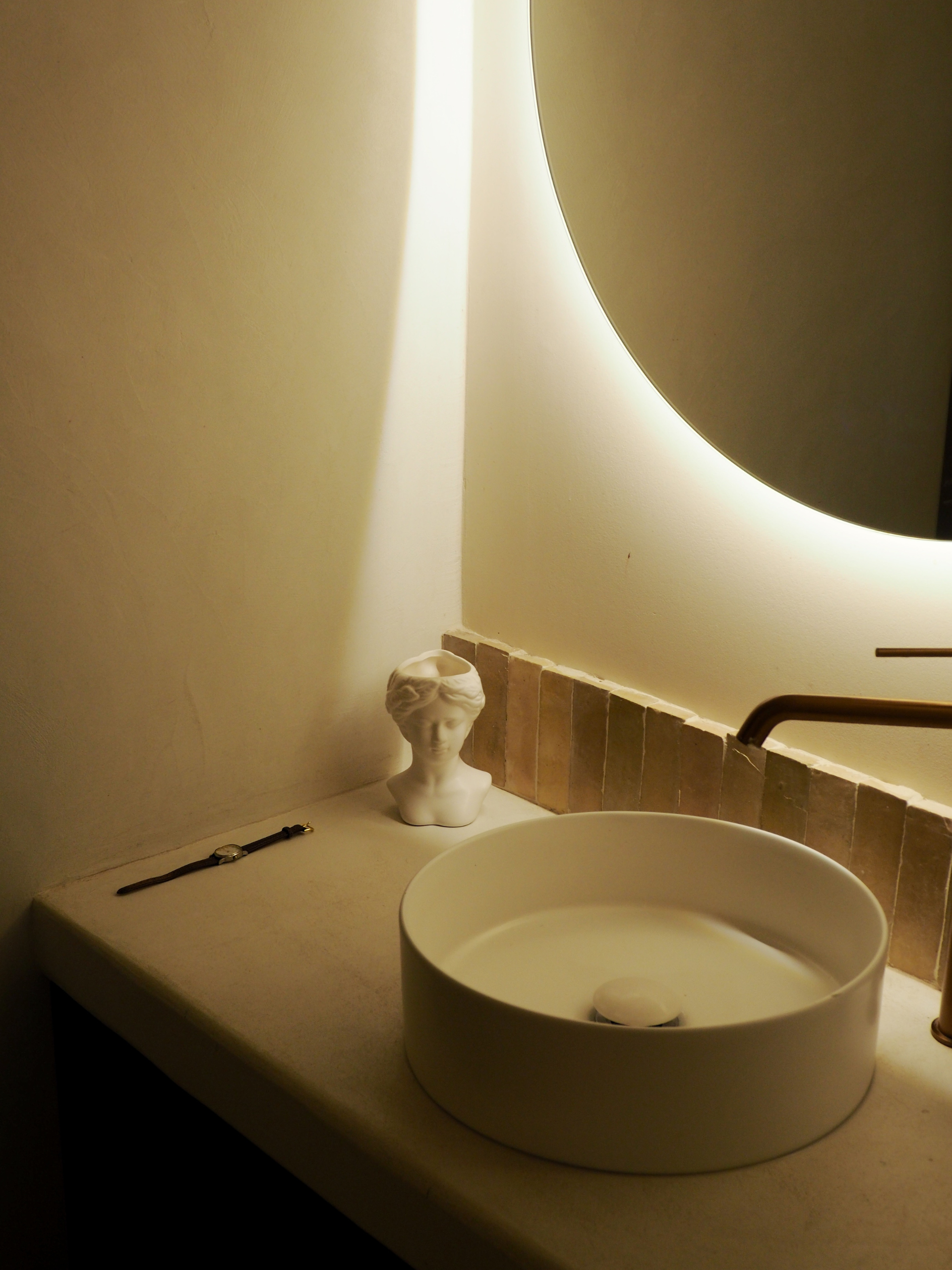 S – Je voulais créer un lieu qui me ressemble vraiment, à la fois fonctionnel au quotidien et émotionnellement fort, c’est-à-dire avec une ambiance plutôt méditerranéenne qui rappelle mes origines et est chère à mon cœur. L’enjeu, dans cette petite surface, c’était de maximiser la sensation d’espace tout en assumant une identité.