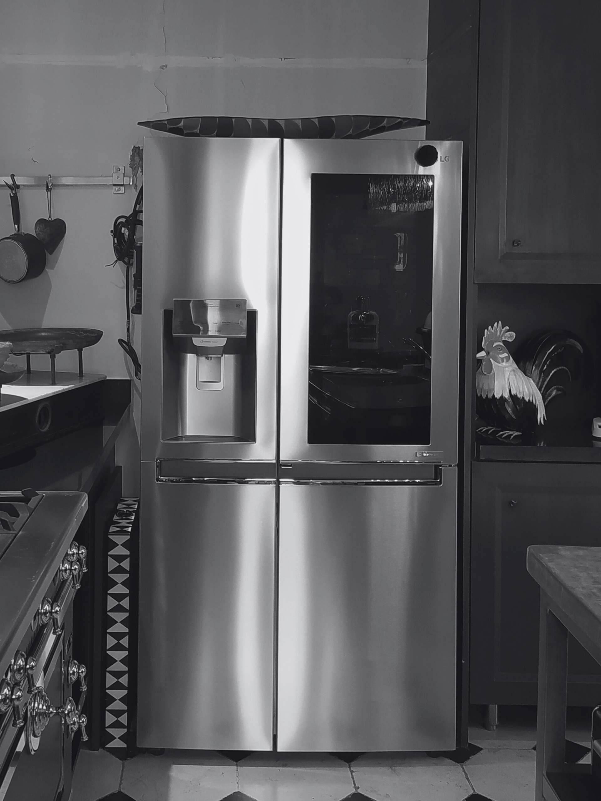 Conserver le cachet historique notamment le sol en cabochon et les moulures au plafond de la cuisine.