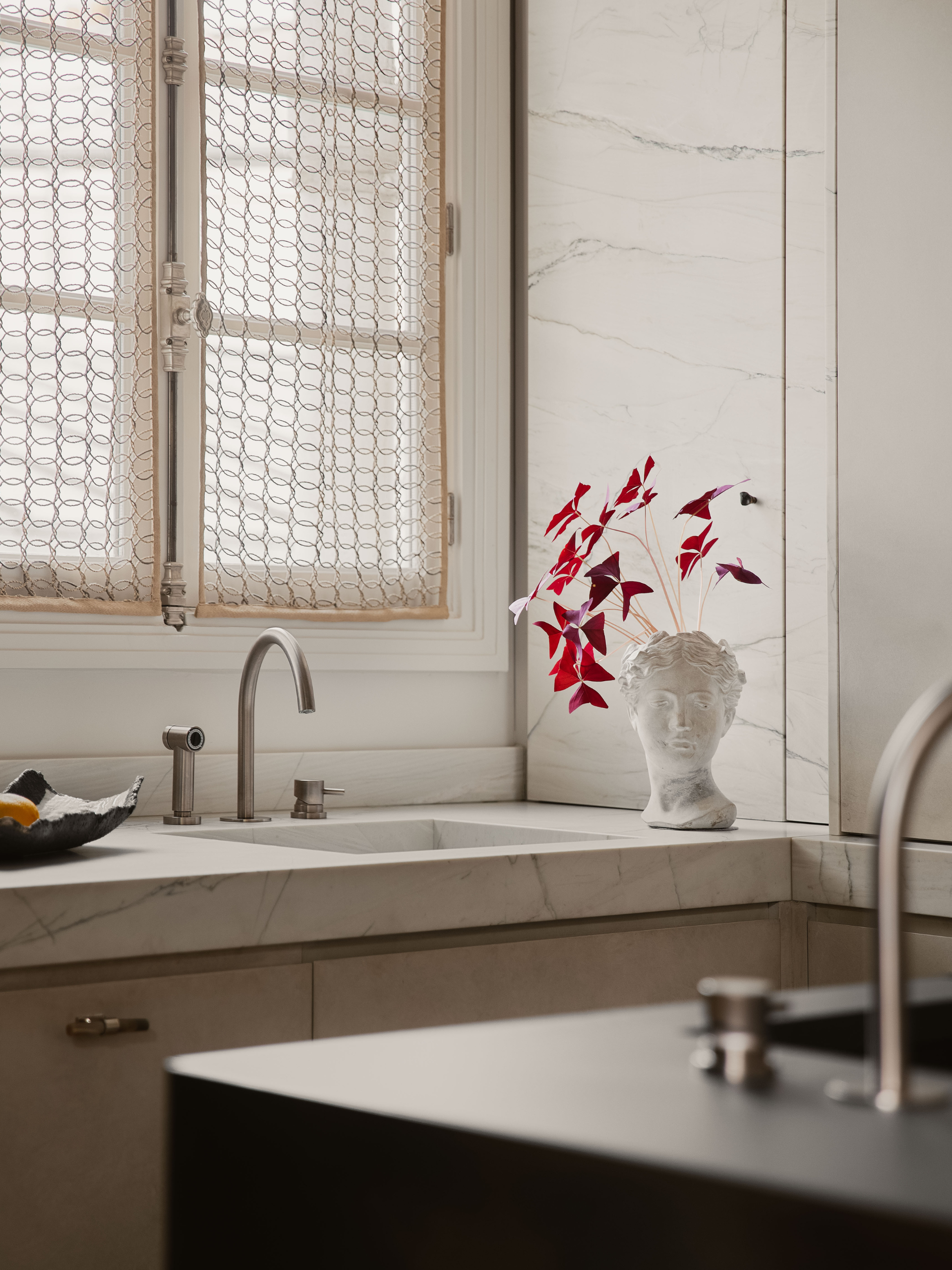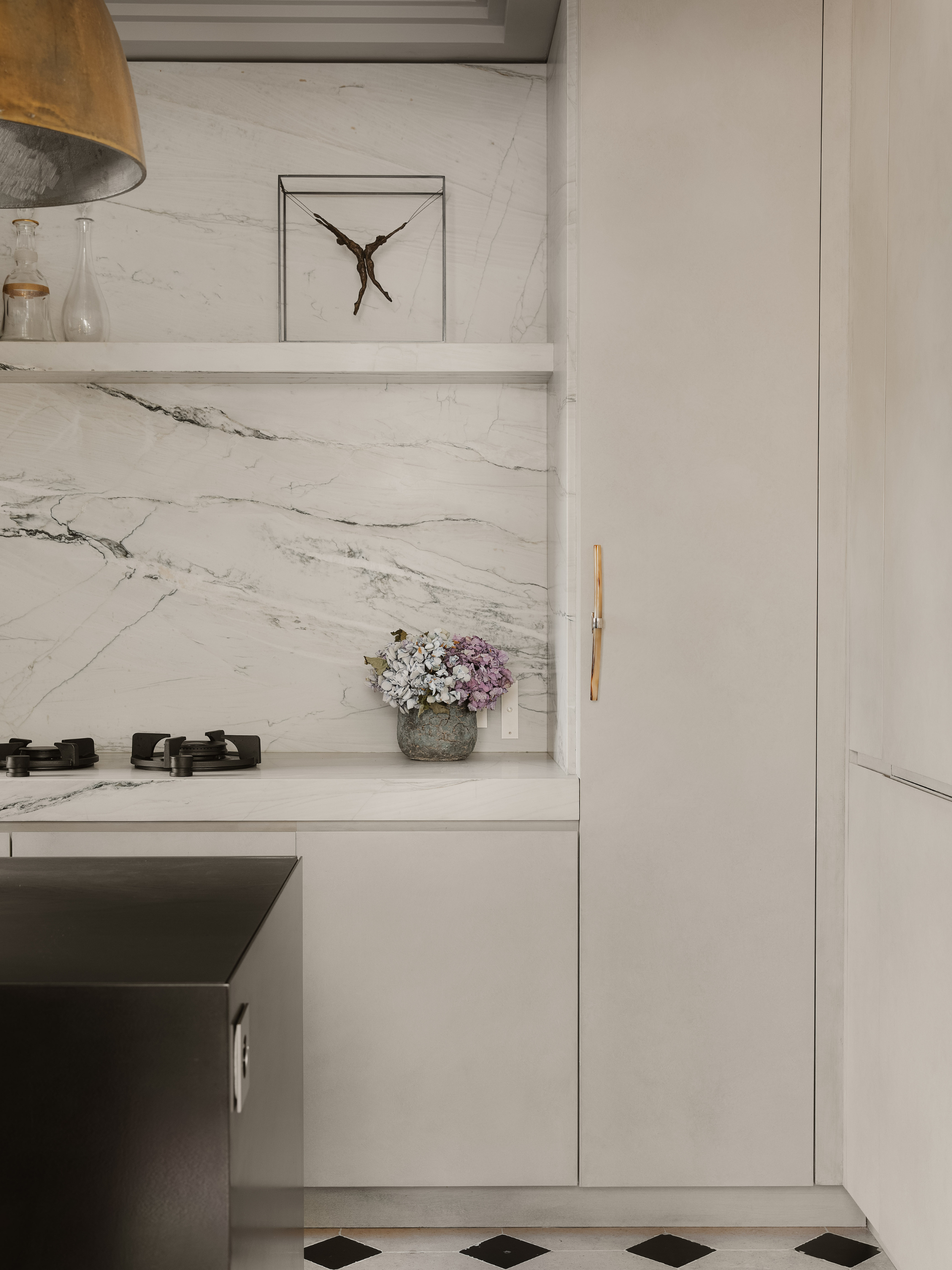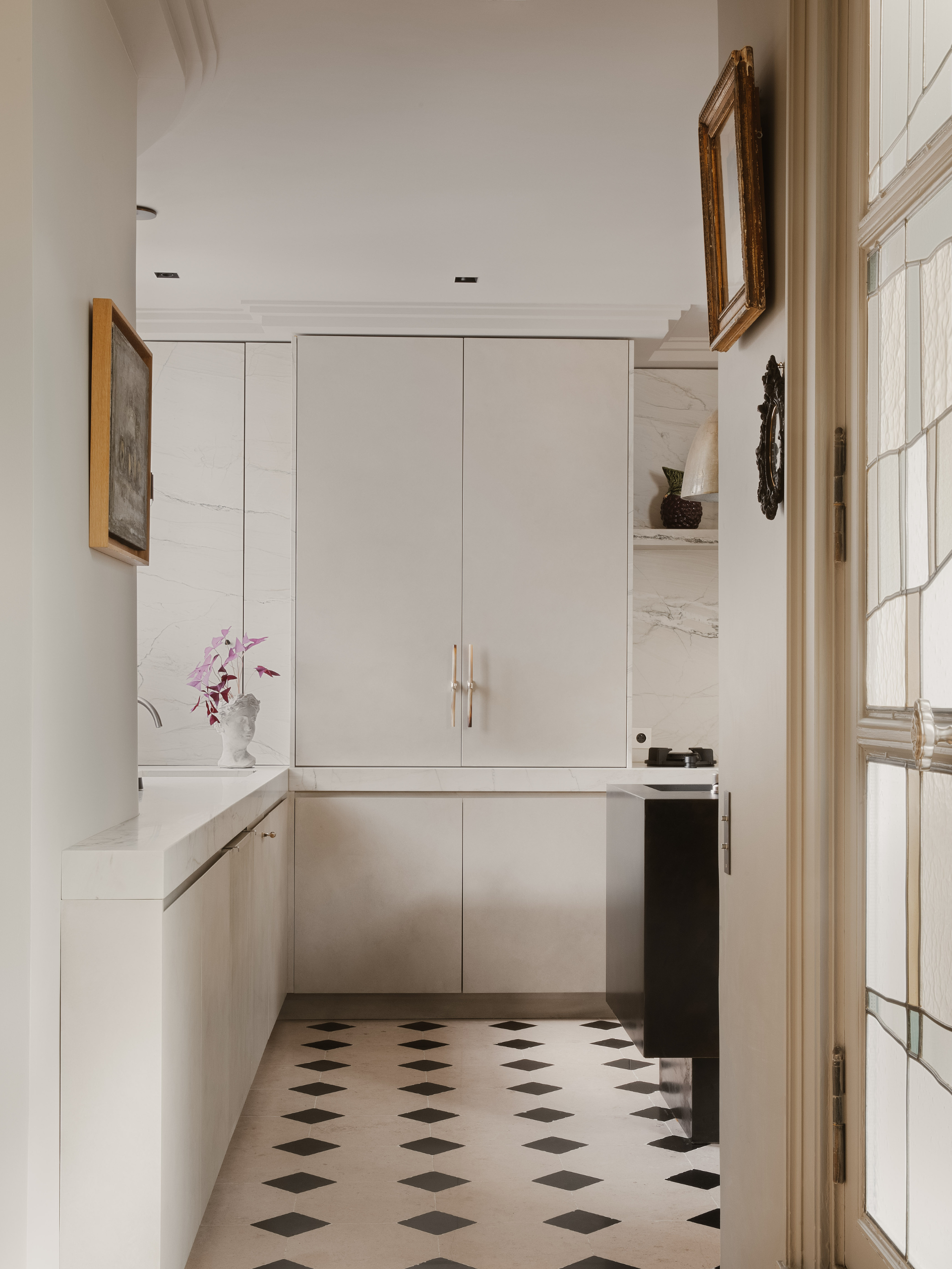 Un travail ciblé, concentré sur la cuisine et la salle de bain, qui redonne fluidité, lumière et cohérence à cet appartement parisien sur deux niveaux.