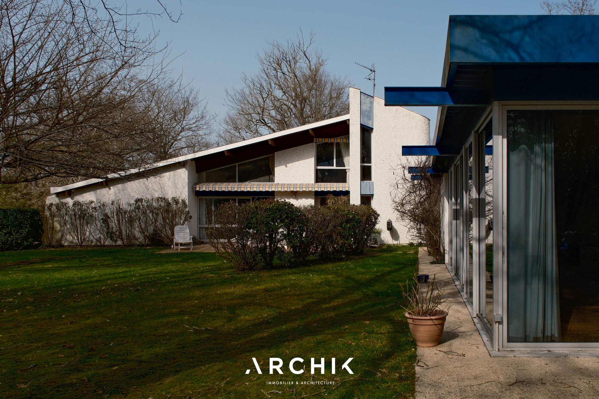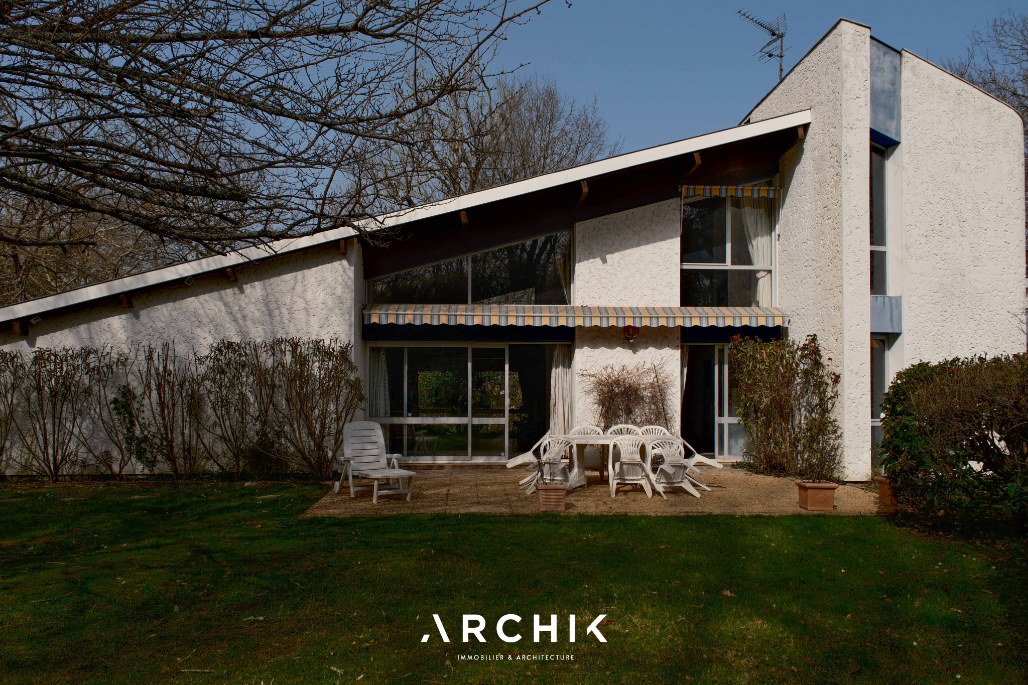 Architecture moderniste d'inspiration régionaliste des années 70, cette maison d'environ 300 m2 prend place au coeur d'un terrain arboré de 2 500 m2, dans le célèbre lotissement du golf de Saint-Sulpice-et-Cameyrac.