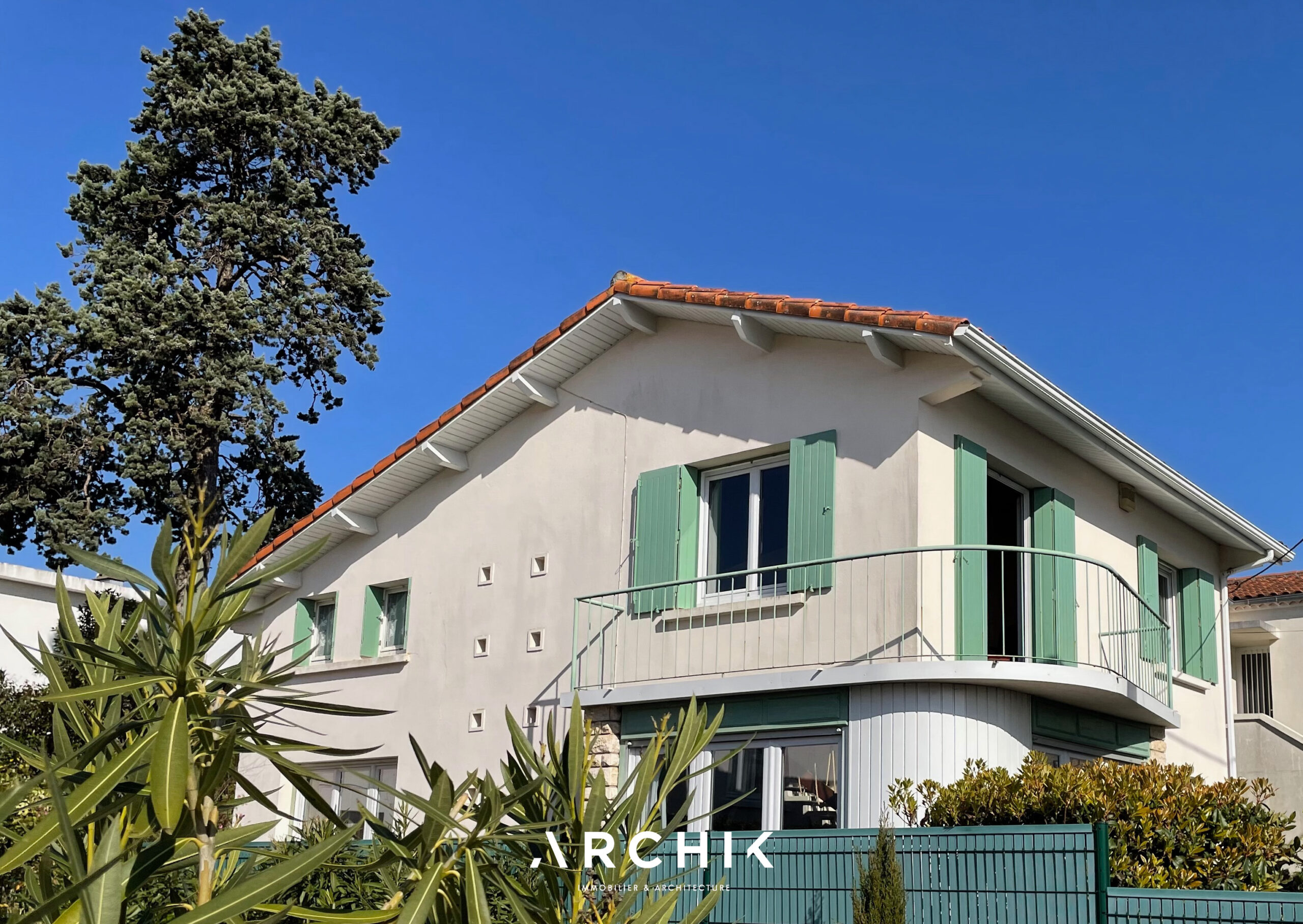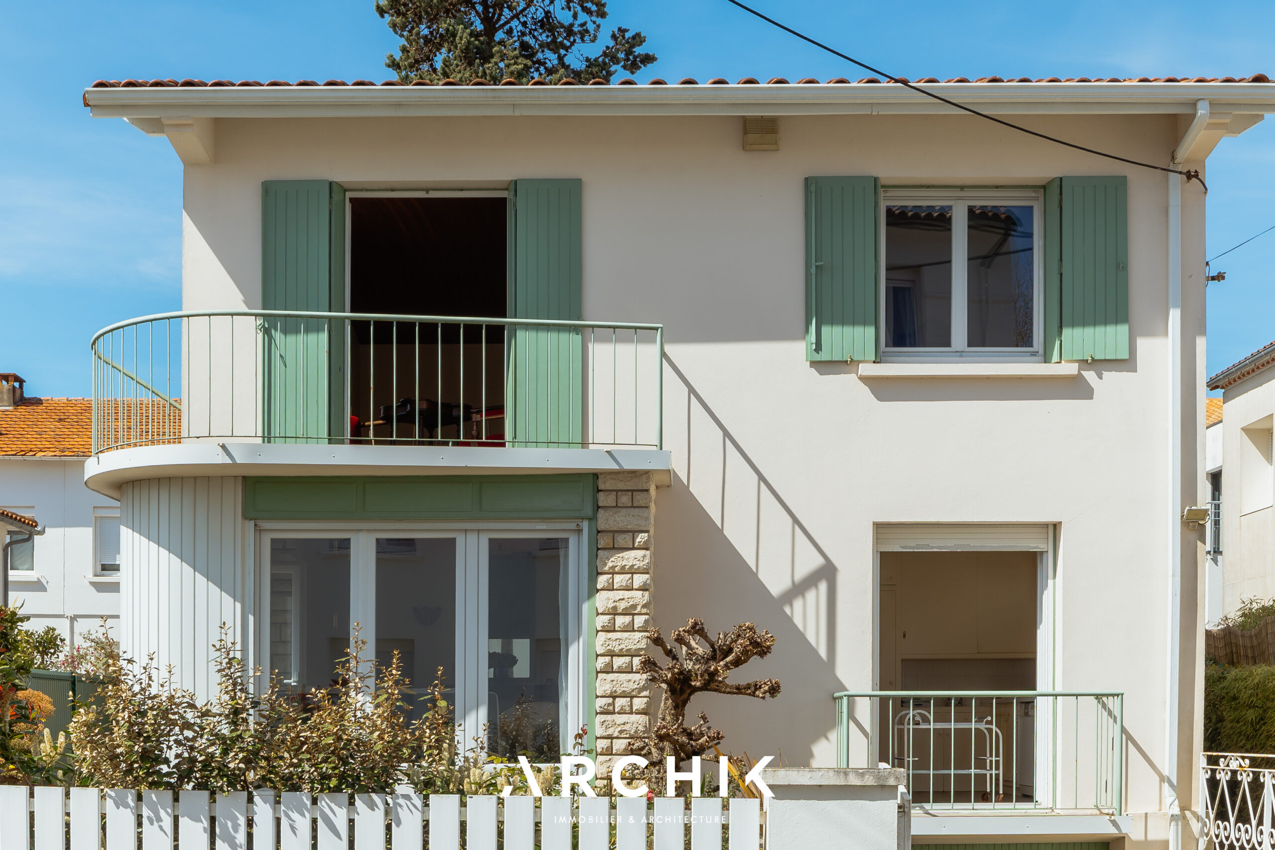 Architecture des années 50, cette maison dessinée par Jean-Roger Francq offre 103 m2 habitables et se tient sur une parcelle de 241 m2, à 400 m de la plage de Foncillon.
