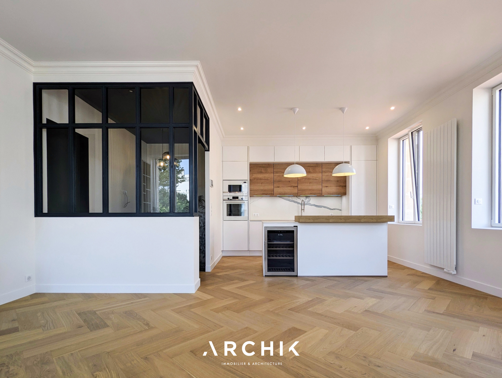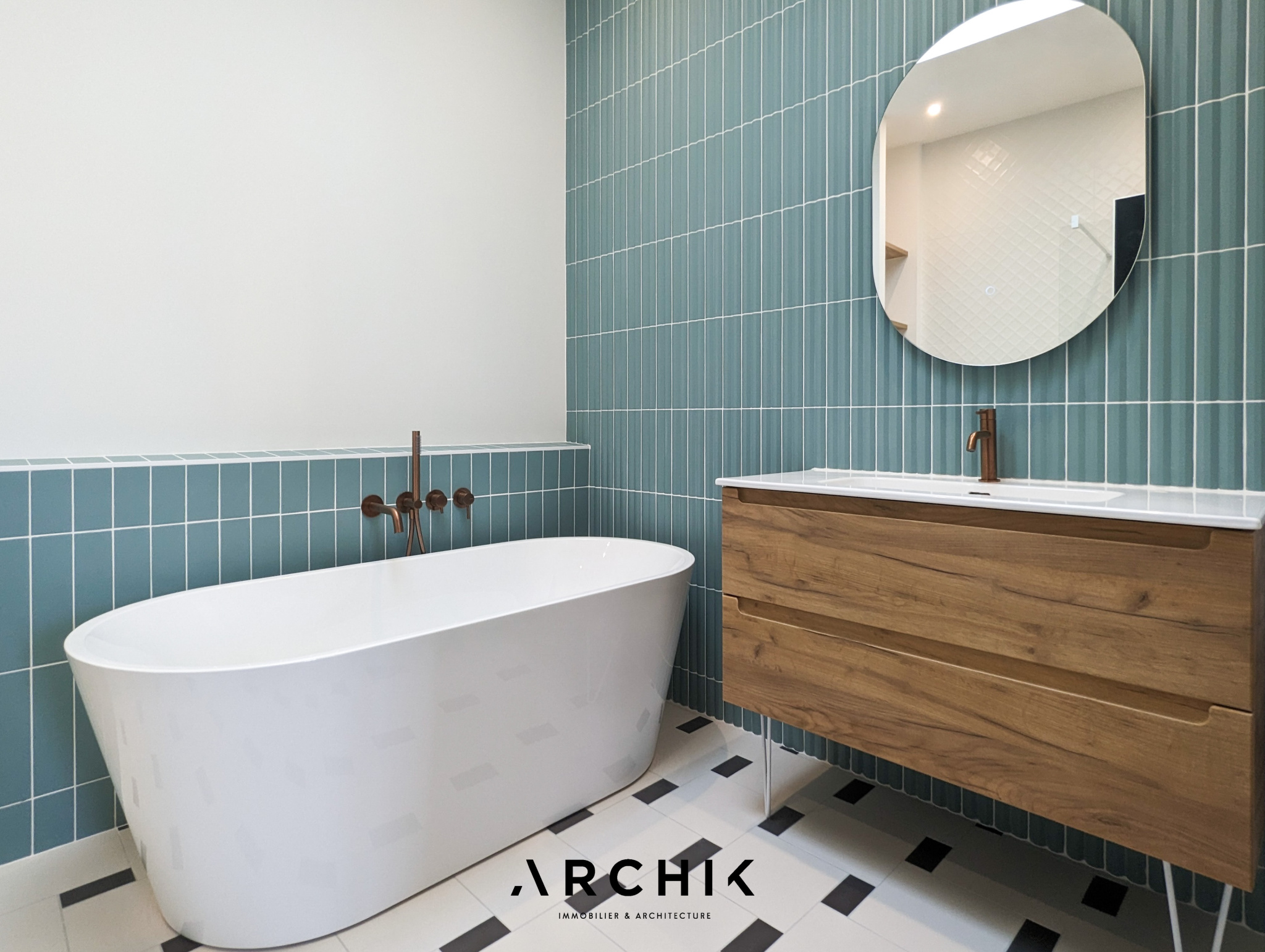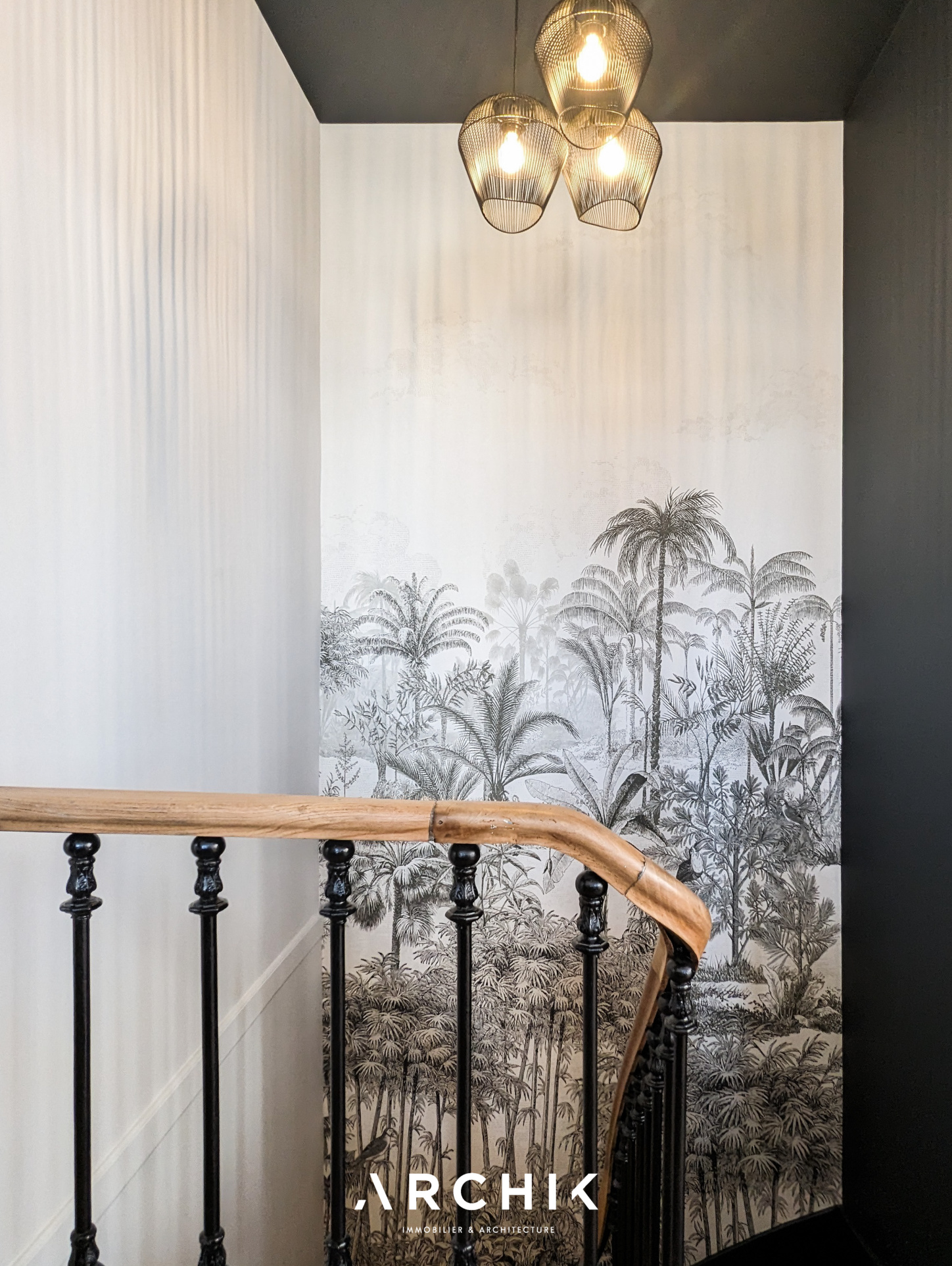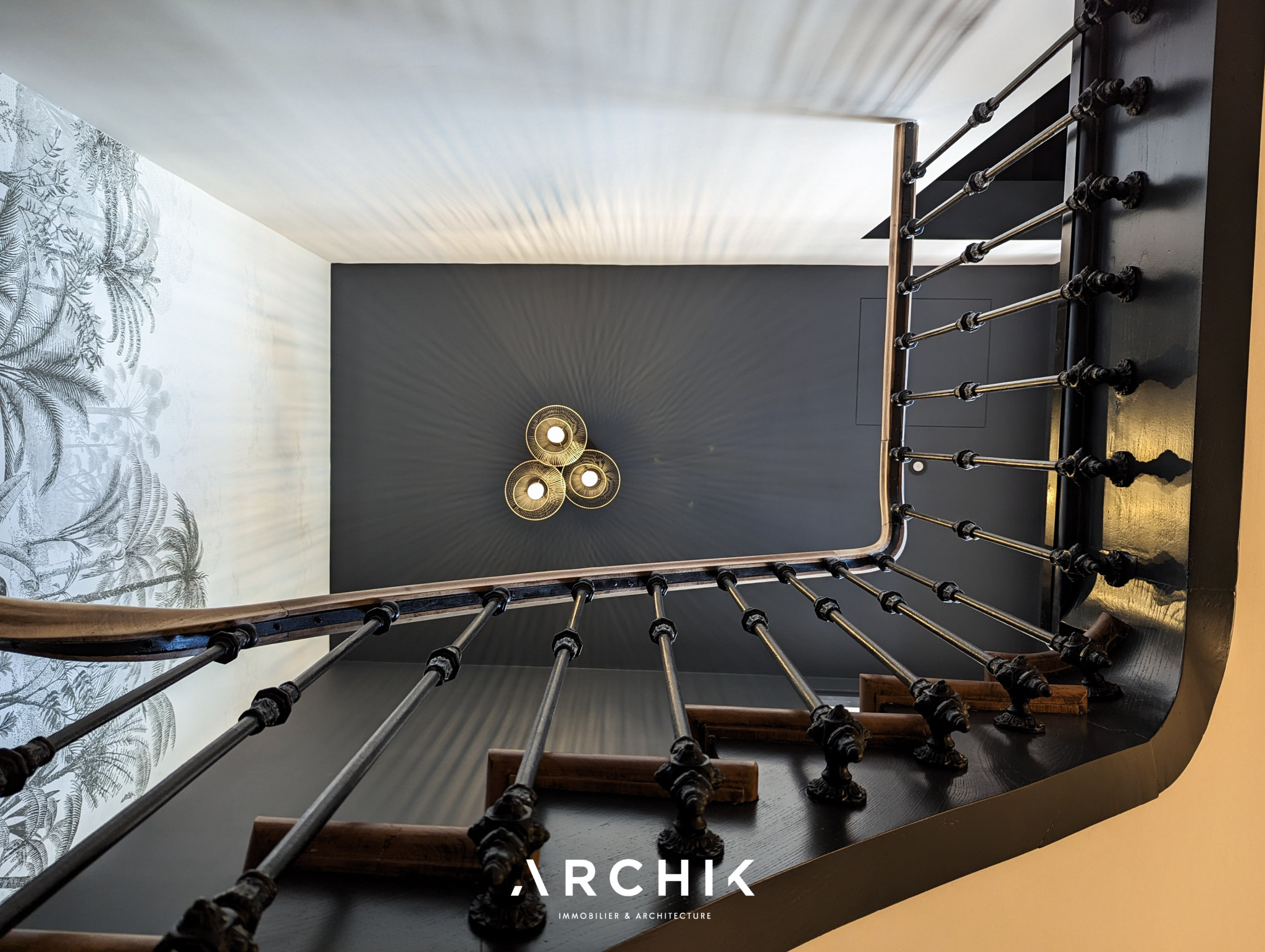 + DE DETAILS AMAZONE ROYAN | Royan Centre 549 000 € Type de bien Appartement Surface 100 m2 Chambre(s) 2 Courant Art Nouveau Architecture À vivre Réference RO259 ON AIMELa qualité de la rénovationLa lumière omniprésenteLa situation privilégiée au coeur de PontaillacNOUS CONTACTER Architecture de la fin du XIXème siècle, ce petit immeuble bourgeois situé à 100 m de la plage de Pontaillac abrite sur la totalité de son unique étage un appartement de 100 m2 aux prestations contemporaines.Très récemment ravalée, la façade en pierre blonde est animée par de nombreuses fenêtres qui laissent deviner la luminosité dont profite l'appartement totalement réhabilité il y a deux ans. Bénéficiant d'un accès indépendant dès le rez-de-chaussée, un large hall d'accueil au sol effet terrazzo donne accès à un espace polyvalent (bureau, stockage, coin nuit) et à une buanderie. S'en suit le bel escalier d'époque qui a conservé son garde-corps en fer forgé, réhaussé d'une rampe en bois clair, sur fond de papier peint Amazone signé Isidore Leroy. Les contremarches peintes en noir apportent une modernité qui se retrouve avec la verrière en bois au sommet de l'escalier. Cette dernière crée un sas entre la partie jour et la partie nuit de l'appartement, tout en constituant un élément décoratif à part entière de la pièce vie. Pas moins de six fenêtres illuminent l'espace qui intègre une cuisine ouverte mettant en valeur ses plans de travail et sa crédence en céramique. L'îlot central est prolongé par un plan snack en chêne massif faisant écho à la chaleur du parquet à bâtons rompus qui unifie toutes les pièces de l'étage. Les corniches agrémentent les belles hauteurs sous plafond. Un dégagement distribue la partie nuit. Deux chambres tout aussi lumineuses que le séjour se parent de nombreux agencements. L'une a conservé une cheminée décorative en marbre rose et l'autre bénéficie d'un espace de travail sur mesure. La vaste salle de bain avec sa faïence graphique comporte une baignoire îlot et une douche à l'italienne. Un lieu idéal pour une vie « tout à pied » au quotidien comme en villégiature. LE QUARTIER Royan Centre Le centre-ville de Royan est le cœur de la ville : il a l’avantage de se trouver à deux pas de la plage de la Grande Conche, ce qui permet de profiter en une journée des commerces, de la plage et des restaurants, à pied. VOTRE CONTACT Christophe GIRALDÉ 06 84 81 44 54 christophe.giralde@archik.fr DIAGNOSTICPARTAGERDétail du diagnostic Diagnostic de performance énergétique 192 KWh/m².an 6* kg CO2/m².an Logement économeABCDEFGLogement énergivore DPE vierge Consommations non exploitables Non soumis au diagnostic * Dont émissions de gaz à effet de serreFaible émission de GESABCDEFGForte émission de GES 6 KgéqCO2 / m².an GES vierge Consommations non exploitables Montant estimé des dépenses annuelles d'énergie pour un usage standard : entre 1170 et 1630 € TTC/an . Date de référence des prix de l'énergie pour établie cette estimation : 01/01/2023 Les informations sur les risques auxquels ce bien est exposé sont disponibles sur le site Géorisques : www.georisques.gouv.fr Vous souhaitez avoir plus d'informations ? Remplissez le formulaire ou contactez directement la personne en charge de ce bien. NOM* PRÉNOM* EMAIL* TÉLÉPHONE* MESSAGE Je souhaite recevoir la Newsletter ARCHIK VOTRE CONTACT Christophe GIRALDÉ 06 84 81 44 54 christophe.giralde@archik.fr Découvrez aussi ...VENDRENos biens en venteNOS BIENS VENDUS