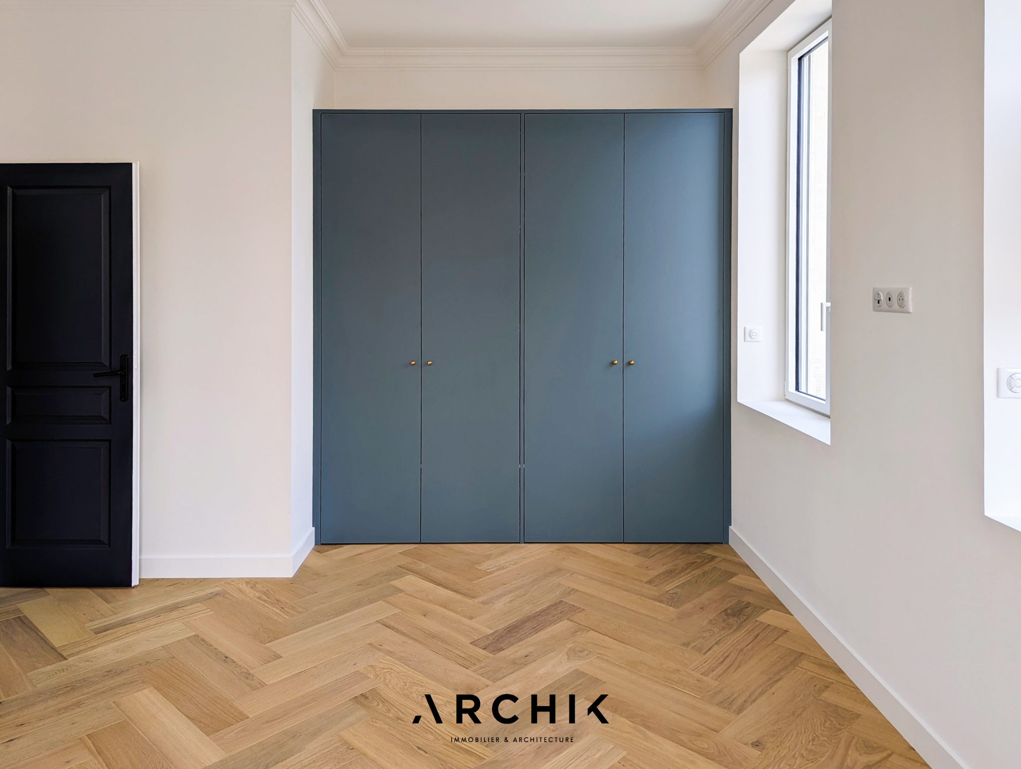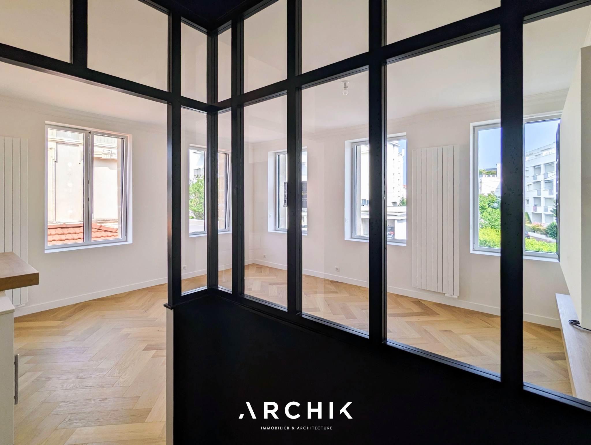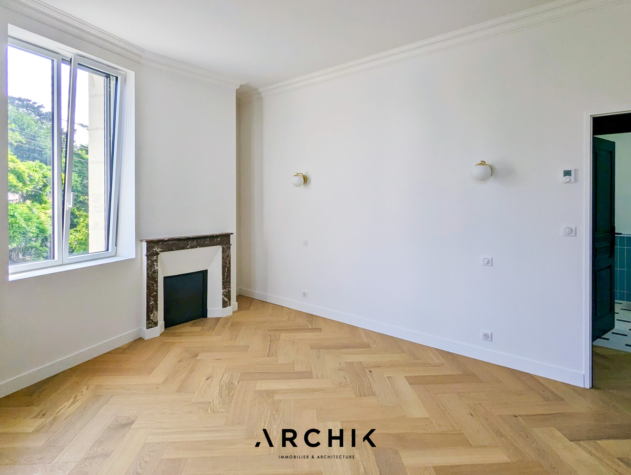 + DE DETAILS AMAZONE ROYAN | Royan Centre 549 000 € Type de bien Appartement Surface 100 m2 Chambre(s) 2 Courant Art Nouveau Architecture À vivre Réference RO259 ON AIMELa qualité de la rénovationLa lumière omniprésenteLa situation privilégiée au coeur de PontaillacNOUS CONTACTER Architecture de la fin du XIXème siècle, ce petit immeuble bourgeois situé à 100 m de la plage de Pontaillac abrite sur la totalité de son unique étage un appartement de 100 m2 aux prestations contemporaines.Très récemment ravalée, la façade en pierre blonde est animée par de nombreuses fenêtres qui laissent deviner la luminosité dont profite l'appartement totalement réhabilité il y a deux ans. Bénéficiant d'un accès indépendant dès le rez-de-chaussée, un large hall d'accueil au sol effet terrazzo donne accès à un espace polyvalent (bureau, stockage, coin nuit) et à une buanderie. S'en suit le bel escalier d'époque qui a conservé son garde-corps en fer forgé, réhaussé d'une rampe en bois clair, sur fond de papier peint Amazone signé Isidore Leroy. Les contremarches peintes en noir apportent une modernité qui se retrouve avec la verrière en bois au sommet de l'escalier. Cette dernière crée un sas entre la partie jour et la partie nuit de l'appartement, tout en constituant un élément décoratif à part entière de la pièce vie. Pas moins de six fenêtres illuminent l'espace qui intègre une cuisine ouverte mettant en valeur ses plans de travail et sa crédence en céramique. L'îlot central est prolongé par un plan snack en chêne massif faisant écho à la chaleur du parquet à bâtons rompus qui unifie toutes les pièces de l'étage. Les corniches agrémentent les belles hauteurs sous plafond. Un dégagement distribue la partie nuit. Deux chambres tout aussi lumineuses que le séjour se parent de nombreux agencements. L'une a conservé une cheminée décorative en marbre rose et l'autre bénéficie d'un espace de travail sur mesure. La vaste salle de bain avec sa faïence graphique comporte une baignoire îlot et une douche à l'italienne. Un lieu idéal pour une vie « tout à pied » au quotidien comme en villégiature. LE QUARTIER Royan Centre Le centre-ville de Royan est le cœur de la ville : il a l’avantage de se trouver à deux pas de la plage de la Grande Conche, ce qui permet de profiter en une journée des commerces, de la plage et des restaurants, à pied. VOTRE CONTACT Christophe GIRALDÉ 06 84 81 44 54 christophe.giralde@archik.fr DIAGNOSTICPARTAGERDétail du diagnostic Diagnostic de performance énergétique 192 KWh/m².an 6* kg CO2/m².an Logement économeABCDEFGLogement énergivore DPE vierge Consommations non exploitables Non soumis au diagnostic * Dont émissions de gaz à effet de serreFaible émission de GESABCDEFGForte émission de GES 6 KgéqCO2 / m².an GES vierge Consommations non exploitables Montant estimé des dépenses annuelles d'énergie pour un usage standard : entre 1170 et 1630 € TTC/an . Date de référence des prix de l'énergie pour établie cette estimation : 01/01/2023 Les informations sur les risques auxquels ce bien est exposé sont disponibles sur le site Géorisques : www.georisques.gouv.fr Vous souhaitez avoir plus d'informations ? Remplissez le formulaire ou contactez directement la personne en charge de ce bien. NOM* PRÉNOM* EMAIL* TÉLÉPHONE* MESSAGE Je souhaite recevoir la Newsletter ARCHIK VOTRE CONTACT Christophe GIRALDÉ 06 84 81 44 54 christophe.giralde@archik.fr Découvrez aussi ...VENDRENos biens en venteNOS BIENS VENDUS