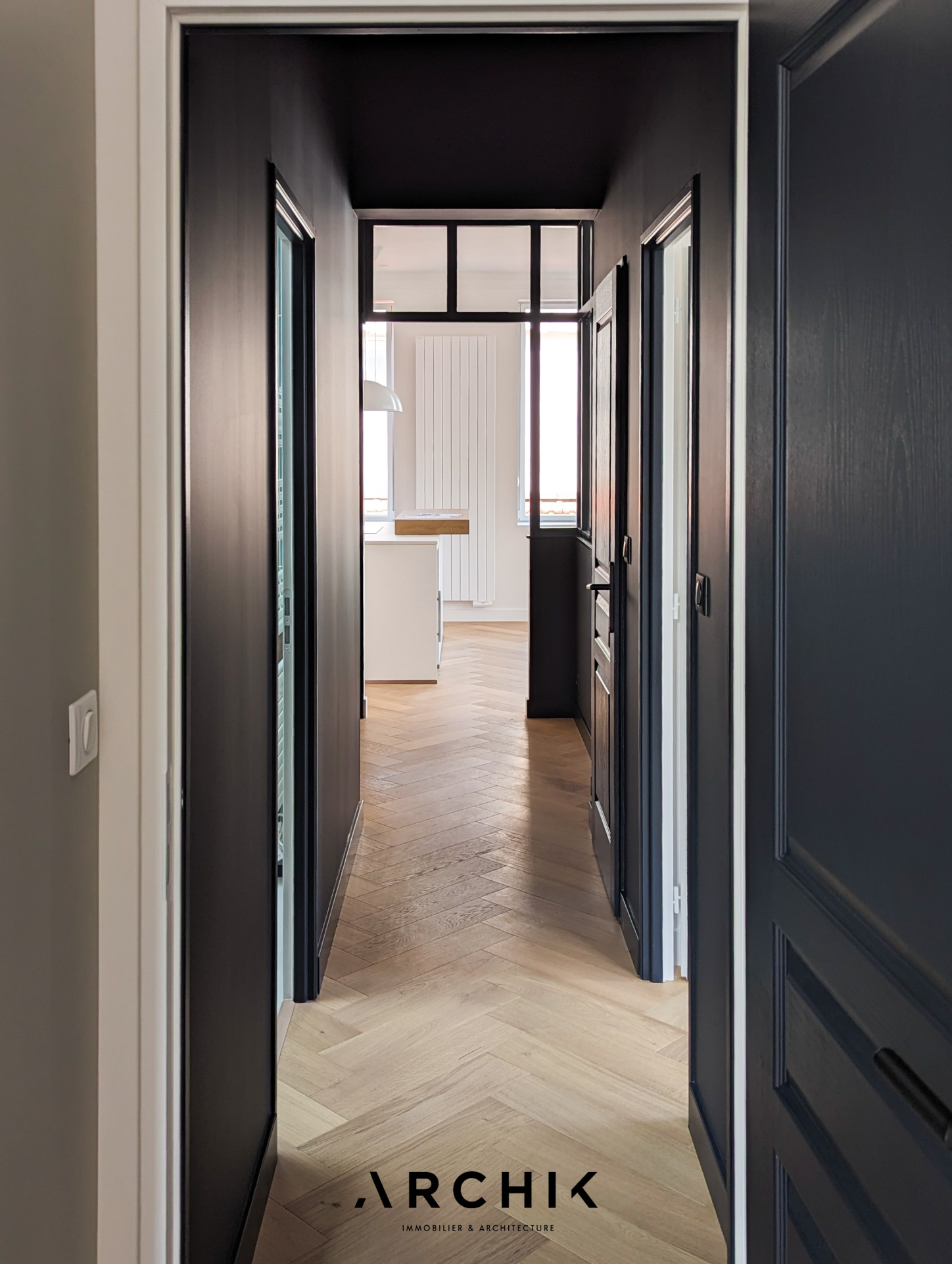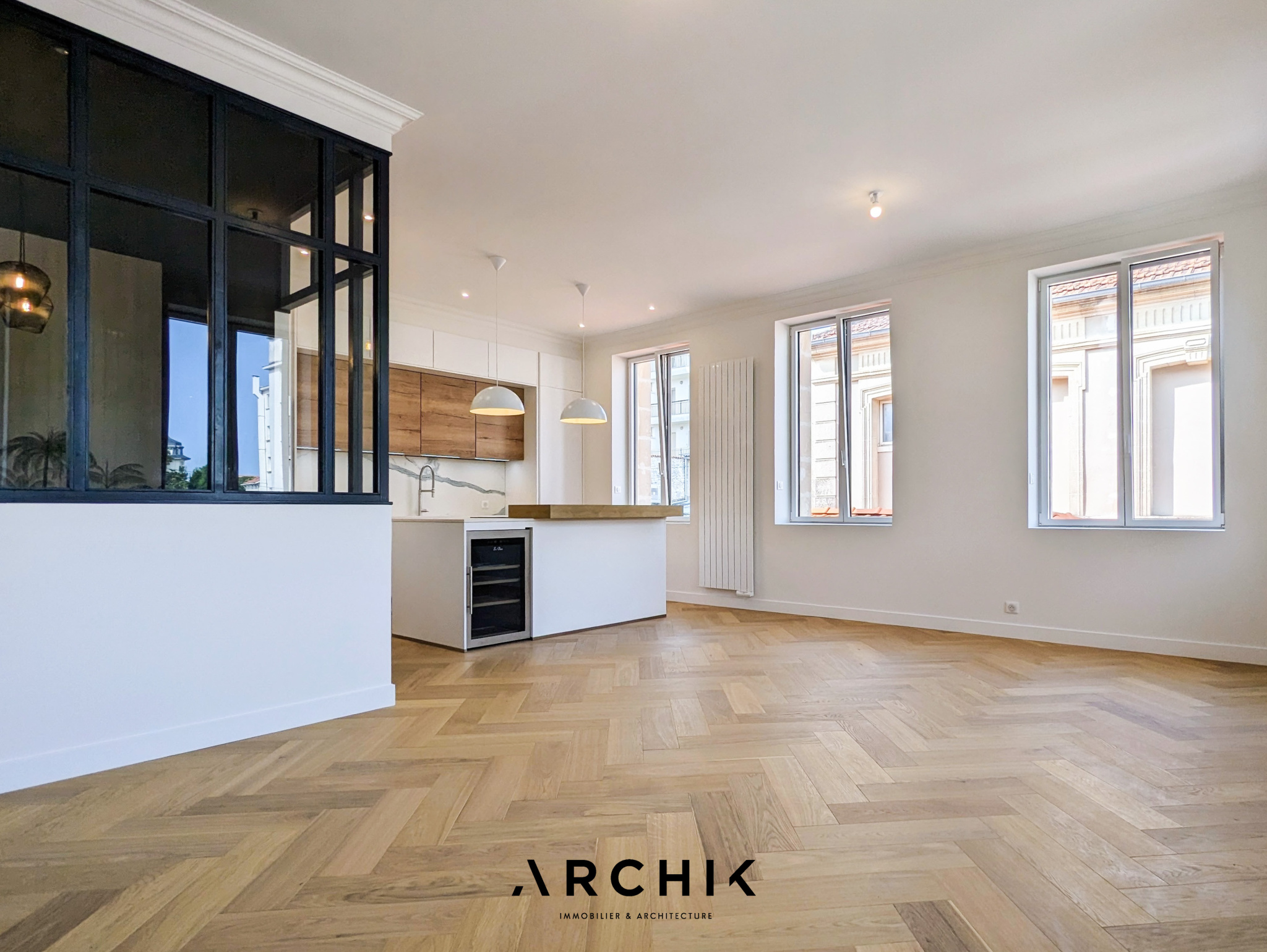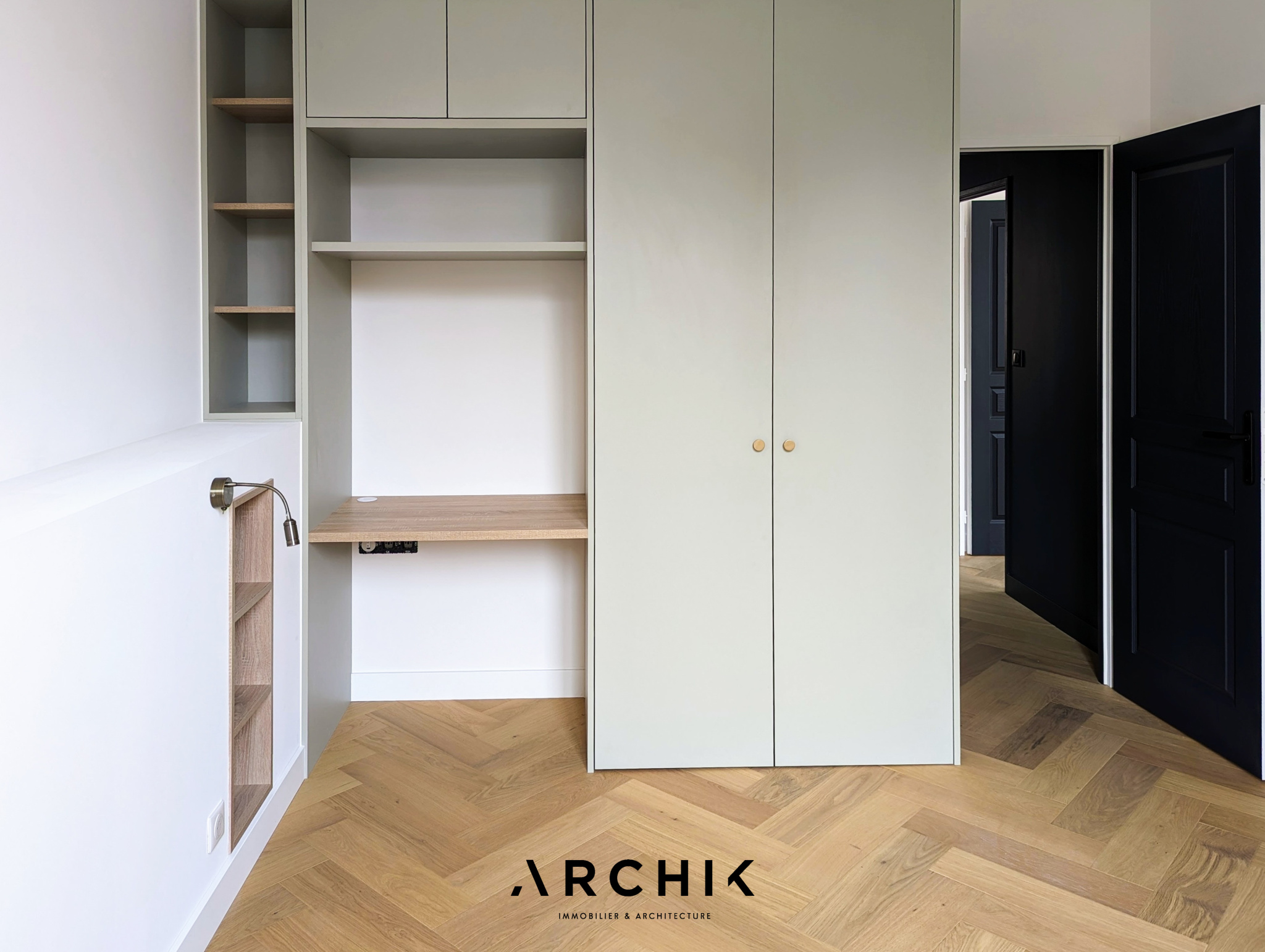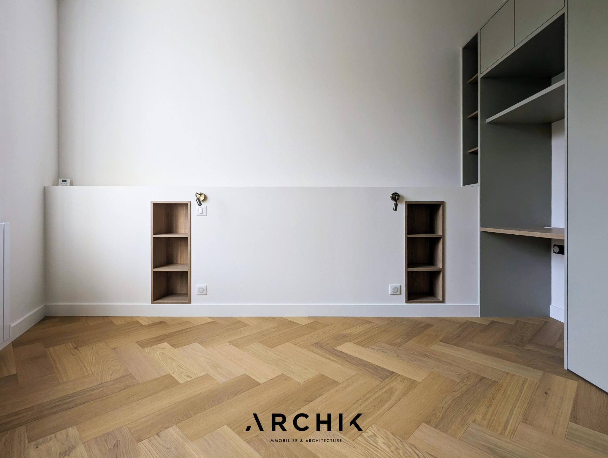 + DE DETAILS AMAZONE ROYAN | Royan Centre 549 000 € Type de bien Appartement Surface 100 m2 Chambre(s) 2 Courant Art Nouveau Architecture À vivre Réference RO259 ON AIMELa qualité de la rénovationLa lumière omniprésenteLa situation privilégiée au coeur de PontaillacNOUS CONTACTER Architecture de la fin du XIXème siècle, ce petit immeuble bourgeois situé à 100 m de la plage de Pontaillac abrite sur la totalité de son unique étage un appartement de 100 m2 aux prestations contemporaines.Très récemment ravalée, la façade en pierre blonde est animée par de nombreuses fenêtres qui laissent deviner la luminosité dont profite l'appartement totalement réhabilité il y a deux ans. Bénéficiant d'un accès indépendant dès le rez-de-chaussée, un large hall d'accueil au sol effet terrazzo donne accès à un espace polyvalent (bureau, stockage, coin nuit) et à une buanderie. S'en suit le bel escalier d'époque qui a conservé son garde-corps en fer forgé, réhaussé d'une rampe en bois clair, sur fond de papier peint Amazone signé Isidore Leroy. Les contremarches peintes en noir apportent une modernité qui se retrouve avec la verrière en bois au sommet de l'escalier. Cette dernière crée un sas entre la partie jour et la partie nuit de l'appartement, tout en constituant un élément décoratif à part entière de la pièce vie. Pas moins de six fenêtres illuminent l'espace qui intègre une cuisine ouverte mettant en valeur ses plans de travail et sa crédence en céramique. L'îlot central est prolongé par un plan snack en chêne massif faisant écho à la chaleur du parquet à bâtons rompus qui unifie toutes les pièces de l'étage. Les corniches agrémentent les belles hauteurs sous plafond. Un dégagement distribue la partie nuit. Deux chambres tout aussi lumineuses que le séjour se parent de nombreux agencements. L'une a conservé une cheminée décorative en marbre rose et l'autre bénéficie d'un espace de travail sur mesure. La vaste salle de bain avec sa faïence graphique comporte une baignoire îlot et une douche à l'italienne. Un lieu idéal pour une vie « tout à pied » au quotidien comme en villégiature. LE QUARTIER Royan Centre Le centre-ville de Royan est le cœur de la ville : il a l’avantage de se trouver à deux pas de la plage de la Grande Conche, ce qui permet de profiter en une journée des commerces, de la plage et des restaurants, à pied. VOTRE CONTACT Christophe GIRALDÉ 06 84 81 44 54 christophe.giralde@archik.fr DIAGNOSTICPARTAGERDétail du diagnostic Diagnostic de performance énergétique 192 KWh/m².an 6* kg CO2/m².an Logement économeABCDEFGLogement énergivore DPE vierge Consommations non exploitables Non soumis au diagnostic * Dont émissions de gaz à effet de serreFaible émission de GESABCDEFGForte émission de GES 6 KgéqCO2 / m².an GES vierge Consommations non exploitables Montant estimé des dépenses annuelles d'énergie pour un usage standard : entre 1170 et 1630 € TTC/an . Date de référence des prix de l'énergie pour établie cette estimation : 01/01/2023 Les informations sur les risques auxquels ce bien est exposé sont disponibles sur le site Géorisques : www.georisques.gouv.fr Vous souhaitez avoir plus d'informations ? Remplissez le formulaire ou contactez directement la personne en charge de ce bien. NOM* PRÉNOM* EMAIL* TÉLÉPHONE* MESSAGE Je souhaite recevoir la Newsletter ARCHIK VOTRE CONTACT Christophe GIRALDÉ 06 84 81 44 54 christophe.giralde@archik.fr Découvrez aussi ...VENDRENos biens en venteNOS BIENS VENDUS