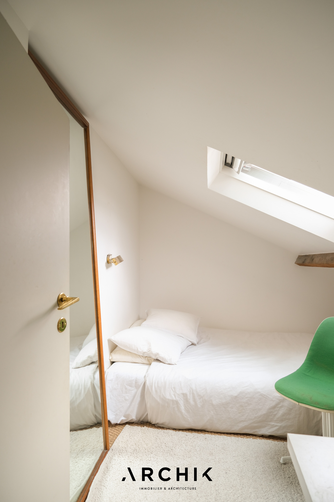 Les étages sont dédiés aux espaces nuit. Le premier étage accueille trois chambres et une salle de bain et les combles qui ont été aménagés se compose de deux chambres et d'une salle d'eau. Un sous-sol complète l'ensemble et accueille des espaces annexes, parfaits pour une buanderie, du rangement ou une pièce complémentaire.