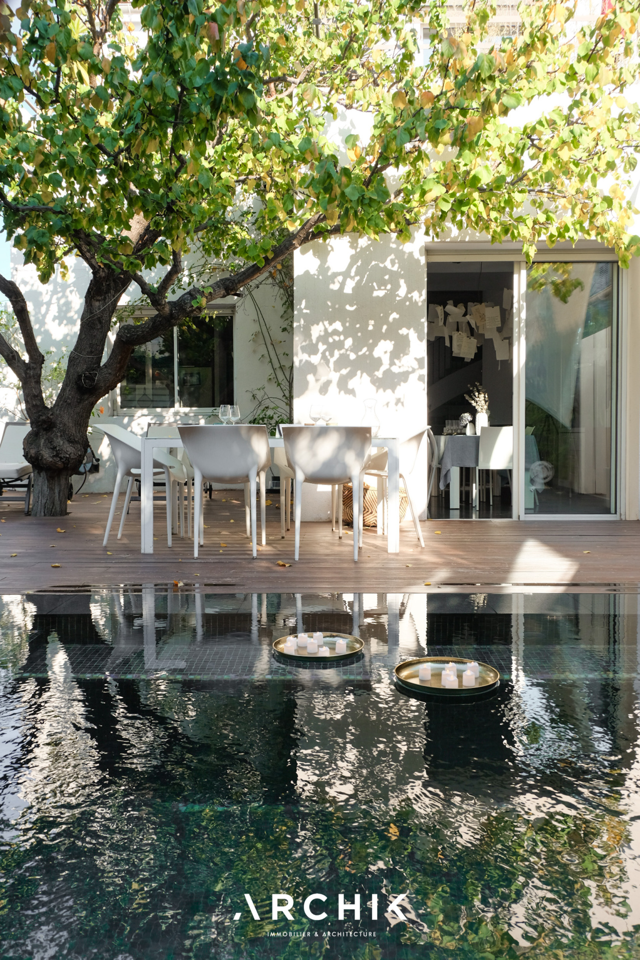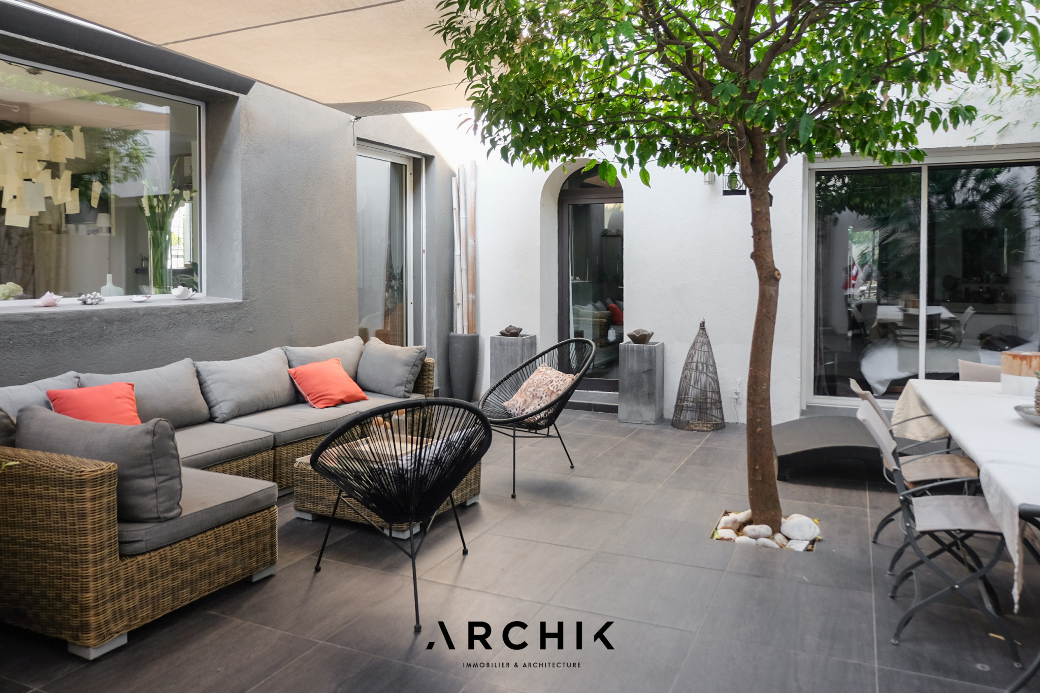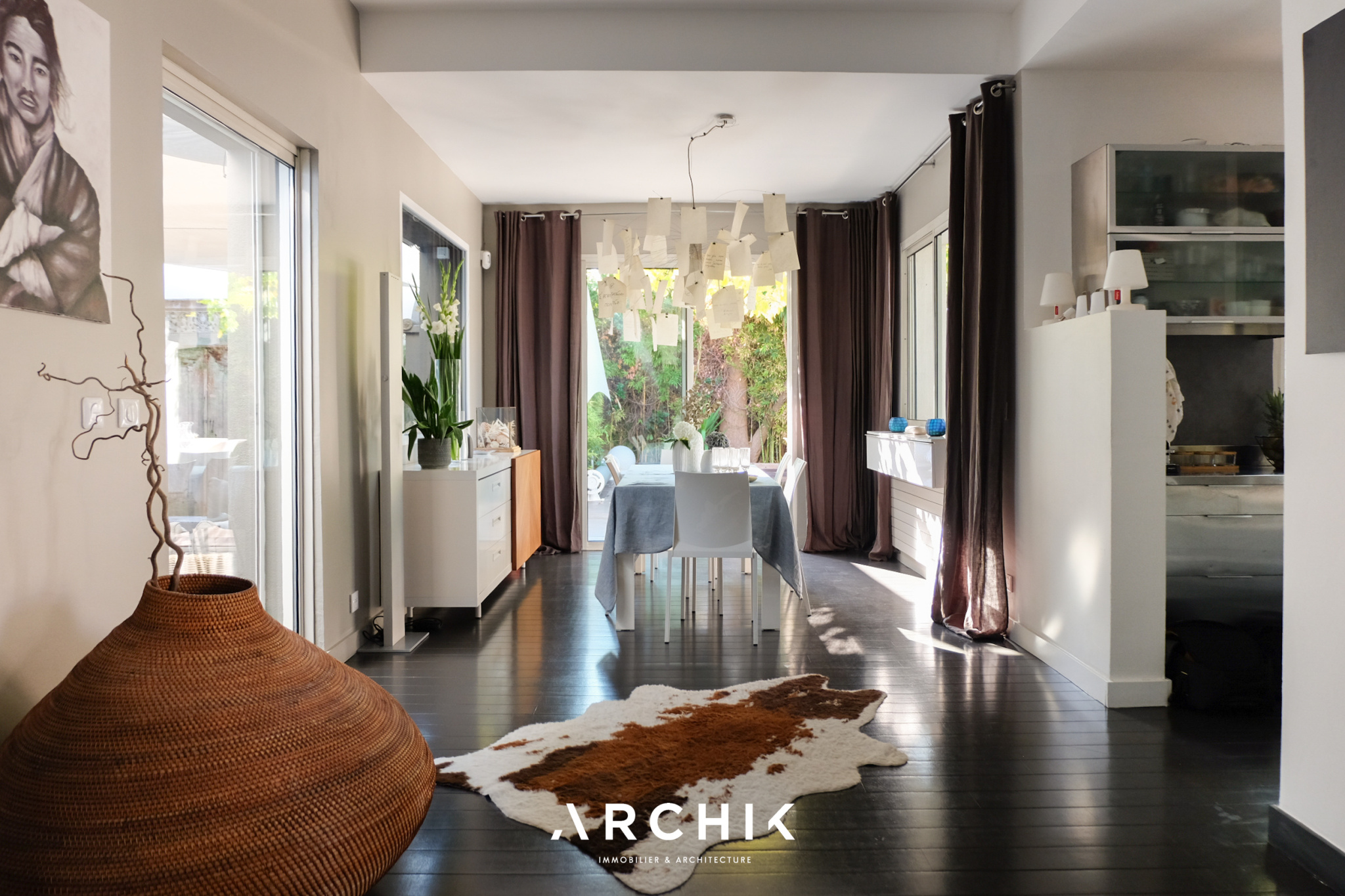 + DE DETAILS AURA MARSEILLE 8ÈME | Sainte-Anne 1 490 000 € Type de bien Maison Surface 221 m2 Chambre(s) 5 Extérieur Terrasse, jardin Courant Art Nouveau Architecture À vivre Réference OP1788 ON AIMELa noblesse des matériauxLes volumes apaisantsLa terrasse comme refugeNOUS CONTACTER Architecture de 1900, cette maison familiale de 221 m2 au sol avec garage de 25 m2 située dans le quartier prisé de Sainte-Anne, se cache sur une parcelle de 445 m2.Derrière sa façade discrète, la maison a préservé son charme d'antan tout en s'habillant de lignes contemporaines.Les matériaux sont nobles : parquet massif en bois brun, ouvertures arquées, tonalités minérales dialoguent avec douceur, offrant un équilibre entre caractère et modernité.Ici, les volumes sont tous généreux. L'espace de vie sous une belle hauteur sous plafond s'ouvre sur un jardin terrassé, orienté Ouest, où un bassin balinais apporte une touche d'exotisme et de sérénité. Le salon avec sa cheminée monumentale et la salle à manger se fondent dans une atmosphère apaisante. Le plafond paré de poutres apparentes sablées, contraste harmonieusement avec le sol en parquet massif. La cuisine semi-ouverte s'habille de façades et d'un plan de travail en inox. Toujours de plain-pied, un second salon avec cheminée est prolongé d'une suite parentale intime avec dressing et salle d'eau. À l'étage, deux chambres lumineuses dont une connectée à sa terrasse, se partagent une salle de bain avec douche et baignoire, habillée de béton ciré couleur carbone. Une seconde suite au volume généreux avec dressing et salle d'eau complète ce niveau.Le dernier étage mansardé accueille une grande chambre, comme un refuge suspendu sous les toits.Un grand garage avec espace buanderie complète ce bien rare. Un mariage harmonieux entre authenticité marseillaise et architecture contemporaine. LE QUARTIER Sainte-Anne Sainte-Anne est un quartier résidentiel typique de « la ville aux 111 villages ». VOTRE CONTACT Alexia BACHELLERIE 06 72 02 30 59 alexia.bachellerie@archik.fr DIAGNOSTICTRANSPORTSBus 23,45PARTAGERDétail du diagnostic Diagnostic de performance énergétique 185 KWh/m².an 30* kg CO2/m².an Logement économeABCDEFGLogement énergivore DPE vierge Consommations non exploitables Non soumis au diagnostic * Dont émissions de gaz à effet de serreFaible émission de GESABCDEFGForte émission de GES 30 KgéqCO2 / m².an GES vierge Consommations non exploitables Montant estimé des dépenses annuelles d'énergie pour un usage standard : entre 2590 et 3580 € TTC/an . Date de référence des prix de l'énergie pour établie cette estimation : 01/01/2025 Les informations sur les risques auxquels ce bien est exposé sont disponibles sur le site Géorisques : www.georisques.gouv.fr Vous souhaitez avoir plus d'informations ? Remplissez le formulaire ou contactez directement la personne en charge de ce bien. NOM* PRÉNOM* EMAIL* TÉLÉPHONE* MESSAGE Je souhaite recevoir la Newsletter ARCHIK VOTRE CONTACT Alexia BACHELLERIE 06 72 02 30 59 alexia.bachellerie@archik.fr Découvrez aussi ...VENDRENos biens en venteNOS BIENS VENDUS