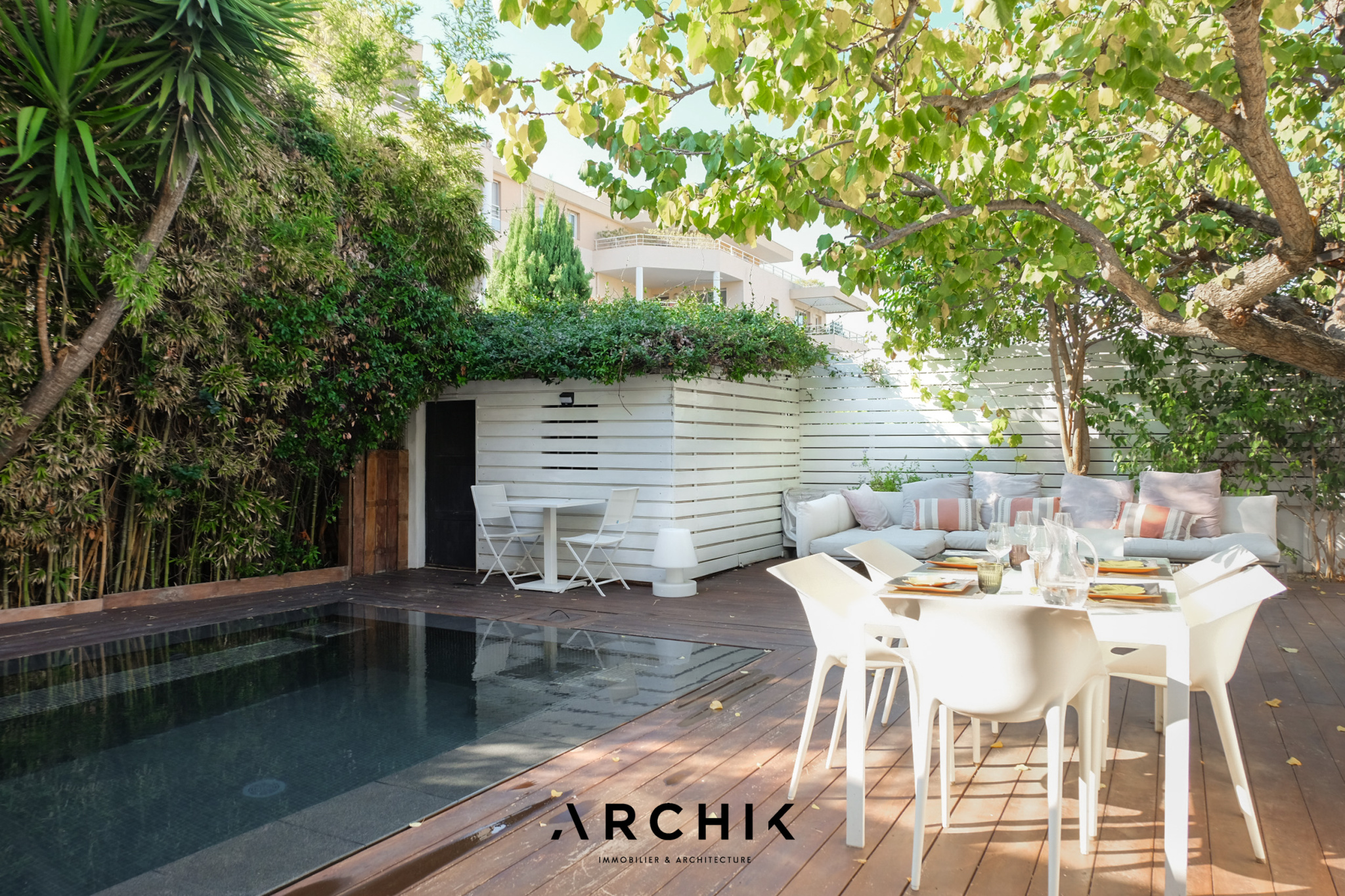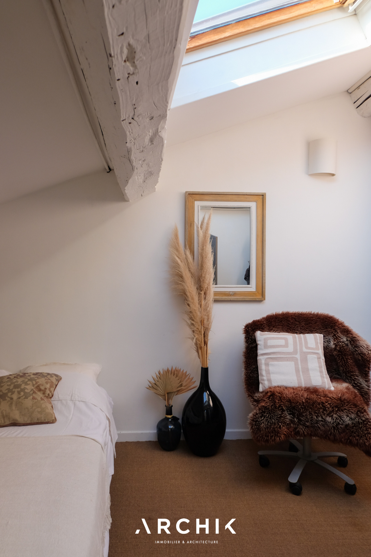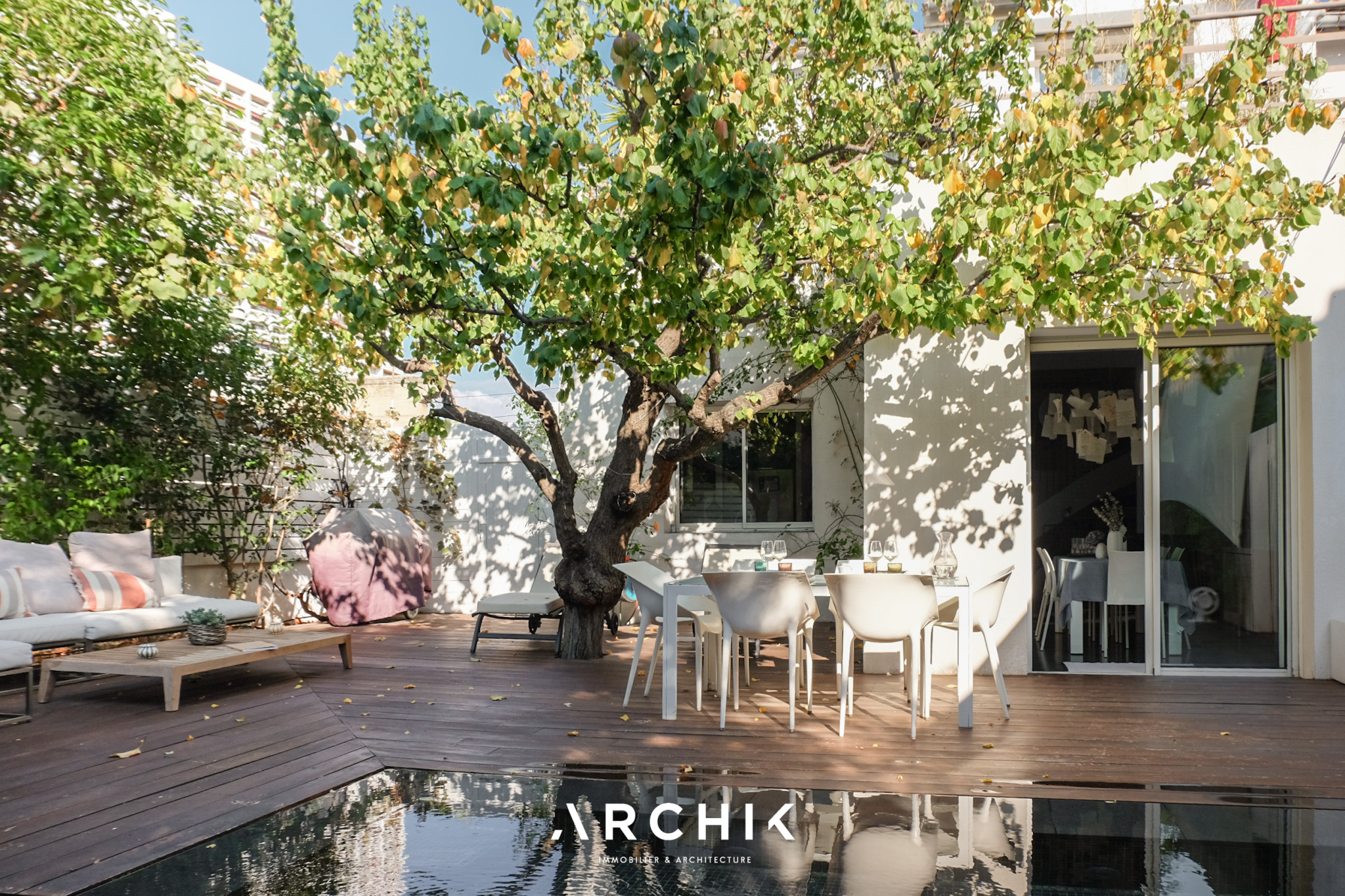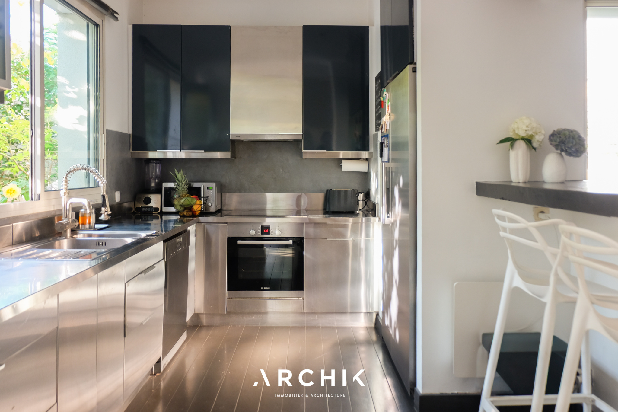 + DE DETAILS AURA MARSEILLE 8ÈME | Sainte-Anne 1 490 000 € Type de bien Maison Surface 221 m2 Chambre(s) 5 Extérieur Terrasse, jardin Courant Art Nouveau Architecture À vivre Réference OP1788 ON AIMELa noblesse des matériauxLes volumes apaisantsLa terrasse comme refugeNOUS CONTACTER Architecture de 1900, cette maison familiale de 221 m2 au sol avec garage de 25 m2 située dans le quartier prisé de Sainte-Anne, se cache sur une parcelle de 445 m2.Derrière sa façade discrète, la maison a préservé son charme d'antan tout en s'habillant de lignes contemporaines.Les matériaux sont nobles : parquet massif en bois brun, ouvertures arquées, tonalités minérales dialoguent avec douceur, offrant un équilibre entre caractère et modernité.Ici, les volumes sont tous généreux. L'espace de vie sous une belle hauteur sous plafond s'ouvre sur un jardin terrassé, orienté Ouest, où un bassin balinais apporte une touche d'exotisme et de sérénité. Le salon avec sa cheminée monumentale et la salle à manger se fondent dans une atmosphère apaisante. Le plafond paré de poutres apparentes sablées, contraste harmonieusement avec le sol en parquet massif. La cuisine semi-ouverte s'habille de façades et d'un plan de travail en inox. Toujours de plain-pied, un second salon avec cheminée est prolongé d'une suite parentale intime avec dressing et salle d'eau. À l'étage, deux chambres lumineuses dont une connectée à sa terrasse, se partagent une salle de bain avec douche et baignoire, habillée de béton ciré couleur carbone. Une seconde suite au volume généreux avec dressing et salle d'eau complète ce niveau.Le dernier étage mansardé accueille une grande chambre, comme un refuge suspendu sous les toits.Un grand garage avec espace buanderie complète ce bien rare. Un mariage harmonieux entre authenticité marseillaise et architecture contemporaine. LE QUARTIER Sainte-Anne Sainte-Anne est un quartier résidentiel typique de « la ville aux 111 villages ». VOTRE CONTACT Alexia BACHELLERIE 06 72 02 30 59 alexia.bachellerie@archik.fr DIAGNOSTICTRANSPORTSBus 23,45PARTAGERDétail du diagnostic Diagnostic de performance énergétique 185 KWh/m².an 30* kg CO2/m².an Logement économeABCDEFGLogement énergivore DPE vierge Consommations non exploitables Non soumis au diagnostic * Dont émissions de gaz à effet de serreFaible émission de GESABCDEFGForte émission de GES 30 KgéqCO2 / m².an GES vierge Consommations non exploitables Montant estimé des dépenses annuelles d'énergie pour un usage standard : entre 2590 et 3580 € TTC/an . Date de référence des prix de l'énergie pour établie cette estimation : 01/01/2025 Les informations sur les risques auxquels ce bien est exposé sont disponibles sur le site Géorisques : www.georisques.gouv.fr Vous souhaitez avoir plus d'informations ? Remplissez le formulaire ou contactez directement la personne en charge de ce bien. NOM* PRÉNOM* EMAIL* TÉLÉPHONE* MESSAGE Je souhaite recevoir la Newsletter ARCHIK VOTRE CONTACT Alexia BACHELLERIE 06 72 02 30 59 alexia.bachellerie@archik.fr Découvrez aussi ...VENDRENos biens en venteNOS BIENS VENDUS