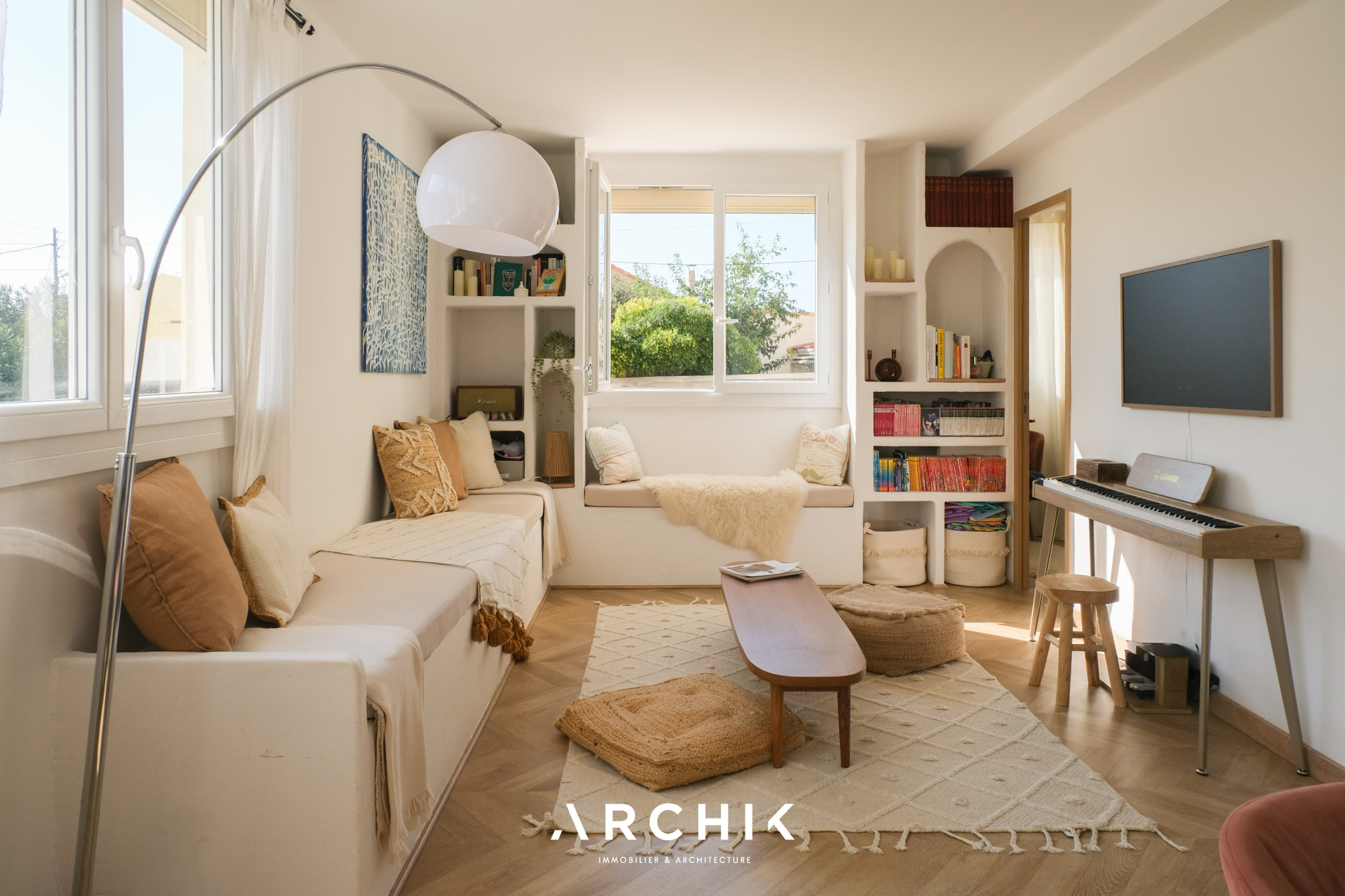 + DE DETAILS BLUSH MARSEILLE 7ÈME | Bompard 420 000 € Type de bien Appartement Surface 79.55 m2 Chambre(s) 3 Courant Post-Moderne Architecture À vivre Réference OP1786 ON AIMESes tons douxSa rénovation soignéeSa lumière traversanteNOUS CONTACTER Architecture des années 70, cette copropriété sécurisée accueille en son rez-de-chaussée surélevé, un appartement familial clair aux tons doux de 80 m2 dans le quartier prisé de Bompard.Fruit d'une rénovation récente et soignée, tout y est sublimé par une belle lumière traversante. La justesse de ses tons, ses volumes et son parquet en chêne clair en point de Hongrie dialoguent à la perfection avec les touches de couleurs poudrées, le mobilier maçonné et les niches graphiques. La pièce de vie aux tonalités douce profite d'une double exposition Sud et Ouest. D'un côté, la cuisine s'habille d'un plan de travail effet marbre et d'une crédence en béton ciré et se poursuit par la salle à manger. Plus loin, le salon aux inspirations méditerranéennes s'habille d'une banquette maçonnée conviviale.Côté nuit, une première chambre enfants est rythmée par des claustras en tasseau de bois blond qui viennent structurer les volumes. Plus loin, deux chambres avec rangement s'habillent de bois et d'un terracotta qui réveille les murs. Elles se partagent une salle de bain qui mêle béton ciré et mobilier maçonné. Une buanderie, et de nombreux rangements parfaitement intégrés aux nouveaux volumes mis à jour apportent du confort au quotidien.Une cave, un local à vélo ainsi qu'une place de stationnement dans la résidence viennent compléter ce bien. Un cocon familial au coeur de Bompard. LE QUARTIER Bompard Le quartier très populaire de Bompard commence en dessous de Notre-Dame de la Garde... VOTRE CONTACT Ohanna MACÉ 06 88 63 60 87 ohanna.mace@archik.fr DIAGNOSTICTRANSPORTSBUS 55PARTAGERDétail du diagnostic Diagnostic de performance énergétique 260 KWh/m².an 56* kg CO2/m².an Logement économeABCDEFGLogement énergivore DPE vierge Consommations non exploitables Non soumis au diagnostic * Dont émissions de gaz à effet de serreFaible émission de GESABCDEFGForte émission de GES 56 KgéqCO2 / m².an GES vierge Consommations non exploitables Montant estimé des dépenses annuelles d'énergie pour un usage standard : entre 1380 et 1920 € TTC/an . Date de référence des prix de l'énergie pour établie cette estimation : 01/01/2023 Les informations sur les risques auxquels ce bien est exposé sont disponibles sur le site Géorisques : www.georisques.gouv.fr Vous souhaitez avoir plus d'informations ? Remplissez le formulaire ou contactez directement la personne en charge de ce bien. NOM* PRÉNOM* EMAIL* TÉLÉPHONE* MESSAGE Je souhaite recevoir la Newsletter ARCHIK VOTRE CONTACT Ohanna MACÉ 06 88 63 60 87 ohanna.mace@archik.fr Découvrez aussi ...VENDRENos biens en venteNOS BIENS VENDUS
