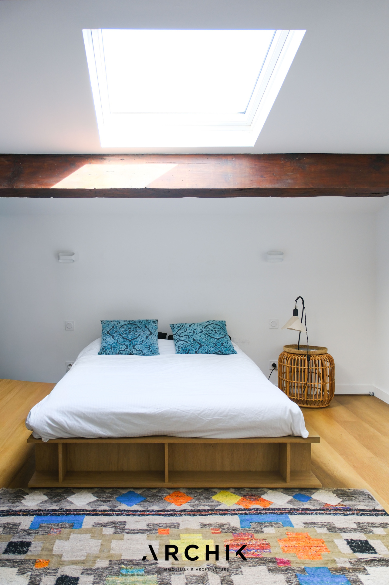 Au dernier niveau, sous les toits, une chambre mansardée avec salle d'eau ainsi qu'une chambre indépendante supplémentaire offrent une configuration idéale pour une vie familiale.
