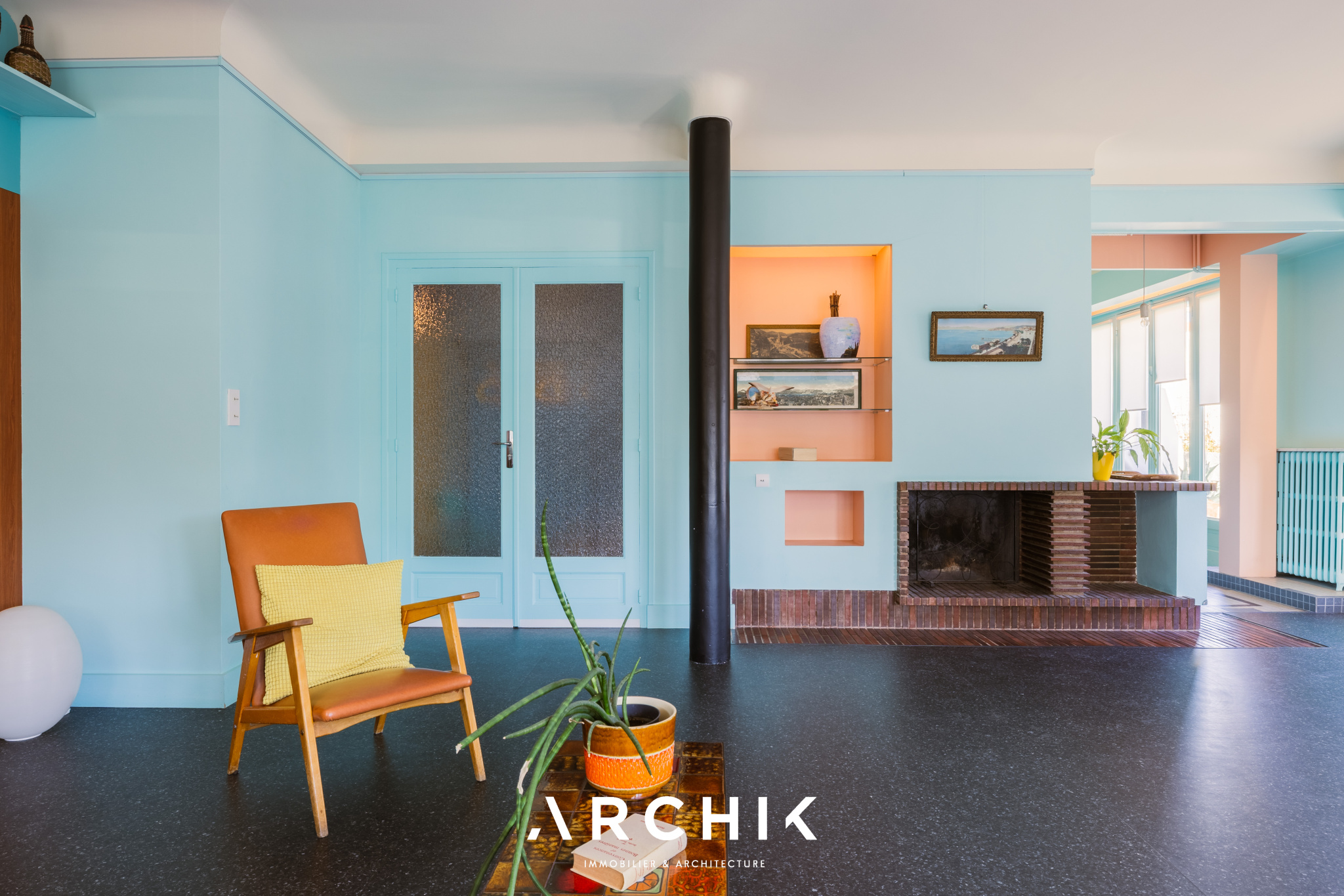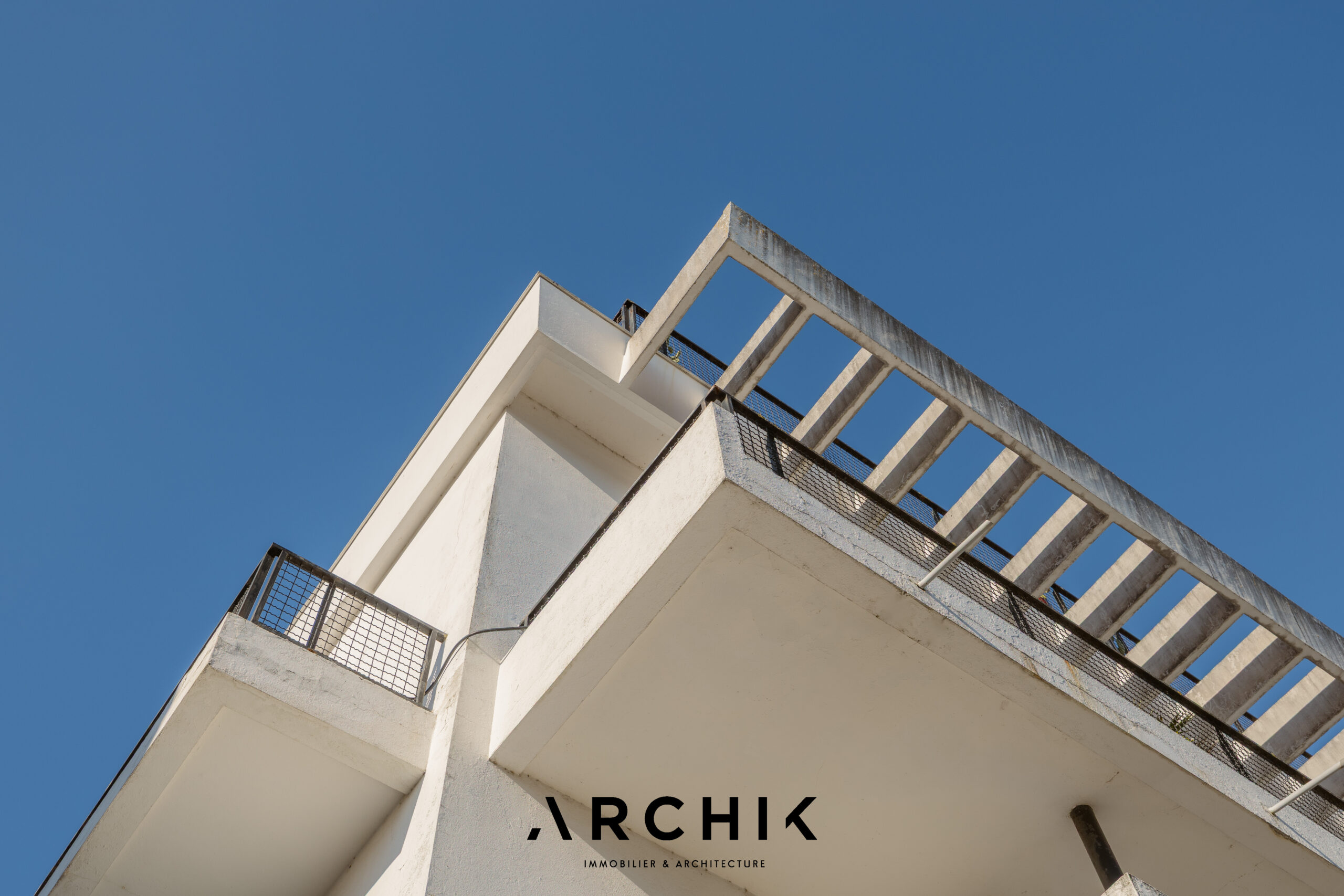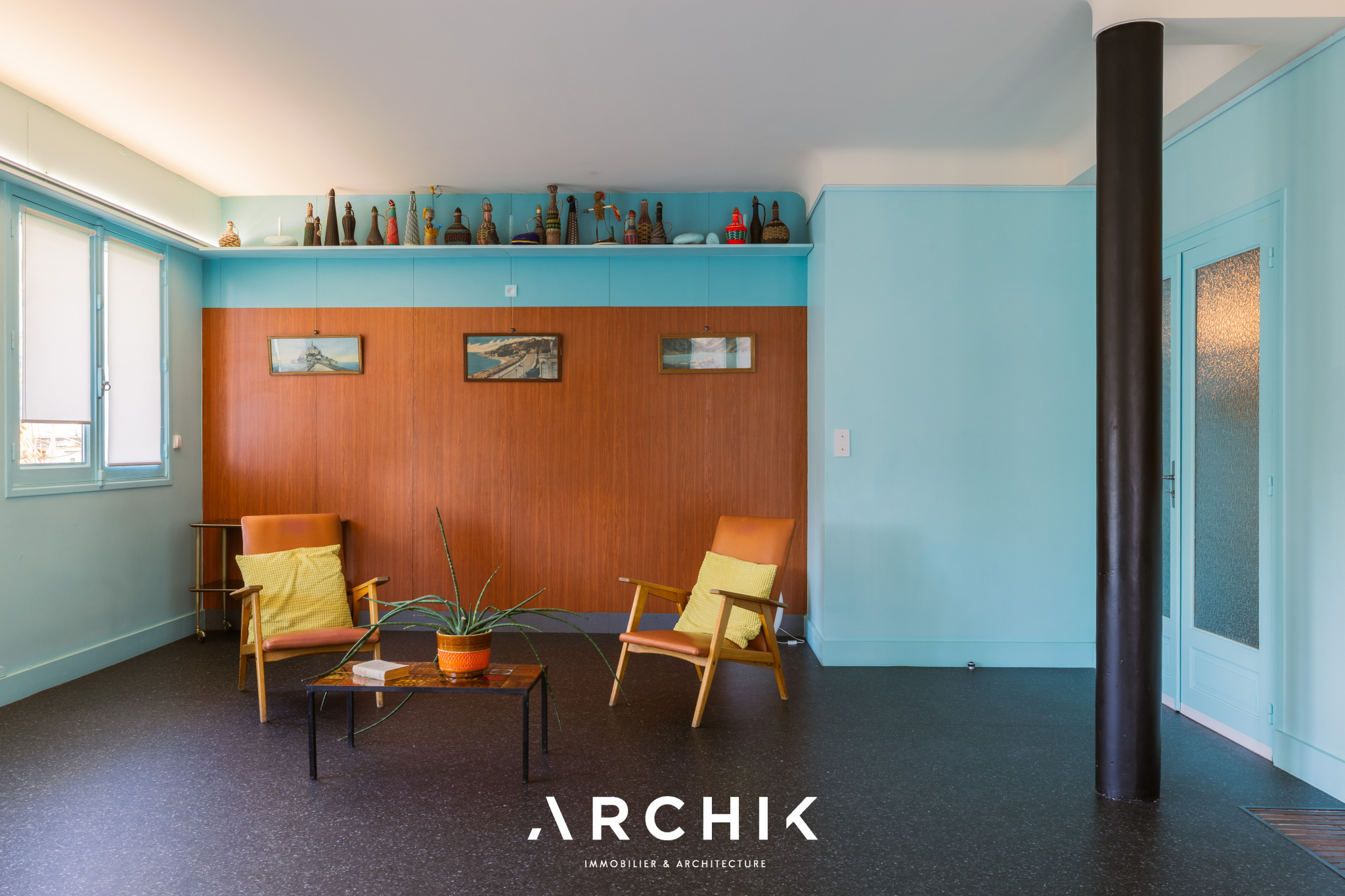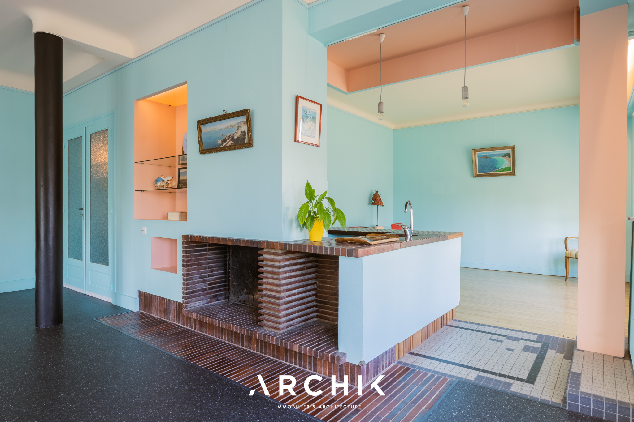 + DE DETAILS CIEL ROYAN | Royan Centre 1 100 000 € Type de bien Maison Surface 256 m2 Chambre(s) 7 Extérieur Terrasse, balcon Courant Moderne Architecture À vivre Réference RO260 ON AIMEL'esprit vintage revisitéLes couleurs qui réhaussent les formesLa vue panoramiqueNOUS CONTACTER Architecture moderne, cette grande maison de ville dessinée en 1957 par Roger Mialet, dispose de 256 m2 habitables répartis sur trois niveaux couronnés par un toit terrasse qui surplombe la baie de Royan, la ville et l'estuaire. Édifiée sur une parcelle de 227 m2, elle est située à 250 m de la plage de Foncillon et du port.L'architecte orchestre ici une quête de légèreté visible dans la graduation des structures : des pilotis solides de la base, on monte vers des poteaux plus fins au premier étage, s'effaçant totalement au troisième niveau. Ce dernier est couronné par une ligne de brise-soleil, signature esthétique du bâtiment. L'ensemble est complété par l'attique ajouté postérieurement, offrant un pavillon sur toit-terrasse - un espace ouvert sur l'extérieur et scandé par le rythme graphique des poteaux en V. Le détail est poussé jusqu'aux garde-corps, qui évoluent du béton structurant à un élégant cadre métallique grillagé, confirmant l'intention de légèreté et de finesse.Rénové en 2017 par l'agence FMAU, cet immeuble d'angle traversant offre une modularité exceptionnelle. L'organisation intérieure a été totalement repensée pour former un plan complexe et ingénieux imbriquant deux logements et une galerie. L'ensemble est conçu pour fonctionner comme une grande maison familiale ou comme deux appartements totalement indépendants et un espace polyvalent. Chacun bénéficie de vastes terrasses dont les orientations préservent toute intimité.L'améngamenet intérieur de l'ensemble est voulu au plus près du style 50 en conservant les éléments d'origine encore présents. Une attention toute particulière a été apportée aux teintes avec la conception d'une large gamme de couleurs balnéaires aux nuances subtiles, donnant à chaque pièce une identité propre.Un lieu inspirant la fantaisie et la joie de vivre du style 50 royannais, pour y vivre toute l'année, en villégiature et ouvert pour de nouveaux projets. Tel un petit hôtel particulier, une belle entrée principale éclairée par une paroi de pavés de verre conduit à l’escalier en comblanchien qui dessert les niveaux hauts de réception et de nuit, le niveau bas étant constitué par des pièces techniques, de stockage et le garage. D’emblée, le ton est donné par la couleur bleue vive des murs.Au premier niveau, une galerie en L de 55 m² multiplie les ouvertures sur les balcons et est articulée autour d’une cheminée de brique qui s’étire sur un beau comptoir. Un pilier mis en exergue rappelle la structure du bâtiment. Une nouvelle nuance de bleu habille les murs qui se terminent au plafond par des arrondis soulignant les angles, tandis que le sol a volontairement conservé les stigmates de la redistribution : parquet blond et petits carreaux complétés par un revêtement rappelant le granito. La seconde partie de l’étage se compose d’une unité d’habitation comprenant un séjour avec cuisine ouverte aux couleurs éclatantes, deux chambres, une salle d’eau, une véranda et une vaste terrasse. Les deux niveaux supérieurs forment un duplex familial : cinq chambres déclinent chacune la gamme des couleurs joyeuses, complétées par deux salles d’eau et une salle de bain aux faïences lumineuses. Certaines chambres ont conservé leur cabinet de toilette d’origine parfaitement intégré dans les nombreux agencements conservés.Accessible par un escalier à vis qui monte au ciel, le dernier étage est traité comme le pont supérieur d’un paquebot avec ses stratifiés et ses arrondis. Une pièce de vie avec cuisine et un petit salon occupent un espace où intérieur et extérieur se confondent à nouveau grâce à son roof top périphérique dominant la ville : Église Notre Dame, plage de la Grande Conche, Port, Palais des Congrès, estuaire et océan.Roger MialetArchitecte français né en 1906, Roger Mialet étudie à l’École des Beaux‑Arts de Paris, dans les ateliers de grands architectes comme Louis Hippolyte Boileau, Roger Henri Expert et Eugène Beaudouin. Au cours de sa carrière, Mialet exerce comme architecte à Paris s’engage dans des projets d’habitat et d’urbanisme, mais il est surtout connu pour ses travaux lors de la reconstruction après-guerreL’une de ses réalisations majeures concerne la ville de Royan, marquée après la Seconde Guerre Mondiale par d’importants travaux de reconstruction. Il y supervise notamment : ’Îlot 106, un ensemble d’immeubles collectifs combinant logements et commerces, conçu en 1956, livré en 1961, l’Îlot 85, un autre programme d’habitat collectif datant de la même période, ainsi que des logements particuliers contribuant ainsi à la reconfiguration urbaine de Royan.Ces projets témoignent de son engagement dans l’architecture d’après-guerre, mêlant reconstruction urbaine, logements collectifs et mixité d’usage. Architecte de la reconstruction, Mialet a redessiné Royan avec une architecture sobre et fonctionnelle. LE QUARTIER Royan Centre Le centre-ville de Royan est le cœur de la ville : il a l’avantage de se trouver à deux pas de la plage de la Grande Conche, ce qui permet de profiter en une journée des commerces, de la plage et des restaurants, à pied. VOTRE CONTACT Christophe GIRALDÉ 06 84 81 44 54 christophe.giralde@archik.fr DIAGNOSTICPARTAGERDétail du diagnostic Diagnostic de performance énergétique 284 KWh/m².an 62* kg CO2/m².an Logement économeABCDEFGLogement énergivore DPE vierge Consommations non exploitables Non soumis au diagnostic * Dont émissions de gaz à effet de serreFaible émission de GESABCDEFGForte émission de GES 62 KgéqCO2 / m².an GES vierge Consommat