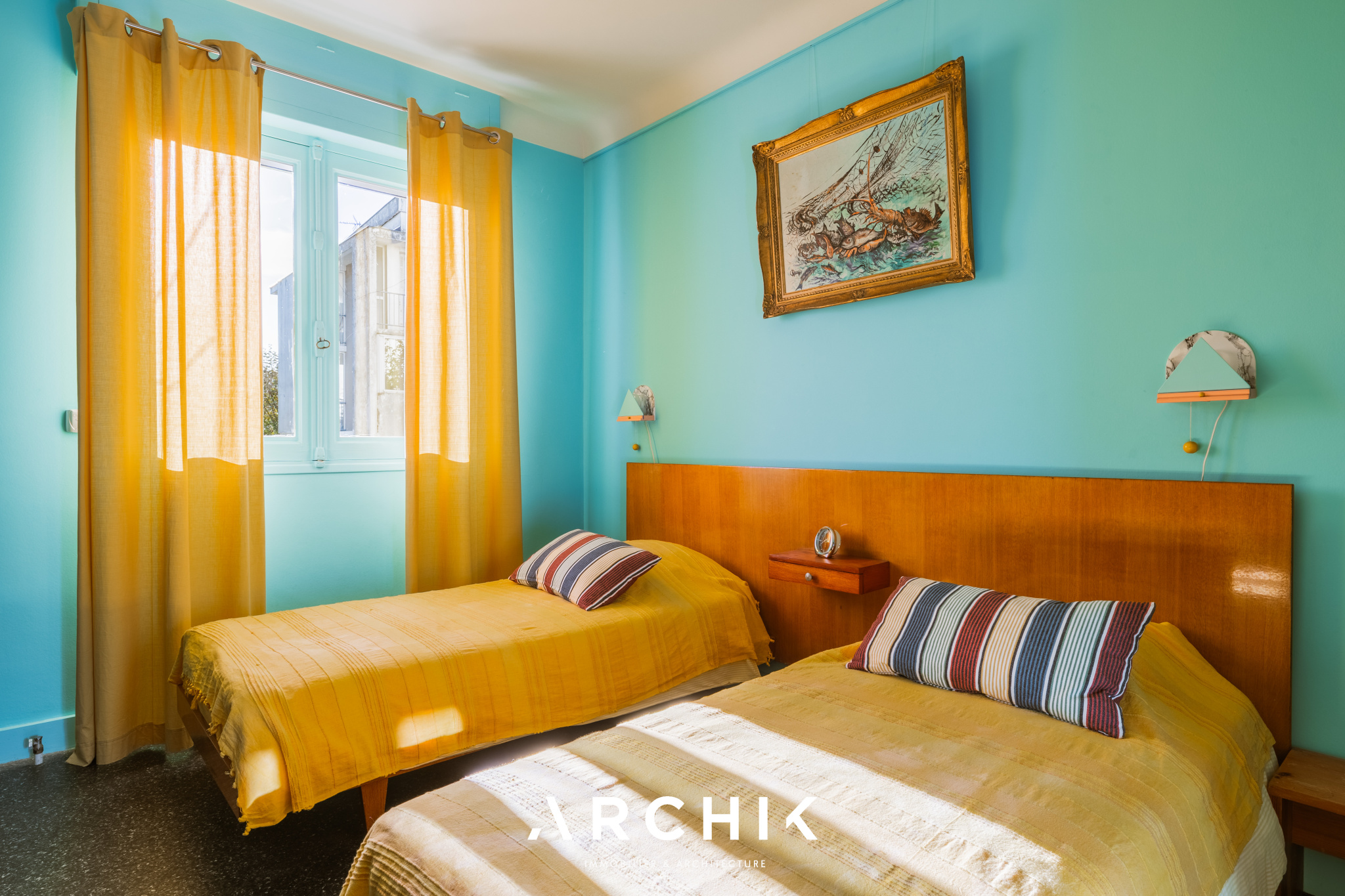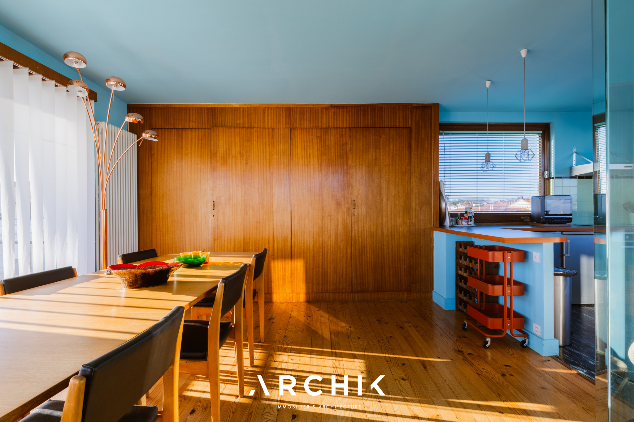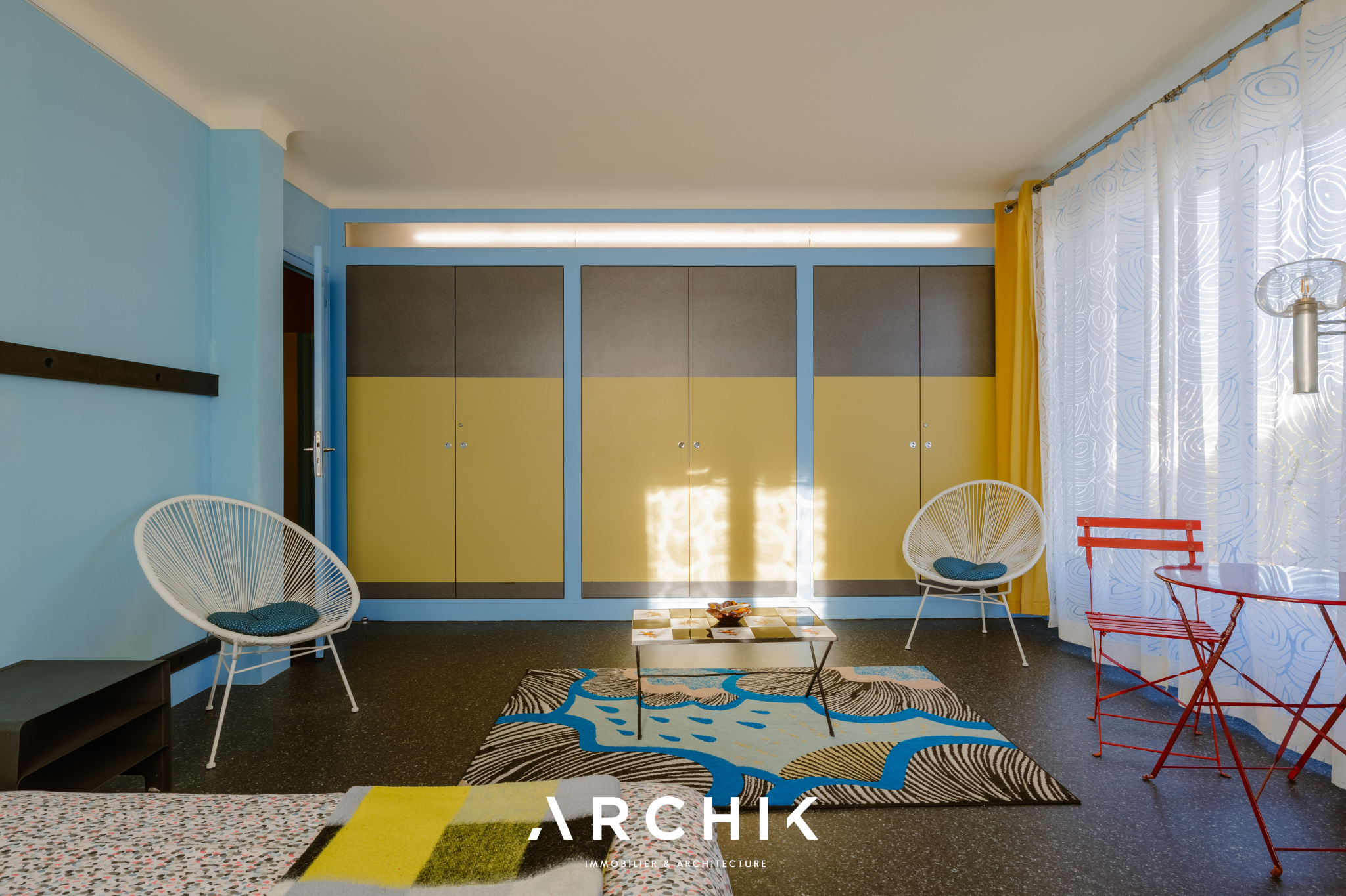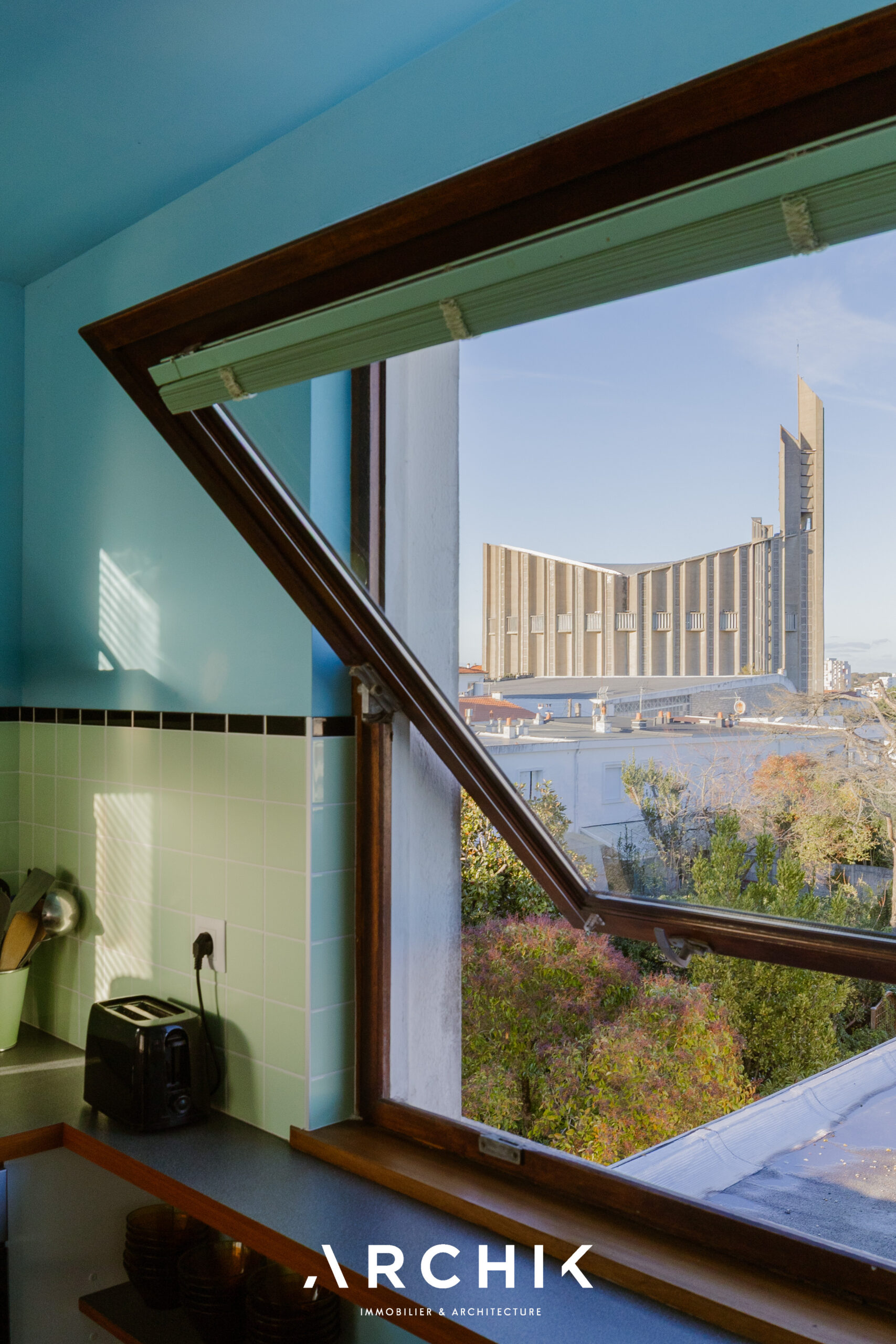 + DE DETAILS CIEL ROYAN | Royan Centre 1 100 000 € Type de bien Maison Surface 256 m2 Chambre(s) 7 Extérieur Terrasse, balcon Courant Moderne Architecture À vivre Réference RO260 ON AIMEL'esprit vintage revisitéLes couleurs qui réhaussent les formesLa vue panoramiqueNOUS CONTACTER Architecture moderne, cette grande maison de ville dessinée en 1957 par Roger Mialet, dispose de 256 m2 habitables répartis sur trois niveaux couronnés par un toit terrasse qui surplombe la baie de Royan, la ville et l'estuaire. Édifiée sur une parcelle de 227 m2, elle est située à 250 m de la plage de Foncillon et du port.L'architecte orchestre ici une quête de légèreté visible dans la graduation des structures : des pilotis solides de la base, on monte vers des poteaux plus fins au premier étage, s'effaçant totalement au troisième niveau. Ce dernier est couronné par une ligne de brise-soleil, signature esthétique du bâtiment. L'ensemble est complété par l'attique ajouté postérieurement, offrant un pavillon sur toit-terrasse - un espace ouvert sur l'extérieur et scandé par le rythme graphique des poteaux en V. Le détail est poussé jusqu'aux garde-corps, qui évoluent du béton structurant à un élégant cadre métallique grillagé, confirmant l'intention de légèreté et de finesse.Rénové en 2017 par l'agence FMAU, cet immeuble d'angle traversant offre une modularité exceptionnelle. L'organisation intérieure a été totalement repensée pour former un plan complexe et ingénieux imbriquant deux logements et une galerie. L'ensemble est conçu pour fonctionner comme une grande maison familiale ou comme deux appartements totalement indépendants et un espace polyvalent. Chacun bénéficie de vastes terrasses dont les orientations préservent toute intimité.L'améngamenet intérieur de l'ensemble est voulu au plus près du style 50 en conservant les éléments d'origine encore présents. Une attention toute particulière a été apportée aux teintes avec la conception d'une large gamme de couleurs balnéaires aux nuances subtiles, donnant à chaque pièce une identité propre.Un lieu inspirant la fantaisie et la joie de vivre du style 50 royannais, pour y vivre toute l'année, en villégiature et ouvert pour de nouveaux projets. Tel un petit hôtel particulier, une belle entrée principale éclairée par une paroi de pavés de verre conduit à l’escalier en comblanchien qui dessert les niveaux hauts de réception et de nuit, le niveau bas étant constitué par des pièces techniques, de stockage et le garage. D’emblée, le ton est donné par la couleur bleue vive des murs.Au premier niveau, une galerie en L de 55 m² multiplie les ouvertures sur les balcons et est articulée autour d’une cheminée de brique qui s’étire sur un beau comptoir. Un pilier mis en exergue rappelle la structure du bâtiment. Une nouvelle nuance de bleu habille les murs qui se terminent au plafond par des arrondis soulignant les angles, tandis que le sol a volontairement conservé les stigmates de la redistribution : parquet blond et petits carreaux complétés par un revêtement rappelant le granito. La seconde partie de l’étage se compose d’une unité d’habitation comprenant un séjour avec cuisine ouverte aux couleurs éclatantes, deux chambres, une salle d’eau, une véranda et une vaste terrasse. Les deux niveaux supérieurs forment un duplex familial : cinq chambres déclinent chacune la gamme des couleurs joyeuses, complétées par deux salles d’eau et une salle de bain aux faïences lumineuses. Certaines chambres ont conservé leur cabinet de toilette d’origine parfaitement intégré dans les nombreux agencements conservés.Accessible par un escalier à vis qui monte au ciel, le dernier étage est traité comme le pont supérieur d’un paquebot avec ses stratifiés et ses arrondis. Une pièce de vie avec cuisine et un petit salon occupent un espace où intérieur et extérieur se confondent à nouveau grâce à son roof top périphérique dominant la ville : Église Notre Dame, plage de la Grande Conche, Port, Palais des Congrès, estuaire et océan.Roger MialetArchitecte français né en 1906, Roger Mialet étudie à l’École des Beaux‑Arts de Paris, dans les ateliers de grands architectes comme Louis Hippolyte Boileau, Roger Henri Expert et Eugène Beaudouin. Au cours de sa carrière, Mialet exerce comme architecte à Paris s’engage dans des projets d’habitat et d’urbanisme, mais il est surtout connu pour ses travaux lors de la reconstruction après-guerreL’une de ses réalisations majeures concerne la ville de Royan, marquée après la Seconde Guerre Mondiale par d’importants travaux de reconstruction. Il y supervise notamment : ’Îlot 106, un ensemble d’immeubles collectifs combinant logements et commerces, conçu en 1956, livré en 1961, l’Îlot 85, un autre programme d’habitat collectif datant de la même période, ainsi que des logements particuliers contribuant ainsi à la reconfiguration urbaine de Royan.Ces projets témoignent de son engagement dans l’architecture d’après-guerre, mêlant reconstruction urbaine, logements collectifs et mixité d’usage. Architecte de la reconstruction, Mialet a redessiné Royan avec une architecture sobre et fonctionnelle. LE QUARTIER Royan Centre Le centre-ville de Royan est le cœur de la ville : il a l’avantage de se trouver à deux pas de la plage de la Grande Conche, ce qui permet de profiter en une journée des commerces, de la plage et des restaurants, à pied. VOTRE CONTACT Christophe GIRALDÉ 06 84 81 44 54 christophe.giralde@archik.fr DIAGNOSTICPARTAGERDétail du diagnostic Diagnostic de performance énergétique 284 KWh/m².an 62* kg CO2/m².an Logement économeABCDEFGLogement énergivore DPE vierge Consommations non exploitables Non soumis au diagnostic * Dont émissions de gaz à effet de serreFaible émission de GESABCDEFGForte émission de GES 62 KgéqCO2 / m².an GES vierge Consommat