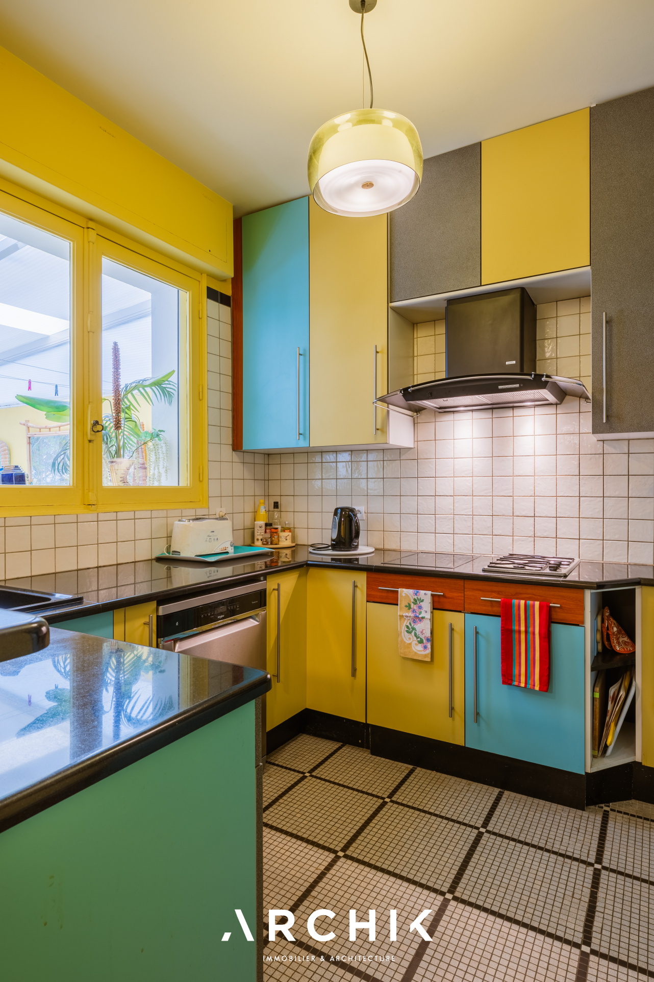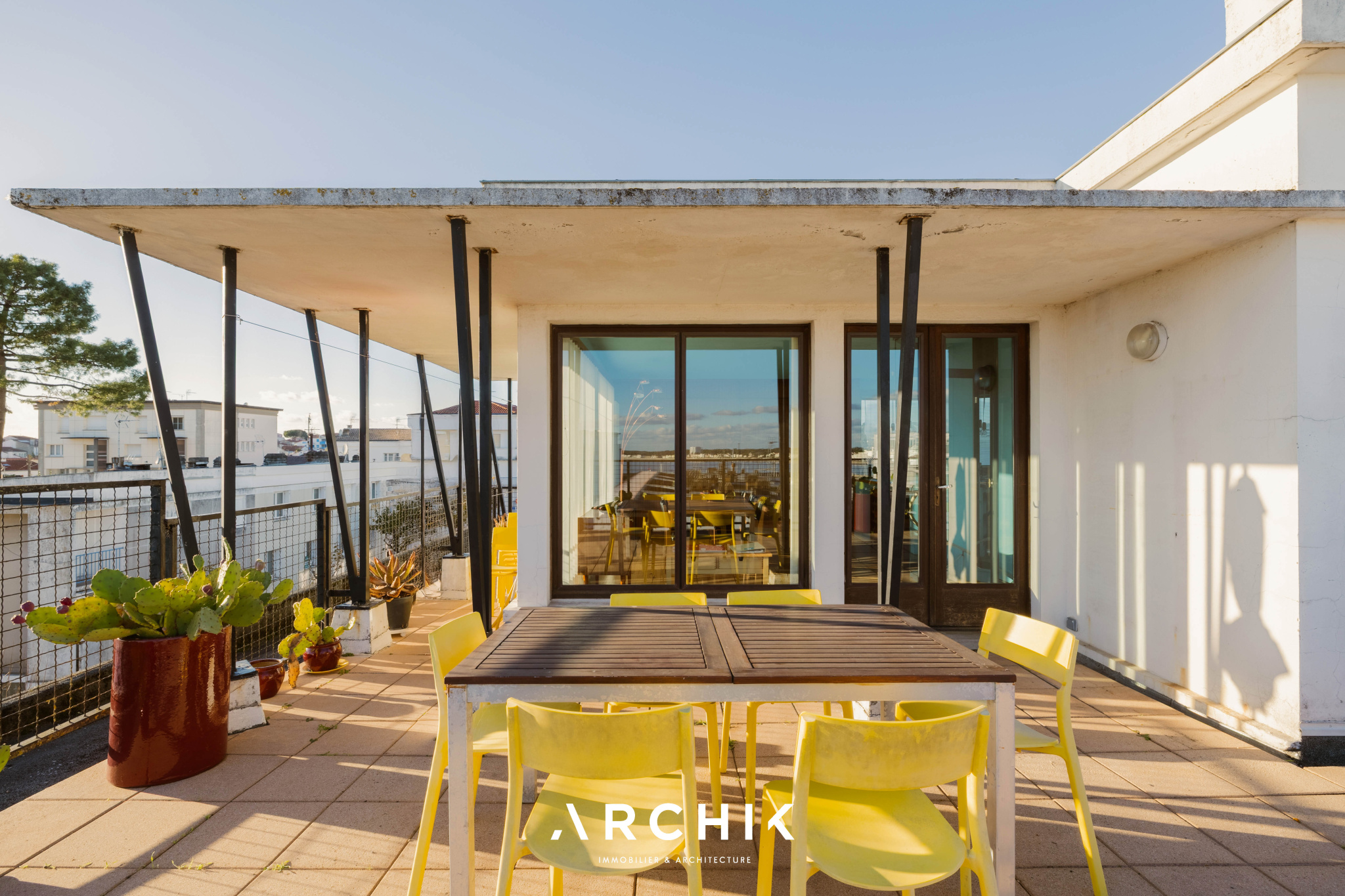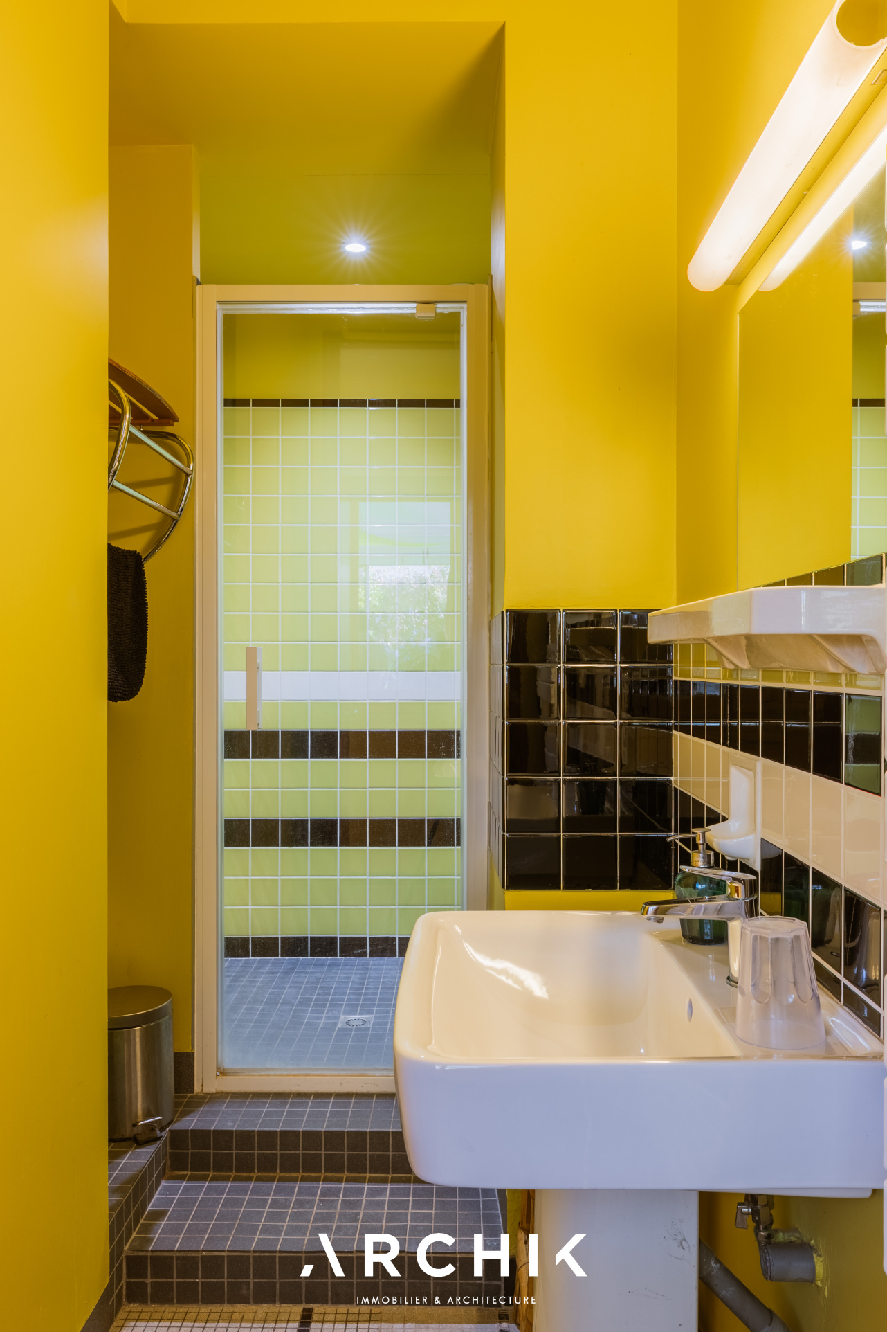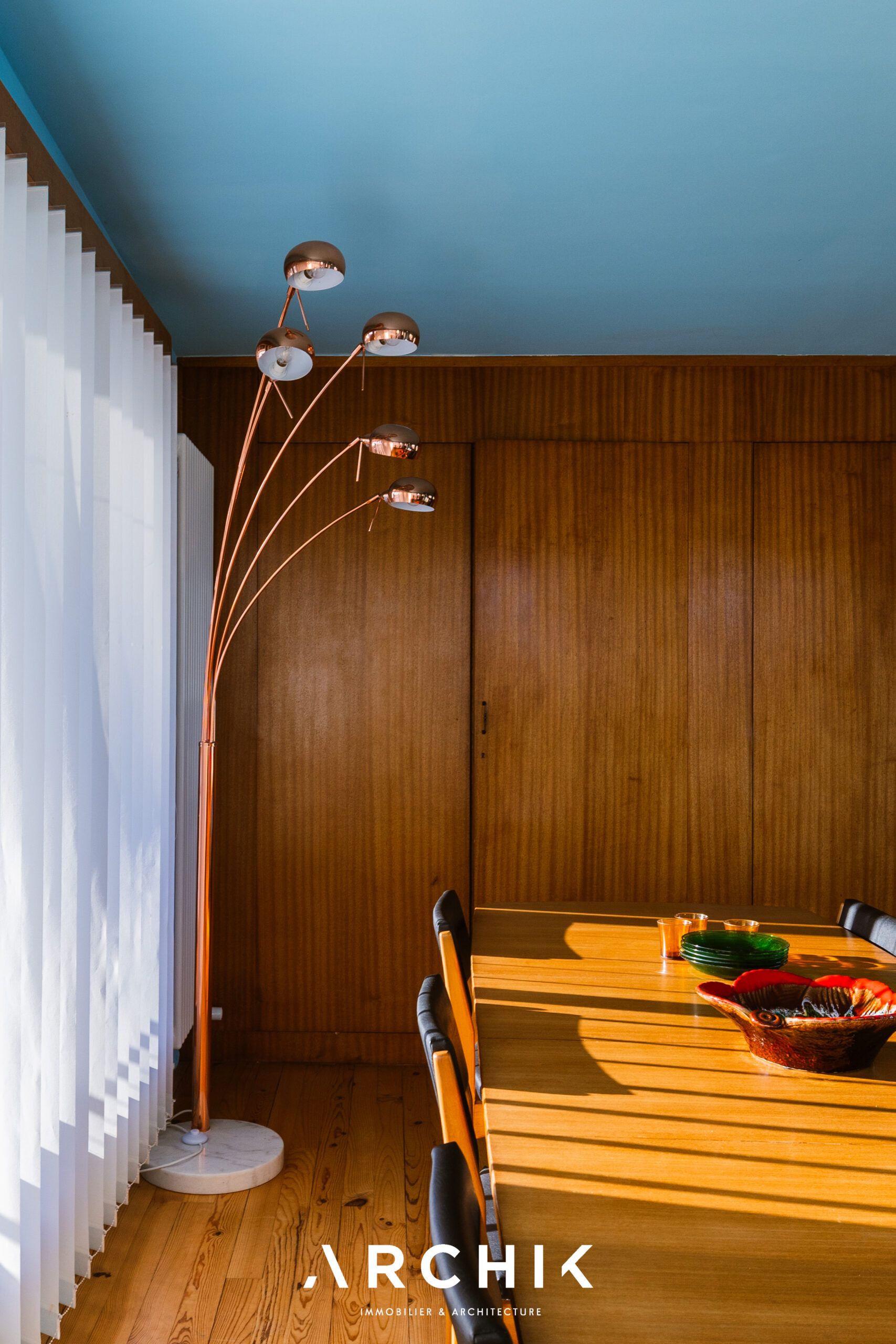 + DE DETAILS CIEL ROYAN | Royan Centre 1 100 000 € Type de bien Maison Surface 256 m2 Chambre(s) 7 Extérieur Terrasse, balcon Courant Moderne Architecture À vivre Réference RO260 ON AIMEL'esprit vintage revisitéLes couleurs qui réhaussent les formesLa vue panoramiqueNOUS CONTACTER Architecture moderne, cette grande maison de ville dessinée en 1957 par Roger Mialet, dispose de 256 m2 habitables répartis sur trois niveaux couronnés par un toit terrasse qui surplombe la baie de Royan, la ville et l'estuaire. Édifiée sur une parcelle de 227 m2, elle est située à 250 m de la plage de Foncillon et du port.L'architecte orchestre ici une quête de légèreté visible dans la graduation des structures : des pilotis solides de la base, on monte vers des poteaux plus fins au premier étage, s'effaçant totalement au troisième niveau. Ce dernier est couronné par une ligne de brise-soleil, signature esthétique du bâtiment. L'ensemble est complété par l'attique ajouté postérieurement, offrant un pavillon sur toit-terrasse - un espace ouvert sur l'extérieur et scandé par le rythme graphique des poteaux en V. Le détail est poussé jusqu'aux garde-corps, qui évoluent du béton structurant à un élégant cadre métallique grillagé, confirmant l'intention de légèreté et de finesse.Rénové en 2017 par l'agence FMAU, cet immeuble d'angle traversant offre une modularité exceptionnelle. L'organisation intérieure a été totalement repensée pour former un plan complexe et ingénieux imbriquant deux logements et une galerie. L'ensemble est conçu pour fonctionner comme une grande maison familiale ou comme deux appartements totalement indépendants et un espace polyvalent. Chacun bénéficie de vastes terrasses dont les orientations préservent toute intimité.L'améngamenet intérieur de l'ensemble est voulu au plus près du style 50 en conservant les éléments d'origine encore présents. Une attention toute particulière a été apportée aux teintes avec la conception d'une large gamme de couleurs balnéaires aux nuances subtiles, donnant à chaque pièce une identité propre.Un lieu inspirant la fantaisie et la joie de vivre du style 50 royannais, pour y vivre toute l'année, en villégiature et ouvert pour de nouveaux projets. Tel un petit hôtel particulier, une belle entrée principale éclairée par une paroi de pavés de verre conduit à l’escalier en comblanchien qui dessert les niveaux hauts de réception et de nuit, le niveau bas étant constitué par des pièces techniques, de stockage et le garage. D’emblée, le ton est donné par la couleur bleue vive des murs.Au premier niveau, une galerie en L de 55 m² multiplie les ouvertures sur les balcons et est articulée autour d’une cheminée de brique qui s’étire sur un beau comptoir. Un pilier mis en exergue rappelle la structure du bâtiment. Une nouvelle nuance de bleu habille les murs qui se terminent au plafond par des arrondis soulignant les angles, tandis que le sol a volontairement conservé les stigmates de la redistribution : parquet blond et petits carreaux complétés par un revêtement rappelant le granito. La seconde partie de l’étage se compose d’une unité d’habitation comprenant un séjour avec cuisine ouverte aux couleurs éclatantes, deux chambres, une salle d’eau, une véranda et une vaste terrasse. Les deux niveaux supérieurs forment un duplex familial : cinq chambres déclinent chacune la gamme des couleurs joyeuses, complétées par deux salles d’eau et une salle de bain aux faïences lumineuses. Certaines chambres ont conservé leur cabinet de toilette d’origine parfaitement intégré dans les nombreux agencements conservés.Accessible par un escalier à vis qui monte au ciel, le dernier étage est traité comme le pont supérieur d’un paquebot avec ses stratifiés et ses arrondis. Une pièce de vie avec cuisine et un petit salon occupent un espace où intérieur et extérieur se confondent à nouveau grâce à son roof top périphérique dominant la ville : Église Notre Dame, plage de la Grande Conche, Port, Palais des Congrès, estuaire et océan.Roger MialetArchitecte français né en 1906, Roger Mialet étudie à l’École des Beaux‑Arts de Paris, dans les ateliers de grands architectes comme Louis Hippolyte Boileau, Roger Henri Expert et Eugène Beaudouin. Au cours de sa carrière, Mialet exerce comme architecte à Paris s’engage dans des projets d’habitat et d’urbanisme, mais il est surtout connu pour ses travaux lors de la reconstruction après-guerreL’une de ses réalisations majeures concerne la ville de Royan, marquée après la Seconde Guerre Mondiale par d’importants travaux de reconstruction. Il y supervise notamment : ’Îlot 106, un ensemble d’immeubles collectifs combinant logements et commerces, conçu en 1956, livré en 1961, l’Îlot 85, un autre programme d’habitat collectif datant de la même période, ainsi que des logements particuliers contribuant ainsi à la reconfiguration urbaine de Royan.Ces projets témoignent de son engagement dans l’architecture d’après-guerre, mêlant reconstruction urbaine, logements collectifs et mixité d’usage. Architecte de la reconstruction, Mialet a redessiné Royan avec une architecture sobre et fonctionnelle. LE QUARTIER Royan Centre Le centre-ville de Royan est le cœur de la ville : il a l’avantage de se trouver à deux pas de la plage de la Grande Conche, ce qui permet de profiter en une journée des commerces, de la plage et des restaurants, à pied. VOTRE CONTACT Christophe GIRALDÉ 06 84 81 44 54 christophe.giralde@archik.fr DIAGNOSTICPARTAGERDétail du diagnostic Diagnostic de performance énergétique 284 KWh/m².an 62* kg CO2/m².an Logement économeABCDEFGLogement énergivore DPE vierge Consommations non exploitables Non soumis au diagnostic * Dont émissions de gaz à effet de serreFaible émission de GESABCDEFGForte émission de GES 62 KgéqCO2 / m².an GES vierge Consommat