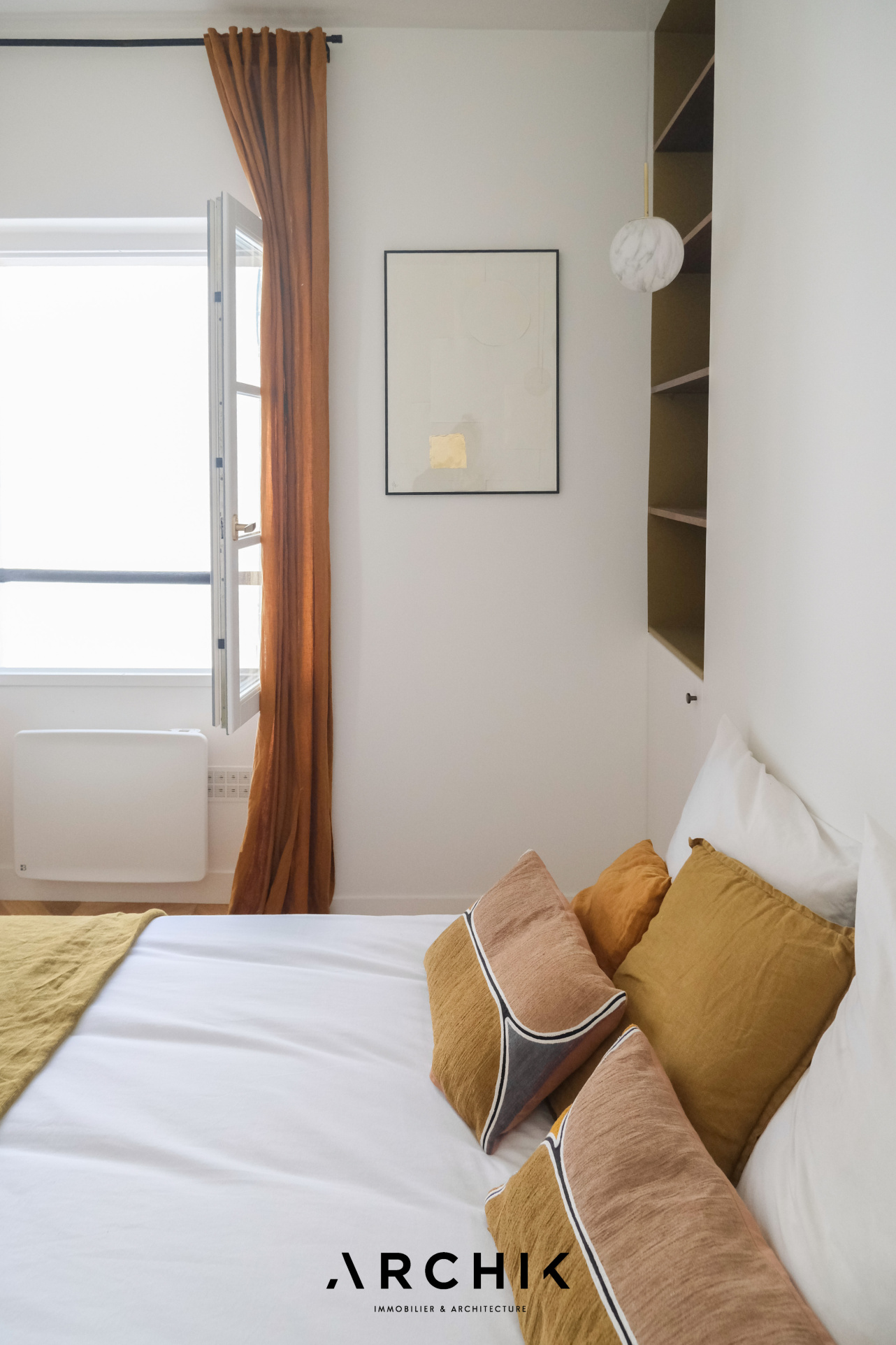 Conçu aussi bien pour le quotidien que pour des instants plus intimistes, cet espace offre une ambiance à la fois conviviale et élégante. La chambre, au calme, dispose d'un dressing sur mesure et prolonge cette impression de confort feutré. La salle de douche, aux lignes épurées, se distingue par la finesse de ses finitions.