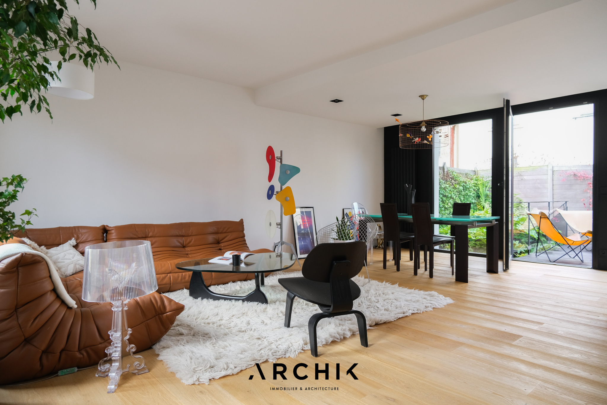 Architecture des années 20, cette jolie maison de 139 m2 rénovée en 2021 par l'architecte Antonin Ziegler et érigée sur un terrain de 169 m2 abrite un intérieur tout en modernité et en lumière aux chaleureuses notes tropicales au sein de la ville d'Asnières.