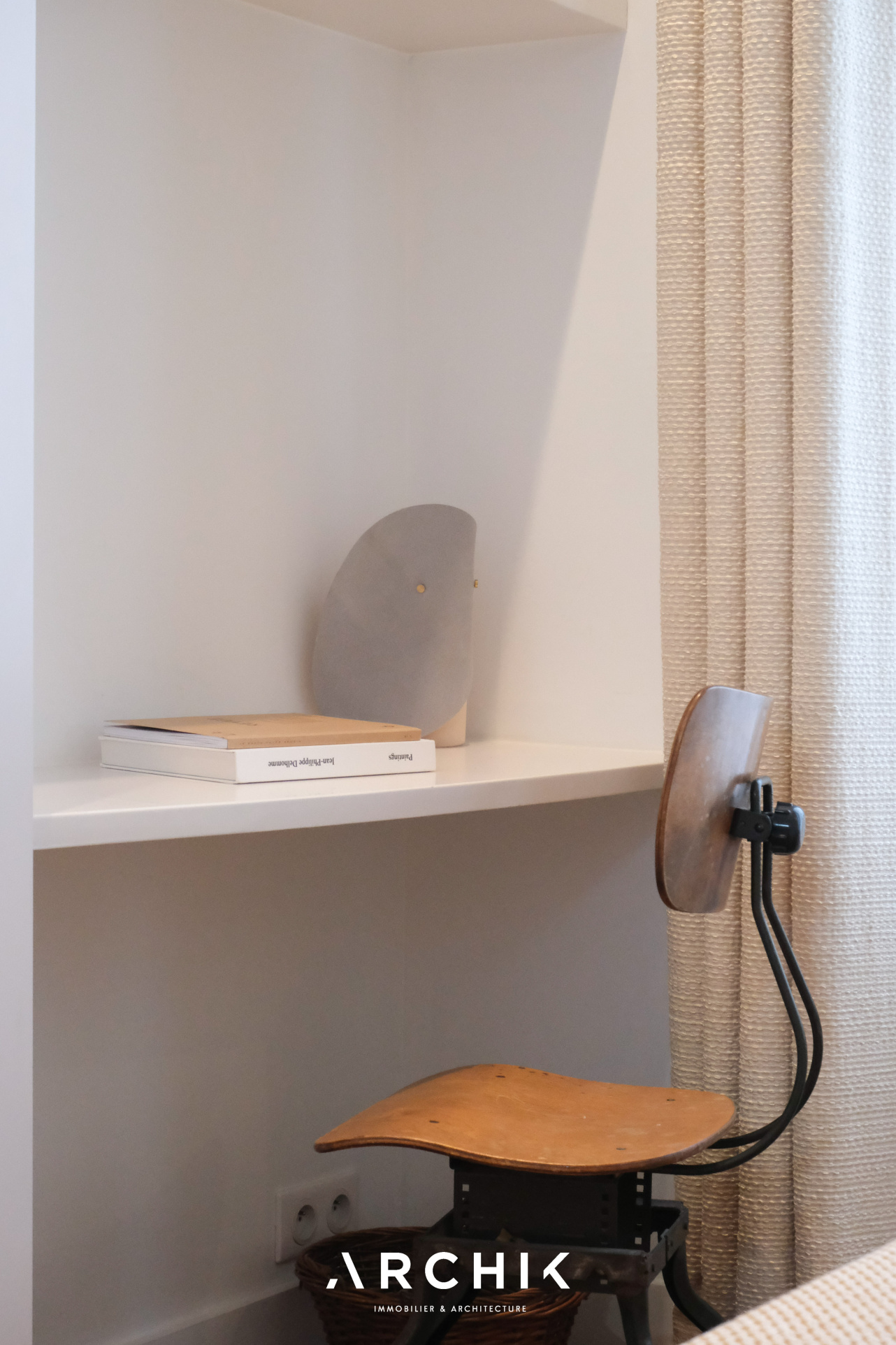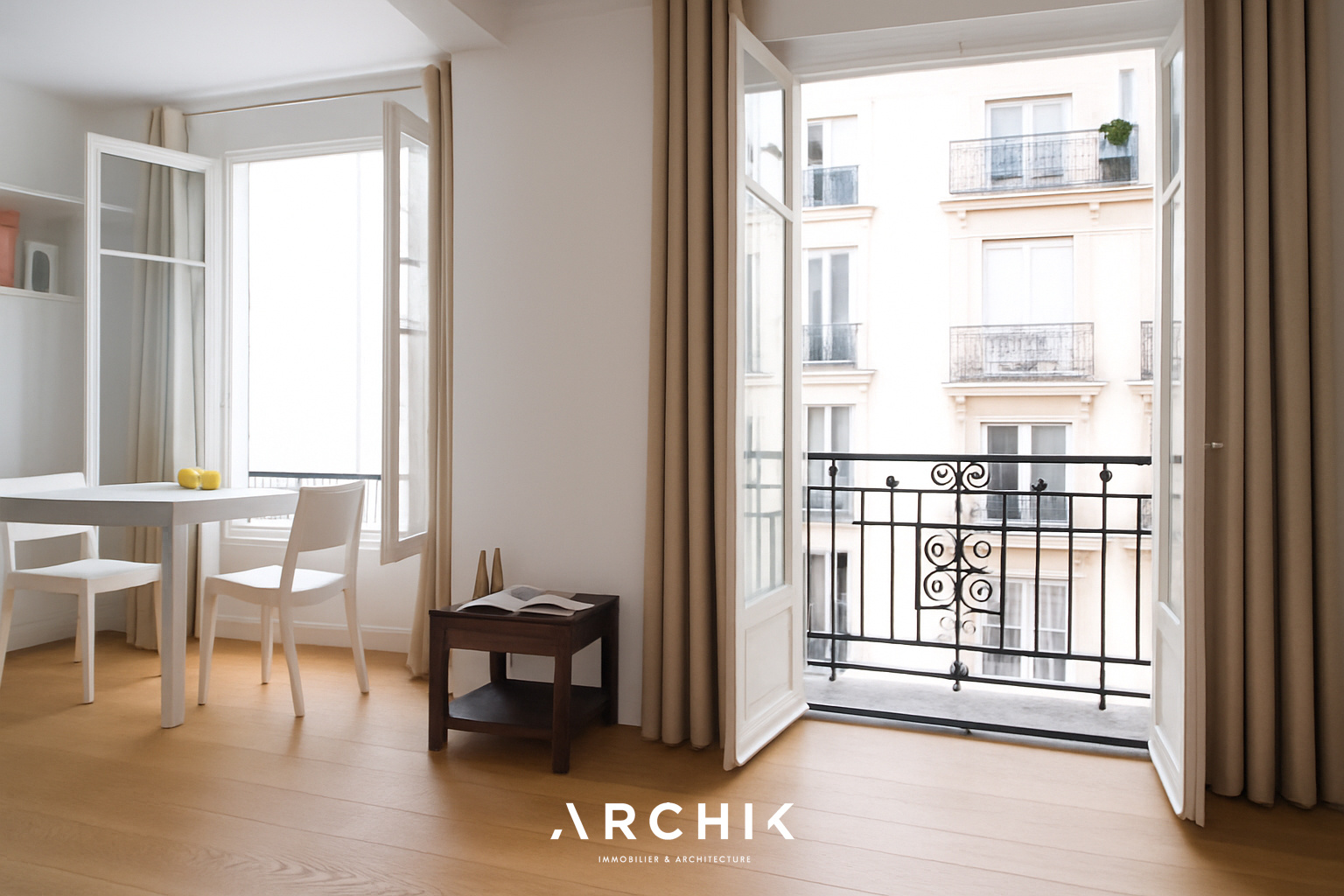 + DE DETAILS CRISTAL PARIS 6ÈME | Saint sulpice 760 000 € Type de bien Appartement Surface 41 m2 Chambre(s) 1 Extérieur Balcon Courant Haussmannien Architecture À vivre Réference AP430 ON AIMELe vitrail, élément décoratif uniqueLa lumière de l'Ouest La vue sur l'église Saint-SulpiceNOUS CONTACTER Architecture du XIXe siècle, ce bel immeuble à la façade en pierre de taille dévoile en son 5e étage sans ascenseur, un appartement de 41 m2 lumineux et idéalement situé au coeur du quartier Saint-Sulpice, à proximité du jardin de Luxembourg.Repensé par un architecte, l'appartement a été optimisé par la création de nombreux rangements sur mesure. L'entrée s'ouvre sur le séjour décloisonné, accueillant une cuisine aménagée ainsi que de nombreux rangements. Cet espace de vie baigné par la lumière de l'Ouest se prolonge sur un balcon offrant une vue directe sur l'église Saint-Sulpice. La pièce est ornée d'un sublime vitrail d'origine, élément signature du lieu. Le couloir, qui en profite également mène à la chambre, sobre et chaleureuse, qui dispose de rangements intégrés ainsi que d'un bureau parfaitement fondu dans le décor.Une salle d'eau parée de petites mosaïques complète le bien. Un refuge perché, plongeant sur Saint-Sulpice. VOTRE CONTACT Saïda VISSER 06 24 57 10 56 saida.visser@archik.fr DIAGNOSTICTRANSPORTSLIGNE 10 ODEON I LIGNE 4 SAINT-SULPICEPARTAGERDétail du diagnostic Diagnostic de performance énergétique 324 KWh/m².an 10* kg CO2/m².an Logement économeABCDEFGLogement énergivore DPE vierge Consommations non exploitables Non soumis au diagnostic * Dont émissions de gaz à effet de serreFaible émission de GESABCDEFGForte émission de GES 10 KgéqCO2 / m².an GES vierge Consommations non exploitables Montant estimé des dépenses annuelles d'énergie pour un usage standard : entre 1050 et 1450 € TTC/an . Date de référence des prix de l'énergie pour établie cette estimation : 01/01/2000 Les informations sur les risques auxquels ce bien est exposé sont disponibles sur le site Géorisques : www.georisques.gouv.fr Vous souhaitez avoir plus d'informations ? Remplissez le formulaire ou contactez directement la personne en charge de ce bien. NOM* PRÉNOM* EMAIL* TÉLÉPHONE* MESSAGE Je souhaite recevoir la Newsletter ARCHIK VOTRE CONTACT Saïda VISSER 06 24 57 10 56 saida.visser@archik.fr Découvrez aussi ...VENDRENos biens en venteNOS BIENS VENDUS