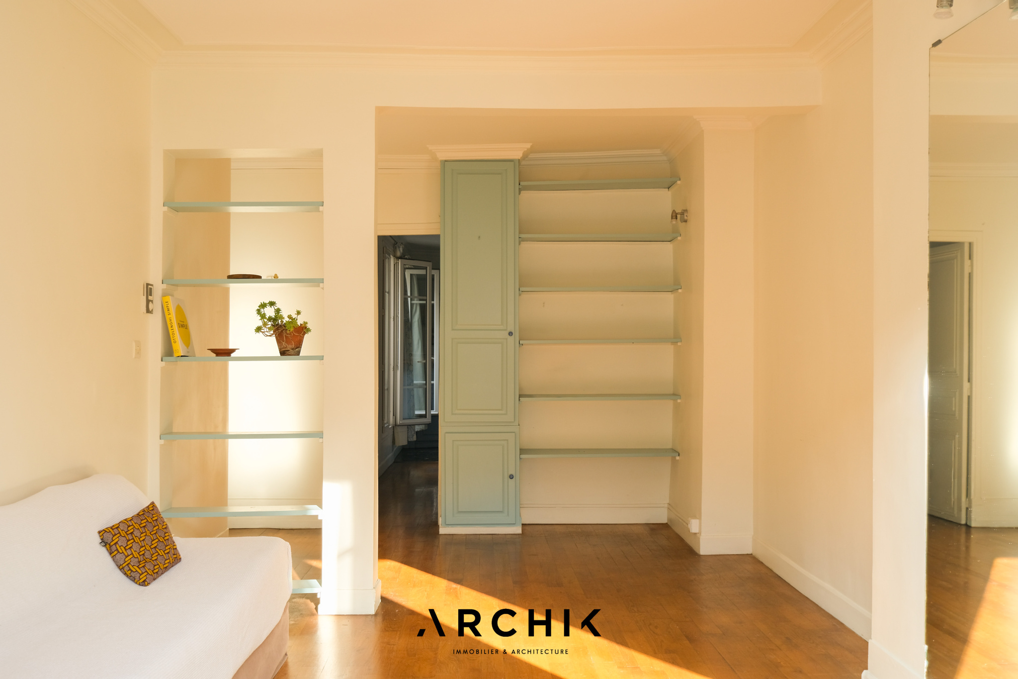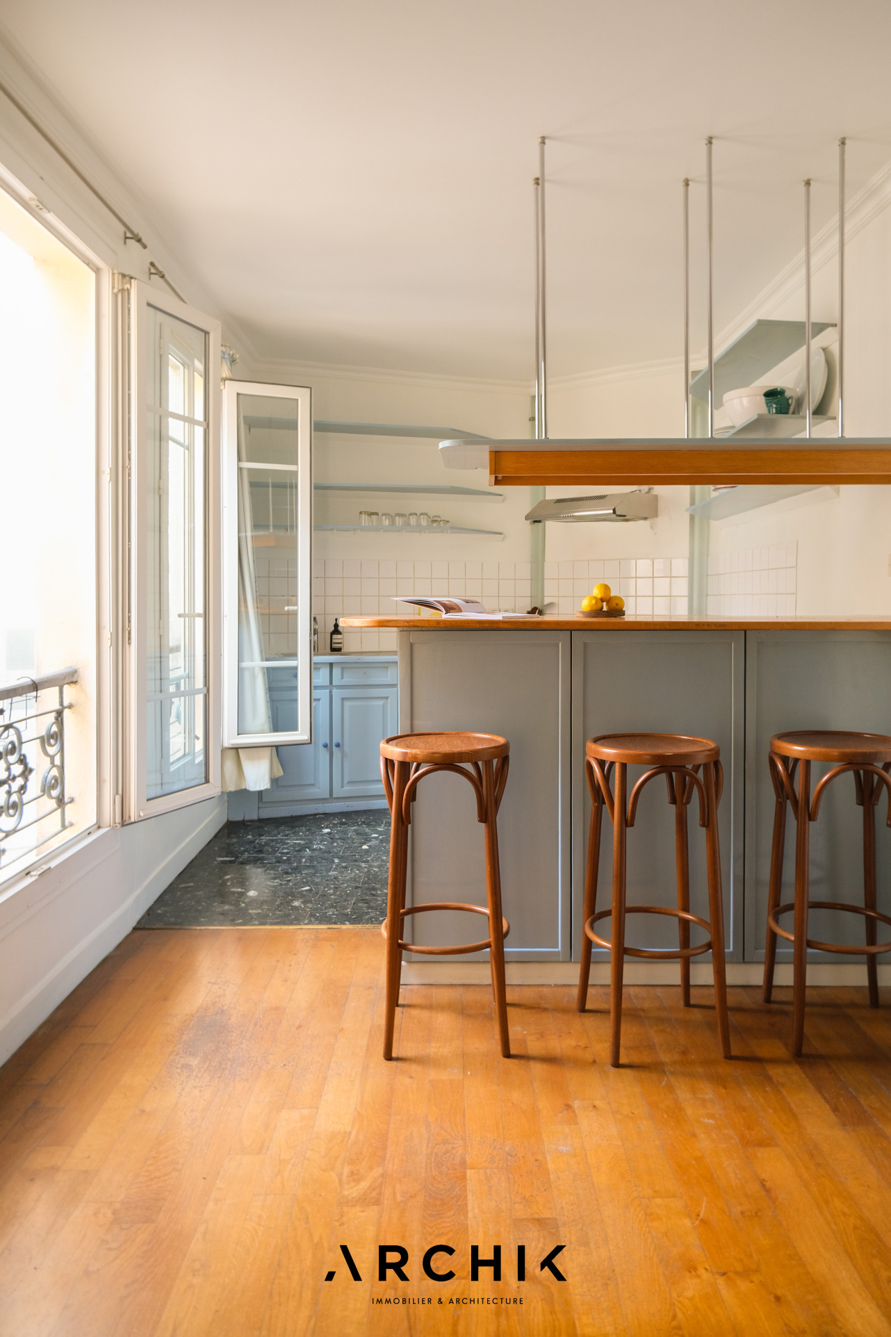 + DE DETAILS CYAN PARIS 18ÈME | Village Ramey 425 000 € Type de bien Appartement Surface 43 m2 Extérieur Balcon Courant Art Nouveau Architecture À rénover Montant des travaux 20 000 - 40 000 € Réference AP422 ON AIMELa modularité de son espace Son balcon aux vues dégagées Son emplacementNOUS CONTACTER Architecture du XIXème cet immeuble à la belle façade révèle en son 5ème étage sans ascenseur un appartement traversant de 43 m2 Carrez traversant lumineux et modulable en plein coeur du typique et ravissant village Ramey niché aux pieds de la Butte Montmartre.À rafraîchir, cet appartement aux belles proportions constitue une toile de fond pleine de charme, laissant place à plusieurs possibilités d'aménagement : le conserver dans sa configuration actuelle ou repenser l'espace pour y créer une chambre fermée. Dès l'entrée, le regard est happé par l'atmosphère douce et la luminosité de l'étage élevé. À l'Ouest, la belle pièce de vie parée de parquet en chêne massif se dévoile au travers d'une bibliothèque traversante et se prolonge sur un balcon à la vue parisienne. A l'Est, se découvre une pièce modulable baignée de lumière grâce à ses deux fenêtres, aujourd'hui cuisine avec son magnifique Terrazzo vert profond, qui pourrait se voir déplacée pour créer une chambre complètement séparée. La salle de bain reprend les mêmes codes que la cuisine actuelle avec ses meubles bleus et sa faïence immaculée. Une cave complète ce bien. ARCHIK met à votre disposition ses équipes d'architecte pour vous aider à modeler ce bien singulier et l'adapter à vos besoins. Un appartement modulable et aéré au sein de l'authentique village Ramey. LE QUARTIER Village Ramey Situé entre la Butte Montmartre et le quartier populaire de Barbès, le Village Ramey devient un secteur de plus en plus convoité du 18eme arrondissement. VOTRE CONTACT Marine COCAIGN 06 77 21 92 83 marine.cocaign@archik.fr DIAGNOSTICTRANSPORTSM2 ABESSES I M4 CHATEAU ROUGE PARTAGERDétail du diagnostic Diagnostic de performance énergétique 239 KWh/m².an 7* kg CO2/m².an Logement économeABCDEFGLogement énergivore DPE vierge Consommations non exploitables Non soumis au diagnostic * Dont émissions de gaz à effet de serreFaible émission de GESABCDEFGForte émission de GES 7 KgéqCO2 / m².an GES vierge Consommations non exploitables Montant estimé des dépenses annuelles d'énergie pour un usage standard : entre 670 et 940 € TTC/an . Date de référence des prix de l'énergie pour établie cette estimation : 01/01/2024 Les informations sur les risques auxquels ce bien est exposé sont disponibles sur le site Géorisques : www.georisques.gouv.fr Vous souhaitez avoir plus d'informations ? Remplissez le formulaire ou contactez directement la personne en charge de ce bien. NOM* PRÉNOM* EMAIL* TÉLÉPHONE* MESSAGE Je souhaite recevoir la Newsletter ARCHIK VOTRE CONTACT Marine COCAIGN 06 77 21 92 83 marine.cocaign@archik.fr Découvrez aussi ...VENDRENos biens en venteNOS BIENS VENDUS