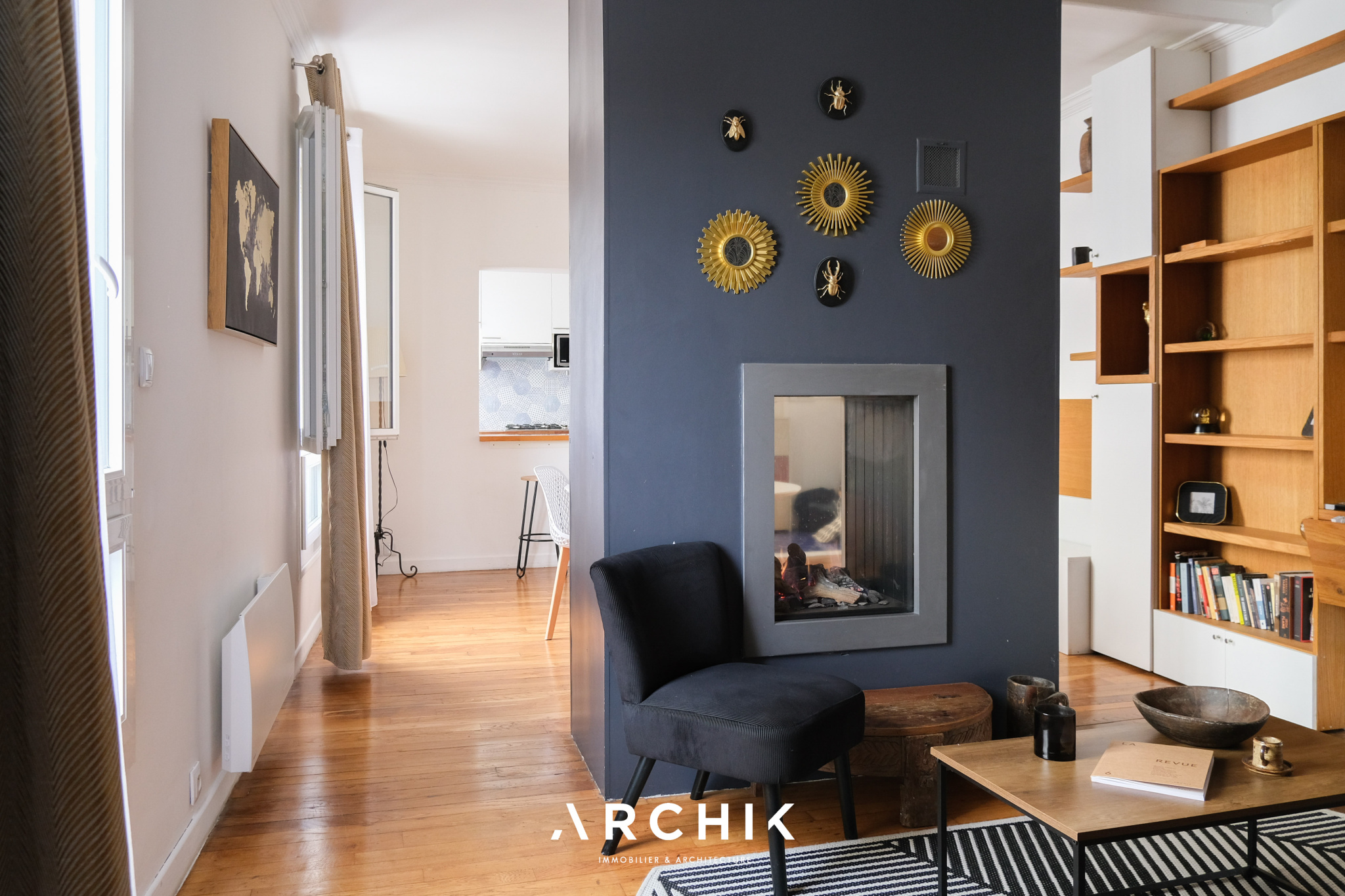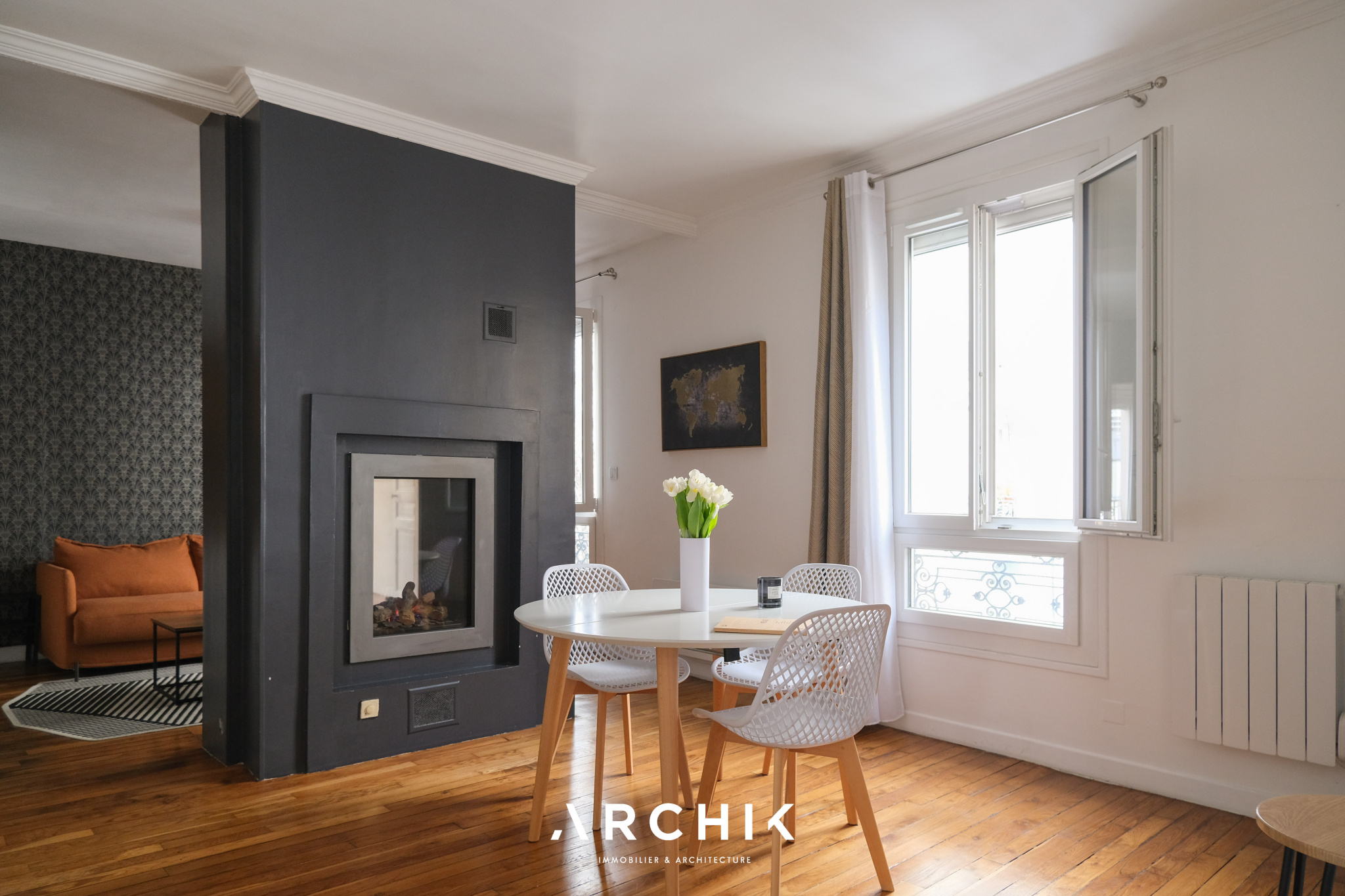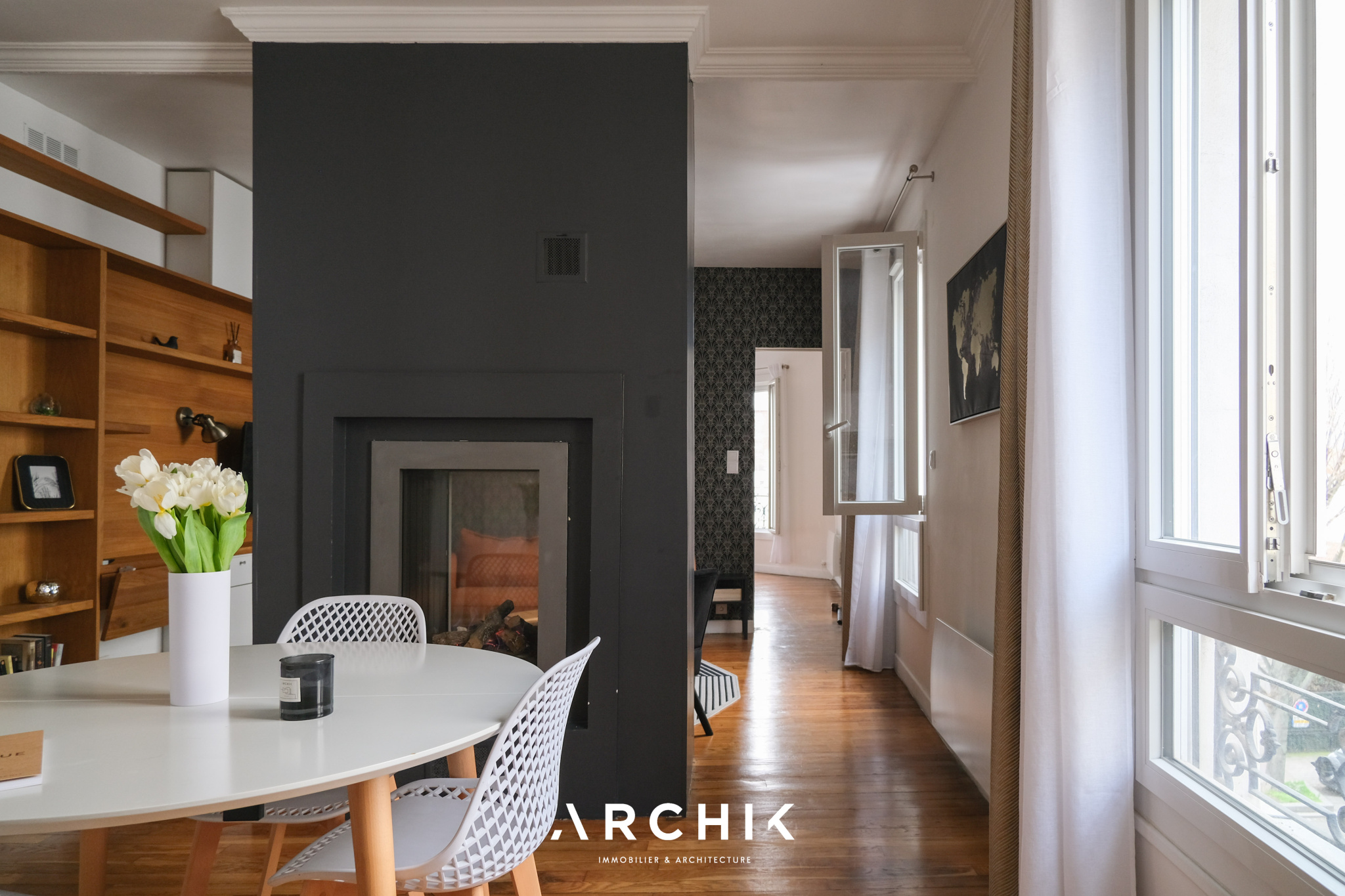Architecture fin XIXe, cet immeuble de caractère accueille en son 2e étage un appartement de 53 m2 dans le quartier Stalingrad, au Pré-Saint-Gervais.