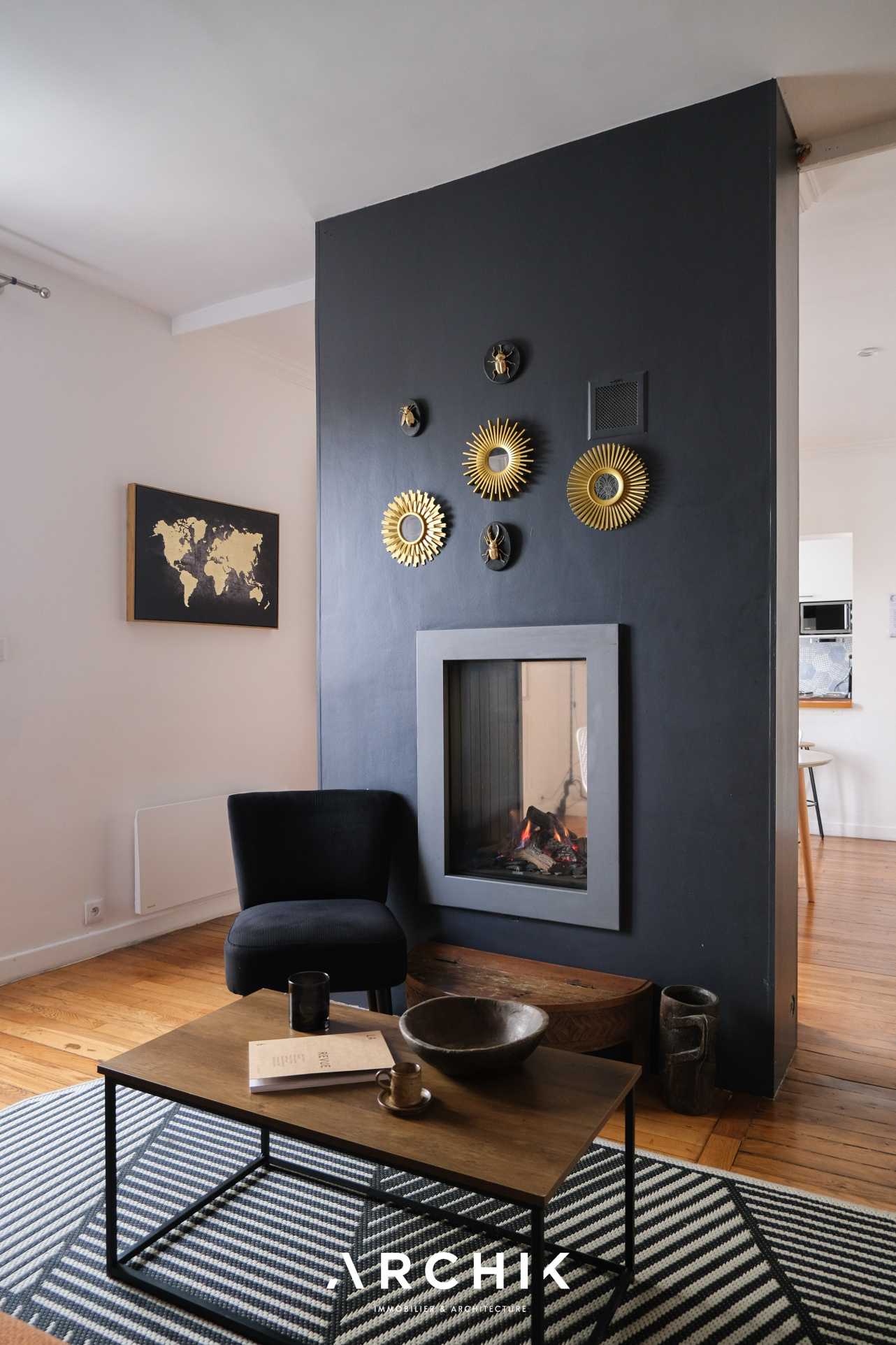 Rénové en 2020, l'appartement profite d'une atmosphère douce alliant authenticité et douceur de vivre grâce à son parquet ancien et la présence du bois en fil conducteur.