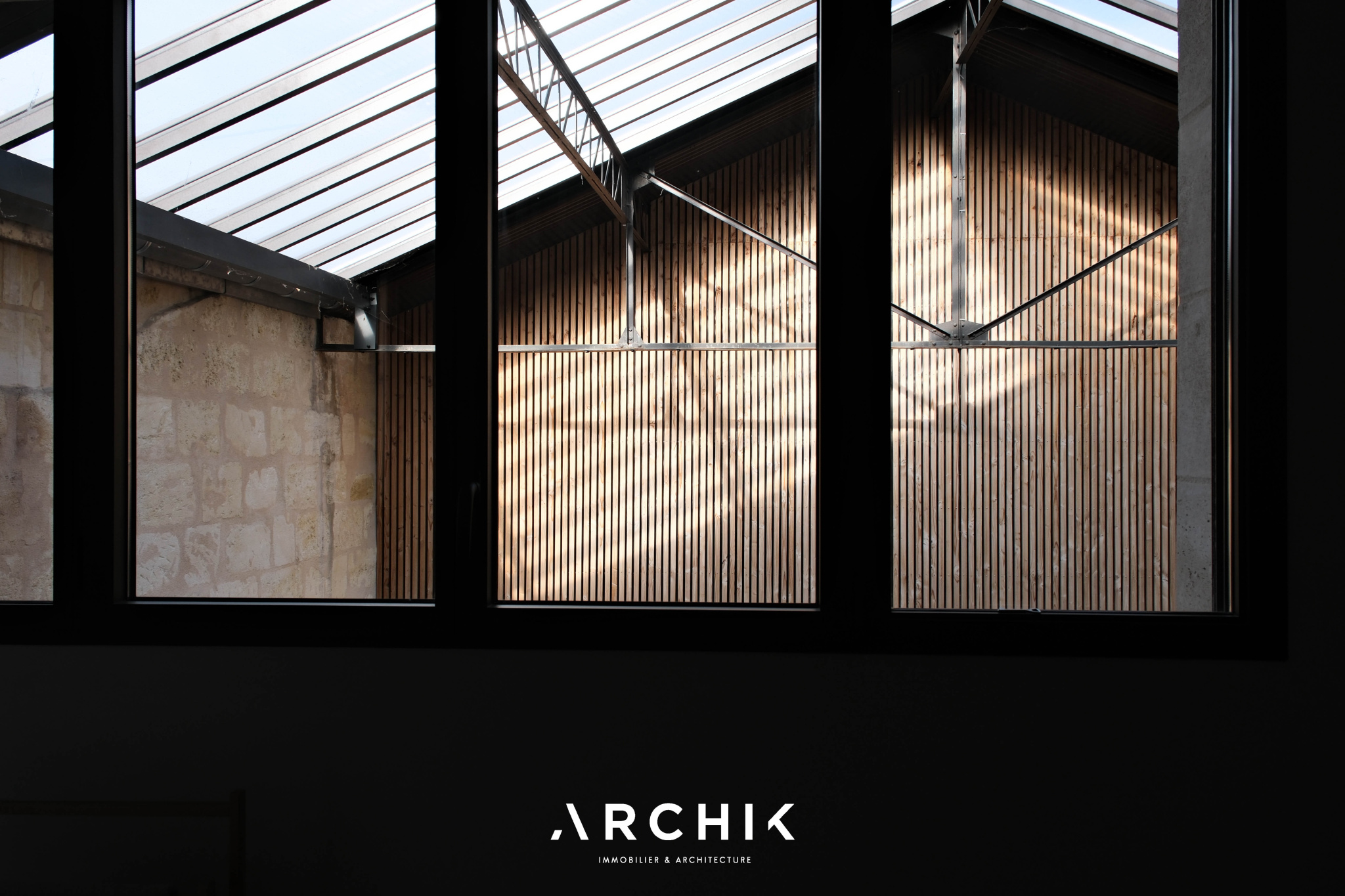 Architecture du XIXe cette ancienne usine convertie en maison de type loft de 270 m2 s'inscrit sur un terrain de 375 m2 au coeur du quartier de la Bastide, sur la rive droite de Bordeaux.