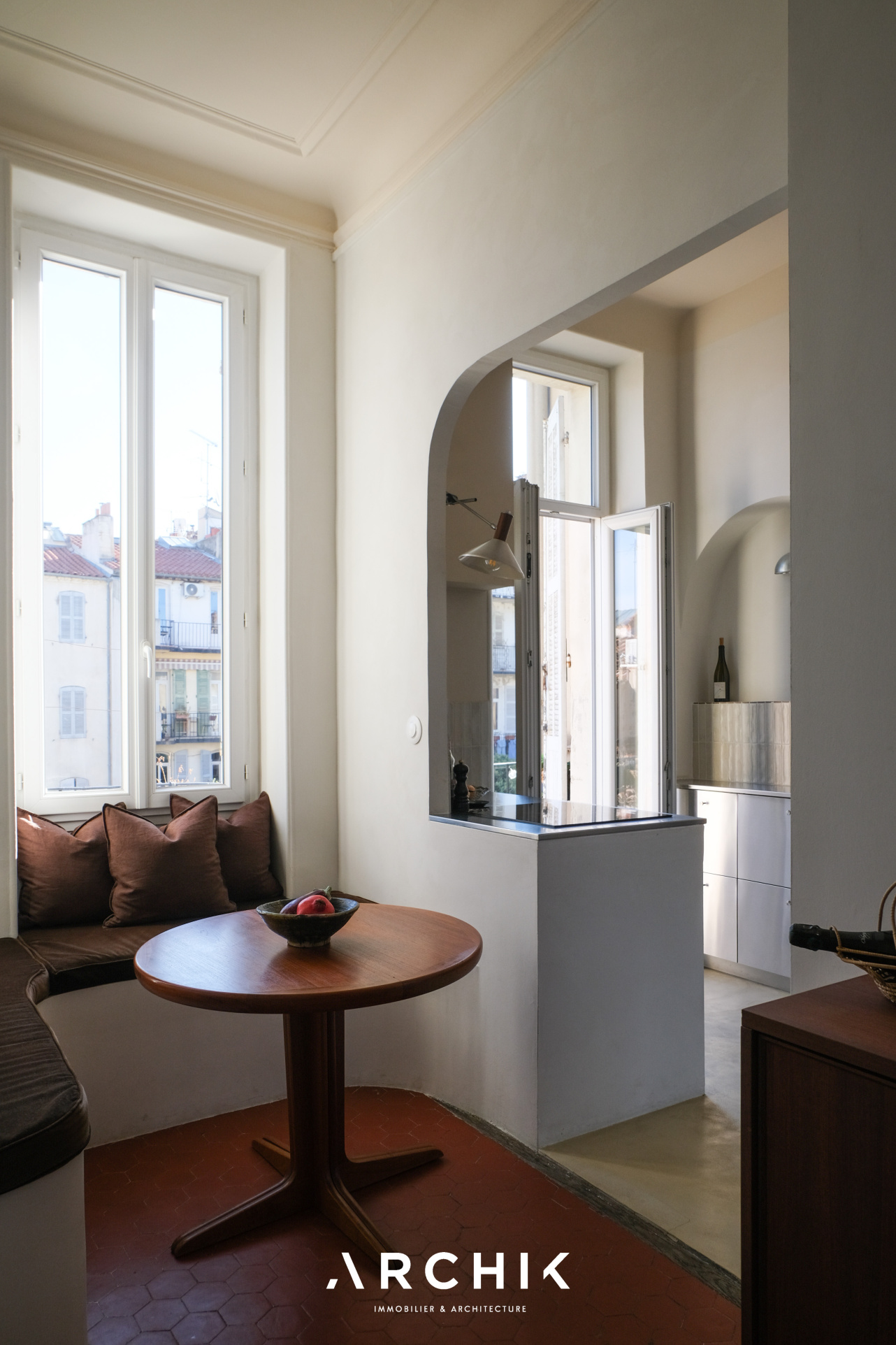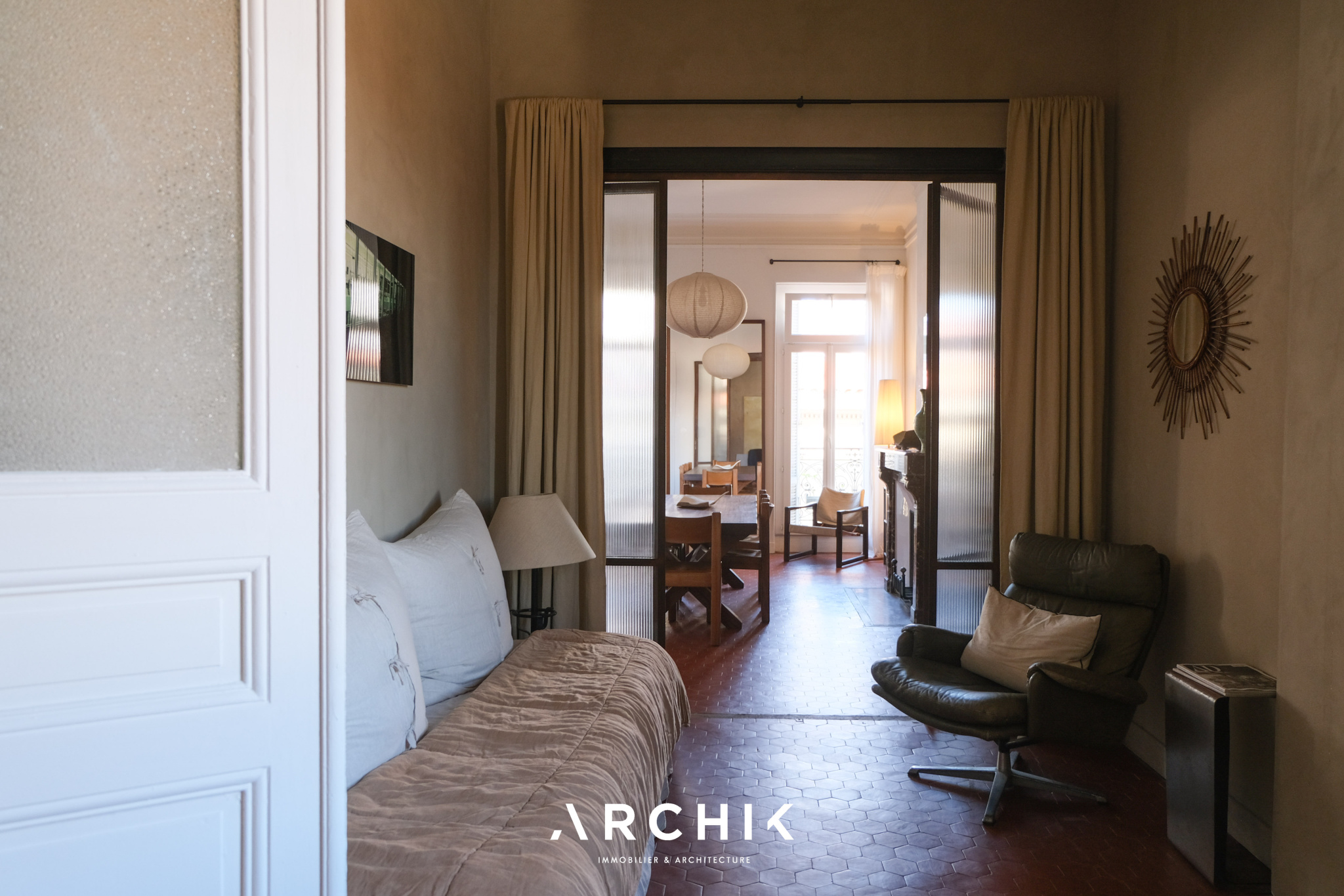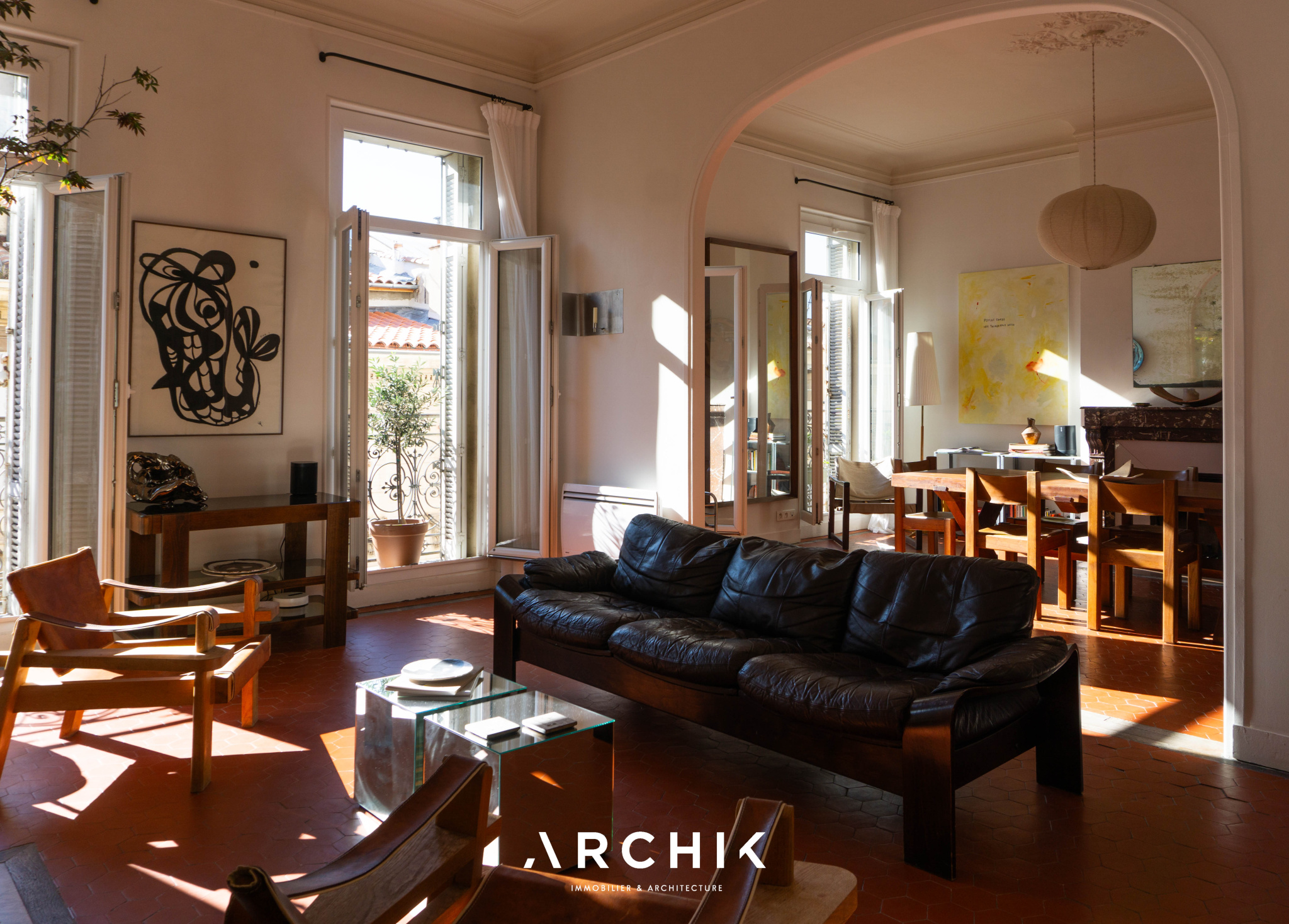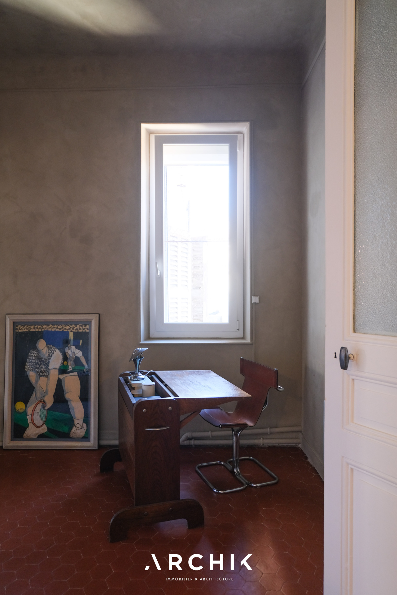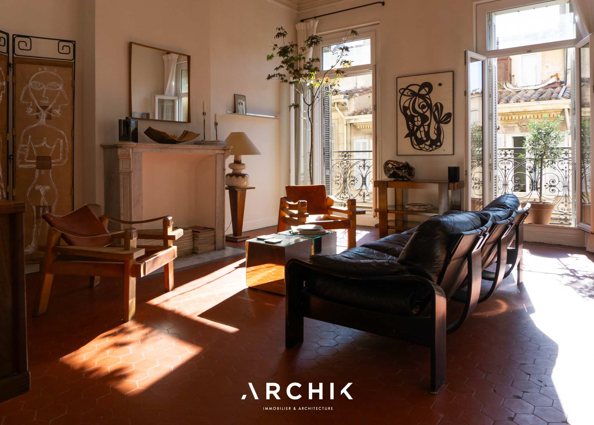 + DE DETAILS JEMA MARSEILLE 1ER | Thiers 550 000 € Type de bien Appartement Surface 116 m2 Chambre(s) 2 Extérieur Balcon Courant Art Nouveau Architecture À vivre Réference OP1780 ON AIMELa rénovation sans faute Le travail des matières Le balcon filant au calme sur courNOUS CONTACTER Architecture des années 1900, cet immeuble marseillais accueille en son troisième étage sans ascenseur un appartement de 116 m2 à la facture parfaite, situé dans une rue calme derrière le Conservatoire, dominant les toits.Repensé par le cabinet d'architecture d'intérieur Uname Studio et sublimé par la décoration de Jema Collective, le lieu séduit par l'alliance subtile des matériaux, l'équilibre des volumes et une palette chromatique inspirée des nuances autour de la terre d'ombre. À l'Ouest, l'appartement s'ouvre sur un lumineux et spacieux double séjour. La salle à manger, pensée pour accueillir de grandes tablées, communique avec le salon au travers d'une élégante arche. Les éléments d'époque, moulures et cheminées en marbre dialoguent avec un parti pris contemporain où dominent bois, inox et mobilier chiné avec soin. Les tomettes d'origine parcourent tout l'appartement, conférant une chaleur intemporelle à cet écrin singulier. La cuisine dinatoire en inox, réhaussée d'une crédence beige en Zelliges, s'ouvre sur un balcon filant ensoleillé. Une verrière striée relie l'une des chambres aux pièces de vie, permettant de moduler les espaces selon les besoins. La seconde chambre, confortable, profite de deux grandes fenêtres. Une salle de bain en Zelliges clairs ainsi qu'une salle d'eau en Zelliges verts viennent parfaire le confort du lieu. Une chambre de service aménagée et décorée au goût de l'appartement ainsi qu'une cave complètent l'ensemble. Singulier & précis. LE QUARTIER Thiers Artistique et populaire, ce quartier est situé au bas du cours Julien. VOTRE CONTACT Manon VANDENHOECK 06 70 21 52 38 manon.vandenhoeck@archik.fr DIAGNOSTICTRANSPORTSM2 NOAILLES I BUS 81PARTAGERDétail du diagnostic Diagnostic de performance énergétique 191 KWh/m².an 6* kg CO2/m².an Logement économeABCDEFGLogement énergivore DPE vierge Consommations non exploitables Non soumis au diagnostic * Dont émissions de gaz à effet de serreFaible émission de GESABCDEFGForte émission de GES 6 KgéqCO2 / m².an GES vierge Consommations non exploitables Montant estimé des dépenses annuelles d'énergie pour un usage standard : entre 1700 et 2340 € TTC/an . Date de référence des prix de l'énergie pour établie cette estimation : 01/01/2025 Les informations sur les risques auxquels ce bien est exposé sont disponibles sur le site Géorisques : www.georisques.gouv.fr Vous souhaitez avoir plus d'informations ? Remplissez le formulaire ou contactez directement la personne en charge de ce bien. NOM* PRÉNOM* EMAIL* TÉLÉPHONE* MESSAGE Je souhaite recevoir la Newsletter ARCHIK VOTRE CONTACT Manon VANDENHOECK 06 70 21 52 38 manon.vandenhoeck@archik.fr Découvrez aussi ...VENDRENos biens en venteNOS BIENS VENDUS