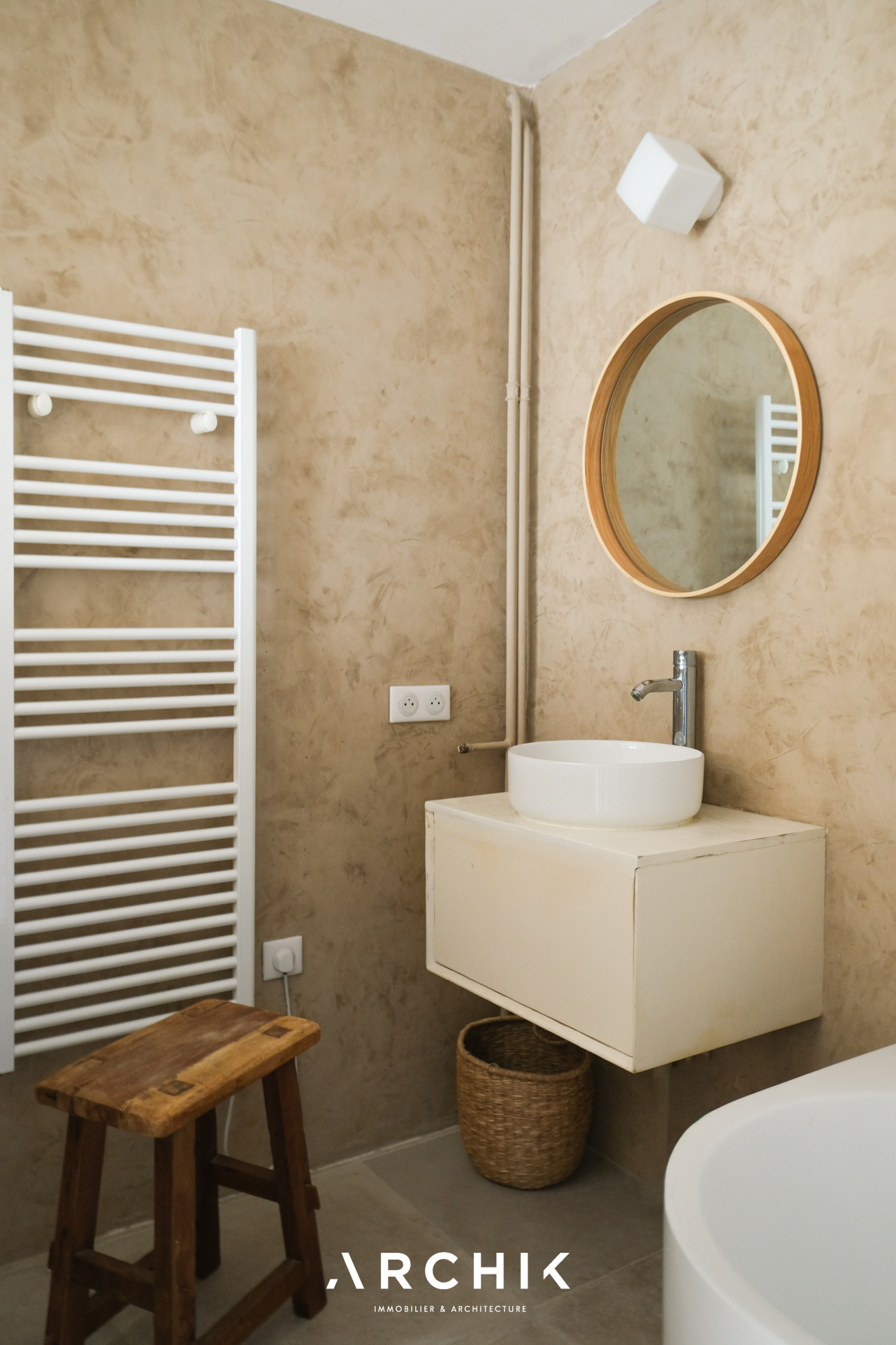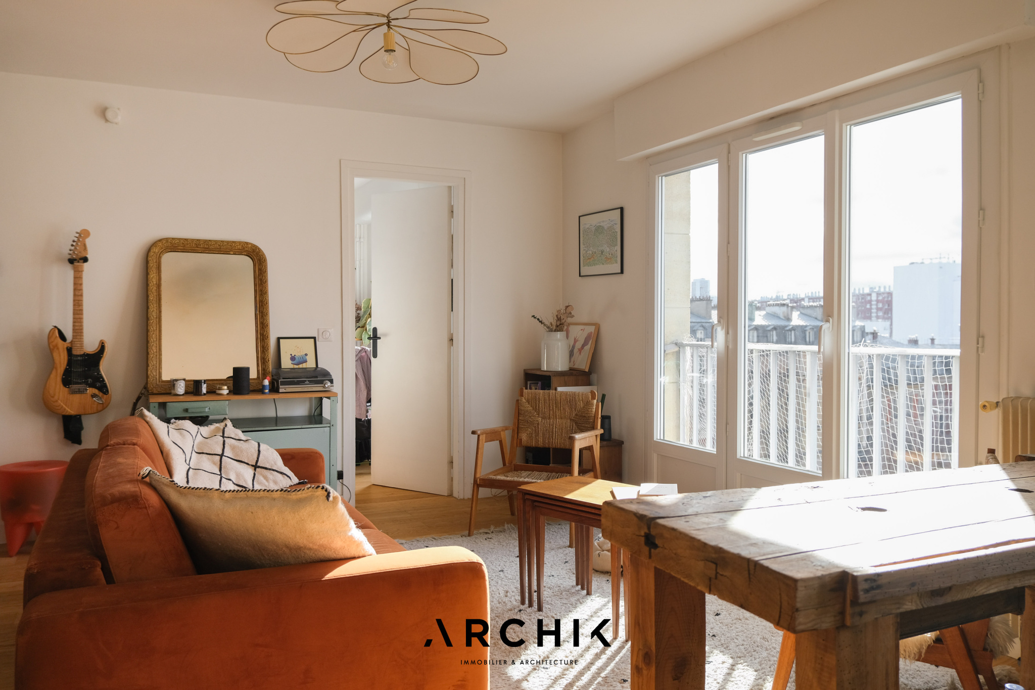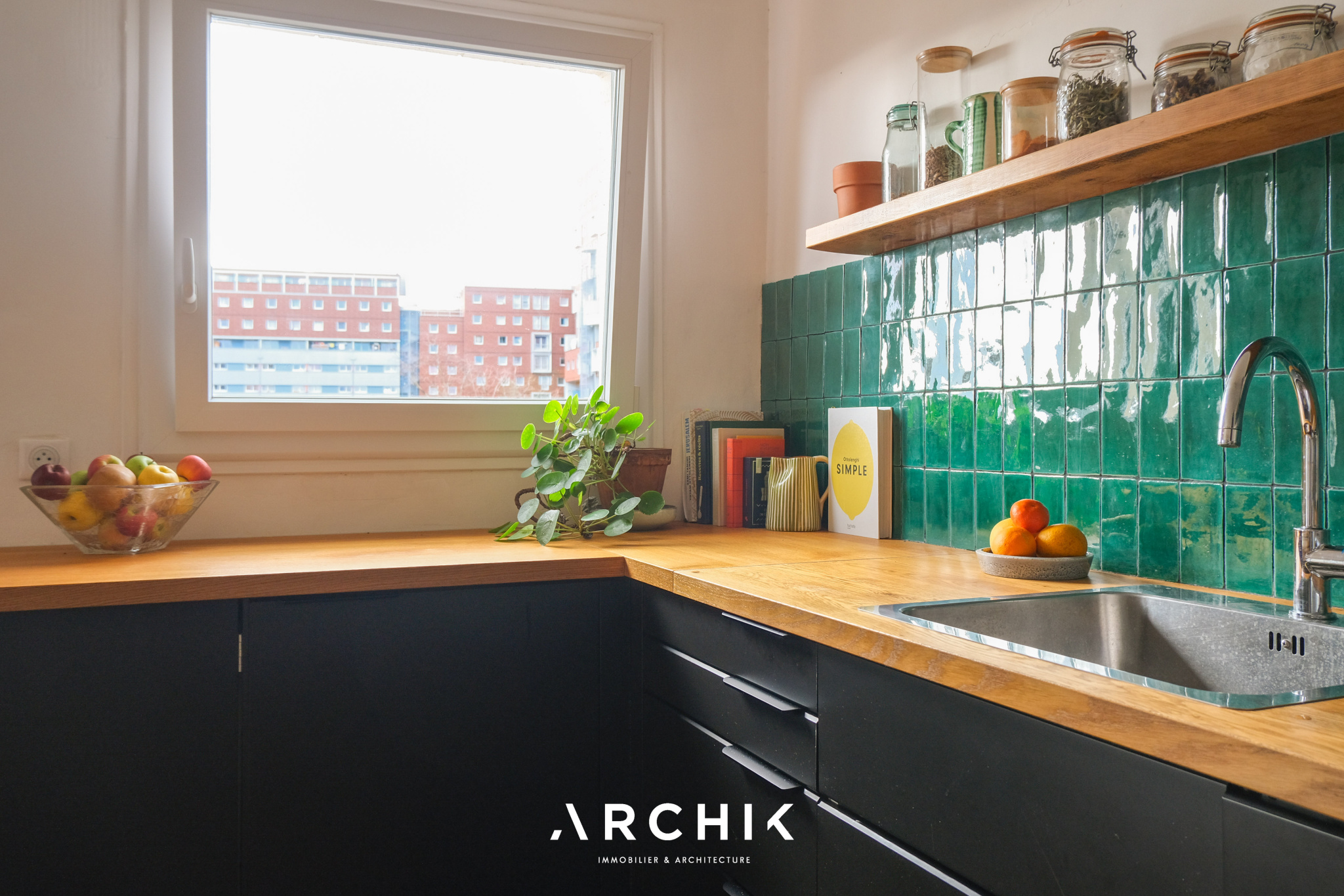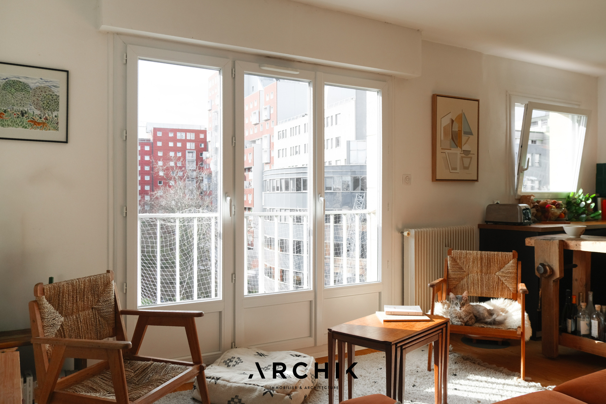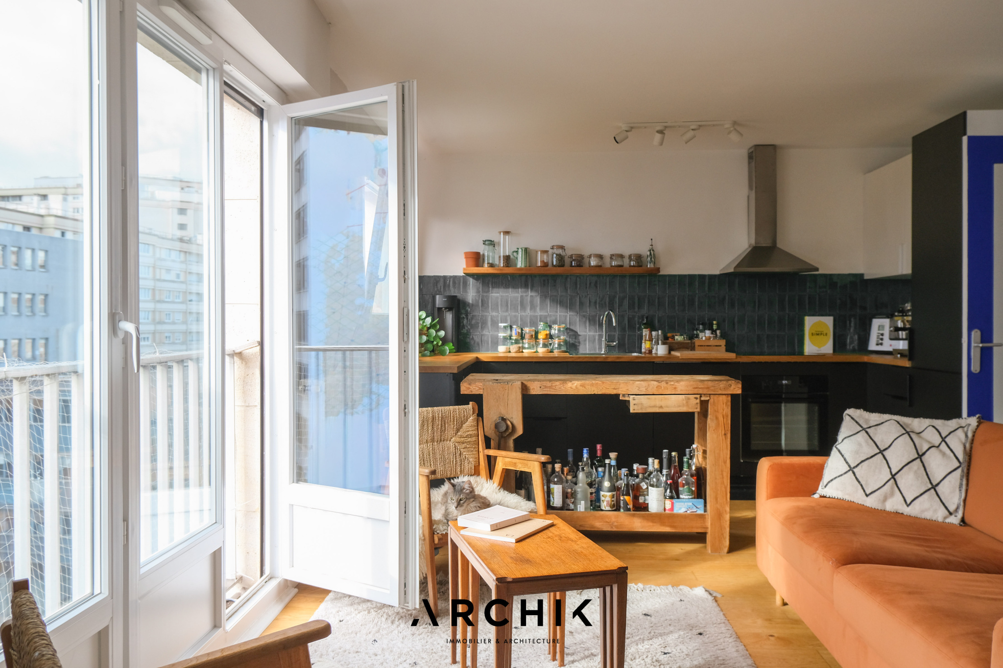 Réaménagé en 2022 par l'architecte Paola SABOURIN, le bien de 47,4 m2, a fait l'objet d'une restructuration complète. Le plan a été redessiné pour fluidifier la circulation et ouvrir les perspectives. L'architecte a également pensé l'ensemble du mobilier qui a été dessiné sur mesure. Fidèle à son écriture, elle compose ici un intérieur aux lignes nettes et aux volumes lisibles, où la fonctionnalité devient un parti pris esthétique.
