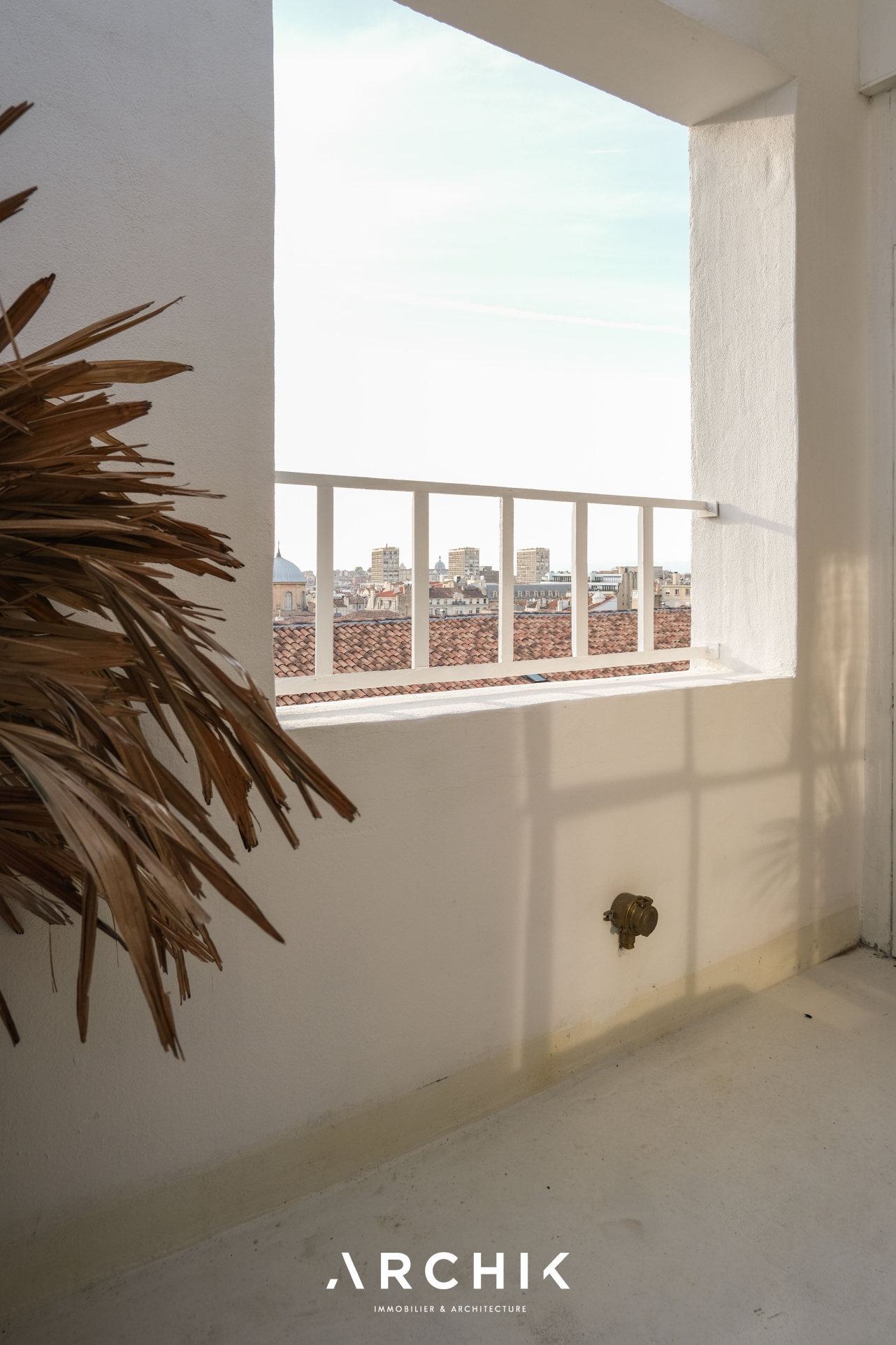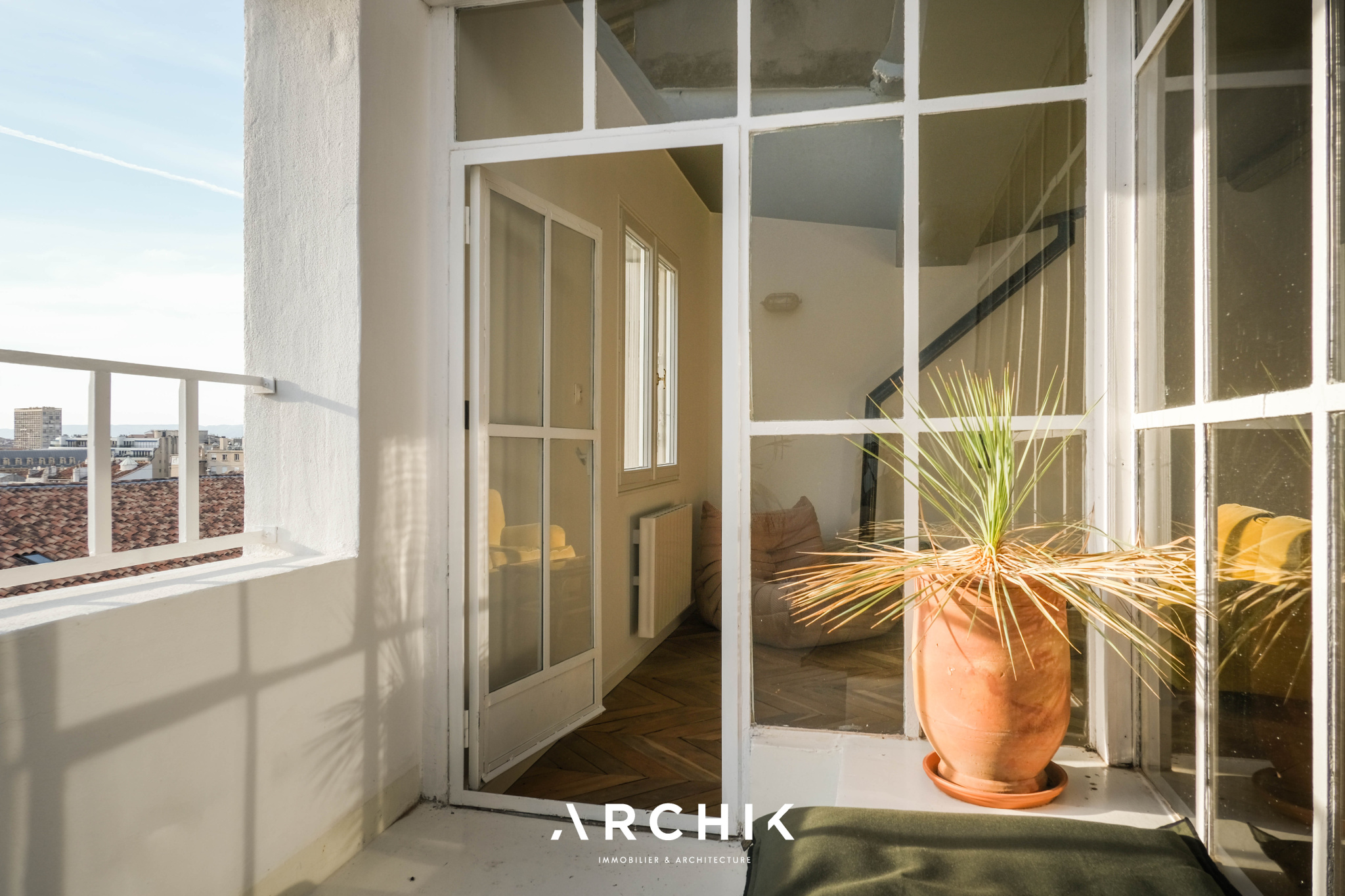 Architecture des années 1900, cet immeuble marseillais accueille en son quatrième et dernier étage un appartement de 60 m2 à la facture parfaite, dans une rue au calme derrière le Conservatoire et dominant les toits.
