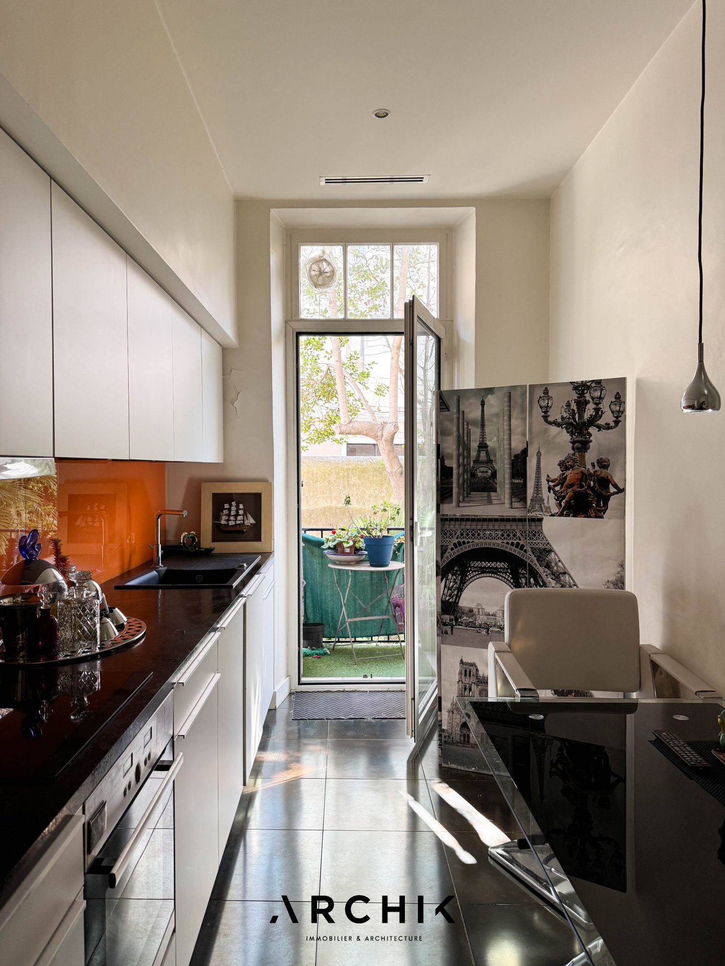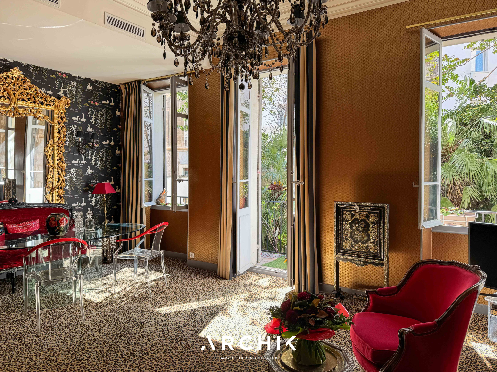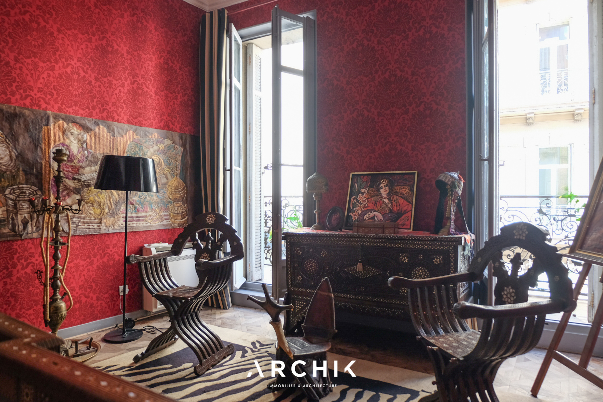 Architecture fin XIXème, ce bel immeuble bourgeois situé en plein centre-ville dans le quartier de Castellane, accueille en son 1er étage avec ascenseur, et seul sur le palier, un appartement d'artiste de 106 m2, au caractère marqué, ouvert sur un balcon filant de 8 m2 à la vue dégagée.