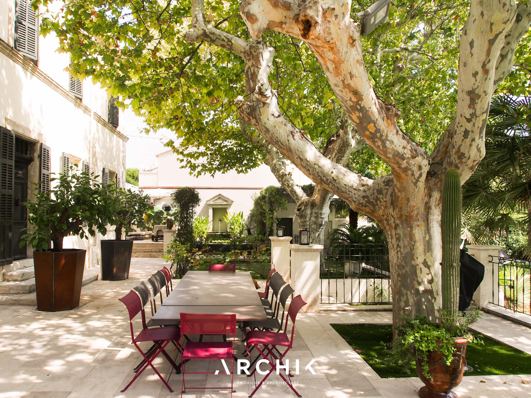 Parfaitement restaurée au fil du temps par les propriétaires sensibles à la nature du lieu, tout a été pensé dans l'harmonie et la préservation du site. La maison a ainsi retrouvé ses matériaux nobles d'origine : carreaux de ciment, cheminées en marbre, tomettes marseillaises, pile de Cassis, et sols à damiers en marbre. Pas moins de neuf pièces animent la demeure, du salon majestueux avec son sol ancien chiné, de son extension traversante accueillant la grande salle à manger, de la cuisine Poivre d'Âne au granit noir du Zimbabwe, aux quatre chambres baignées de lumière, en passant par la jolie tour et son toit terrasse dominant la mer et Marseille. Le grand jardin, tourné au Sud, est bordé de platanes et espèces exotiques luxuriantes qui le protègent du tumulte de la ville. Il accueille une piscine et différents espaces invitant à la paresse et au ressourcement. Indépendante, une jolie maison de 40 m2dite « du jardinier », abrite un salon, une cuisine, et une chambre à l'étage avec sa propre terrasse en ipé, agrémentée de jolis pots d'Anduze. Un bassin d'agrément attenant à la maison où évoluent des carpes koï, vient dans le prolongement, et souligne la quiétude du lieu. Une cave à vin et un double garage complètent ce bien d'exception.