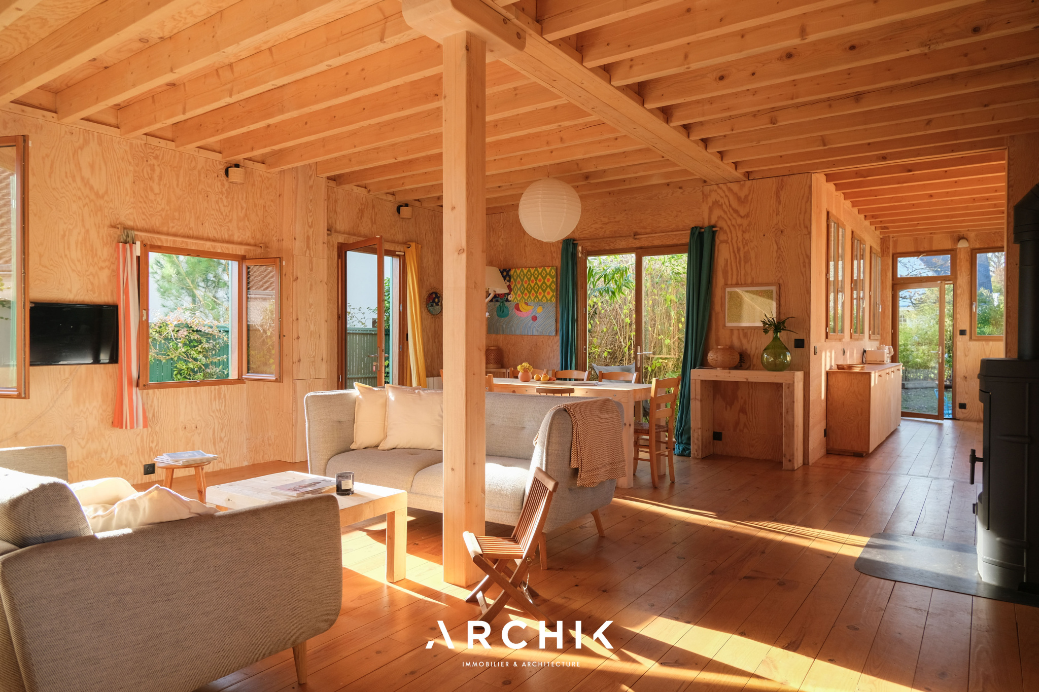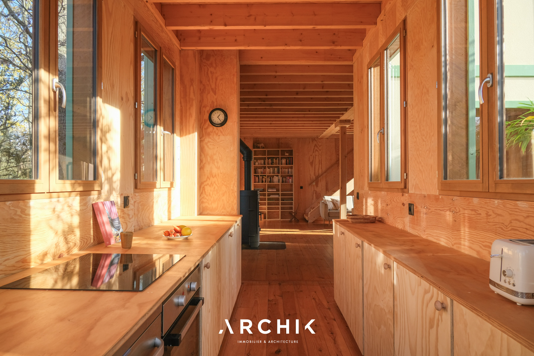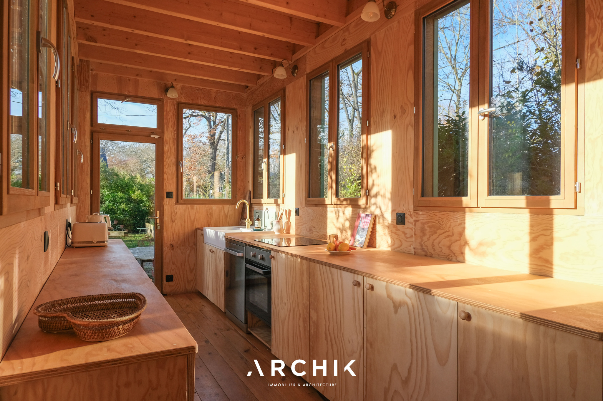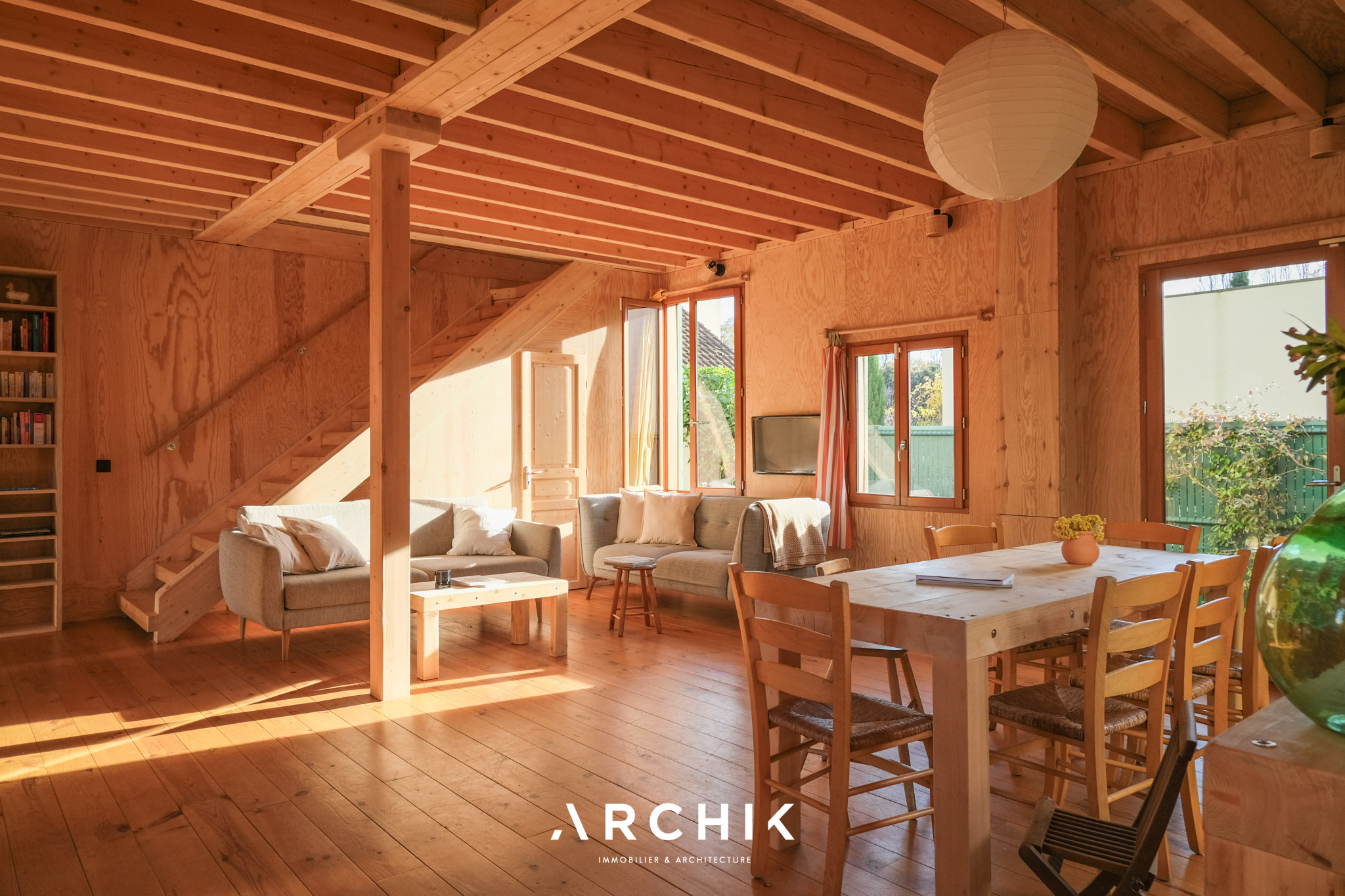 + DE DETAILS LODGE PARIS ALENTOURS | Napoléon 1 140 000 € Type de bien Maison Surface 191 m2 Chambre(s) 5 Extérieur Terrasse, jardin Courant Contemporain Architecture À vivre Réference AP435 ON AIMESon charme anglo-normandLa chaleur et la douceur du lieuL'architecture en osmose avec la natureNOUS CONTACTER Architecture d'inspiration anglo-normande revisitée, cette maison de 191 m2 habitables en ossature bois et en plein coeur du parc de Maisons-Laffite se distingue par son ambiance chaleureuse, durable tout en respectant l'âme architecturale de la 'Cité du Cheval ».Fruit de la collaboration entre l'architecte Thomas Gauvrit et les actuels propriétaires la maison se niche sur un terrain arboré de 518 m2, au milieu des chênes, en dialogue permanent avec le paysage. La maison célébrant le bois et ses multiples usages vient se fondre dans l'environnement boisé alentour. Dès l'entrée, l'espace de vie chaleureux se dévoile, avec sa lumière omniprésente mettant en valeur les éléments choisis de cet espace aux volumes confortables et enveloppants à la fois : plancher en madriers de pin scandinaves, parements en pin maritime, poêle à bois ... autant d'éléments architecturaux parfaits été comme hiver.Baignée de lumière d'Est en Ouest grâce à ses nombreuses fenêtres, la cuisine, non sans rappeler les codes des chalets scandinaves, vient prolonger cet espace avec brio. En aplomb de cette dernière se découvre un jardin paysager aux belles proportions.A l'étage, se dévoile les espaces nuits avec trois chambres tournées vers la nature environnante ainsi qu'un espace polyvalent de 37 m2 sous les combles pouvant prendre tant l'apparat d'un dortoir, d'une chambre parentale, d'une salle de jeu ou d'une chambre d'amis sous les toits. Une salle d'eau à la simplicité délicate permet de ne pas faire d'ombre à la canopée se dévoilant au travers de sa fenêtre. Un studio indépendant à l'esprit nordique et au charme fou vient parfaire ce sans faute chaleureux et délicat.Une cave, une buanderie ainsi que la possibilité de stationner trois véhicules viennent compléter le tout. Une maison pensée pour le quotidien, où l'on fait l'expérience rare d'habiter en osmose parmi les arbres, au coeur de Maisons-Laffitte. VOTRE CONTACT Marine COCAIGN 06 77 21 92 83 marine.cocaign@archik.fr DIAGNOSTICTRANSPORTSRER A MAISONS-LAFFITTE A 20 MINUTES A PIED OU 7 MINUTES VELOPARTAGERDétail du diagnostic Diagnostic de performance énergétique 128 KWh/m².an 4* kg CO2/m².an Logement économeABCDEFGLogement énergivore DPE vierge Consommations non exploitables Non soumis au diagnostic * Dont émissions de gaz à effet de serreFaible émission de GESABCDEFGForte émission de GES 4 KgéqCO2 / m².an GES vierge Consommations non exploitables Montant estimé des dépenses annuelles d'énergie pour un usage standard : entre 1124 et 1520 € TTC/an . Date de référence des prix de l'énergie pour établie cette estimation : 01/01/2025 Les informations sur les risques auxquels ce bien est exposé sont disponibles sur le site Géorisques : www.georisques.gouv.fr Vous souhaitez avoir plus d'informations ? Remplissez le formulaire ou contactez directement la personne en charge de ce bien. NOM* PRÉNOM* EMAIL* TÉLÉPHONE* MESSAGE Je souhaite recevoir la Newsletter ARCHIK VOTRE CONTACT Marine COCAIGN 06 77 21 92 83 marine.cocaign@archik.fr Découvrez aussi ...VENDRENos biens en venteNOS BIENS VENDUS