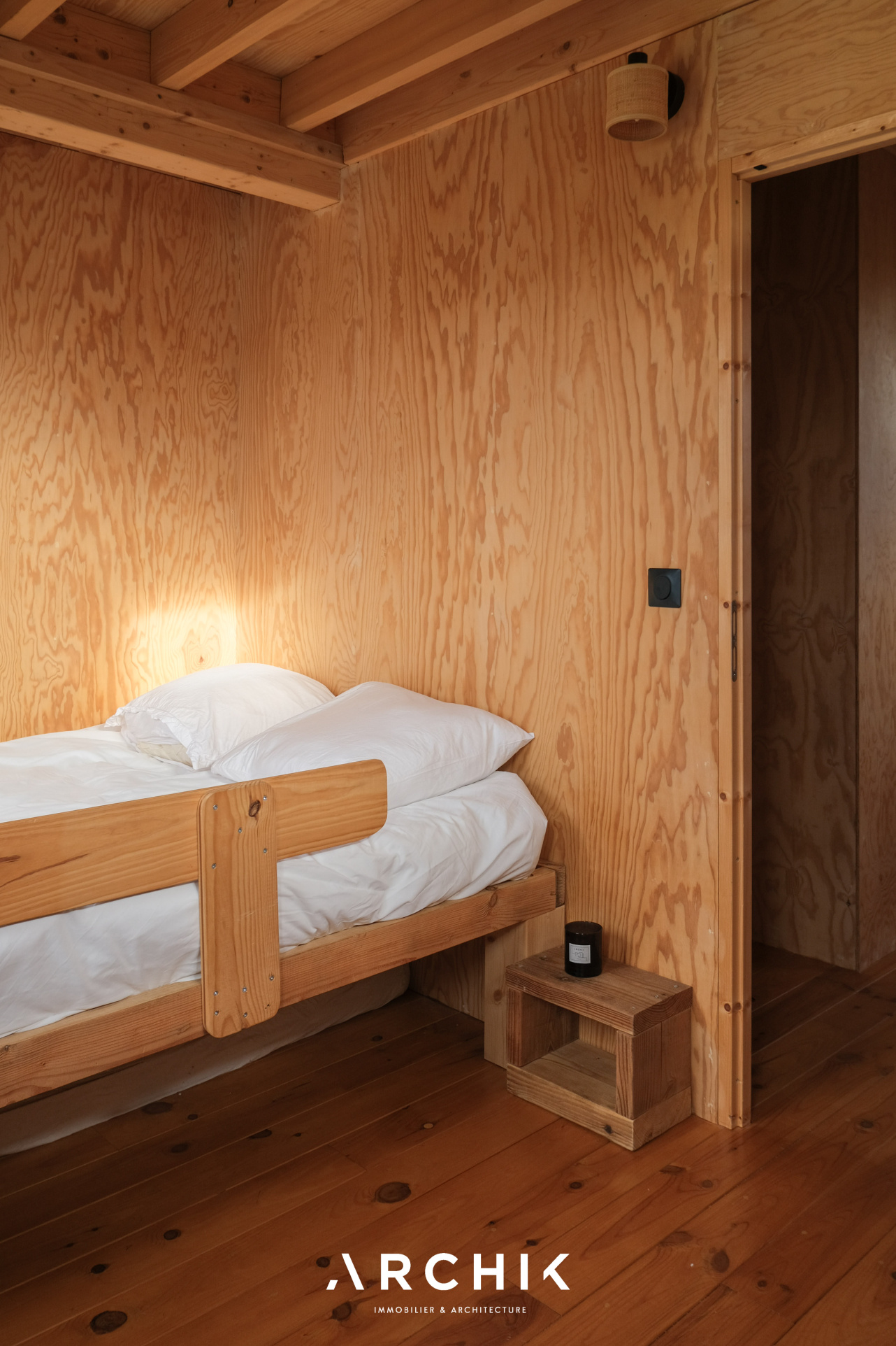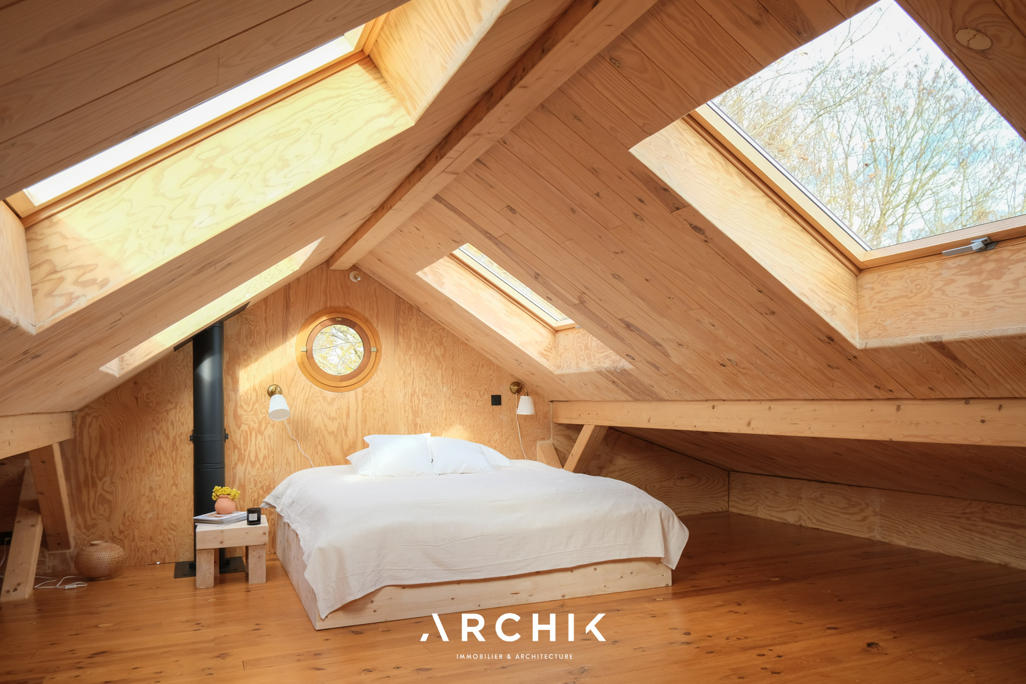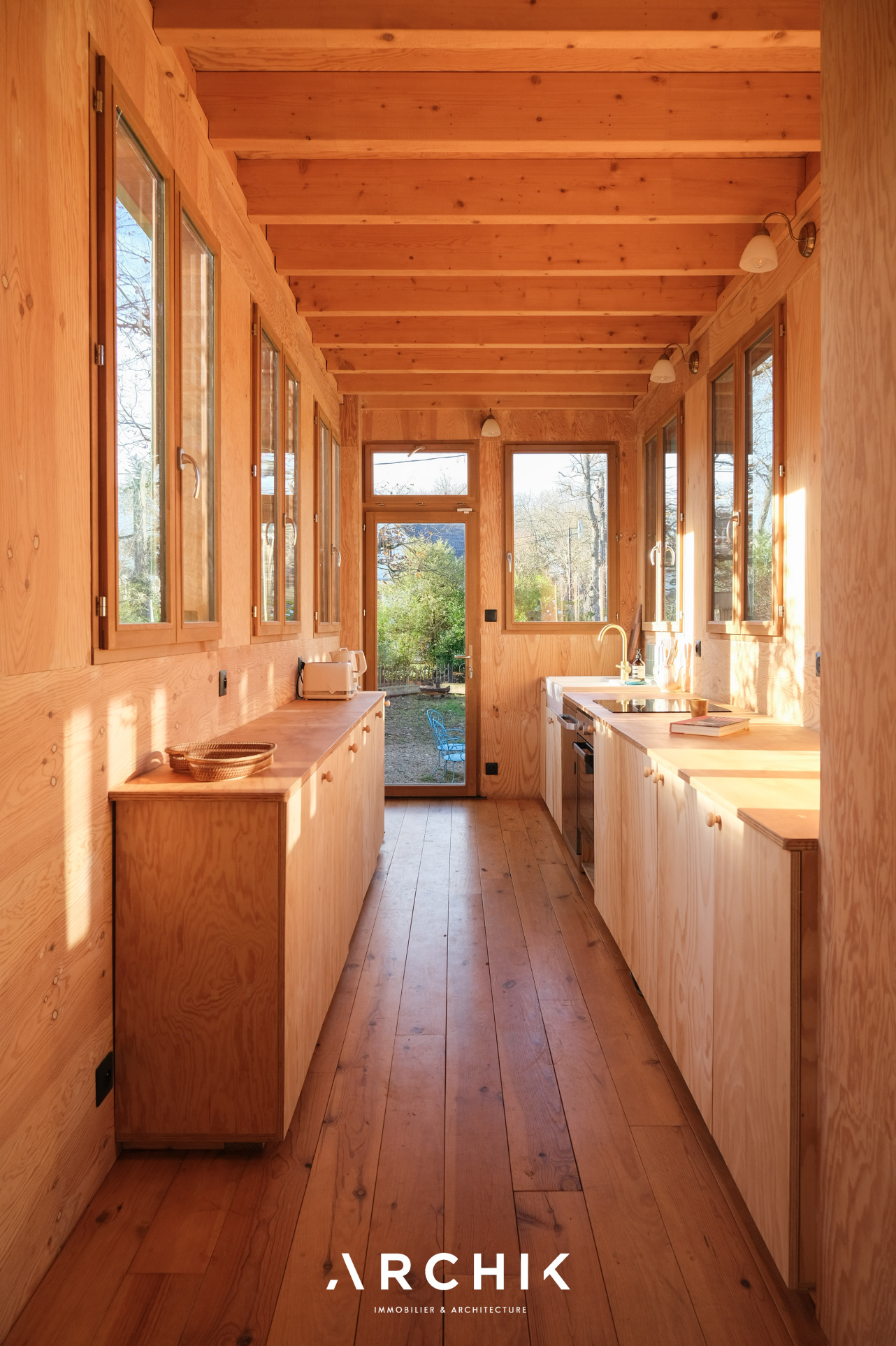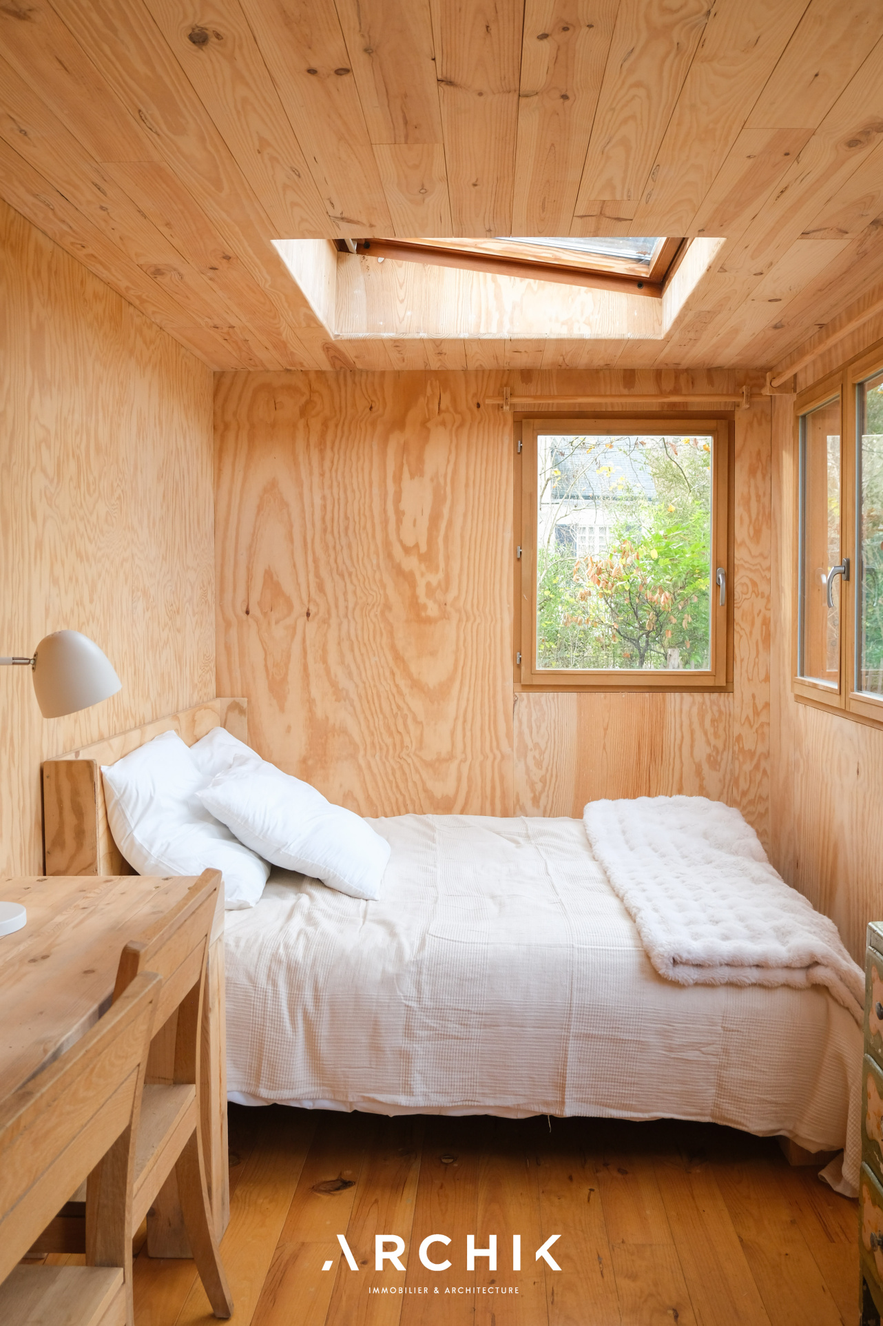 + DE DETAILS LODGE PARIS ALENTOURS | Napoléon 1 140 000 € Type de bien Maison Surface 191 m2 Chambre(s) 5 Extérieur Terrasse, jardin Courant Contemporain Architecture À vivre Réference AP435 ON AIMESon charme anglo-normandLa chaleur et la douceur du lieuL'architecture en osmose avec la natureNOUS CONTACTER Architecture d'inspiration anglo-normande revisitée, cette maison de 191 m2 habitables en ossature bois et en plein coeur du parc de Maisons-Laffite se distingue par son ambiance chaleureuse, durable tout en respectant l'âme architecturale de la 'Cité du Cheval ».Fruit de la collaboration entre l'architecte Thomas Gauvrit et les actuels propriétaires la maison se niche sur un terrain arboré de 518 m2, au milieu des chênes, en dialogue permanent avec le paysage. La maison célébrant le bois et ses multiples usages vient se fondre dans l'environnement boisé alentour. Dès l'entrée, l'espace de vie chaleureux se dévoile, avec sa lumière omniprésente mettant en valeur les éléments choisis de cet espace aux volumes confortables et enveloppants à la fois : plancher en madriers de pin scandinaves, parements en pin maritime, poêle à bois ... autant d'éléments architecturaux parfaits été comme hiver.Baignée de lumière d'Est en Ouest grâce à ses nombreuses fenêtres, la cuisine, non sans rappeler les codes des chalets scandinaves, vient prolonger cet espace avec brio. En aplomb de cette dernière se découvre un jardin paysager aux belles proportions.A l'étage, se dévoile les espaces nuits avec trois chambres tournées vers la nature environnante ainsi qu'un espace polyvalent de 37 m2 sous les combles pouvant prendre tant l'apparat d'un dortoir, d'une chambre parentale, d'une salle de jeu ou d'une chambre d'amis sous les toits. Une salle d'eau à la simplicité délicate permet de ne pas faire d'ombre à la canopée se dévoilant au travers de sa fenêtre. Un studio indépendant à l'esprit nordique et au charme fou vient parfaire ce sans faute chaleureux et délicat.Une cave, une buanderie ainsi que la possibilité de stationner trois véhicules viennent compléter le tout. Une maison pensée pour le quotidien, où l'on fait l'expérience rare d'habiter en osmose parmi les arbres, au coeur de Maisons-Laffitte. VOTRE CONTACT Marine COCAIGN 06 77 21 92 83 marine.cocaign@archik.fr DIAGNOSTICTRANSPORTSRER A MAISONS-LAFFITTE A 20 MINUTES A PIED OU 7 MINUTES VELOPARTAGERDétail du diagnostic Diagnostic de performance énergétique 128 KWh/m².an 4* kg CO2/m².an Logement économeABCDEFGLogement énergivore DPE vierge Consommations non exploitables Non soumis au diagnostic * Dont émissions de gaz à effet de serreFaible émission de GESABCDEFGForte émission de GES 4 KgéqCO2 / m².an GES vierge Consommations non exploitables Montant estimé des dépenses annuelles d'énergie pour un usage standard : entre 1124 et 1520 € TTC/an . Date de référence des prix de l'énergie pour établie cette estimation : 01/01/2025 Les informations sur les risques auxquels ce bien est exposé sont disponibles sur le site Géorisques : www.georisques.gouv.fr Vous souhaitez avoir plus d'informations ? Remplissez le formulaire ou contactez directement la personne en charge de ce bien. NOM* PRÉNOM* EMAIL* TÉLÉPHONE* MESSAGE Je souhaite recevoir la Newsletter ARCHIK VOTRE CONTACT Marine COCAIGN 06 77 21 92 83 marine.cocaign@archik.fr Découvrez aussi ...VENDRENos biens en venteNOS BIENS VENDUS