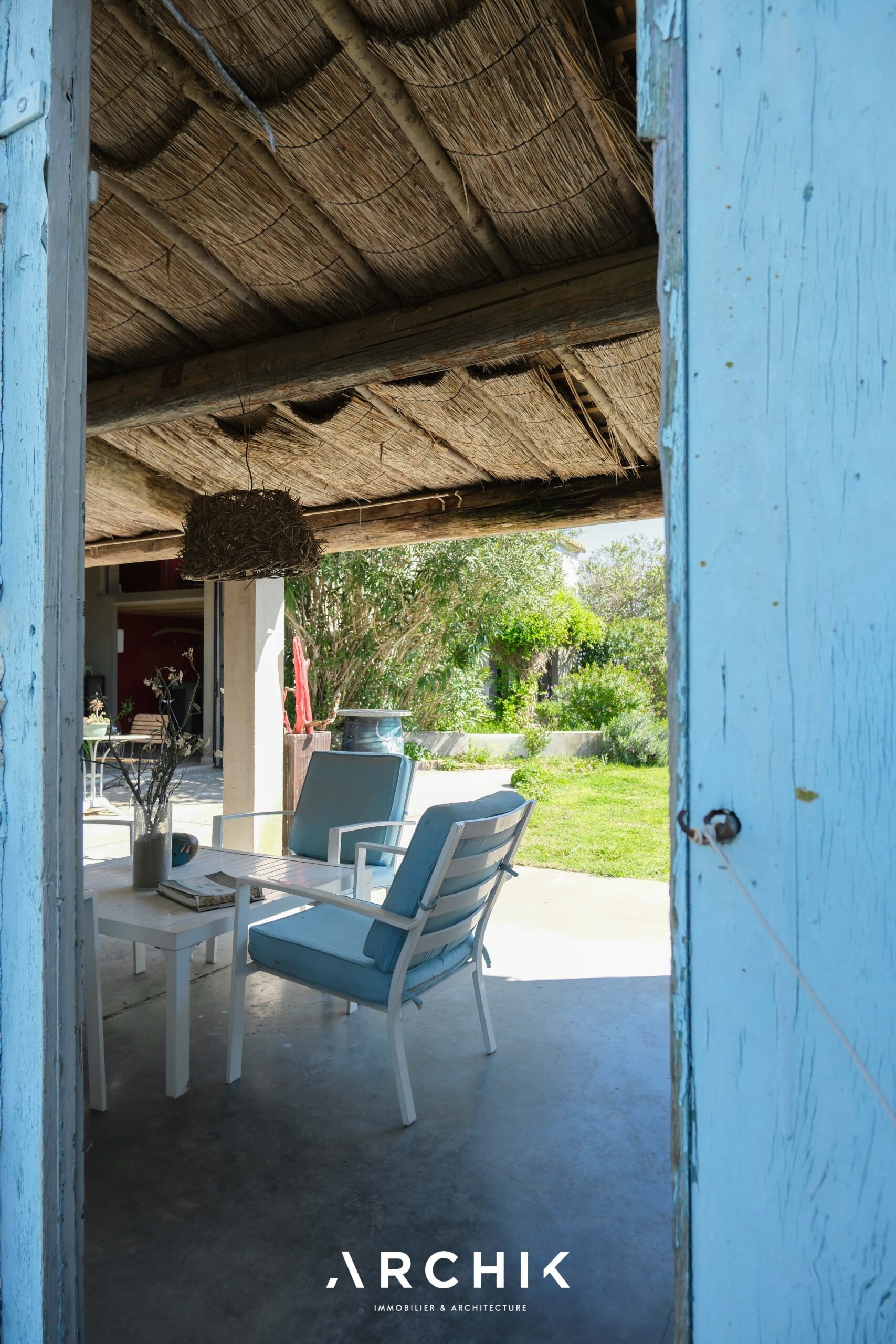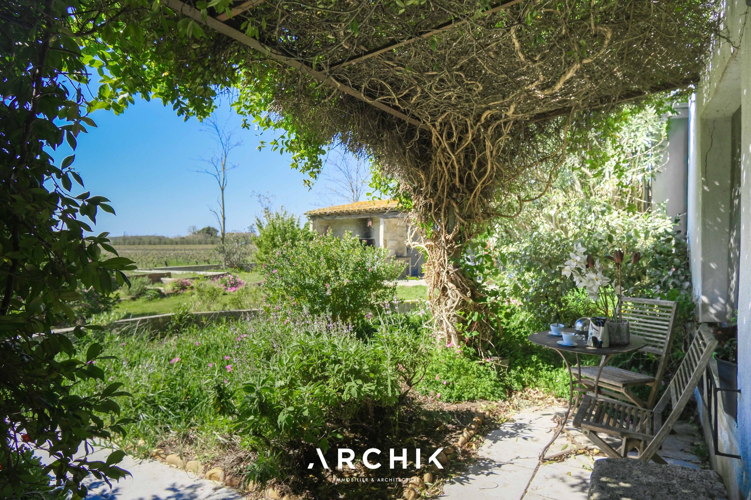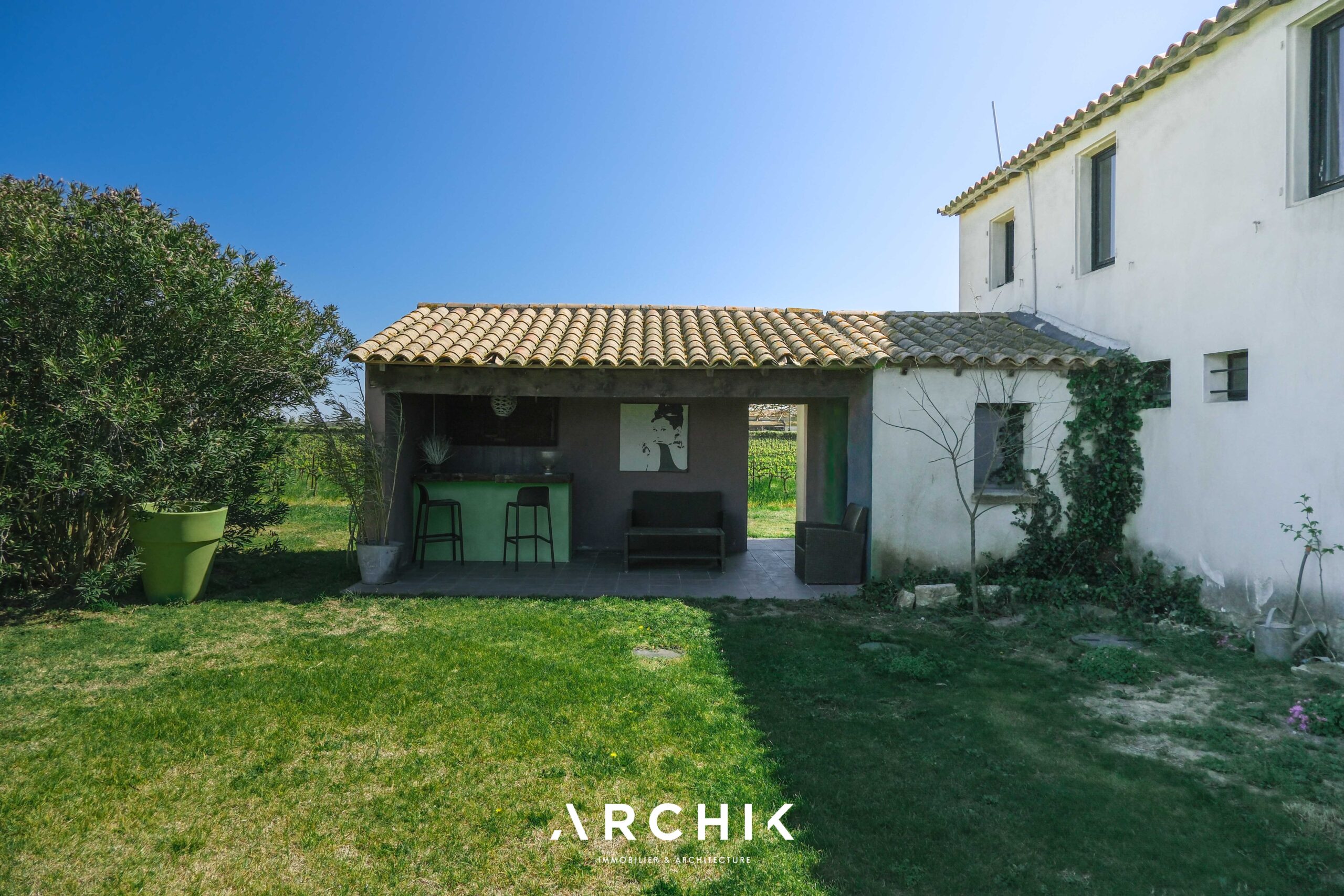 Architecture du début du XXème siècle, ce mas de caractère se développe sur 260 m2 au coeur des vignes camarguaises sur une parcelle paysagée de 2 300 m2 plantée de jasmin et de bignones, à proximité d'Aigues-Mortes.