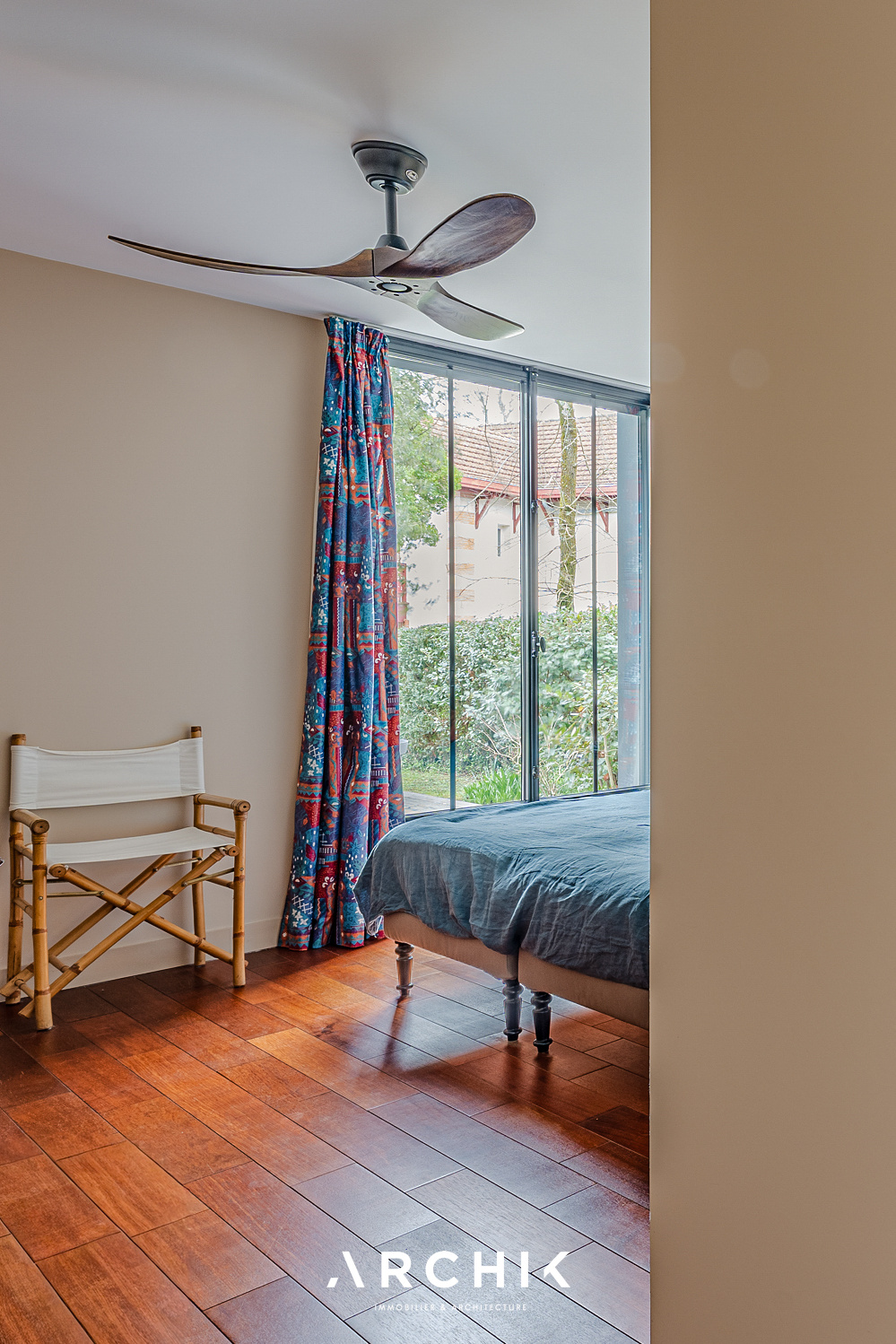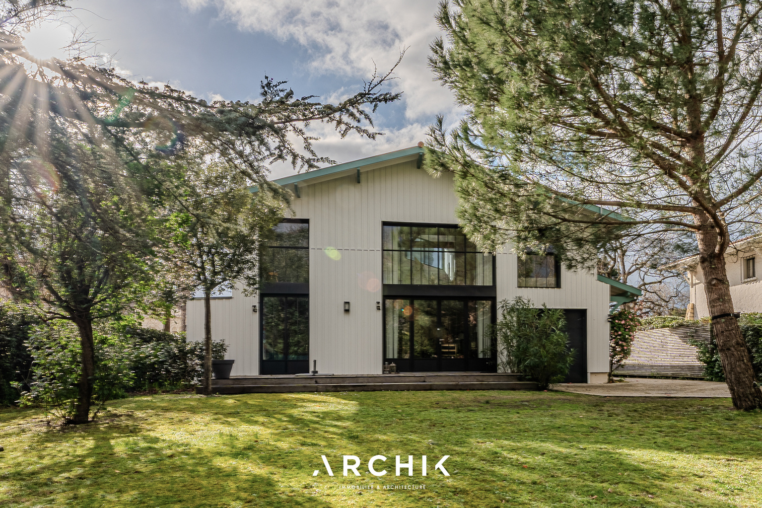Repensée en 2018 par l'agence d'architecture Bordelaise AAA, la villa réinterprète les codes architecturaux arcachonnais dans une écriture actuelle. Lignes maîtrisées et volumes généreux dialoguent de façon permanente avec les matières brutes et les finitions haut de gamme.