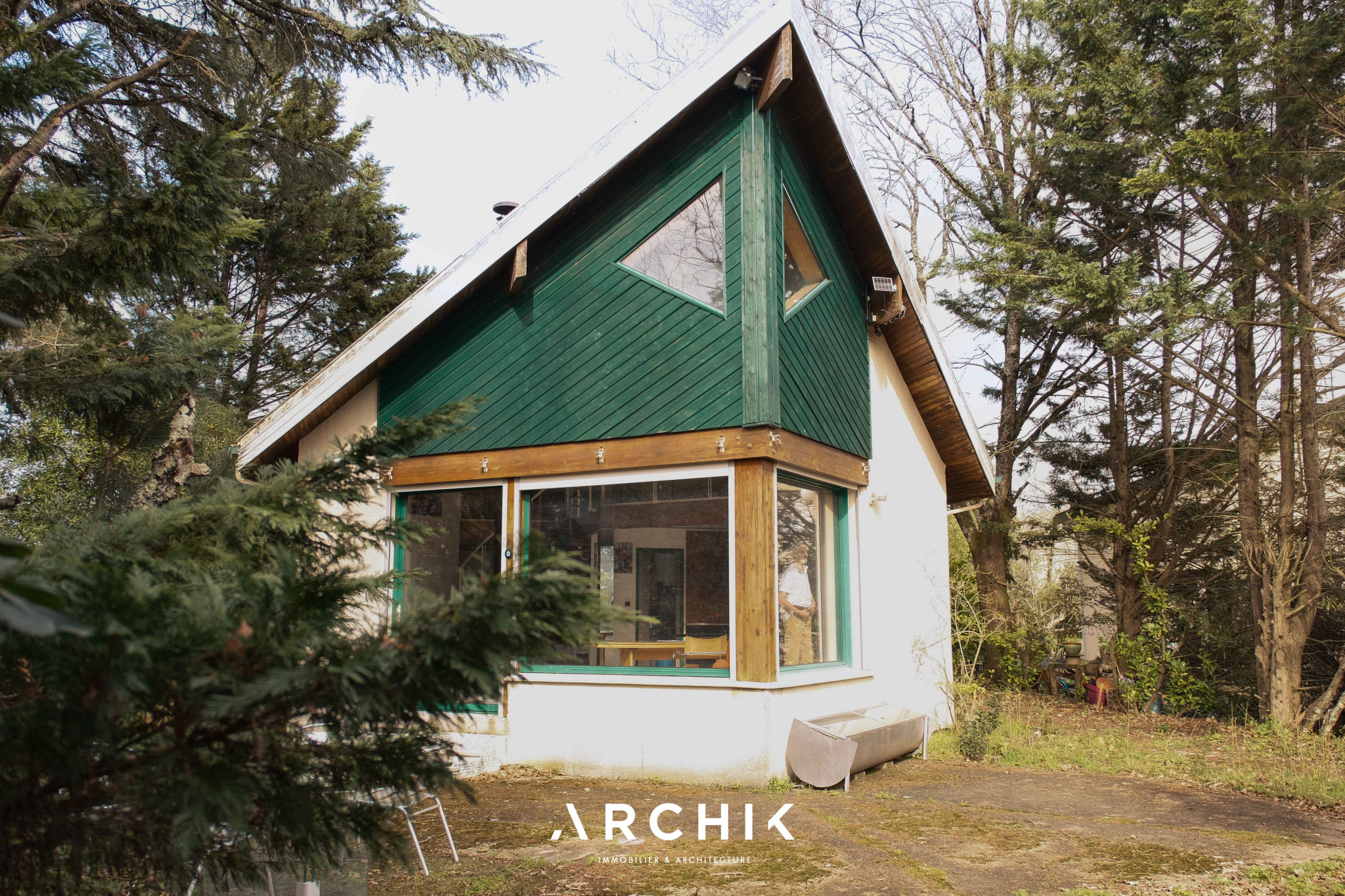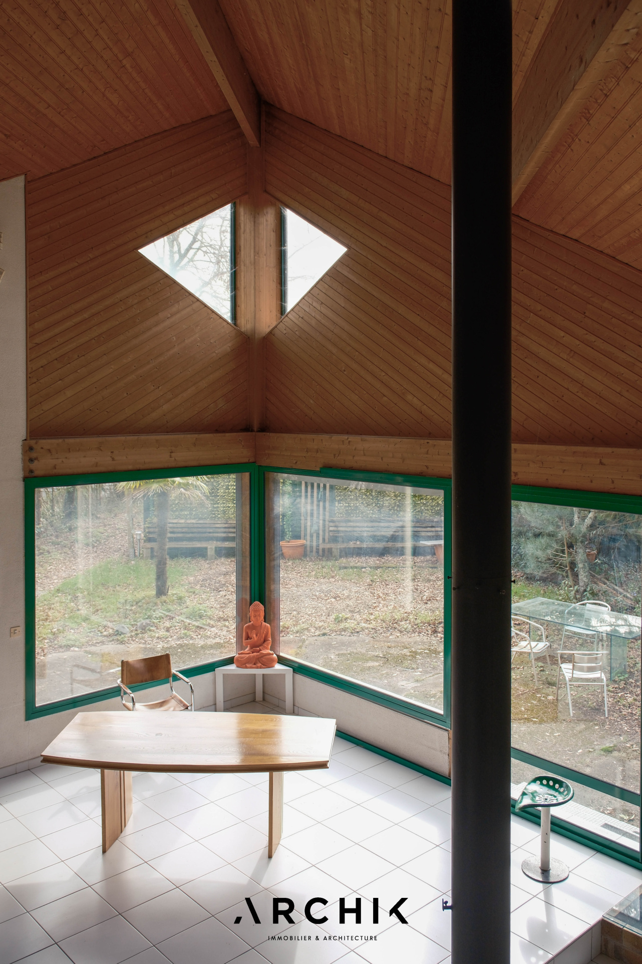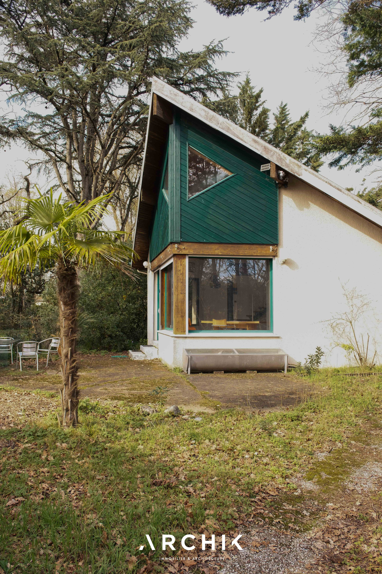 Architecture des années 1990, cette maison sur un terrain arboré de 420 m2 dans le quartier résidentiel « La Forêt » à Mérignac, aux portes de Bordeaux.