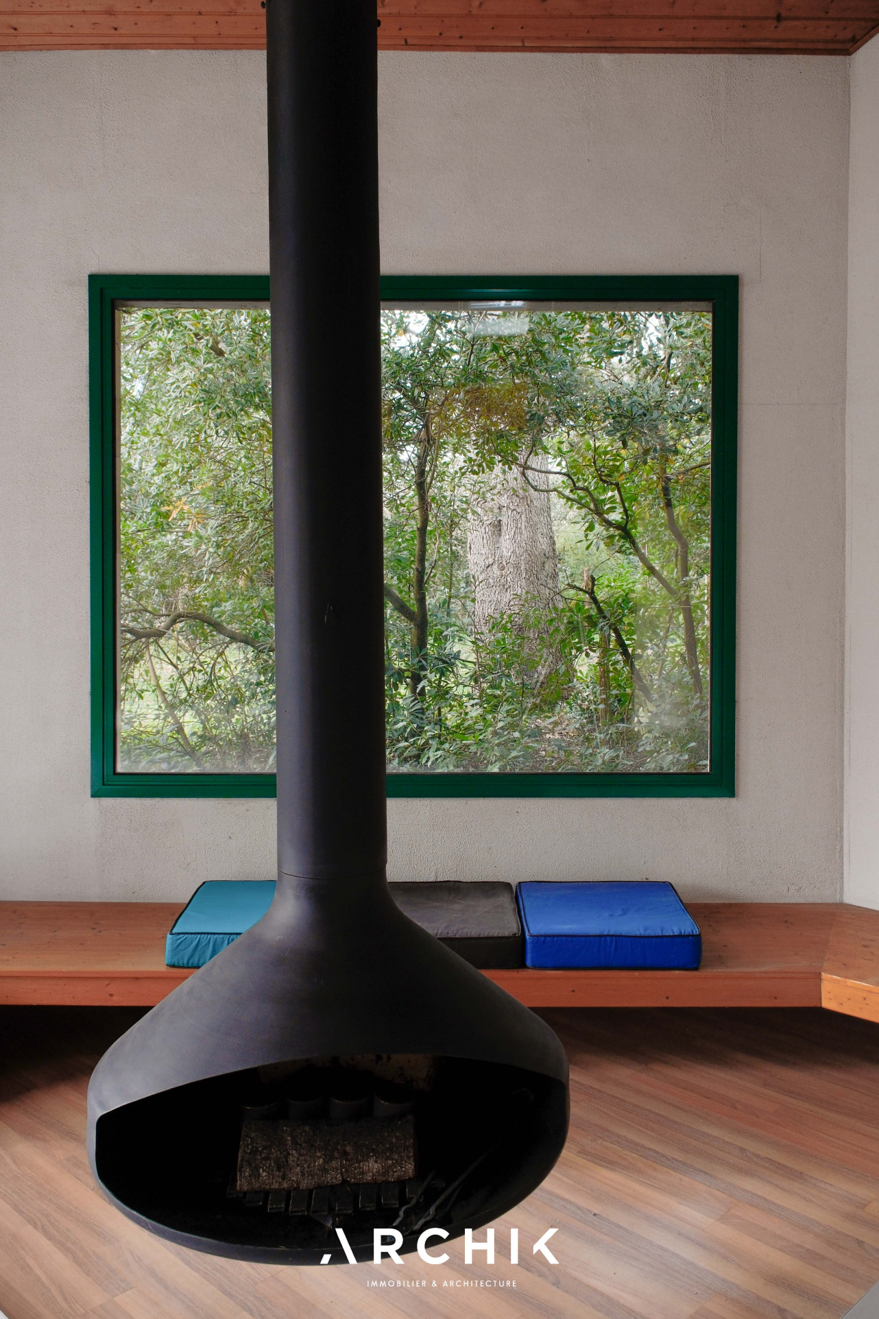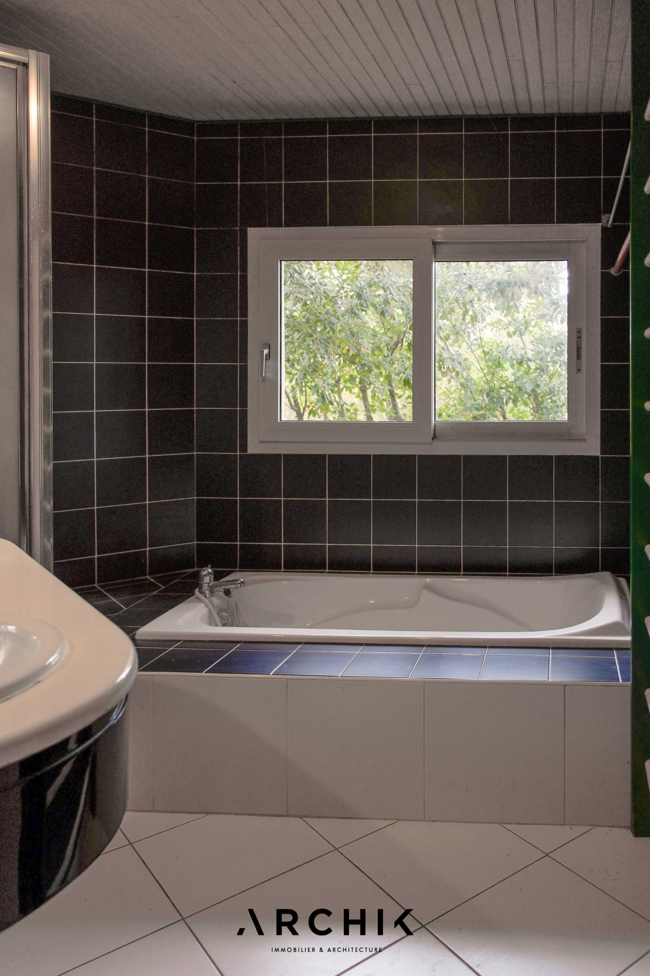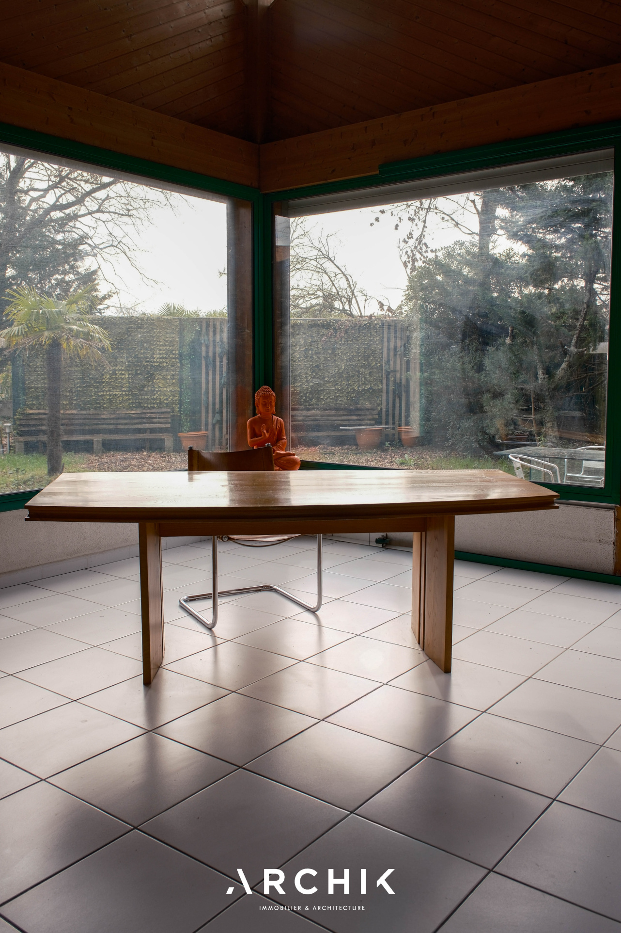 Architecture des années 1990, cette maison sur un terrain arboré de 420 m2 dans le quartier résidentiel « La Forêt » à Mérignac, aux portes de Bordeaux.