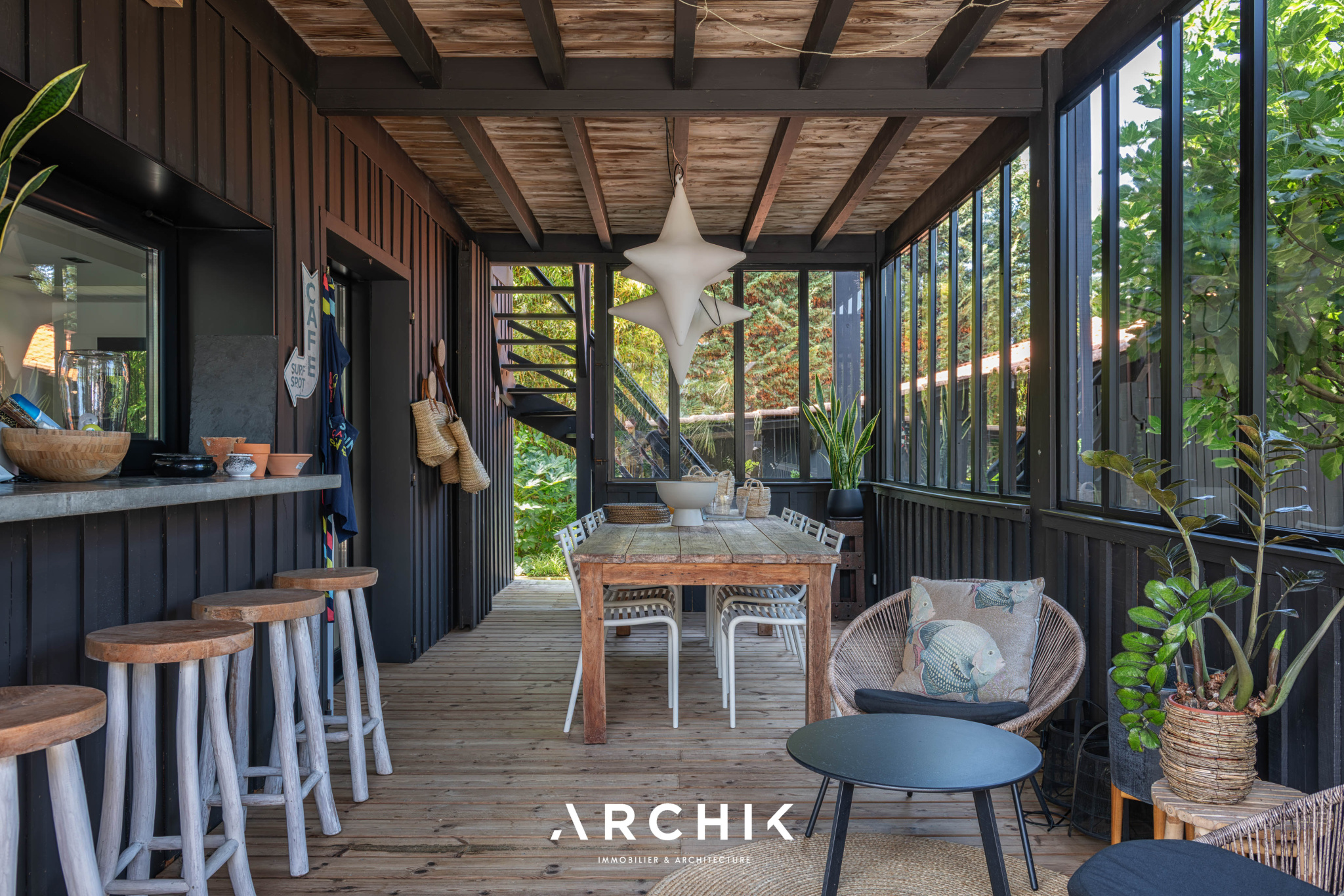 Repensé en 2022 par l'architecte Mathieu Villemonteil fondateur de l'atelier d'architecture AAVA, le bâtiment focalise sur la continuité entre l'intérieur et l'extérieur afin de rendre les espaces de vie fluides, cohérents et harmonieux.