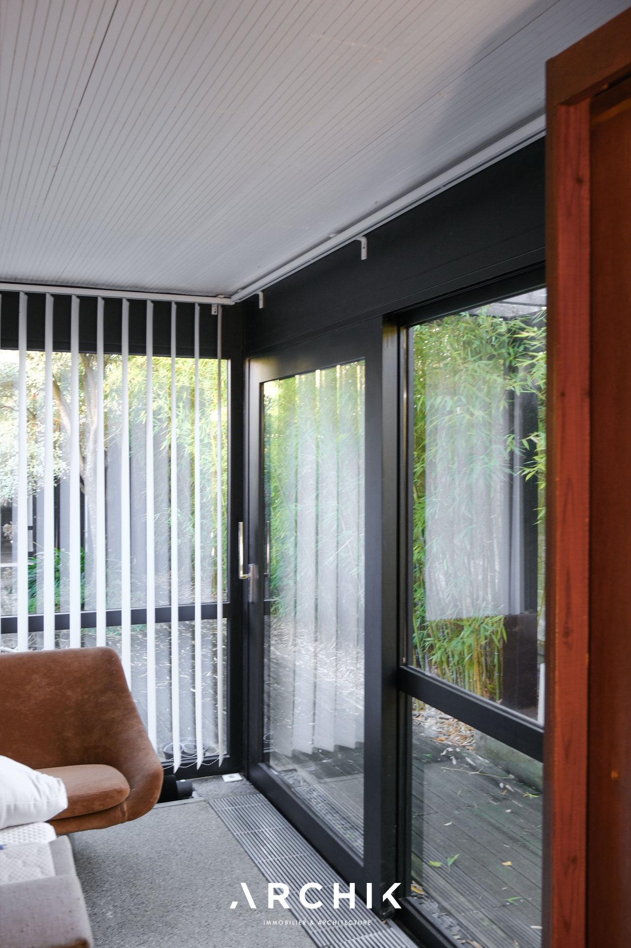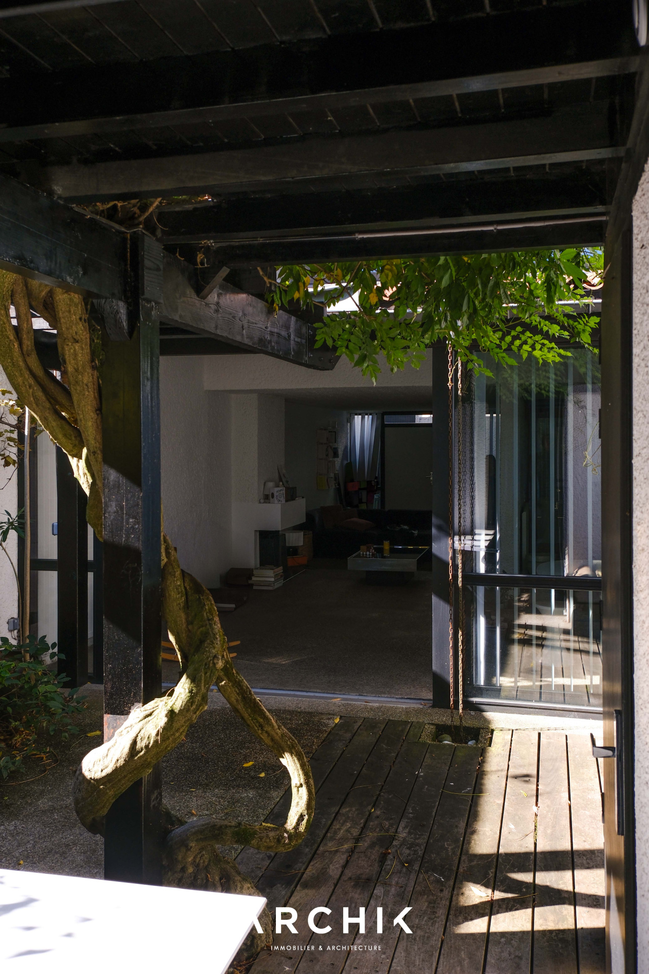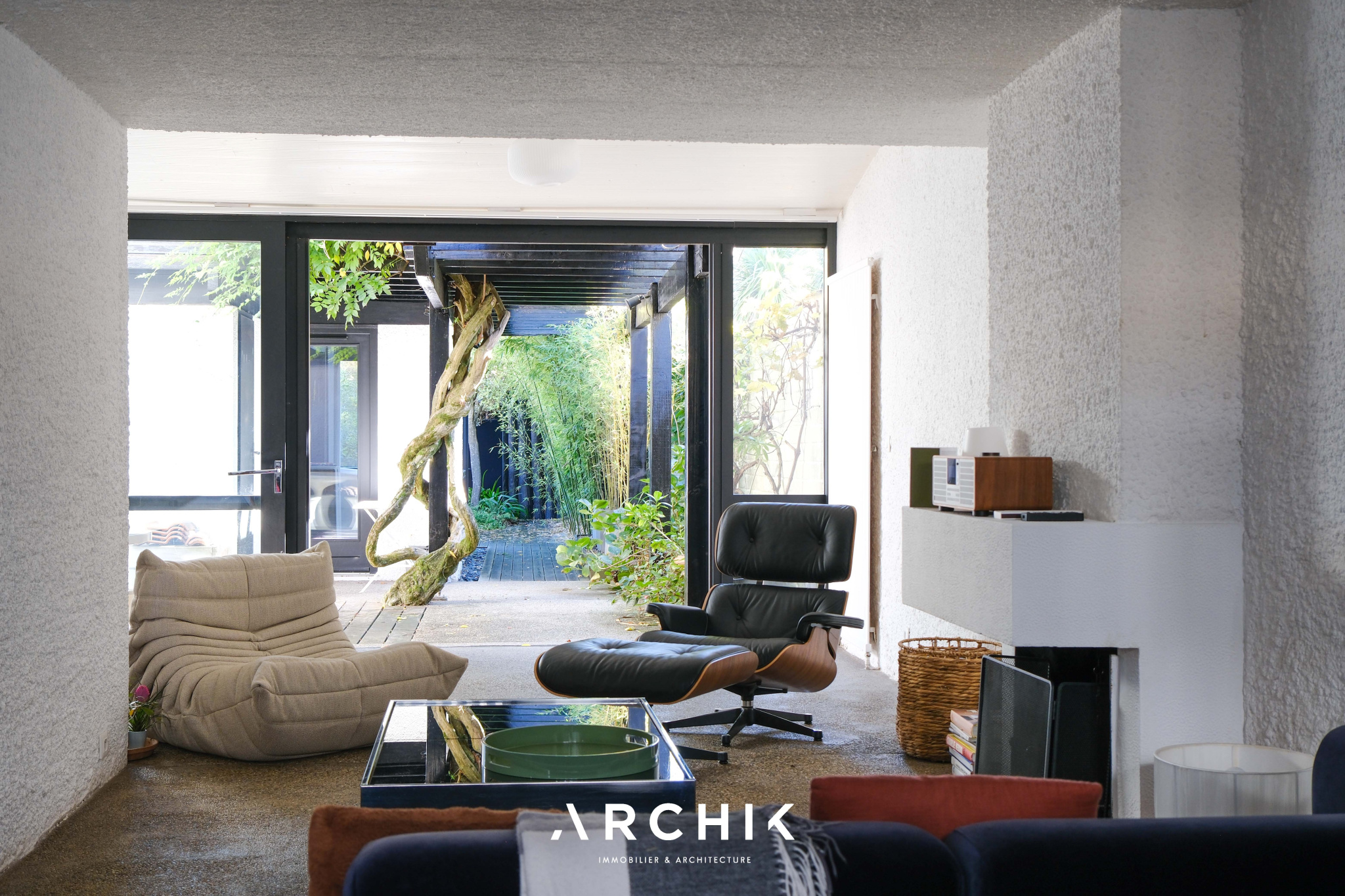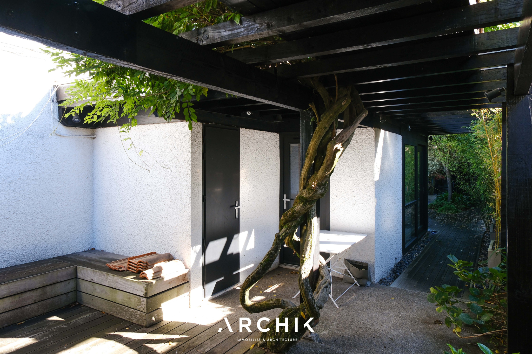 + DE DETAILS ODOROKI BORDEAUX 885 000 € Type de bien Maison Surface 141 m2 Chambre(s) 4 Extérieur Terrasse Courant Moderne Architecture À vivre Réference BX1295 ON AIMELa singularité du lieuLes vues sur la verdure depuis chaque pièceLa rénovation soucieuse des codes seventiesNOUS CONTACTER Architecture de 1969, cet ensemble post moderniste de maison et de dépendances de 159 m2 signée par l'architecte Bordelais Patrick Maxwell s'inscrit sur un terrain 242 m2 dans le quartier familial et recherché de Primrose, à proximité de la Barrière Judaique.Réinterprétation d'une échoppe Bordelaise, cette maison s'insère parfaitement dans le tissu urbain environnant et se découvre par un petit jardin d'accueil dissimulé derrière un mur, caché de vue depuis l'espace public. Rénovée en 2021 par l'architecte HMONP Iris Giese fondatrice d'ARCHI PLUS, la maison et ses dépendances ont été sublimées tout en respectant l'architecture d'origine, son minimalisme initial et son caractère brut.Deux accès se présentent alors, soit par une porte donnant sur la cuisine soit par un grand châssis vitré avec une vue traversante de tout le rez-de-chaussée.Dès l'arrivée, le cachet mid-century règne, l'homogénéité du sol béton en gravier lavé, les murs blanc crépis et les menuiseries bois signent l'intérieur. La cuisine tout en long avec un coin repas sous fenêtre en bandeau se retrouve en toute intimité isolée du reste de la maison tandis que les pièces de vie traversantes occupent le reste du rez-de-chaussée. Structuré par un mur central, le salon, entièrement ouvert, s'organise autour d'une cheminée à foyer ouvert, comme moulée dans la paroi blanche. La salle à manger, quant à elle, partage avec le salon une façade vitrée toute hauteur en bois teinté noir, s'ouvrant entièrement sur un premier patio abrité et aménagé en espace dinatoire. Niché entre la cuisine et la salle à manger, un escalier à quart tournant en bois massif ponctué d'alcôves décoratives, mène à un palier distribuant trois chambres aux bandeaux vitrés et une salle de bain habillée de mosaïques hexagonales, démultipliées à l'infini par un jeu de miroirs. En complément de la maison principale, deux dépendances de forme cubique aux toitures plates complètent l'ensemble, implantées en juxtaposition sur le terrain, articulées autour de patios le tout entouré de végétation luxuriante aux allures japonisantes. La première avec son angle entièrement vitré héberge un bureau / chambre d'amis avec une salle d'eau privative, reliée à la maison principale par un chemin surmonté d'une pergola. Toujours dans les mêmes codes seventies, la seconde en fond de parcelle s'articule en L autour d'un patio planté d'un érable du Japon. Elle comprend une buanderie lumineuse et une suite permettant d'installer un bureau ou une deuxième chambre d'amis. En complément de l'architecture d'origine, cet espace aux mêmes codes à été sublimé par un ensemble de parois menuisés en contre-plaqué lasuré qui masque des linéaires de rangements ainsi que la salle d'eau, tout en ajoutant un coté chaleureux. Une maison unique et singulière, enveloppée de textures et de matières brutes avec une nature omniprésente. VOTRE CONTACT Nathalie BOUSSAROQUE 06 63 34 03 99 nathalie.boussaroque@archik.fr DIAGNOSTICPARTAGERDétail du diagnostic Diagnostic de performance énergétique 141 KWh/m².an 30* kg CO2/m².an Logement économeABCDEFGLogement énergivore DPE vierge Consommations non exploitables Non soumis au diagnostic * Dont émissions de gaz à effet de serreFaible émission de GESABCDEFGForte émission de GES 30 KgéqCO2 / m².an GES vierge Consommations non exploitables Montant estimé des dépenses annuelles d'énergie pour un usage standard : entre 960 et 1370 € TTC/an . Date de référence des prix de l'énergie pour établie cette estimation : 01/01/2021 Les informations sur les risques auxquels ce bien est exposé sont disponibles sur le site Géorisques : www.georisques.gouv.fr Vous souhaitez avoir plus d'informations ? Remplissez le formulaire ou contactez directement la personne en charge de ce bien. NOM* PRÉNOM* EMAIL* TÉLÉPHONE* MESSAGE Je souhaite recevoir la Newsletter ARCHIK VOTRE CONTACT Nathalie BOUSSAROQUE 06 63 34 03 99 nathalie.boussaroque@archik.fr Découvrez aussi ...VENDRENos biens en venteNOS BIENS VENDUS
