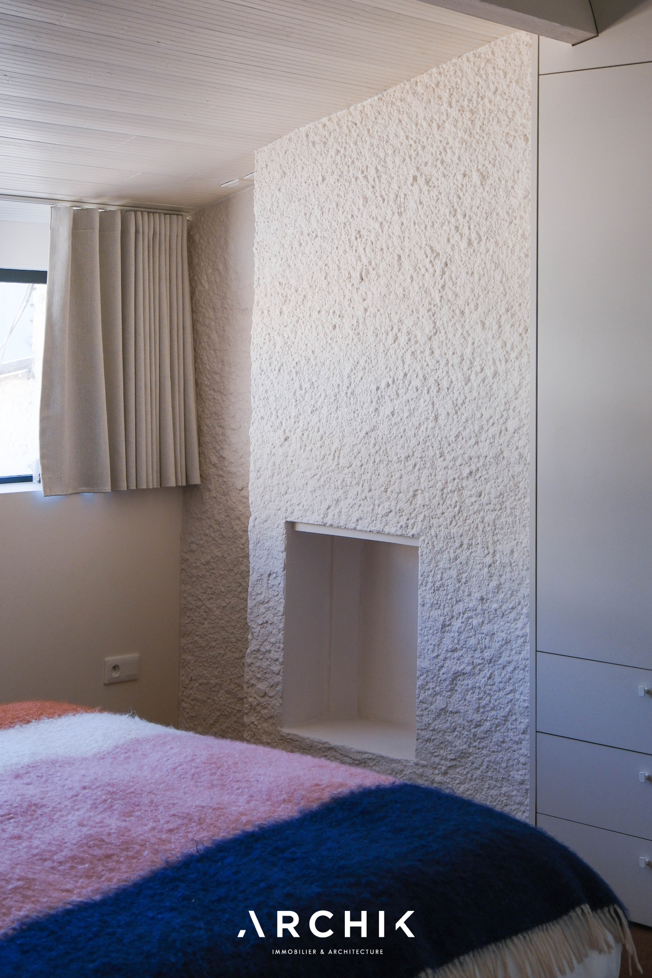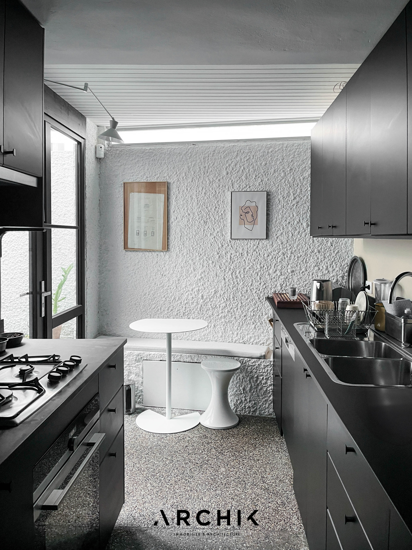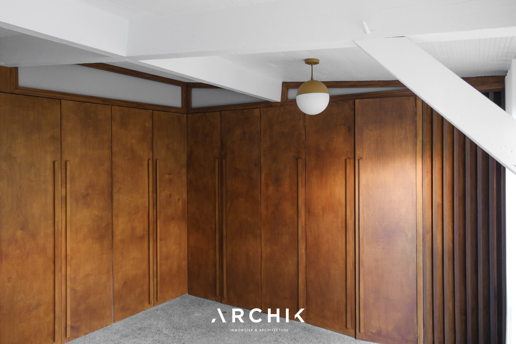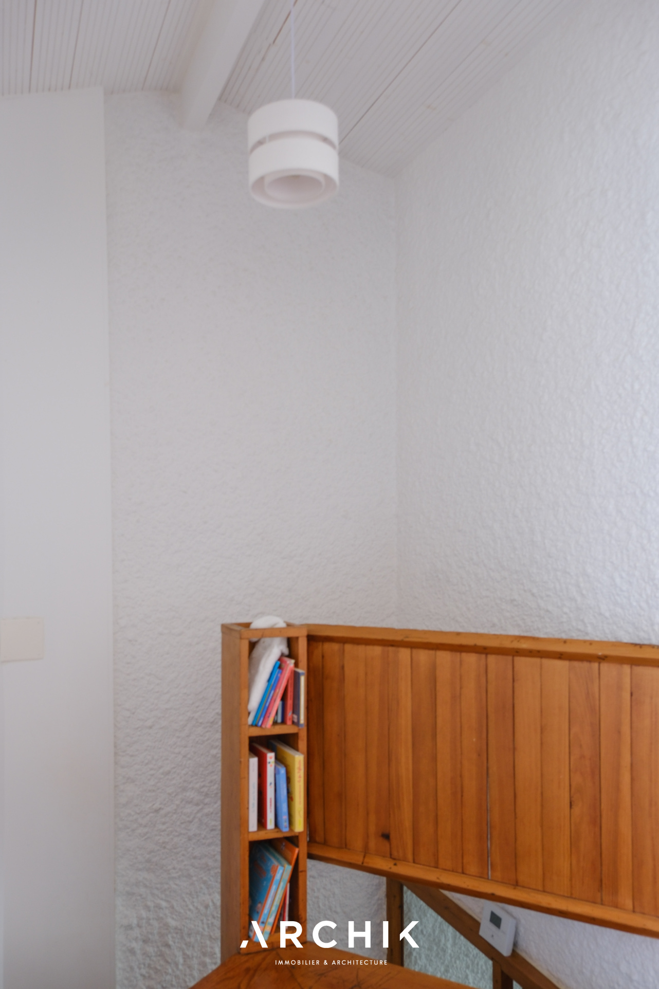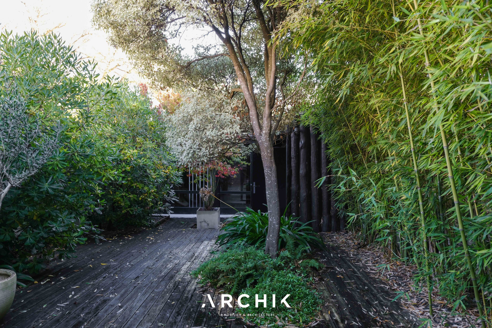 + DE DETAILS ODOROKI BORDEAUX 885 000 € Type de bien Maison Surface 141 m2 Chambre(s) 4 Extérieur Terrasse Courant Moderne Architecture À vivre Réference BX1295 ON AIMELa singularité du lieuLes vues sur la verdure depuis chaque pièceLa rénovation soucieuse des codes seventiesNOUS CONTACTER Architecture de 1969, cet ensemble post moderniste de maison et de dépendances de 159 m2 signée par l'architecte Bordelais Patrick Maxwell s'inscrit sur un terrain 242 m2 dans le quartier familial et recherché de Primrose, à proximité de la Barrière Judaique.Réinterprétation d'une échoppe Bordelaise, cette maison s'insère parfaitement dans le tissu urbain environnant et se découvre par un petit jardin d'accueil dissimulé derrière un mur, caché de vue depuis l'espace public. Rénovée en 2021 par l'architecte HMONP Iris Giese fondatrice d'ARCHI PLUS, la maison et ses dépendances ont été sublimées tout en respectant l'architecture d'origine, son minimalisme initial et son caractère brut.Deux accès se présentent alors, soit par une porte donnant sur la cuisine soit par un grand châssis vitré avec une vue traversante de tout le rez-de-chaussée.Dès l'arrivée, le cachet mid-century règne, l'homogénéité du sol béton en gravier lavé, les murs blanc crépis et les menuiseries bois signent l'intérieur. La cuisine tout en long avec un coin repas sous fenêtre en bandeau se retrouve en toute intimité isolée du reste de la maison tandis que les pièces de vie traversantes occupent le reste du rez-de-chaussée. Structuré par un mur central, le salon, entièrement ouvert, s'organise autour d'une cheminée à foyer ouvert, comme moulée dans la paroi blanche. La salle à manger, quant à elle, partage avec le salon une façade vitrée toute hauteur en bois teinté noir, s'ouvrant entièrement sur un premier patio abrité et aménagé en espace dinatoire. Niché entre la cuisine et la salle à manger, un escalier à quart tournant en bois massif ponctué d'alcôves décoratives, mène à un palier distribuant trois chambres aux bandeaux vitrés et une salle de bain habillée de mosaïques hexagonales, démultipliées à l'infini par un jeu de miroirs. En complément de la maison principale, deux dépendances de forme cubique aux toitures plates complètent l'ensemble, implantées en juxtaposition sur le terrain, articulées autour de patios le tout entouré de végétation luxuriante aux allures japonisantes. La première avec son angle entièrement vitré héberge un bureau / chambre d'amis avec une salle d'eau privative, reliée à la maison principale par un chemin surmonté d'une pergola. Toujours dans les mêmes codes seventies, la seconde en fond de parcelle s'articule en L autour d'un patio planté d'un érable du Japon. Elle comprend une buanderie lumineuse et une suite permettant d'installer un bureau ou une deuxième chambre d'amis. En complément de l'architecture d'origine, cet espace aux mêmes codes à été sublimé par un ensemble de parois menuisés en contre-plaqué lasuré qui masque des linéaires de rangements ainsi que la salle d'eau, tout en ajoutant un coté chaleureux. Une maison unique et singulière, enveloppée de textures et de matières brutes avec une nature omniprésente. VOTRE CONTACT Nathalie BOUSSAROQUE 06 63 34 03 99 nathalie.boussaroque@archik.fr DIAGNOSTICPARTAGERDétail du diagnostic Diagnostic de performance énergétique 141 KWh/m².an 30* kg CO2/m².an Logement économeABCDEFGLogement énergivore DPE vierge Consommations non exploitables Non soumis au diagnostic * Dont émissions de gaz à effet de serreFaible émission de GESABCDEFGForte émission de GES 30 KgéqCO2 / m².an GES vierge Consommations non exploitables Montant estimé des dépenses annuelles d'énergie pour un usage standard : entre 960 et 1370 € TTC/an . Date de référence des prix de l'énergie pour établie cette estimation : 01/01/2021 Les informations sur les risques auxquels ce bien est exposé sont disponibles sur le site Géorisques : www.georisques.gouv.fr Vous souhaitez avoir plus d'informations ? Remplissez le formulaire ou contactez directement la personne en charge de ce bien. NOM* PRÉNOM* EMAIL* TÉLÉPHONE* MESSAGE Je souhaite recevoir la Newsletter ARCHIK VOTRE CONTACT Nathalie BOUSSAROQUE 06 63 34 03 99 nathalie.boussaroque@archik.fr Découvrez aussi ...VENDRENos biens en venteNOS BIENS VENDUS