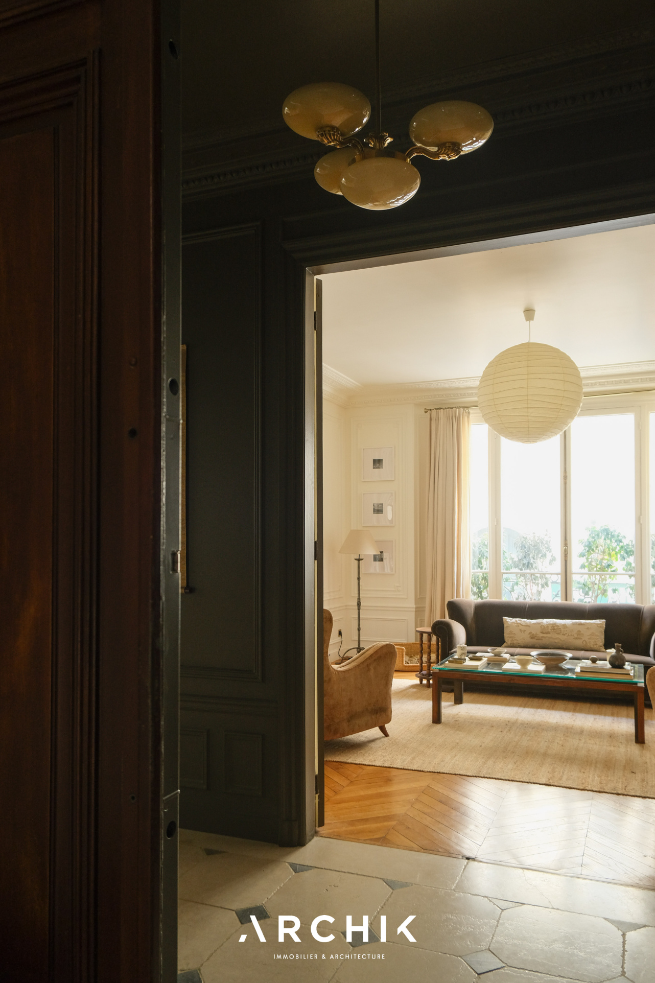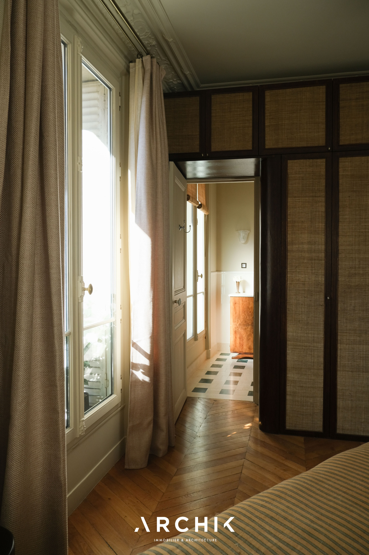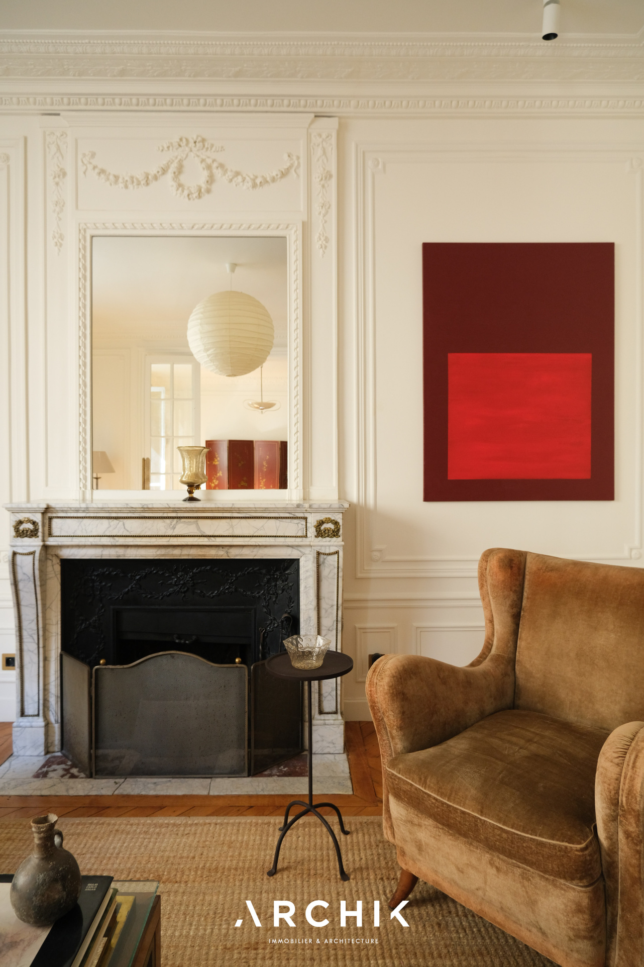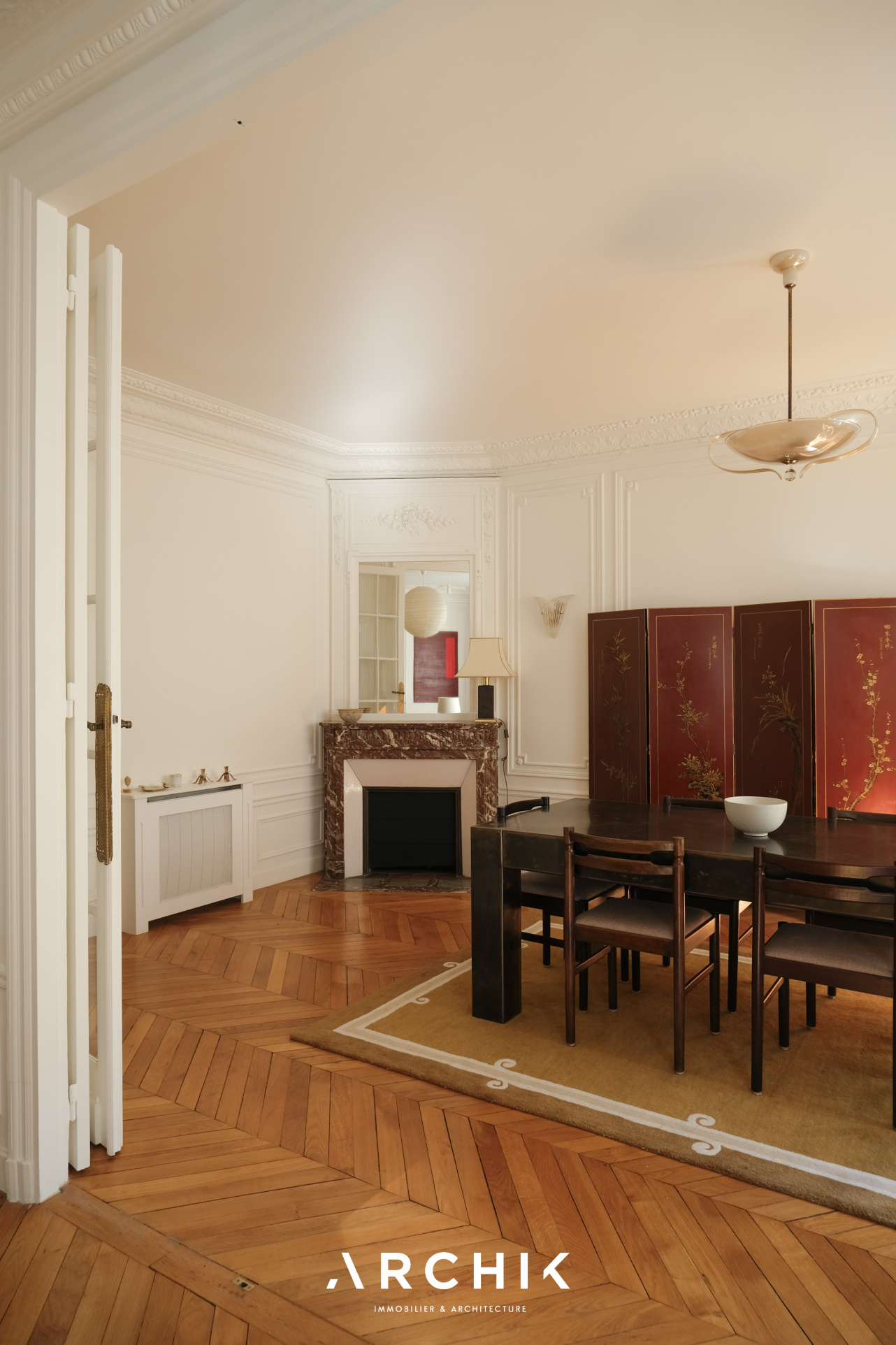 + DE DETAILS PALLADIO PARIS 10ÈME | Lariboisière 1 590 000 € Type de bien Appartement Surface 135 m2 Chambre(s) 3 Courant Art Déco Architecture À vivre Réference AP409 ON AIMESa rénovation d'exceptionSon plan à la fois familial et intimeSa localisation centraleNOUS CONTACTER Architecture du XIXème siècle, cet immeuble typiquement haussmannien cache en son 1er étage avec ascenseur un appartement familial de 135 m2 à l'élégance folle mêlant à la perfection raffinement et simplicité, à quelques pas du convivial marché couvert Saint-Quentin.Fruit de la rénovation entreprise en 2024 par l'architecte Thomas Fournier, fondateur de l'agence CONCINA, en association avec les propriétaires actuels, l'appartement conjugue codes anciens, volumes et éléments d'origine avec une modernité subtile.Tout n'est que détails et contrastes dans ce joyau à l'architecture intérieure intemporelle : l'entrée-galerie révèle un sol avec cabochons en marbre Botticino et pierre bleue, reflété par le magnifique miroir tout hauteur donnant à cet espace une sensation à la fois de grandiose et d'intime avec la teinte sourde de ses murs signée Mériguet-Carrère, offrant un clair-obscur aussi intense que contemplatif. Les doubles portes mettent en exergue le séjour magistral à l'Est. Les larges fenêtres laissent entrer la lumière, la cheminée d'époque en marbre est surmontée d'un trumeau, les moulures conservées et le parquet massif en point de Hongrie sont autant d'éléments transcrivant le raffinement de l'appartement -- chaque détail minutieusement choisi crée une composition harmonieuse. Ces mêmes attributs se retrouvent dans la salle à manger, ornée d'une cheminée en marbre rouge de Caunes-Minervois et ouverte sur l'entrée-galerie, soulignant ainsi la fluidité des espaces. Préservée dans son intimité, la cuisine feutrée incarne à elle seule l'équilibre entre tradition et modernité, comme hors du temps. Ses éléments bordeaux, tels une laque asiatique, laissent deviner la vaisselle à travers ses portes de placard en grillage en laiton méché. Le plan de travail en quartzite du Brésil met en valeur le piano de cuisson Officine Gullo, modèle de prestige à la qualité professionnelle conçu sur mesure, tandis qu'un espace buanderie et un garde-manger discret viennent parfaire la fonctionnalité de la cuisine.La suite parentale en angle profite tant de la lumière de l'Est que celle du Sud, conférant à l'espace un esprit enveloppant, sans faire le sacrifice de nombreux rangements intégrés. Le dressing en chêne teinté et cannage de fibre de paille s'ouvre tel un écrin, révélant la salle d'eau dans toute sa splendeur. Celle-ci joue avec brio le mix and match avec l'esprit anglais de sa robinetterie, son somptueux sol en marbre Botticino et vert du Gange inspiré du musée Nissim de Camondo et ses appliques Murano comme touche finale.En retrait d'un couloir dissimulant de nombreux rangements se développe l'aile plus intime et feutrée de l'appartement, comprenant deux chambres aux belles proportions et aux ambiances différentes grâce aux diverses teintes Farrow and Ball et Mériguet-Carrère utilisées. Elles se partagent une salle de bain digne d'un palace florentin, avec toujours en fil conducteur son sol en Botticino, cette fois-ci sublimé par du marbre Emperador, et sa robinetterie vintage chromée.Une cave ainsi qu'une gardienne viennent compléter les multiples prestations de l'appartement. Une rénovation subtile et maîtrisée, alliant charme français, faste italien et distinction anglaise, mise en lumière par plusieurs éditions internationales d'Architectural Digest. LE QUARTIER Lariboisière Situé entre le boulevard de la Chapelle et la rue de Paradis, le quartier Lariboisière regorge de bonnes adresses gourmandes à ne pas manquer. VOTRE CONTACT Marine COCAIGN 06 77 21 92 83 marine.cocaign@archik.fr DIAGNOSTICTRANSPORTSM4-5-7 GARE DE L'EST I M7 POISSONIERE I RER E MAGENTAPARTAGERDétail du diagnostic Diagnostic de performance énergétique 320 KWh/m².an 10* kg CO2/m².an Logement économeABCDEFGLogement énergivore DPE vierge Consommations non exploitables Non soumis au diagnostic * Dont émissions de gaz à effet de serreFaible émission de GESABCDEFGForte émission de GES 10 KgéqCO2 / m².an GES vierge Consommations non exploitables Montant estimé des dépenses annuelles d'énergie pour un usage standard : entre 3220 et 4400 € TTC/an . Date de référence des prix de l'énergie pour établie cette estimation : 01/01/2025 Les informations sur les risques auxquels ce bien est exposé sont disponibles sur le site Géorisques : www.georisques.gouv.fr Vous souhaitez avoir plus d'informations ? Remplissez le formulaire ou contactez directement la personne en charge de ce bien. NOM* PRÉNOM* EMAIL* TÉLÉPHONE* MESSAGE Je souhaite recevoir la Newsletter ARCHIK VOTRE CONTACT Marine COCAIGN 06 77 21 92 83 marine.cocaign@archik.fr Découvrez aussi ...VENDRENos biens en venteNOS BIENS VENDUS