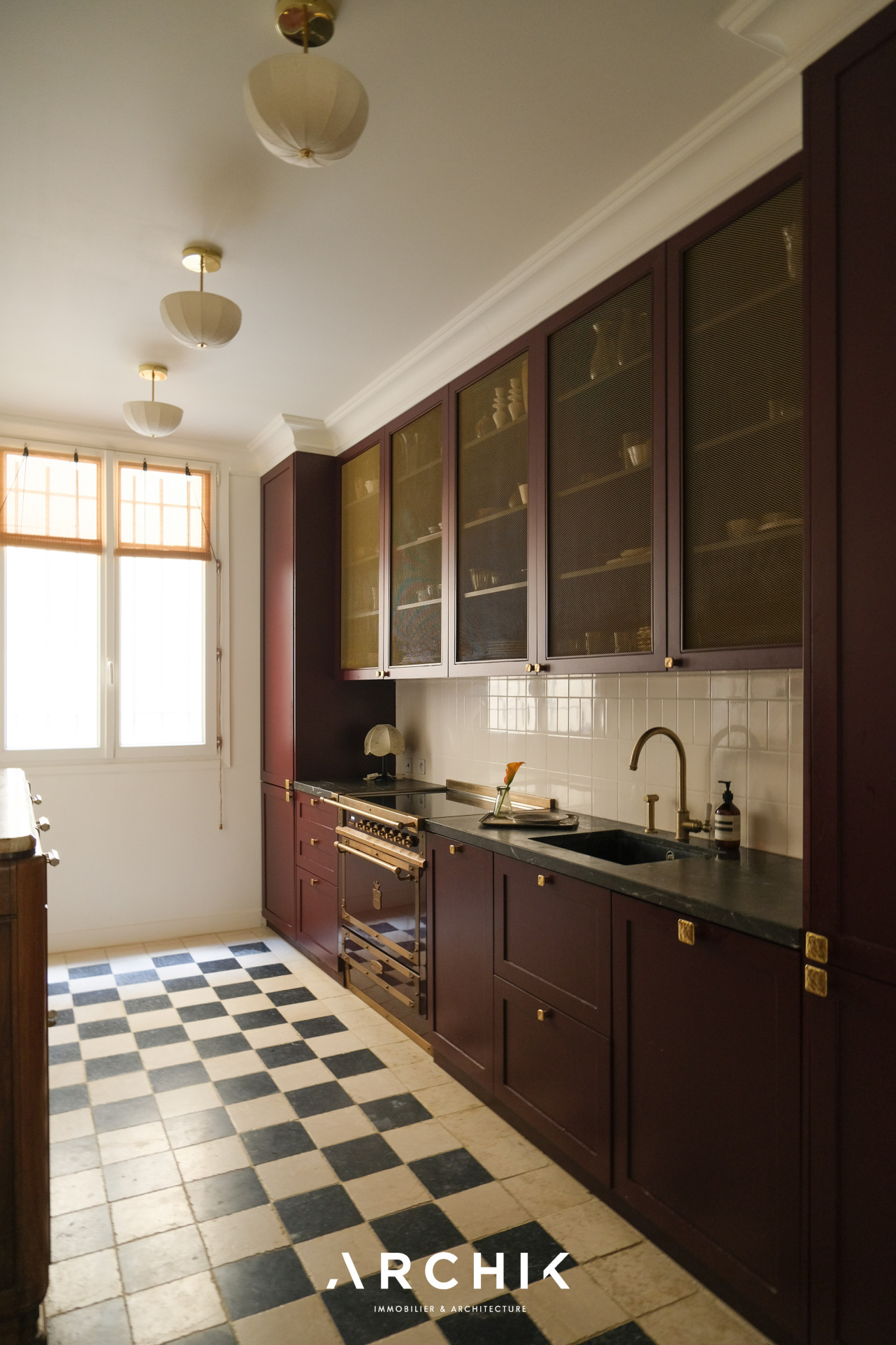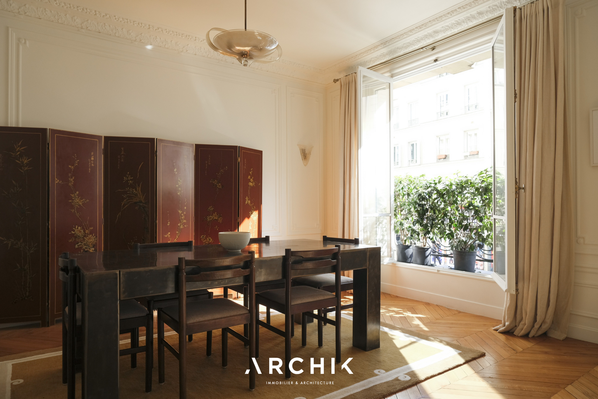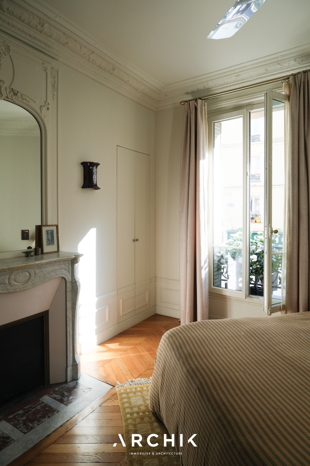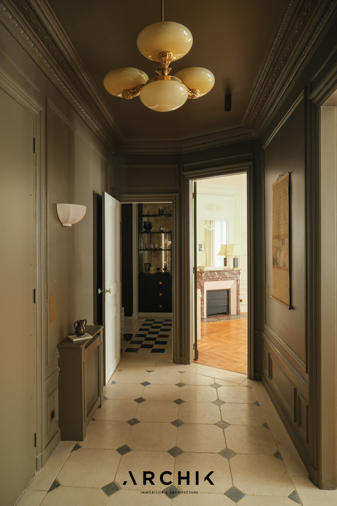 + DE DETAILS PALLADIO PARIS 10ÈME | Lariboisière 1 590 000 € Type de bien Appartement Surface 135 m2 Chambre(s) 3 Courant Art Déco Architecture À vivre Réference AP409 ON AIMESa rénovation d'exceptionSon plan à la fois familial et intimeSa localisation centraleNOUS CONTACTER Architecture du XIXème siècle, cet immeuble typiquement haussmannien cache en son 1er étage avec ascenseur un appartement familial de 135 m2 à l'élégance folle mêlant à la perfection raffinement et simplicité, à quelques pas du convivial marché couvert Saint-Quentin.Fruit de la rénovation entreprise en 2024 par l'architecte Thomas Fournier, fondateur de l'agence CONCINA, en association avec les propriétaires actuels, l'appartement conjugue codes anciens, volumes et éléments d'origine avec une modernité subtile.Tout n'est que détails et contrastes dans ce joyau à l'architecture intérieure intemporelle : l'entrée-galerie révèle un sol avec cabochons en marbre Botticino et pierre bleue, reflété par le magnifique miroir tout hauteur donnant à cet espace une sensation à la fois de grandiose et d'intime avec la teinte sourde de ses murs signée Mériguet-Carrère, offrant un clair-obscur aussi intense que contemplatif. Les doubles portes mettent en exergue le séjour magistral à l'Est. Les larges fenêtres laissent entrer la lumière, la cheminée d'époque en marbre est surmontée d'un trumeau, les moulures conservées et le parquet massif en point de Hongrie sont autant d'éléments transcrivant le raffinement de l'appartement -- chaque détail minutieusement choisi crée une composition harmonieuse. Ces mêmes attributs se retrouvent dans la salle à manger, ornée d'une cheminée en marbre rouge de Caunes-Minervois et ouverte sur l'entrée-galerie, soulignant ainsi la fluidité des espaces. Préservée dans son intimité, la cuisine feutrée incarne à elle seule l'équilibre entre tradition et modernité, comme hors du temps. Ses éléments bordeaux, tels une laque asiatique, laissent deviner la vaisselle à travers ses portes de placard en grillage en laiton méché. Le plan de travail en quartzite du Brésil met en valeur le piano de cuisson Officine Gullo, modèle de prestige à la qualité professionnelle conçu sur mesure, tandis qu'un espace buanderie et un garde-manger discret viennent parfaire la fonctionnalité de la cuisine.La suite parentale en angle profite tant de la lumière de l'Est que celle du Sud, conférant à l'espace un esprit enveloppant, sans faire le sacrifice de nombreux rangements intégrés. Le dressing en chêne teinté et cannage de fibre de paille s'ouvre tel un écrin, révélant la salle d'eau dans toute sa splendeur. Celle-ci joue avec brio le mix and match avec l'esprit anglais de sa robinetterie, son somptueux sol en marbre Botticino et vert du Gange inspiré du musée Nissim de Camondo et ses appliques Murano comme touche finale.En retrait d'un couloir dissimulant de nombreux rangements se développe l'aile plus intime et feutrée de l'appartement, comprenant deux chambres aux belles proportions et aux ambiances différentes grâce aux diverses teintes Farrow and Ball et Mériguet-Carrère utilisées. Elles se partagent une salle de bain digne d'un palace florentin, avec toujours en fil conducteur son sol en Botticino, cette fois-ci sublimé par du marbre Emperador, et sa robinetterie vintage chromée.Une cave ainsi qu'une gardienne viennent compléter les multiples prestations de l'appartement. Une rénovation subtile et maîtrisée, alliant charme français, faste italien et distinction anglaise, mise en lumière par plusieurs éditions internationales d'Architectural Digest. LE QUARTIER Lariboisière Situé entre le boulevard de la Chapelle et la rue de Paradis, le quartier Lariboisière regorge de bonnes adresses gourmandes à ne pas manquer. VOTRE CONTACT Marine COCAIGN 06 77 21 92 83 marine.cocaign@archik.fr DIAGNOSTICTRANSPORTSM4-5-7 GARE DE L'EST I M7 POISSONIERE I RER E MAGENTAPARTAGERDétail du diagnostic Diagnostic de performance énergétique 320 KWh/m².an 10* kg CO2/m².an Logement économeABCDEFGLogement énergivore DPE vierge Consommations non exploitables Non soumis au diagnostic * Dont émissions de gaz à effet de serreFaible émission de GESABCDEFGForte émission de GES 10 KgéqCO2 / m².an GES vierge Consommations non exploitables Montant estimé des dépenses annuelles d'énergie pour un usage standard : entre 3220 et 4400 € TTC/an . Date de référence des prix de l'énergie pour établie cette estimation : 01/01/2025 Les informations sur les risques auxquels ce bien est exposé sont disponibles sur le site Géorisques : www.georisques.gouv.fr Vous souhaitez avoir plus d'informations ? Remplissez le formulaire ou contactez directement la personne en charge de ce bien. NOM* PRÉNOM* EMAIL* TÉLÉPHONE* MESSAGE Je souhaite recevoir la Newsletter ARCHIK VOTRE CONTACT Marine COCAIGN 06 77 21 92 83 marine.cocaign@archik.fr Découvrez aussi ...VENDRENos biens en venteNOS BIENS VENDUS