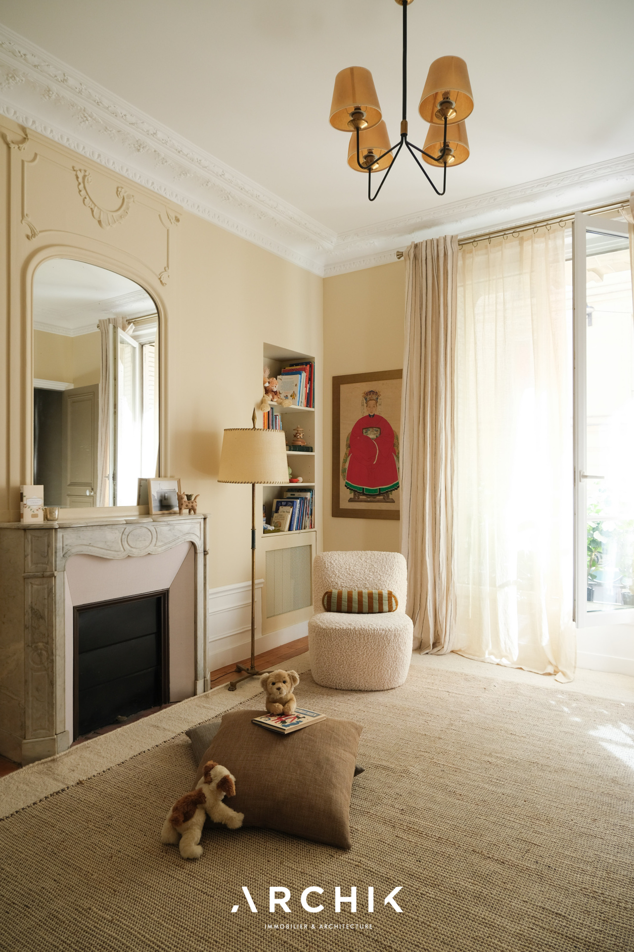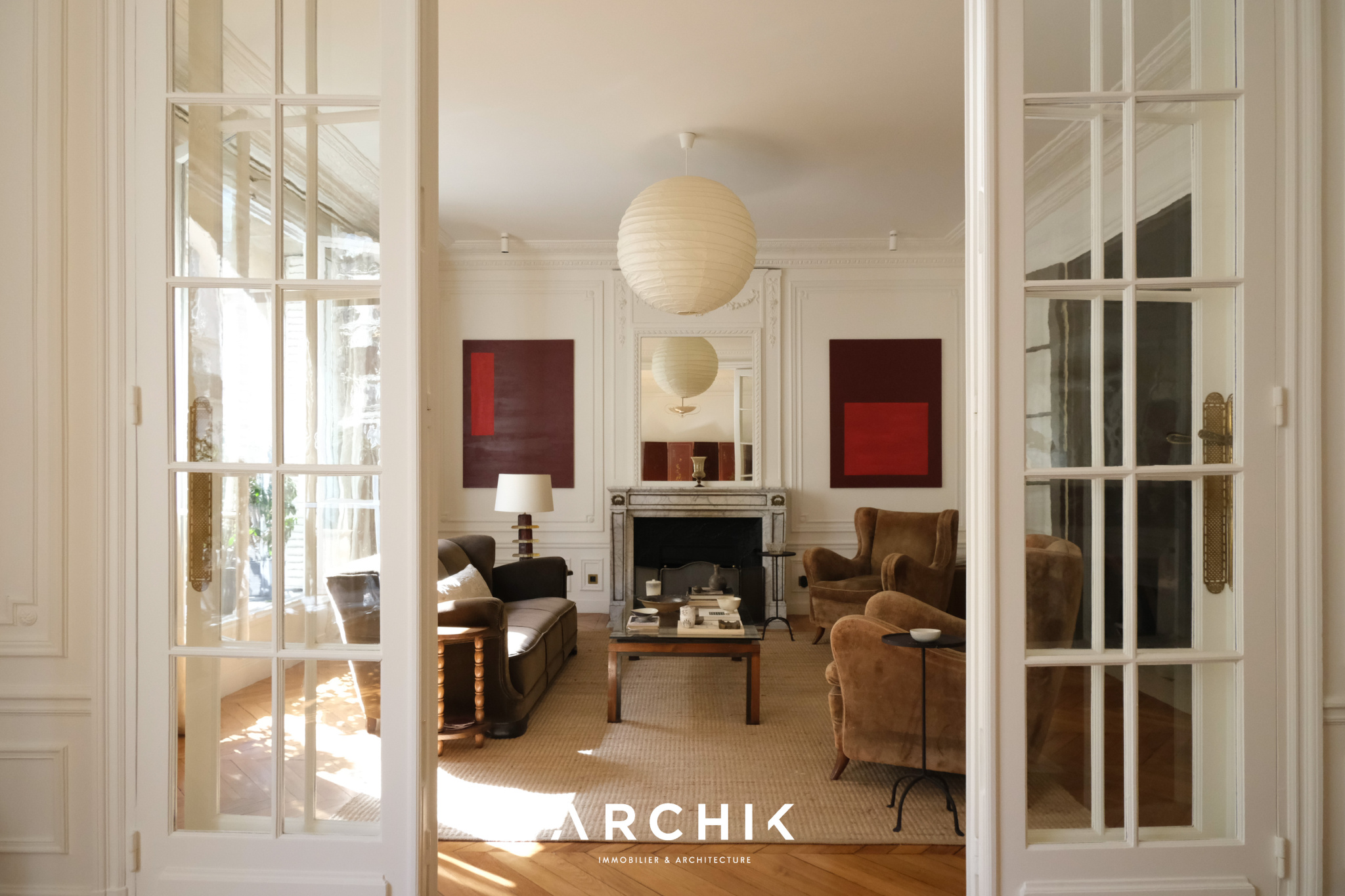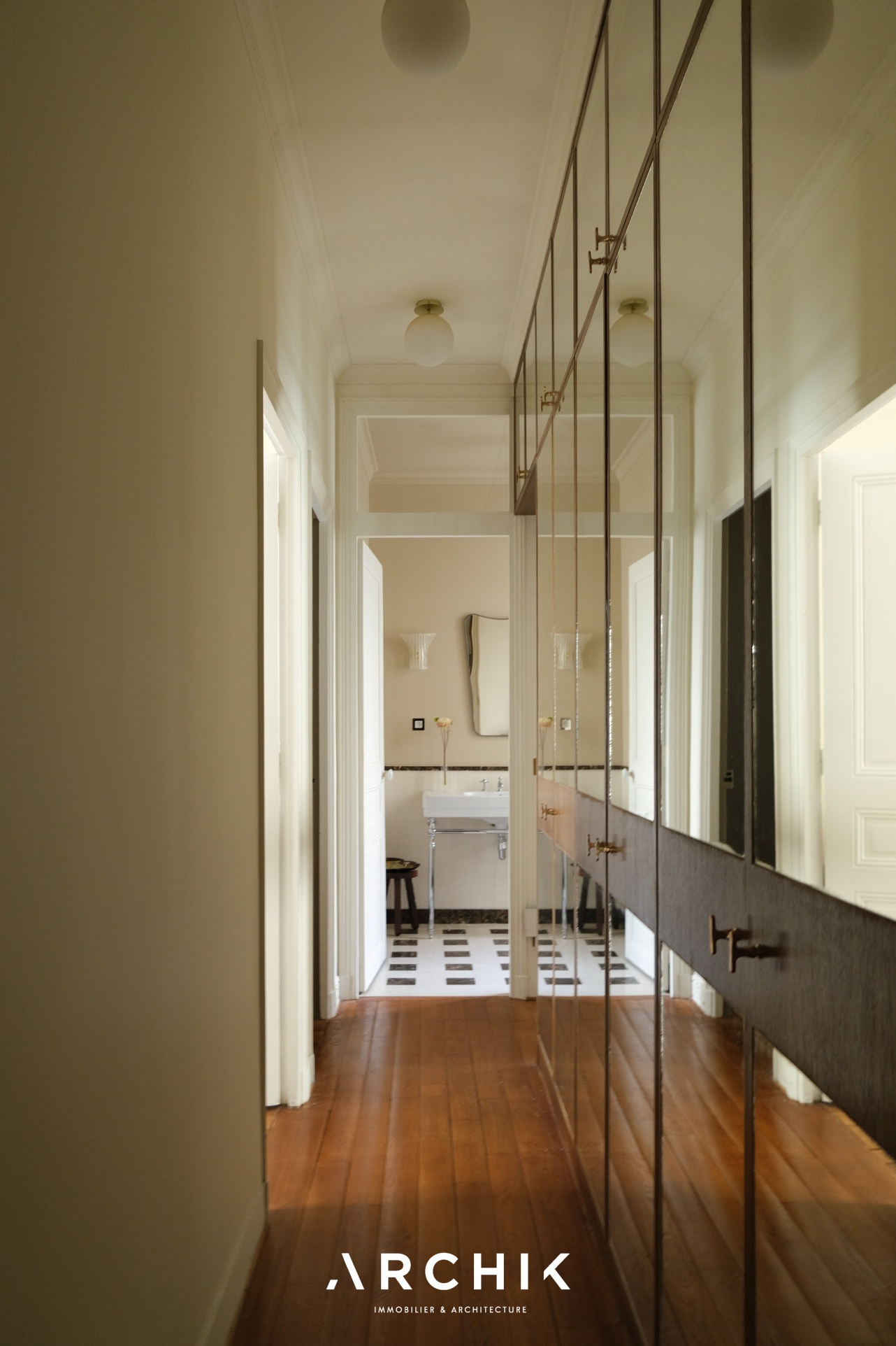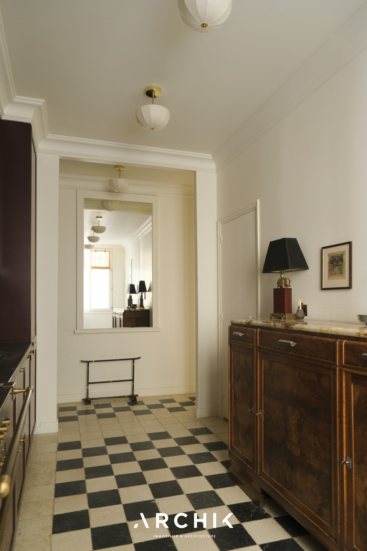 + DE DETAILS PALLADIO PARIS 10ÈME | Lariboisière 1 590 000 € Type de bien Appartement Surface 135 m2 Chambre(s) 3 Courant Art Déco Architecture À vivre Réference AP409 ON AIMESa rénovation d'exceptionSon plan à la fois familial et intimeSa localisation centraleNOUS CONTACTER Architecture du XIXème siècle, cet immeuble typiquement haussmannien cache en son 1er étage avec ascenseur un appartement familial de 135 m2 à l'élégance folle mêlant à la perfection raffinement et simplicité, à quelques pas du convivial marché couvert Saint-Quentin.Fruit de la rénovation entreprise en 2024 par l'architecte Thomas Fournier, fondateur de l'agence CONCINA, en association avec les propriétaires actuels, l'appartement conjugue codes anciens, volumes et éléments d'origine avec une modernité subtile.Tout n'est que détails et contrastes dans ce joyau à l'architecture intérieure intemporelle : l'entrée-galerie révèle un sol avec cabochons en marbre Botticino et pierre bleue, reflété par le magnifique miroir tout hauteur donnant à cet espace une sensation à la fois de grandiose et d'intime avec la teinte sourde de ses murs signée Mériguet-Carrère, offrant un clair-obscur aussi intense que contemplatif. Les doubles portes mettent en exergue le séjour magistral à l'Est. Les larges fenêtres laissent entrer la lumière, la cheminée d'époque en marbre est surmontée d'un trumeau, les moulures conservées et le parquet massif en point de Hongrie sont autant d'éléments transcrivant le raffinement de l'appartement -- chaque détail minutieusement choisi crée une composition harmonieuse. Ces mêmes attributs se retrouvent dans la salle à manger, ornée d'une cheminée en marbre rouge de Caunes-Minervois et ouverte sur l'entrée-galerie, soulignant ainsi la fluidité des espaces. Préservée dans son intimité, la cuisine feutrée incarne à elle seule l'équilibre entre tradition et modernité, comme hors du temps. Ses éléments bordeaux, tels une laque asiatique, laissent deviner la vaisselle à travers ses portes de placard en grillage en laiton méché. Le plan de travail en quartzite du Brésil met en valeur le piano de cuisson Officine Gullo, modèle de prestige à la qualité professionnelle conçu sur mesure, tandis qu'un espace buanderie et un garde-manger discret viennent parfaire la fonctionnalité de la cuisine.La suite parentale en angle profite tant de la lumière de l'Est que celle du Sud, conférant à l'espace un esprit enveloppant, sans faire le sacrifice de nombreux rangements intégrés. Le dressing en chêne teinté et cannage de fibre de paille s'ouvre tel un écrin, révélant la salle d'eau dans toute sa splendeur. Celle-ci joue avec brio le mix and match avec l'esprit anglais de sa robinetterie, son somptueux sol en marbre Botticino et vert du Gange inspiré du musée Nissim de Camondo et ses appliques Murano comme touche finale.En retrait d'un couloir dissimulant de nombreux rangements se développe l'aile plus intime et feutrée de l'appartement, comprenant deux chambres aux belles proportions et aux ambiances différentes grâce aux diverses teintes Farrow and Ball et Mériguet-Carrère utilisées. Elles se partagent une salle de bain digne d'un palace florentin, avec toujours en fil conducteur son sol en Botticino, cette fois-ci sublimé par du marbre Emperador, et sa robinetterie vintage chromée.Une cave ainsi qu'une gardienne viennent compléter les multiples prestations de l'appartement. Une rénovation subtile et maîtrisée, alliant charme français, faste italien et distinction anglaise, mise en lumière par plusieurs éditions internationales d'Architectural Digest. LE QUARTIER Lariboisière Situé entre le boulevard de la Chapelle et la rue de Paradis, le quartier Lariboisière regorge de bonnes adresses gourmandes à ne pas manquer. VOTRE CONTACT Marine COCAIGN 06 77 21 92 83 marine.cocaign@archik.fr DIAGNOSTICTRANSPORTSM4-5-7 GARE DE L'EST I M7 POISSONIERE I RER E MAGENTAPARTAGERDétail du diagnostic Diagnostic de performance énergétique 320 KWh/m².an 10* kg CO2/m².an Logement économeABCDEFGLogement énergivore DPE vierge Consommations non exploitables Non soumis au diagnostic * Dont émissions de gaz à effet de serreFaible émission de GESABCDEFGForte émission de GES 10 KgéqCO2 / m².an GES vierge Consommations non exploitables Montant estimé des dépenses annuelles d'énergie pour un usage standard : entre 3220 et 4400 € TTC/an . Date de référence des prix de l'énergie pour établie cette estimation : 01/01/2025 Les informations sur les risques auxquels ce bien est exposé sont disponibles sur le site Géorisques : www.georisques.gouv.fr Vous souhaitez avoir plus d'informations ? Remplissez le formulaire ou contactez directement la personne en charge de ce bien. NOM* PRÉNOM* EMAIL* TÉLÉPHONE* MESSAGE Je souhaite recevoir la Newsletter ARCHIK VOTRE CONTACT Marine COCAIGN 06 77 21 92 83 marine.cocaign@archik.fr Découvrez aussi ...VENDRENos biens en venteNOS BIENS VENDUS