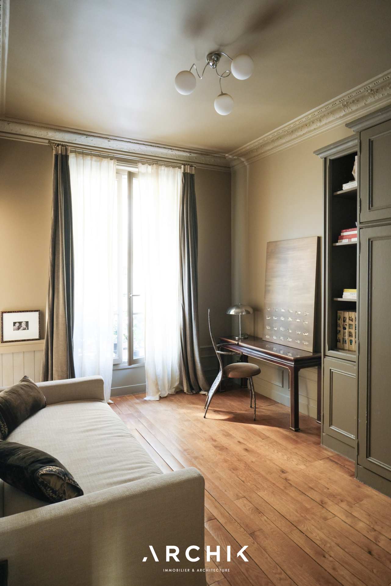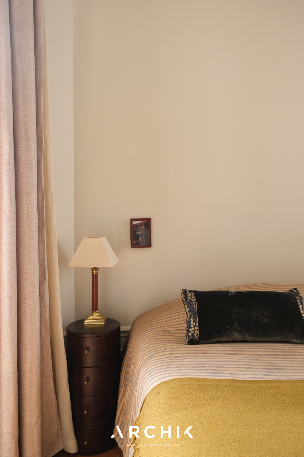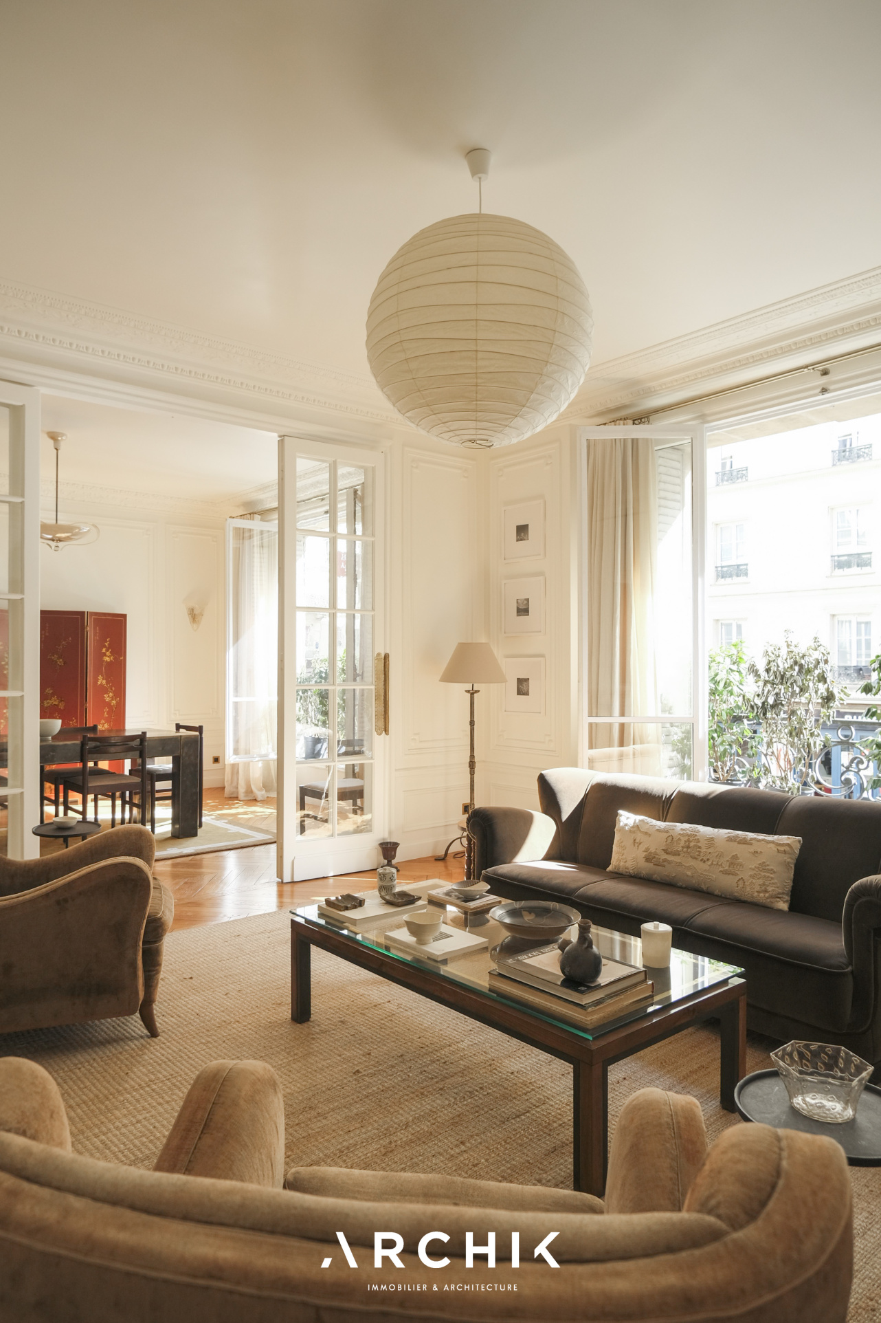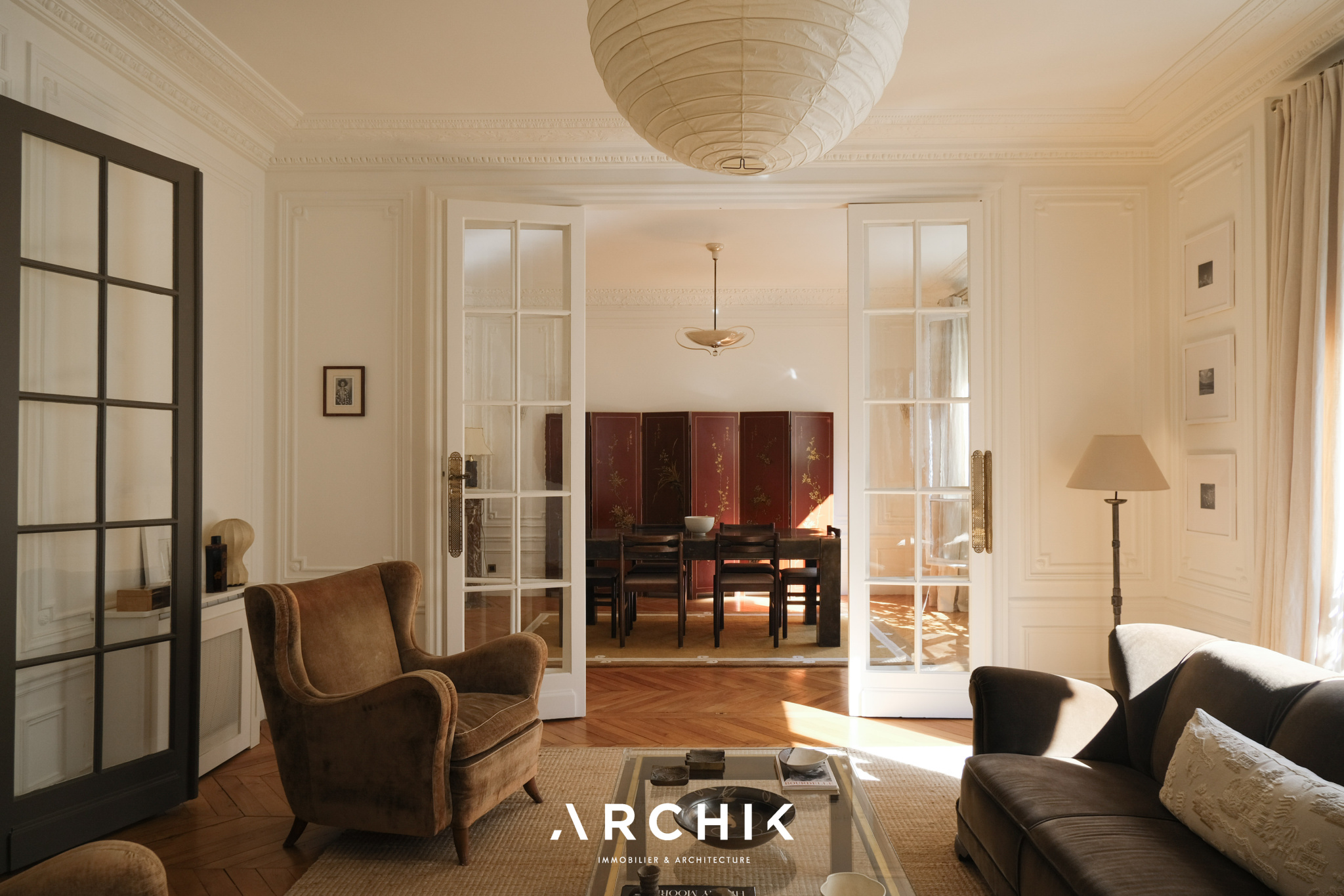 + DE DETAILS PALLADIO PARIS 10ÈME | Lariboisière 1 590 000 € Type de bien Appartement Surface 135 m2 Chambre(s) 3 Courant Art Déco Architecture À vivre Réference AP409 ON AIMESa rénovation d'exceptionSon plan à la fois familial et intimeSa localisation centraleNOUS CONTACTER Architecture du XIXème siècle, cet immeuble typiquement haussmannien cache en son 1er étage avec ascenseur un appartement familial de 135 m2 à l'élégance folle mêlant à la perfection raffinement et simplicité, à quelques pas du convivial marché couvert Saint-Quentin.Fruit de la rénovation entreprise en 2024 par l'architecte Thomas Fournier, fondateur de l'agence CONCINA, en association avec les propriétaires actuels, l'appartement conjugue codes anciens, volumes et éléments d'origine avec une modernité subtile.Tout n'est que détails et contrastes dans ce joyau à l'architecture intérieure intemporelle : l'entrée-galerie révèle un sol avec cabochons en marbre Botticino et pierre bleue, reflété par le magnifique miroir tout hauteur donnant à cet espace une sensation à la fois de grandiose et d'intime avec la teinte sourde de ses murs signée Mériguet-Carrère, offrant un clair-obscur aussi intense que contemplatif. Les doubles portes mettent en exergue le séjour magistral à l'Est. Les larges fenêtres laissent entrer la lumière, la cheminée d'époque en marbre est surmontée d'un trumeau, les moulures conservées et le parquet massif en point de Hongrie sont autant d'éléments transcrivant le raffinement de l'appartement -- chaque détail minutieusement choisi crée une composition harmonieuse. Ces mêmes attributs se retrouvent dans la salle à manger, ornée d'une cheminée en marbre rouge de Caunes-Minervois et ouverte sur l'entrée-galerie, soulignant ainsi la fluidité des espaces. Préservée dans son intimité, la cuisine feutrée incarne à elle seule l'équilibre entre tradition et modernité, comme hors du temps. Ses éléments bordeaux, tels une laque asiatique, laissent deviner la vaisselle à travers ses portes de placard en grillage en laiton méché. Le plan de travail en quartzite du Brésil met en valeur le piano de cuisson Officine Gullo, modèle de prestige à la qualité professionnelle conçu sur mesure, tandis qu'un espace buanderie et un garde-manger discret viennent parfaire la fonctionnalité de la cuisine.La suite parentale en angle profite tant de la lumière de l'Est que celle du Sud, conférant à l'espace un esprit enveloppant, sans faire le sacrifice de nombreux rangements intégrés. Le dressing en chêne teinté et cannage de fibre de paille s'ouvre tel un écrin, révélant la salle d'eau dans toute sa splendeur. Celle-ci joue avec brio le mix and match avec l'esprit anglais de sa robinetterie, son somptueux sol en marbre Botticino et vert du Gange inspiré du musée Nissim de Camondo et ses appliques Murano comme touche finale.En retrait d'un couloir dissimulant de nombreux rangements se développe l'aile plus intime et feutrée de l'appartement, comprenant deux chambres aux belles proportions et aux ambiances différentes grâce aux diverses teintes Farrow and Ball et Mériguet-Carrère utilisées. Elles se partagent une salle de bain digne d'un palace florentin, avec toujours en fil conducteur son sol en Botticino, cette fois-ci sublimé par du marbre Emperador, et sa robinetterie vintage chromée.Une cave ainsi qu'une gardienne viennent compléter les multiples prestations de l'appartement. Une rénovation subtile et maîtrisée, alliant charme français, faste italien et distinction anglaise, mise en lumière par plusieurs éditions internationales d'Architectural Digest. LE QUARTIER Lariboisière Situé entre le boulevard de la Chapelle et la rue de Paradis, le quartier Lariboisière regorge de bonnes adresses gourmandes à ne pas manquer. VOTRE CONTACT Marine COCAIGN 06 77 21 92 83 marine.cocaign@archik.fr DIAGNOSTICTRANSPORTSM4-5-7 GARE DE L'EST I M7 POISSONIERE I RER E MAGENTAPARTAGERDétail du diagnostic Diagnostic de performance énergétique 320 KWh/m².an 10* kg CO2/m².an Logement économeABCDEFGLogement énergivore DPE vierge Consommations non exploitables Non soumis au diagnostic * Dont émissions de gaz à effet de serreFaible émission de GESABCDEFGForte émission de GES 10 KgéqCO2 / m².an GES vierge Consommations non exploitables Montant estimé des dépenses annuelles d'énergie pour un usage standard : entre 3220 et 4400 € TTC/an . Date de référence des prix de l'énergie pour établie cette estimation : 01/01/2025 Les informations sur les risques auxquels ce bien est exposé sont disponibles sur le site Géorisques : www.georisques.gouv.fr Vous souhaitez avoir plus d'informations ? Remplissez le formulaire ou contactez directement la personne en charge de ce bien. NOM* PRÉNOM* EMAIL* TÉLÉPHONE* MESSAGE Je souhaite recevoir la Newsletter ARCHIK VOTRE CONTACT Marine COCAIGN 06 77 21 92 83 marine.cocaign@archik.fr Découvrez aussi ...VENDRENos biens en venteNOS BIENS VENDUS