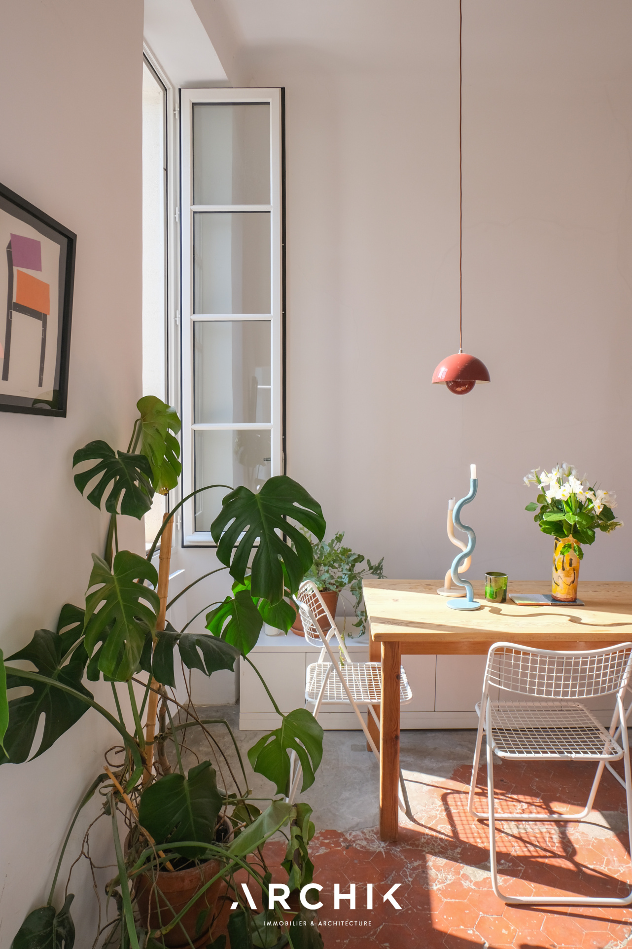 + DE DETAILS PASSÉ RECOMPOSÉ MARSEILLE 7ÈME | Bompard 215 000 € Type de bien Appartement Surface 35 m2 Chambre(s) 1 Courant Art Nouveau Architecture À vivre Réference OP1789 ON AIMESes vues dégagéesSa lumière du SudSa décoration précise et singulièreNOUS CONTACTER Architecture début XXème siècle, ce petit immeuble non mitoyen situé dans le quartier prisé de Bompard, à deux pas des commerces de la rue d'Endoume, accueille en son 1er étage sans ascenseur un appartement de caractère de 35 m2 dans un environnement calme et verdoyant.Rénové en 2021 par le cabinet d'architecture Surface Studio, l'appartement marie les codes marseillais à une relecture subtile et minérale. Tomettes, murs brut et mobilier sur-mesure habillent les volumes de l'appartement.La pièce de vie baignée de lumière se découvre subtilement derrière une porte en arche dans un esprit brut et singulier. La cuisine immaculée s'habille d'un sol enduit de ciment et d'une crédence carrelée qui s'articule autour des vestiges du passés polis et mis en lumière. Le coin salle à manger encadré d'une banquette se prolonge par le salon. Attenante, La chambre a été repensée pour optimiser le rangement et profiter depuis le lit d'une vue dominante et verdoyante. La salle d'eau reprend les codes de la cuisine et s'égaye de carreaux bleu méditerranéen. Un lieu de vie brut aux teintes douces. LE QUARTIER Bompard Le quartier très populaire de Bompard commence en dessous de Notre-Dame de la Garde... VOTRE CONTACT Ohanna MACÉ 06 88 63 60 87 ohanna.mace@archik.fr DIAGNOSTICTRANSPORTSBUS 80PARTAGERDétail du diagnostic Diagnostic de performance énergétique 250 KWh/m².an 8* kg CO2/m².an Logement économeABCDEFGLogement énergivore DPE vierge Consommations non exploitables Non soumis au diagnostic * Dont émissions de gaz à effet de serreFaible émission de GESABCDEFGForte émission de GES 8 KgéqCO2 / m².an GES vierge Consommations non exploitables Montant estimé des dépenses annuelles d'énergie pour un usage standard : entre 730 et 1020 € TTC/an . Date de référence des prix de l'énergie pour établie cette estimation : 01/01/2025 Les informations sur les risques auxquels ce bien est exposé sont disponibles sur le site Géorisques : www.georisques.gouv.fr Vous souhaitez avoir plus d'informations ? Remplissez le formulaire ou contactez directement la personne en charge de ce bien. NOM* PRÉNOM* EMAIL* TÉLÉPHONE* MESSAGE Je souhaite recevoir la Newsletter ARCHIK VOTRE CONTACT Ohanna MACÉ 06 88 63 60 87 ohanna.mace@archik.fr Découvrez aussi ...VENDRENos biens en venteNOS BIENS VENDUS