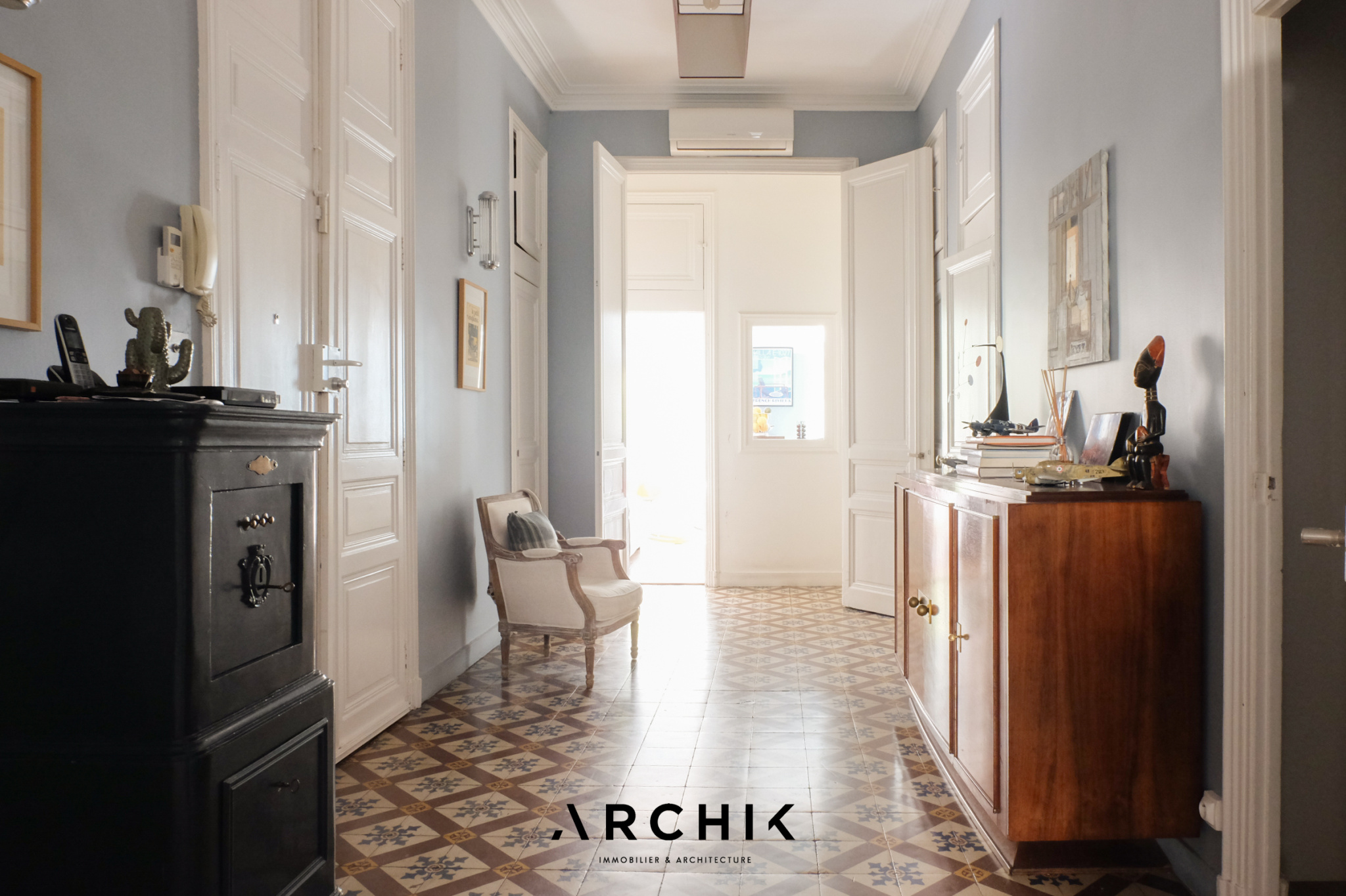 + DE DETAILS PATINE MARSEILLE 6ÈME | Palais de Justice 790 000 € Type de bien Appartement Surface 165 m2 Chambre(s) 3 Extérieur Terrasse, balcon Courant Art Nouveau Architecture À vivre Réference OP1778 ON AIMELa terrasse comme un jardin suspendu Le jeu subtil entre patrimoine et modernitéLes volumes traversantsNOUS CONTACTER Architecture du XIXème siècle, ce bel immeuble bourgeois situé dans le quartier central du palais de justice accueille en son 2ème étage avec ascenseur un superbe appartement de 165 m2 et sa terrasse de 21 m2 au Sud alliant élégance classique et inspiration contemporaine.Rénové avec soin, l'appartement a retrouvé ses attributs d'origine - moulures, hauts plafonds, cheminées en marbre - réinterprétés dans une lecture plus actuelle. Traversant, il s'ouvre sur une entrée sublimée aux carreaux de ciment anciens qui distribue les espaces. Une vaste pièce à vivre baignée de lumière au Sud s'ouvre par trois grandes portes-fenêtres sur l'extérieur. Délimitée par un comptoir, la cuisine dialogue avec la salle à manger encadrée de niches et le salon rassemblé autour d'une cheminée. L'ensemble se prolonge naturellement vers la terrasse, envahie par les arbres anciens des jardins environnants et offrant une respiration en coeur de ville.Au Nord, le calme domine. La suite parentale s'accompagne d'un généreux dressing et d'une salle d'eau aux tonalités claires et élégantes. Deux autres chambres, dont une avec mezzanine, se partagent une salle d'eau. En complément, deux chambres de service ainsi qu'une cave de 14 m2 parachèvent ce bien au charme intemporel. Un bien réinventé, entre charme patrimonial et lumière contemporaine. LE QUARTIER Palais de Justice À deux pas du Vieux-Port, il est entouré de boutiques, restaurants et adresses branchées. VOTRE CONTACT Marie TISSERAND 06 76 04 18 30 marie.tisserand@archik.fr DIAGNOSTICTRANSPORTSBUS 49 81 97 41 60 I METRO M1PARTAGERDétail du diagnostic Diagnostic de performance énergétique 71 KWh/m².an 2* kg CO2/m².an Logement économeABCDEFGLogement énergivore DPE vierge Consommations non exploitables Non soumis au diagnostic * Dont émissions de gaz à effet de serreFaible émission de GESABCDEFGForte émission de GES 2 KgéqCO2 / m².an GES vierge Consommations non exploitables Montant estimé des dépenses annuelles d'énergie pour un usage standard : entre 890 et 1250 € TTC/an . Date de référence des prix de l'énergie pour établie cette estimation : 01/01/2025 Les informations sur les risques auxquels ce bien est exposé sont disponibles sur le site Géorisques : www.georisques.gouv.fr Vous souhaitez avoir plus d'informations ? Remplissez le formulaire ou contactez directement la personne en charge de ce bien. NOM* PRÉNOM* EMAIL* TÉLÉPHONE* MESSAGE Je souhaite recevoir la Newsletter ARCHIK VOTRE CONTACT Marie TISSERAND 06 76 04 18 30 marie.tisserand@archik.fr Découvrez aussi ...VENDRENos biens en venteNOS BIENS VENDUS