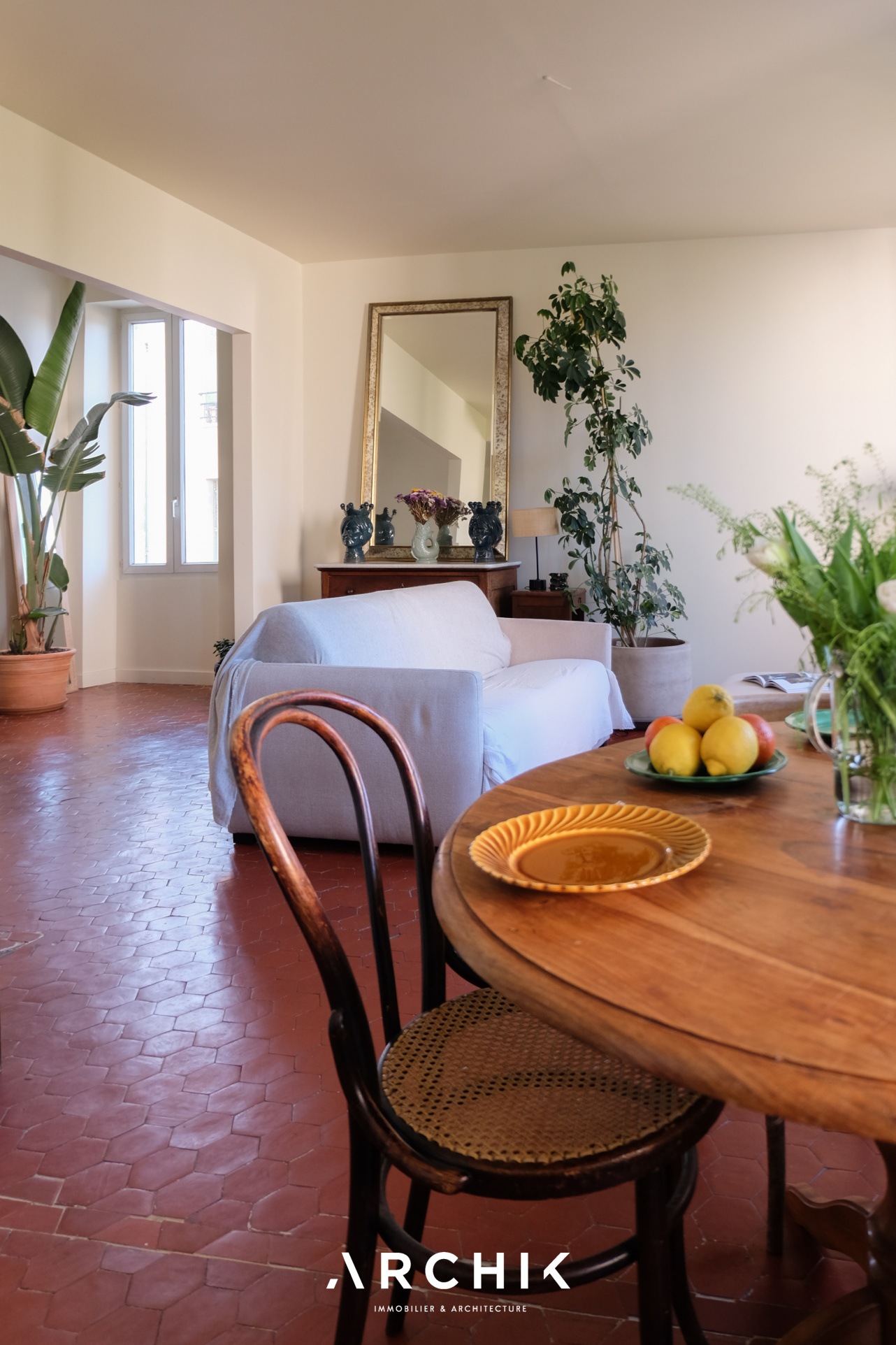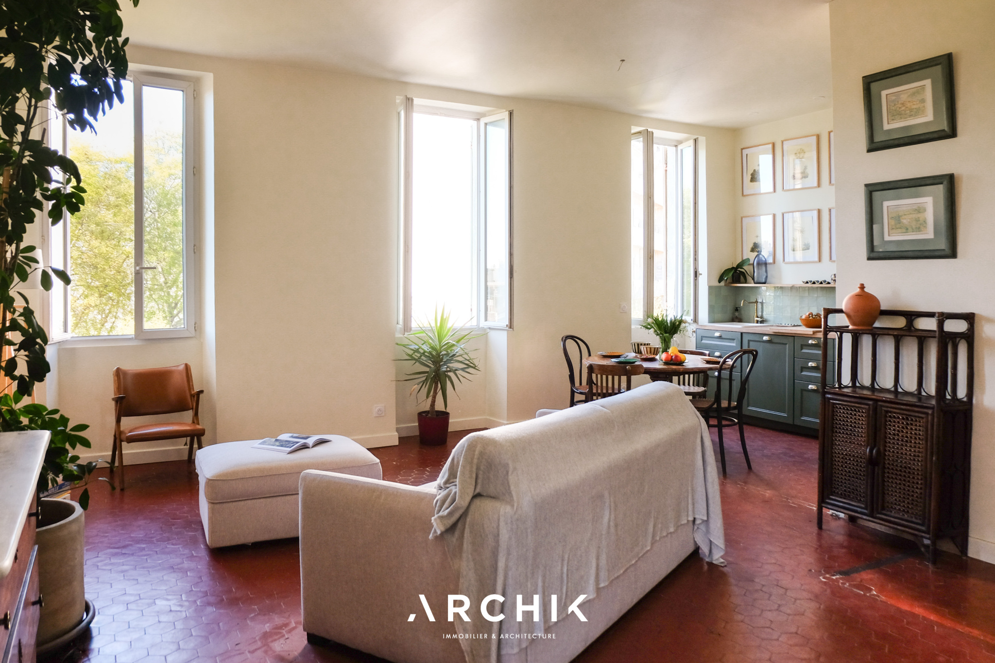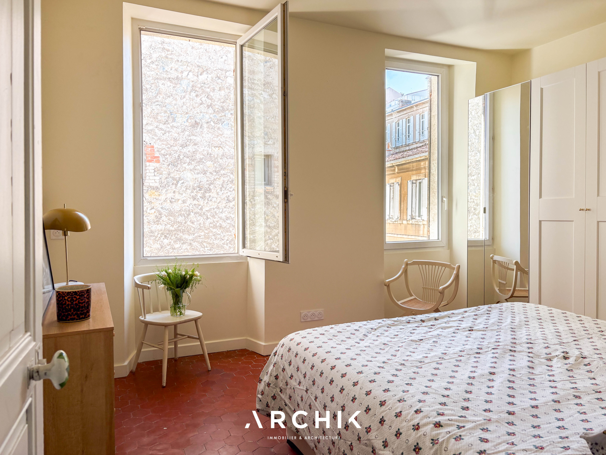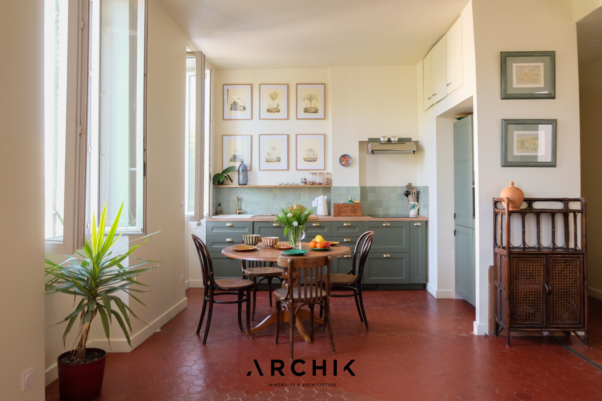 Entièrement rénové en 2025 par ses propriétaires, ce bien joue avec subtilité du charme de l'ancien, créant ainsi une atmosphère légèrement désuète où chaque détail est pensé avec soin. Dès l'entrée, la pièce de vie à la fois conviviale et apaisante, séduit par ses beaux volumes et sa luminosité grâce à deux larges ouvertures. Les tomettes anciennes s'accordent avec élégance à la délicatesse de la cuisine, sublimée par des faïences raffinées et un plan de travail en bois chaleureux, évoquant l'esprit d'une maison.