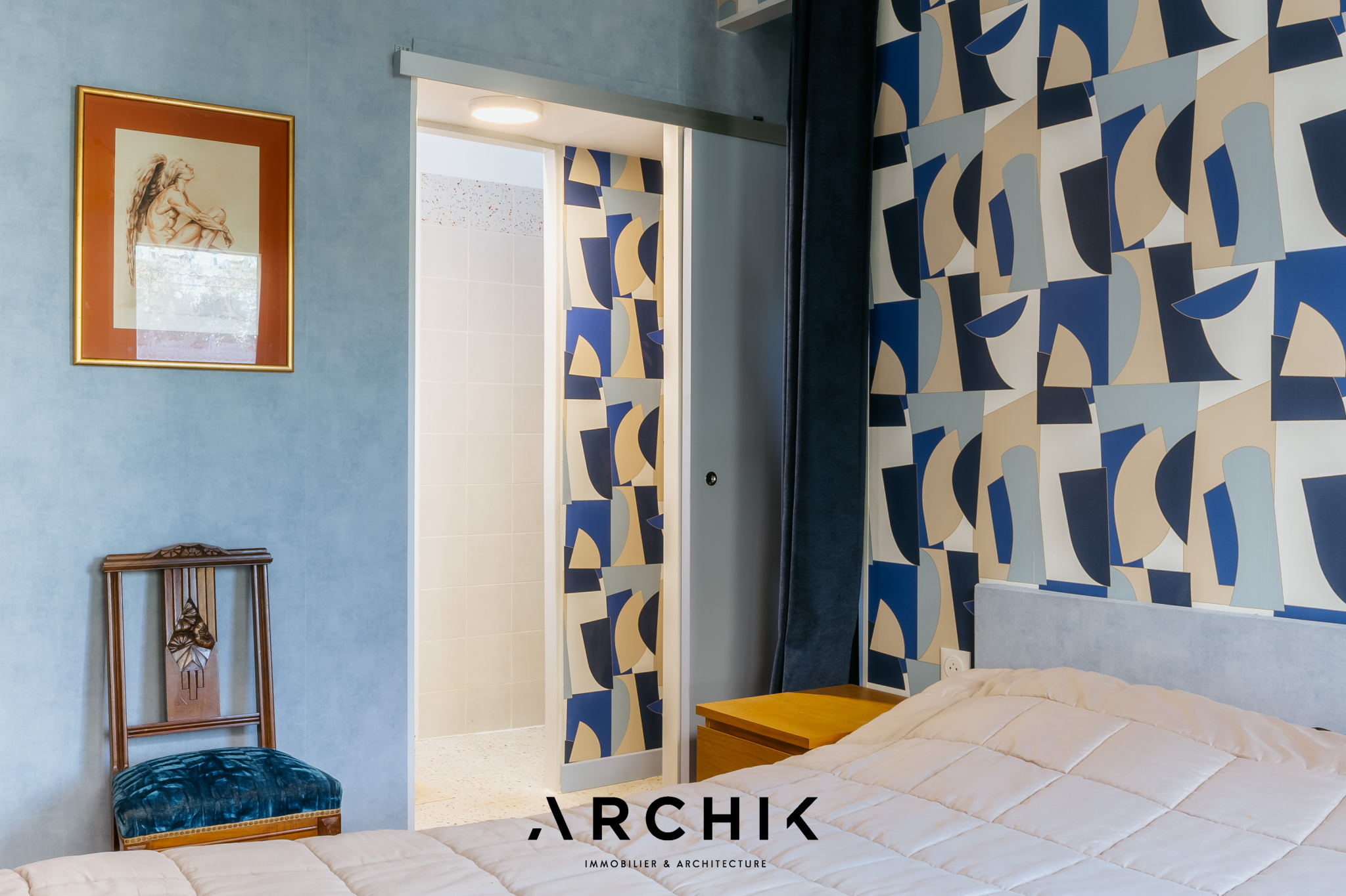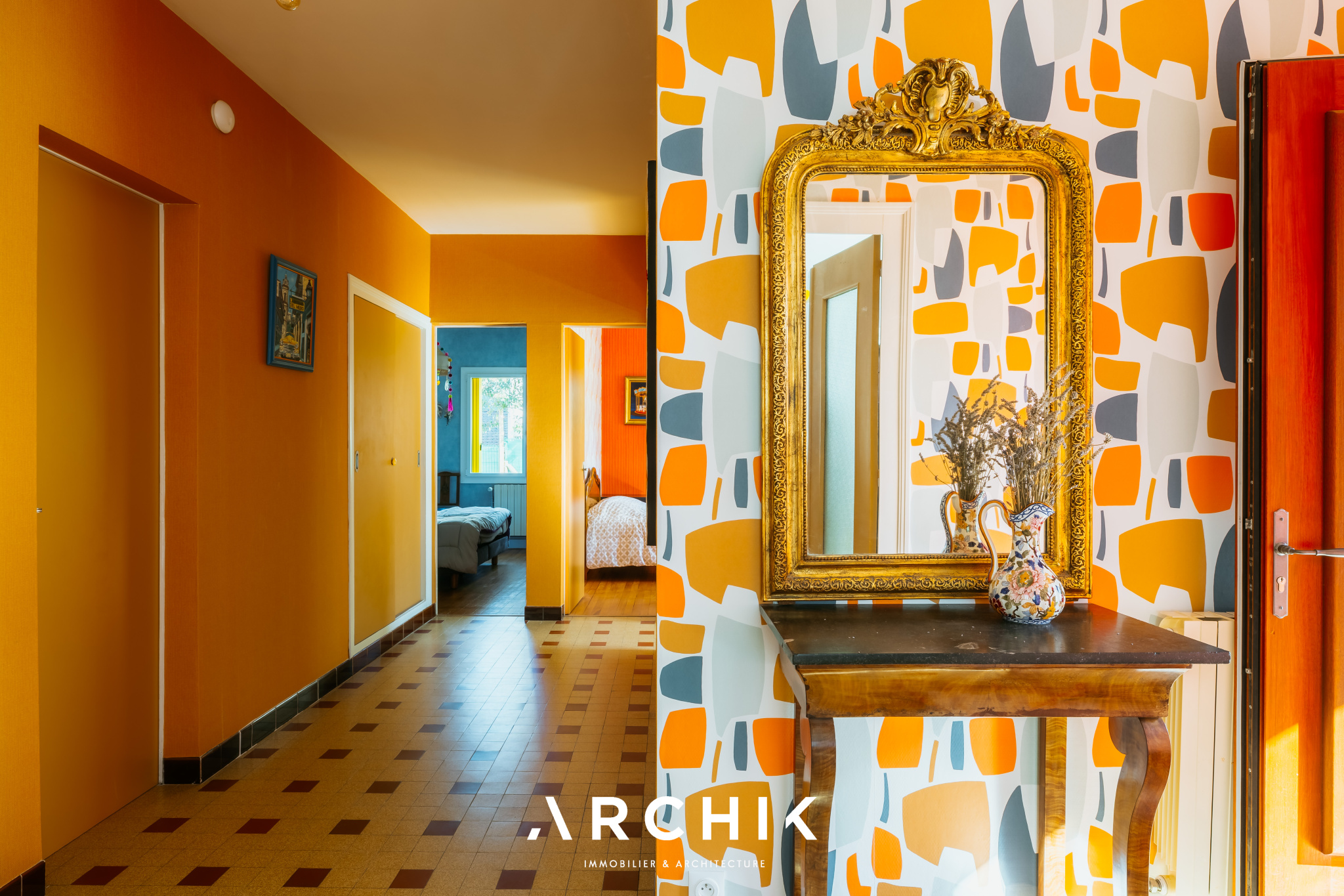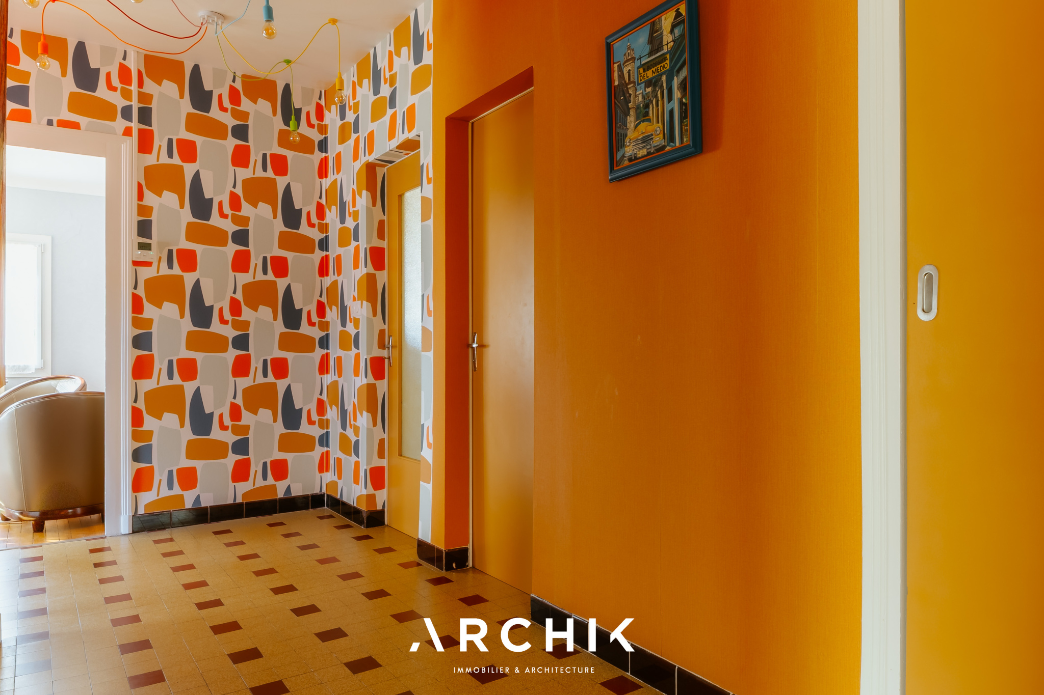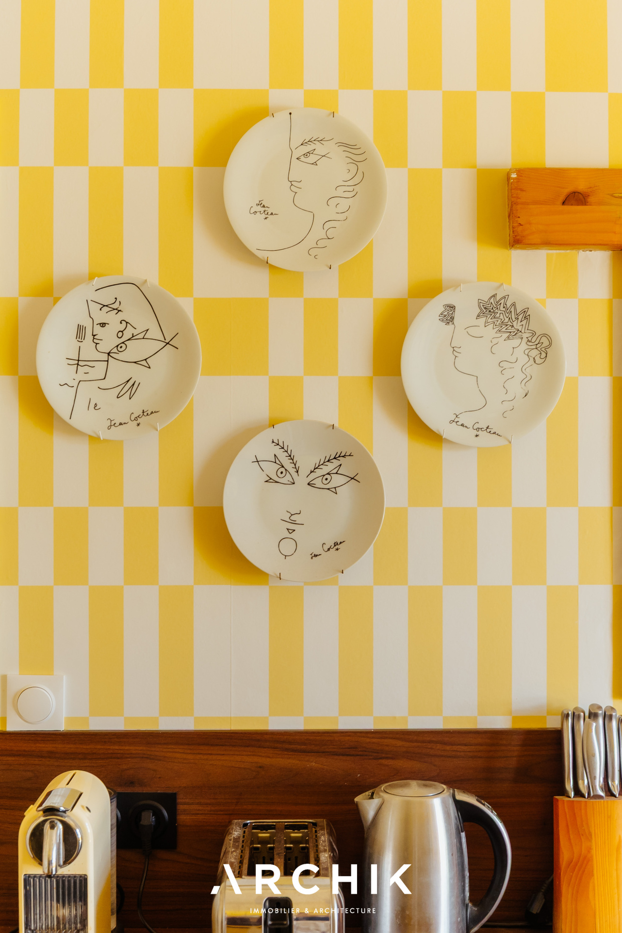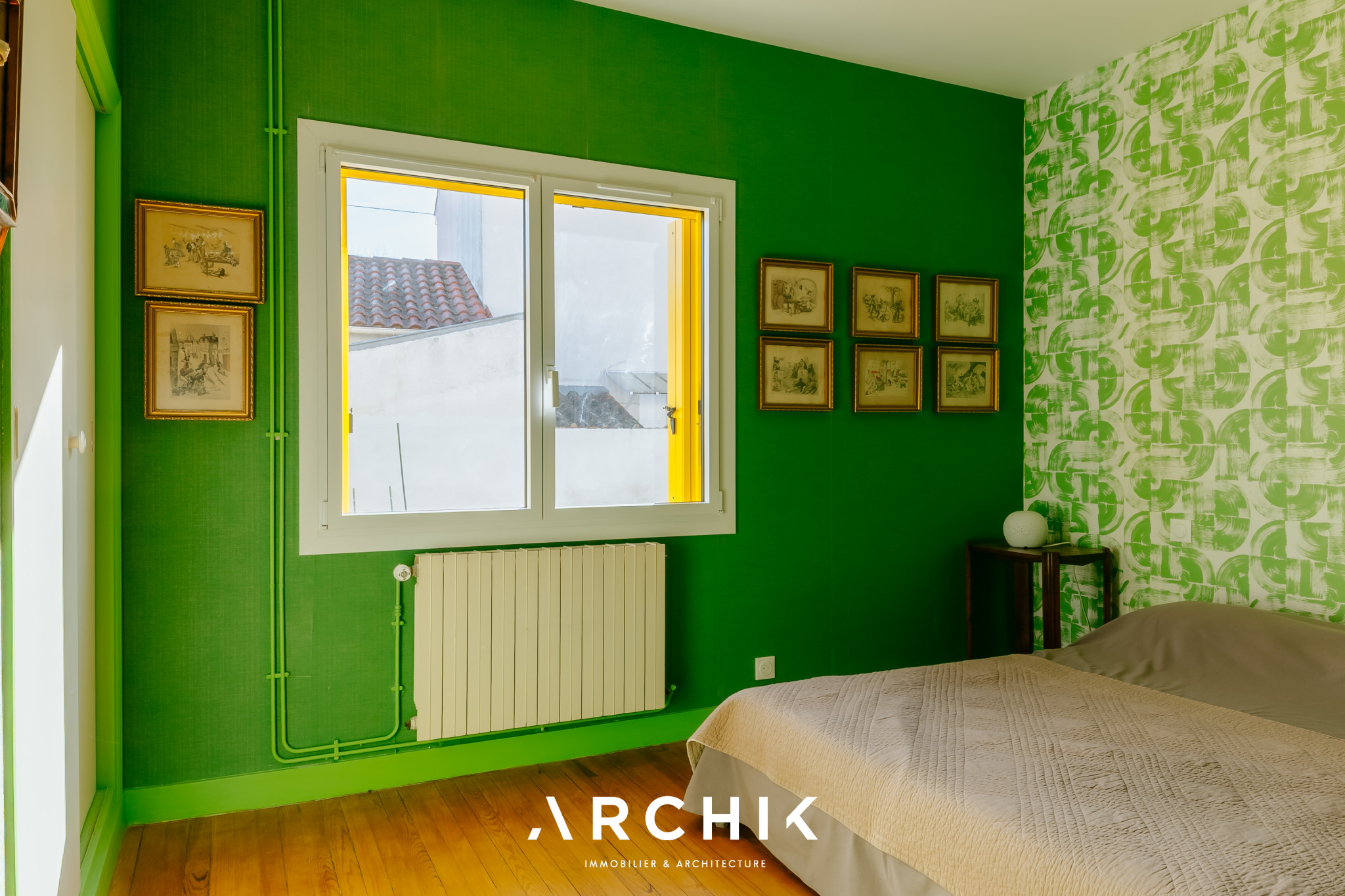 Composé d'une maison principale et de trois dépendances, cet ensemble entièrement réhabilité fait preuve d'audace chromatique en reprenant les teintes franches de la palette de couleurs utilisées lors de la construction en 1967 : Jaune Zinc, Blanc Pur et quelques touches Rouge de Sécurité. Une importante succession de fenêtres anime les façades. Chaque ouverture s'inscrit dans un encadrement venant en surépaisseur sur la paroi, créant du relief sur le lisse et une ombre portée. La verrière en métal venant fermer la loggia affirme la personnalité de la maison. Passé le contraste de couleur du porche et sa porte ré éditée, le graphisme du carrelage d'origine en grès cérame jaune porphyre rythme l'entrée, le dégagement et la cuisine qui s'ouvre largement sur la loggia. La tapisserie « Diner » à damier jaune et blanc de la collection Milano Sixties incite à la créativité culinaire. Elle met en valeur une jolie collection d'assiettes dessinée par Jean Cocteau. Communiquant avec la cuisine, le séjour n'est que chaleur et soleil : parquet blond et cheminée d'époque en briquettes, multiples ouvertures laissant amplement traverser la lumière et enfin un panoramique « Boca Chica » de Montecolino aux accents solaires. Les trois chambres de la partie nuit ont chacune une identité marquée par leur papier peint aux motifs gais et géométriques. L'une d'entre elle est organisée en suite avec dressing et salle d'eau privatifs. Une salle de bain au sol effet terrazzo complète cette partie. Trois studios autonomes peuvent augmenter la capacité d'accueil de la maison ou offrir de multiples possibilités, telles qu'atelier d'artiste, salle de loisirs ou activité professionnelle. L'ensemble est généreusement ouvert sur le jardin ponctué de plusieurs terrasses permettant de suivre la course du soleil. Une remarquable clôture recréée à l'identique protège les accès. Un garage attenant et un espace de stationnement invitent à rejoindre les commerces à proximité immédiate et le marché central à pied.