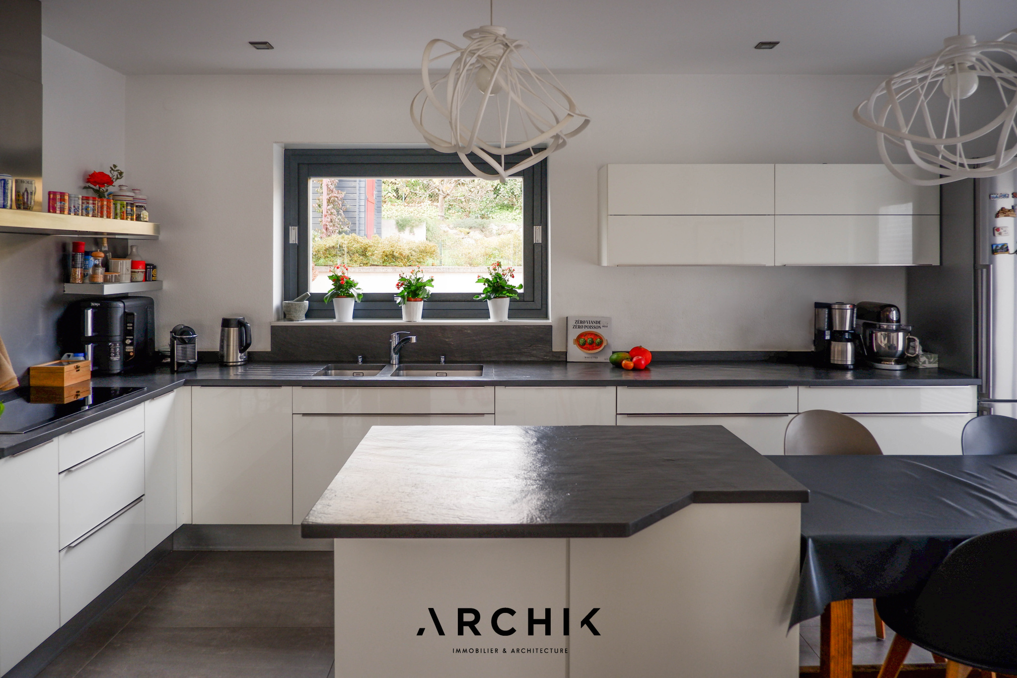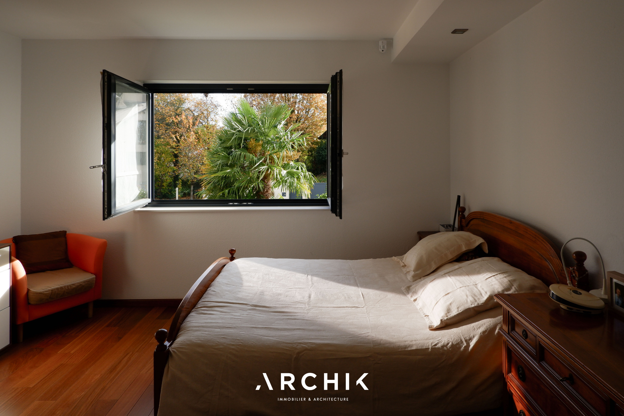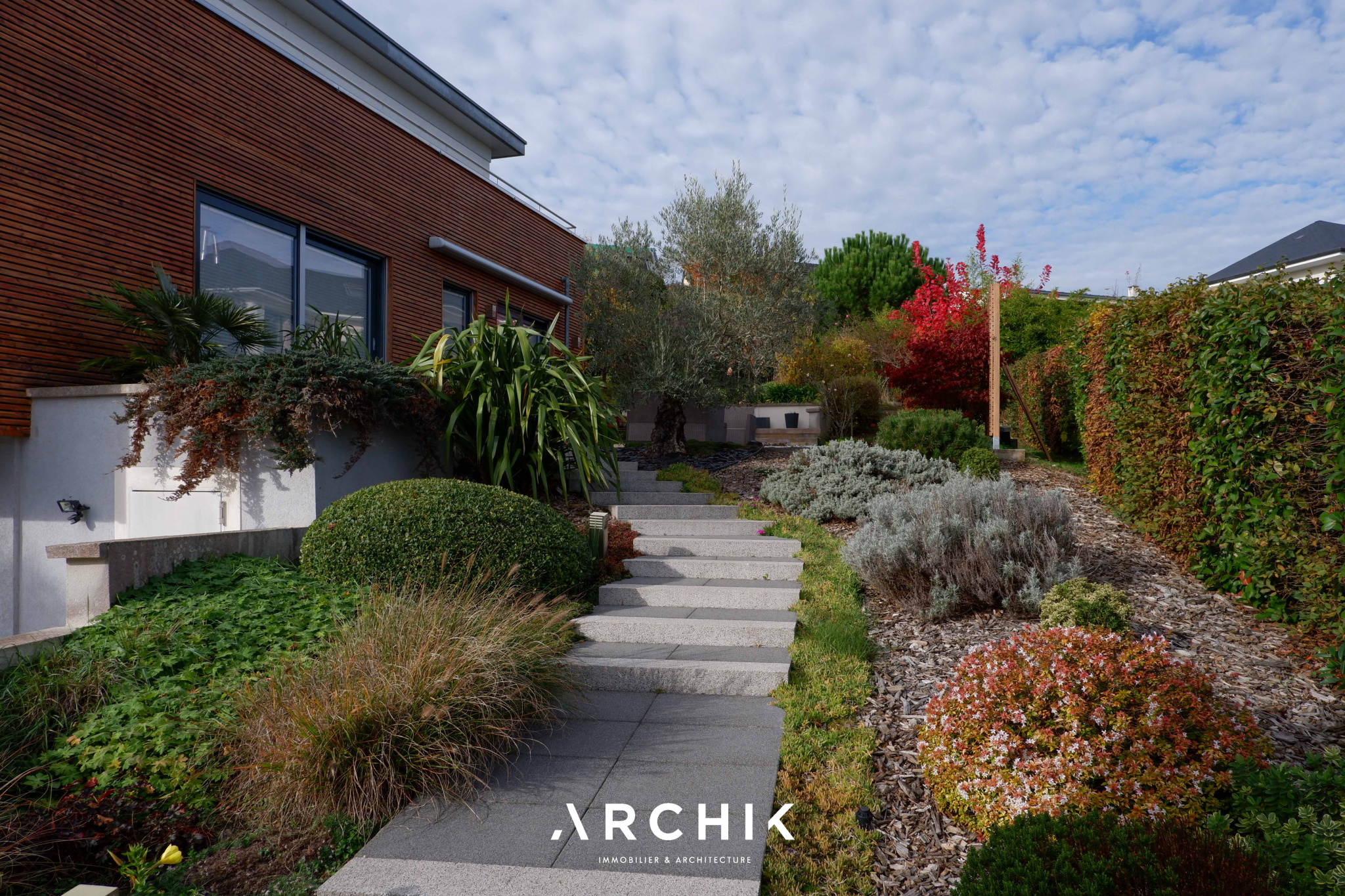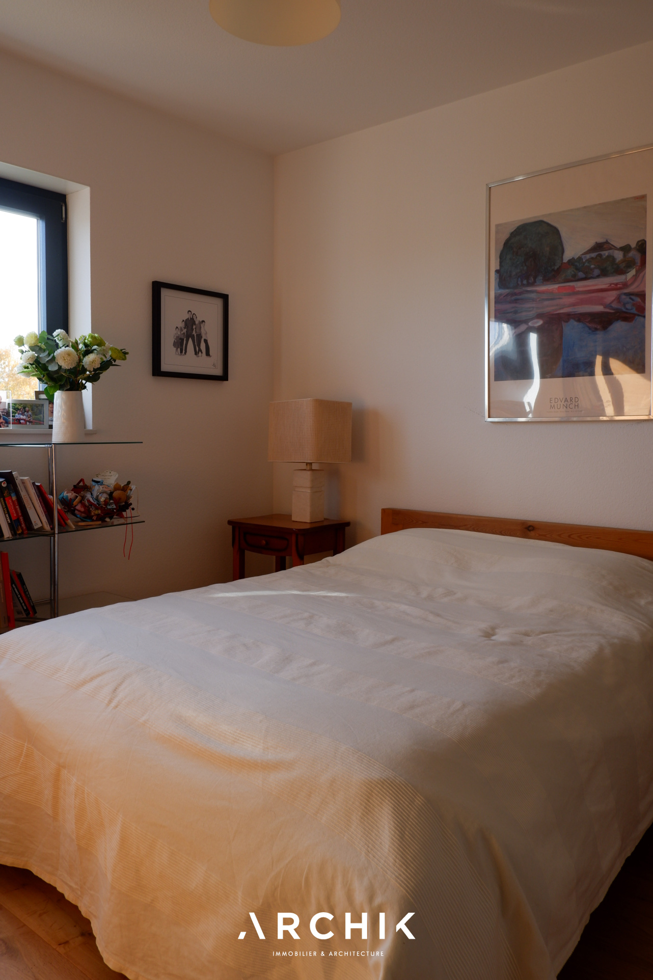 + DE DETAILS RESSOURCE PARIS ALENTOURS | Les pierres beurres 1 330 000 € Type de bien Maison Surface 188 m2 Chambre(s) 4 Extérieur Terrasse, balcon, jardin Courant Contemporain Architecture À vivre Réference AP427 ON AIMESa lumièreSa construction écologique Son quartier résidentiel et bioclimatiqueNOUS CONTACTER Architecture bioclimatique imaginée par l'architecte Olivier Leclercq du cabinet Air, et réalisée en collaboration avec le constructeur allemand Maison Schwoerer, cette maison contemporaine de 188 m2 achevée en 2012 incarne l'alliance entre architecture écologique et esthétisme. Sur les hauteurs de Verrières-le-Buisson, à moins de 10 km au Sud-Ouest de Paris, elle s'inscrit dans un quartier résidentiel récent et bioclimatique à proximité des bois et du centre-ville.Edifiée sur un terrain paysagé de 692 m2, la construction s'inscrit dans la pente, se glissant dans le relief et offrant une lecture fluide de ses volumes. Toiture terrasse, porte-à-faux, variation de hauteur sous plafond : chaque ligne révèle un travail de composition précis où le plein et le vide dialoguent avec justesse. Sur un socle minéral, la façade se déploie dans une écriture sobre. Les lamelles de bois qui habillent l'avancée du bâtiment animent la géométrie cubique d'une touche chaleureuse et naturelle. La construction à ossature bois affiche une enveloppe performante et durable, conçue pour conjuguer confort et faible empreinte énergétique.A l'intérieur, la lumière naturelle habite les espaces grâce à sa triple exposition Sud, Ouest et Nord. Le rez-de-jardin s'ouvre sur un séjour de 41 m2 habillé d'un sol carrelé gris ardoise Villeroy et Boch, réchauffé d'un poêle à bois. Il se prolonge par une cuisine épurée au plan de travail et îlot central en granit aspect ardoise et luminaires Ligne Roset. L'ensemble forme un lieu de vie fluide, complété par une chambre avec dressing et salle de bain permettant une vie de plain-pied. Une pièce indépendante de 24 m2 avec salle de douche offre des possibilités d'usage multiples : espace de travail, chambre d'amis ou atelier.L'étage abrite un espace nuit composé d'une suite avec dressing et salle de douche ainsi que deux chambres profitant d'une salle de bain. L'espace se prolonge par un balcon en L de 19 m2 qui souligne la légèreté du volume supérieur et offre de belles vues sur l'extérieur.Une buanderie, un local technique et un garage double équipé d'espaces de rangements complètent ce niveau.Le jardin, soigneusement dessiné accompagne l'architecture dans un jeu de murets, d'escaliers et de terrasses. Les espaces de repos et de convivialité s'y succèdent, comme l'esprit global du projet : une maison pensée comme un paysage habité, entre nature, lumière et volumes. Une architecture technique et écologique, sculptée dans la pente et parfaitement contemporaine. VOTRE CONTACT Éline PASSINI 06 71 67 15 60 eline.passini@archik.fr DIAGNOSTICTRANSPORTSRER B MASSY - VERRIERES PARTAGERDétail du diagnostic Diagnostic de performance énergétique 54 KWh/m².an 1* kg CO2/m².an Logement économeABCDEFGLogement énergivore DPE vierge Consommations non exploitables Non soumis au diagnostic * Dont émissions de gaz à effet de serreFaible émission de GESABCDEFGForte émission de GES 1 KgéqCO2 / m².an GES vierge Consommations non exploitables Montant estimé des dépenses annuelles d'énergie pour un usage standard : entre 770 et 1100 € TTC/an . Date de référence des prix de l'énergie pour établie cette estimation : 01/01/2025 Les informations sur les risques auxquels ce bien est exposé sont disponibles sur le site Géorisques : www.georisques.gouv.fr Vous souhaitez avoir plus d'informations ? Remplissez le formulaire ou contactez directement la personne en charge de ce bien. NOM* PRÉNOM* EMAIL* TÉLÉPHONE* MESSAGE Je souhaite recevoir la Newsletter ARCHIK VOTRE CONTACT Éline PASSINI 06 71 67 15 60 eline.passini@archik.fr Découvrez aussi ...VENDRENos biens en venteNOS BIENS VENDUS