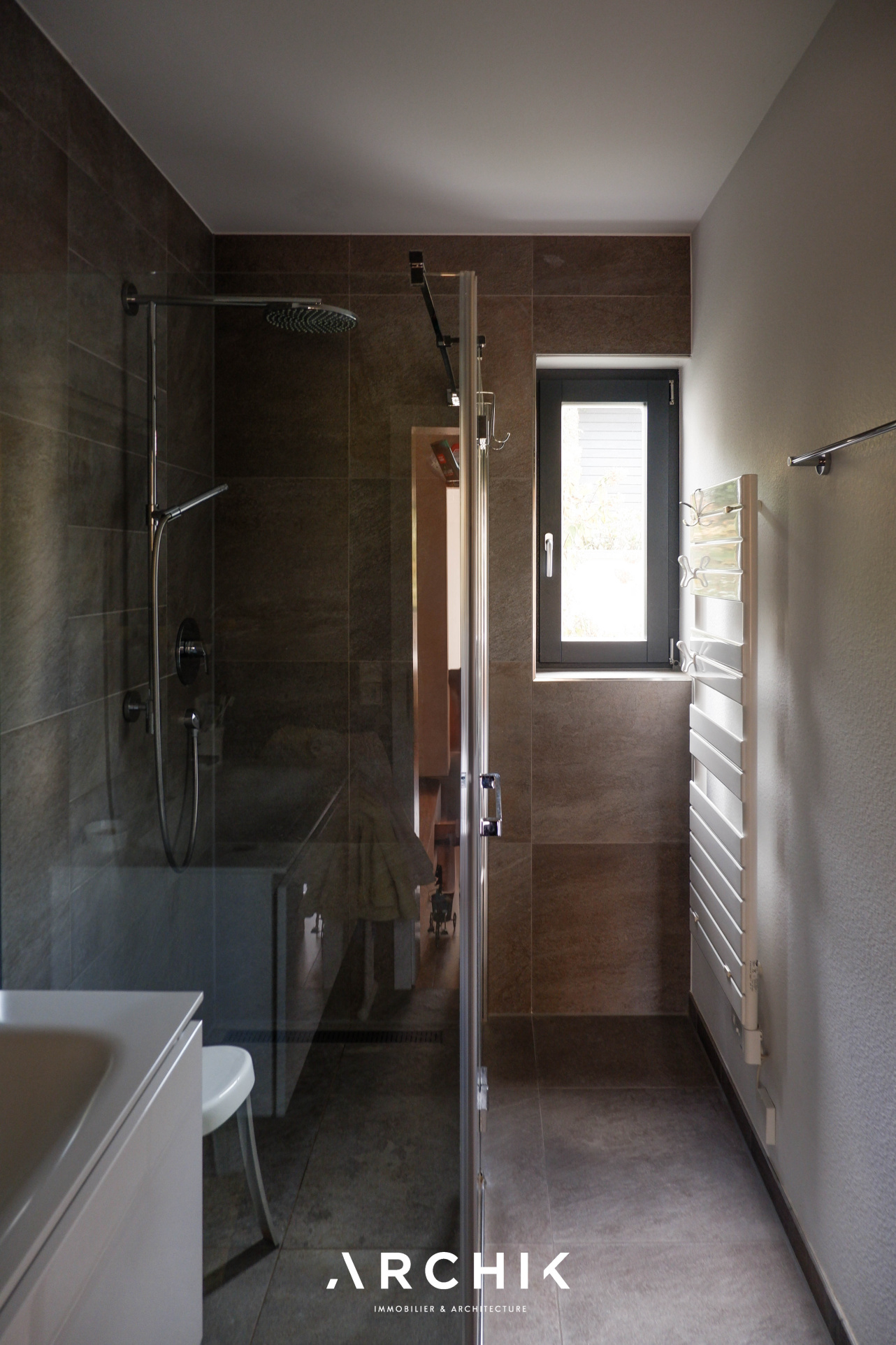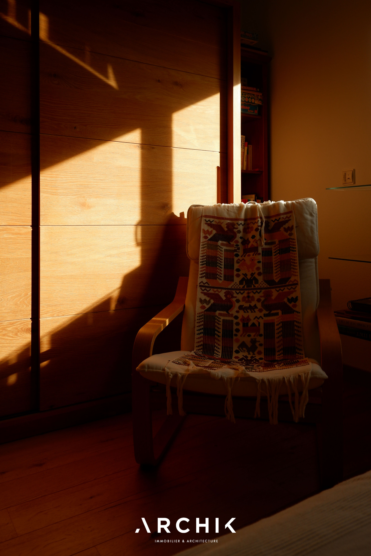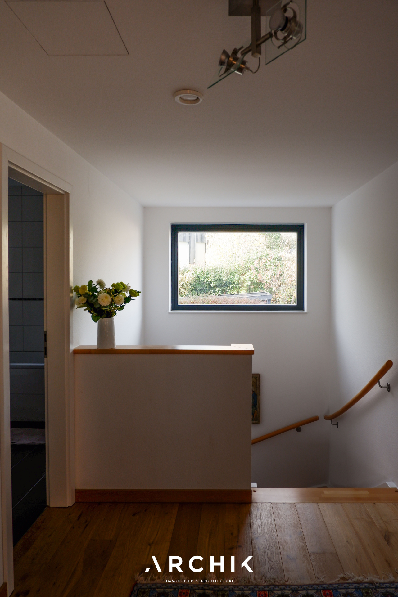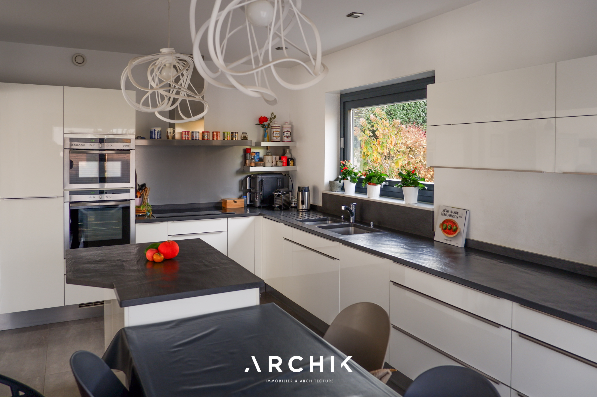 + DE DETAILS RESSOURCE PARIS ALENTOURS | Les pierres beurres 1 330 000 € Type de bien Maison Surface 188 m2 Chambre(s) 4 Extérieur Terrasse, balcon, jardin Courant Contemporain Architecture À vivre Réference AP427 ON AIMESa lumièreSa construction écologique Son quartier résidentiel et bioclimatiqueNOUS CONTACTER Architecture bioclimatique imaginée par l'architecte Olivier Leclercq du cabinet Air, et réalisée en collaboration avec le constructeur allemand Maison Schwoerer, cette maison contemporaine de 188 m2 achevée en 2012 incarne l'alliance entre architecture écologique et esthétisme. Sur les hauteurs de Verrières-le-Buisson, à moins de 10 km au Sud-Ouest de Paris, elle s'inscrit dans un quartier résidentiel récent et bioclimatique à proximité des bois et du centre-ville.Edifiée sur un terrain paysagé de 692 m2, la construction s'inscrit dans la pente, se glissant dans le relief et offrant une lecture fluide de ses volumes. Toiture terrasse, porte-à-faux, variation de hauteur sous plafond : chaque ligne révèle un travail de composition précis où le plein et le vide dialoguent avec justesse. Sur un socle minéral, la façade se déploie dans une écriture sobre. Les lamelles de bois qui habillent l'avancée du bâtiment animent la géométrie cubique d'une touche chaleureuse et naturelle. La construction à ossature bois affiche une enveloppe performante et durable, conçue pour conjuguer confort et faible empreinte énergétique.A l'intérieur, la lumière naturelle habite les espaces grâce à sa triple exposition Sud, Ouest et Nord. Le rez-de-jardin s'ouvre sur un séjour de 41 m2 habillé d'un sol carrelé gris ardoise Villeroy et Boch, réchauffé d'un poêle à bois. Il se prolonge par une cuisine épurée au plan de travail et îlot central en granit aspect ardoise et luminaires Ligne Roset. L'ensemble forme un lieu de vie fluide, complété par une chambre avec dressing et salle de bain permettant une vie de plain-pied. Une pièce indépendante de 24 m2 avec salle de douche offre des possibilités d'usage multiples : espace de travail, chambre d'amis ou atelier.L'étage abrite un espace nuit composé d'une suite avec dressing et salle de douche ainsi que deux chambres profitant d'une salle de bain. L'espace se prolonge par un balcon en L de 19 m2 qui souligne la légèreté du volume supérieur et offre de belles vues sur l'extérieur.Une buanderie, un local technique et un garage double équipé d'espaces de rangements complètent ce niveau.Le jardin, soigneusement dessiné accompagne l'architecture dans un jeu de murets, d'escaliers et de terrasses. Les espaces de repos et de convivialité s'y succèdent, comme l'esprit global du projet : une maison pensée comme un paysage habité, entre nature, lumière et volumes. Une architecture technique et écologique, sculptée dans la pente et parfaitement contemporaine. VOTRE CONTACT Éline PASSINI 06 71 67 15 60 eline.passini@archik.fr DIAGNOSTICTRANSPORTSRER B MASSY - VERRIERES PARTAGERDétail du diagnostic Diagnostic de performance énergétique 54 KWh/m².an 1* kg CO2/m².an Logement économeABCDEFGLogement énergivore DPE vierge Consommations non exploitables Non soumis au diagnostic * Dont émissions de gaz à effet de serreFaible émission de GESABCDEFGForte émission de GES 1 KgéqCO2 / m².an GES vierge Consommations non exploitables Montant estimé des dépenses annuelles d'énergie pour un usage standard : entre 770 et 1100 € TTC/an . Date de référence des prix de l'énergie pour établie cette estimation : 01/01/2025 Les informations sur les risques auxquels ce bien est exposé sont disponibles sur le site Géorisques : www.georisques.gouv.fr Vous souhaitez avoir plus d'informations ? Remplissez le formulaire ou contactez directement la personne en charge de ce bien. NOM* PRÉNOM* EMAIL* TÉLÉPHONE* MESSAGE Je souhaite recevoir la Newsletter ARCHIK VOTRE CONTACT Éline PASSINI 06 71 67 15 60 eline.passini@archik.fr Découvrez aussi ...VENDRENos biens en venteNOS BIENS VENDUS