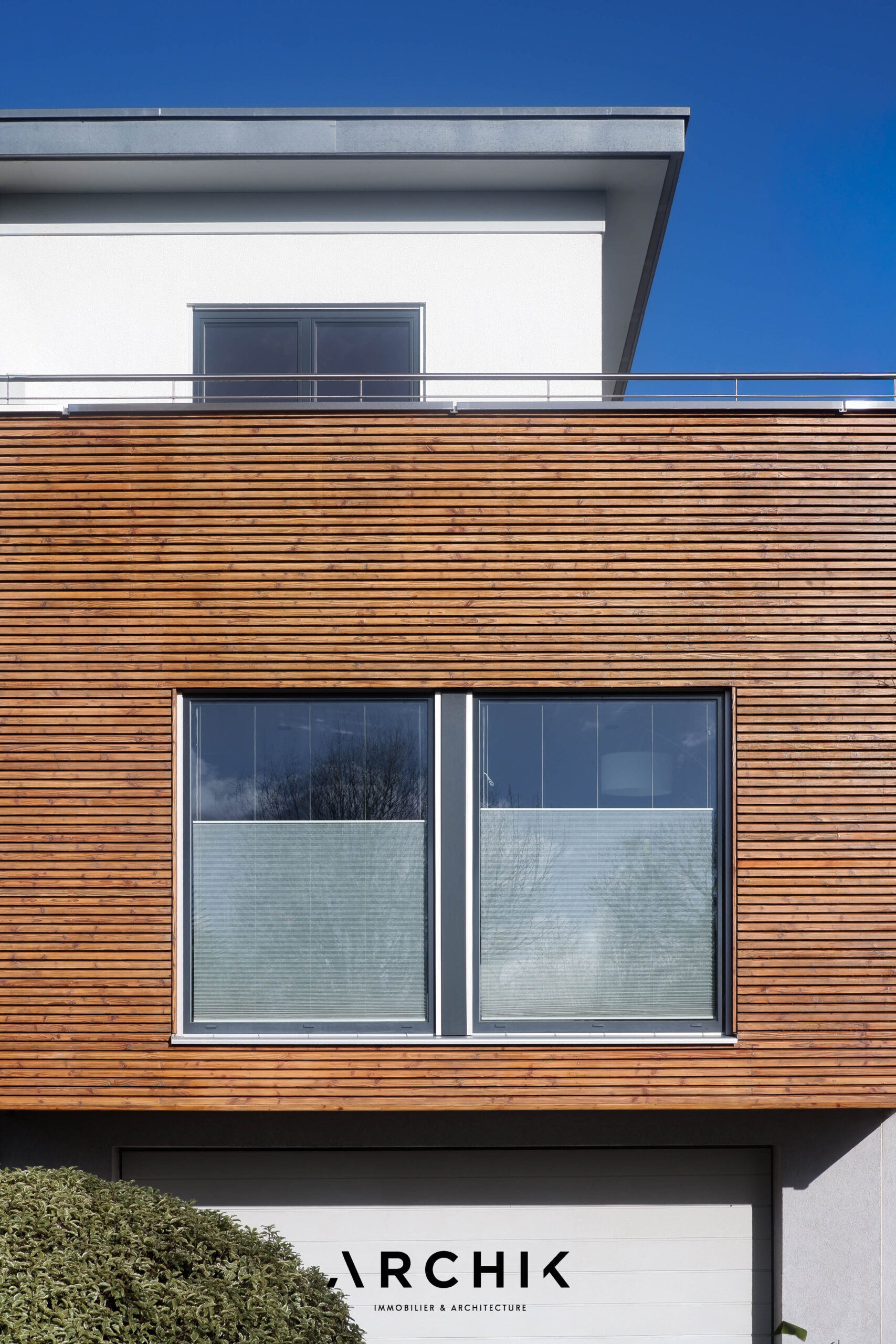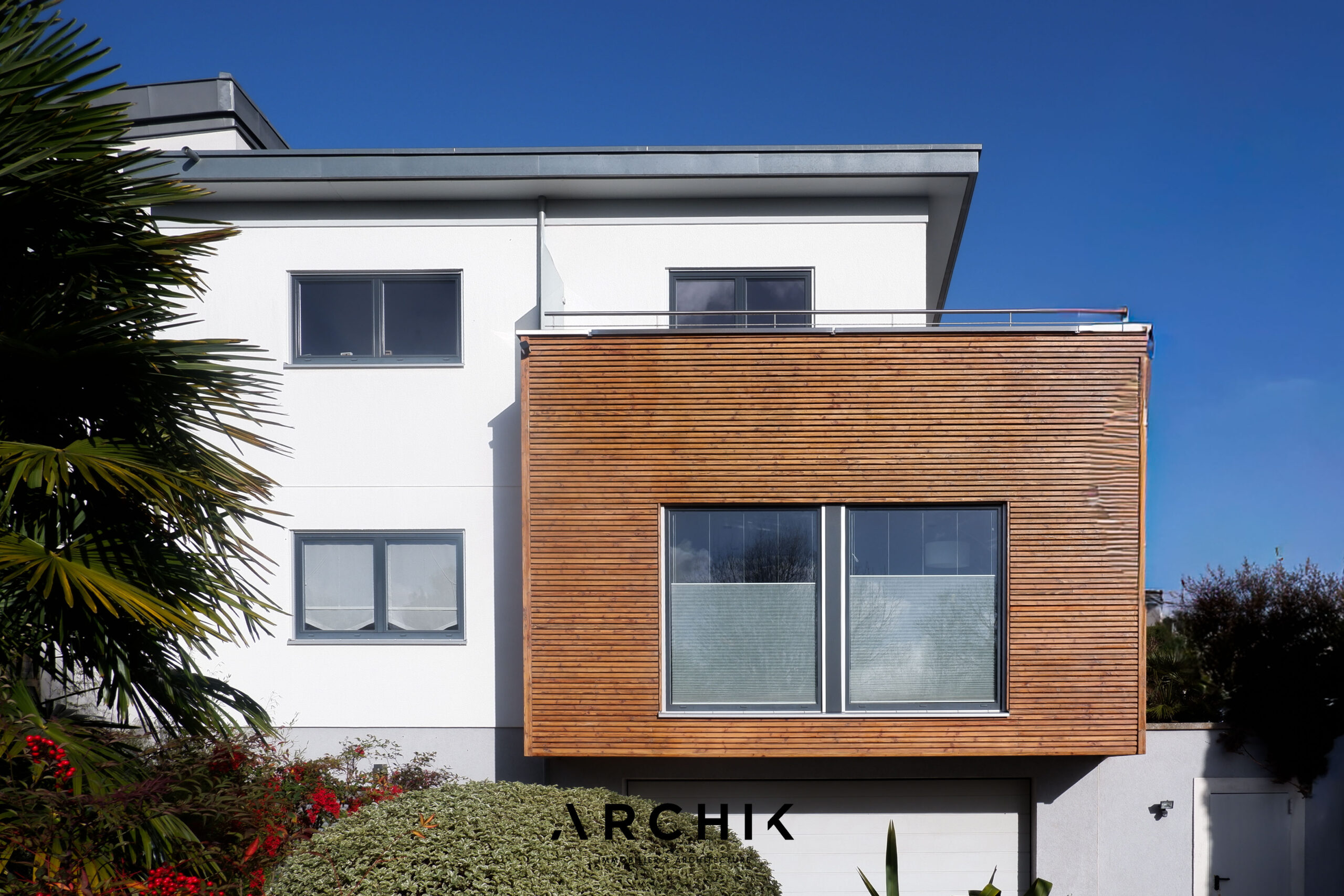 Architecture bioclimatique imaginée par l'architecte Olivier Leclercq du cabinet Air, et réalisée en collaboration avec le constructeur allemand Maison Schwoerer, cette maison contemporaine de 188 m2 achevée en 2012 incarne l'alliance entre architecture écologique et esthétisme. Sur les hauteurs de Verrières-le-Buisson, à moins de 10 km au Sud-Ouest de Paris, elle s'inscrit dans un quartier résidentiel récent et bioclimatique à proximité des bois et du centre-ville.