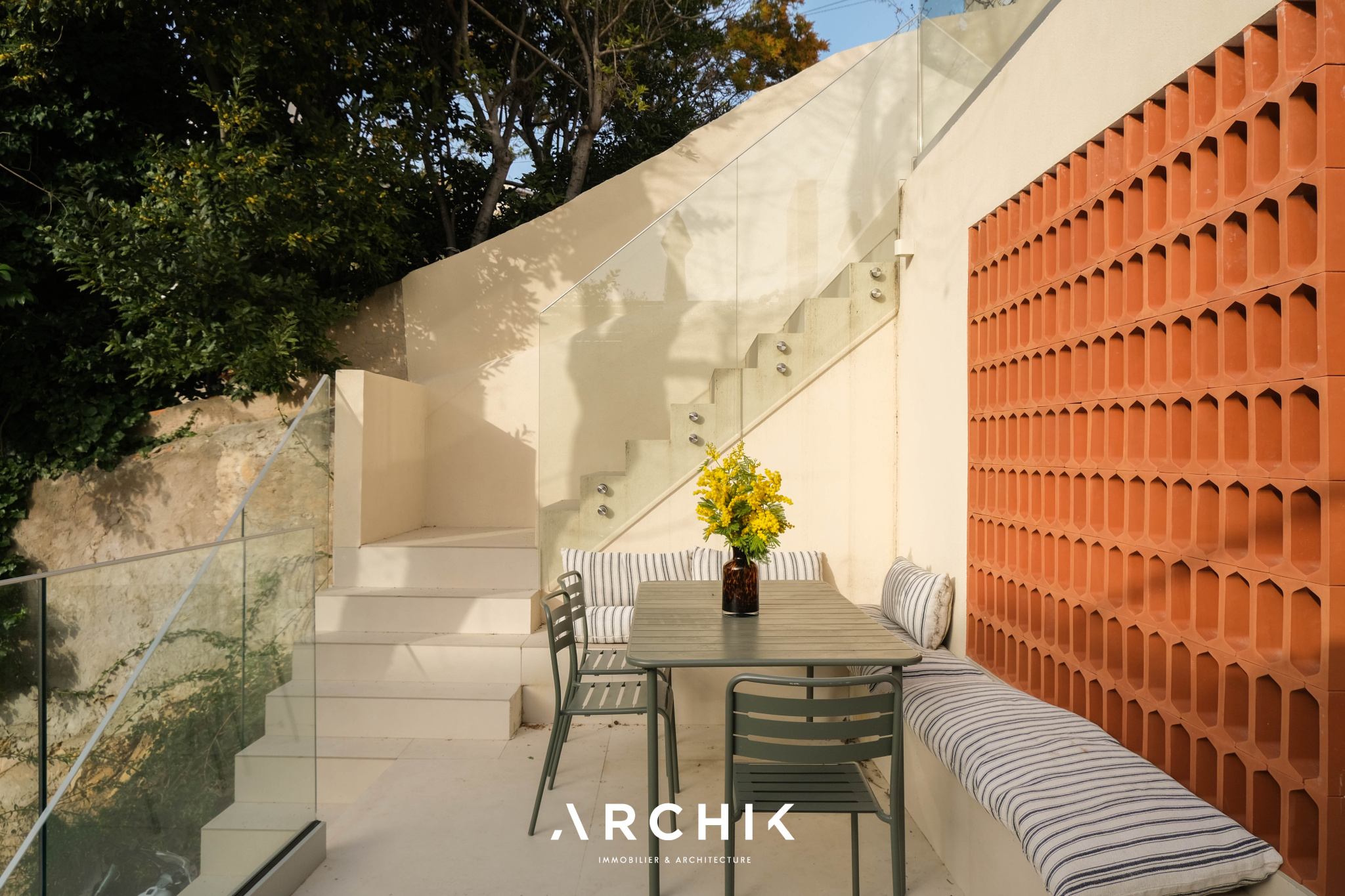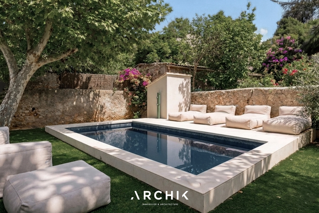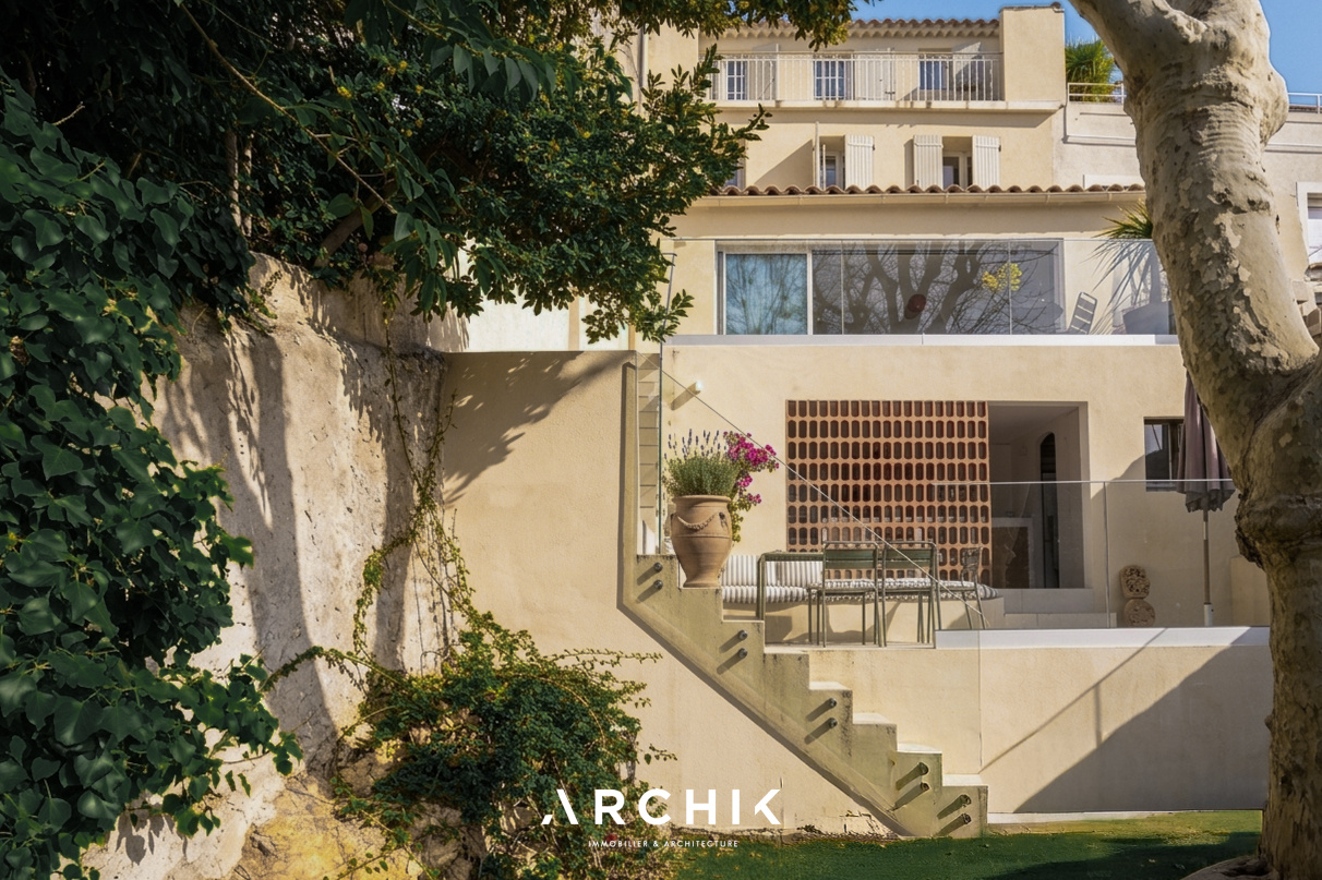 Architecture vernaculaire aux inspirations méditerranéennes, cette maison de 140 m2 entièrement repensée ouvre sur un jardin verdoyant de 300 m2 avec piscine et terrasse et s'insère au sein d'un tissu ancien en plein coeur du quartier de Bompard.