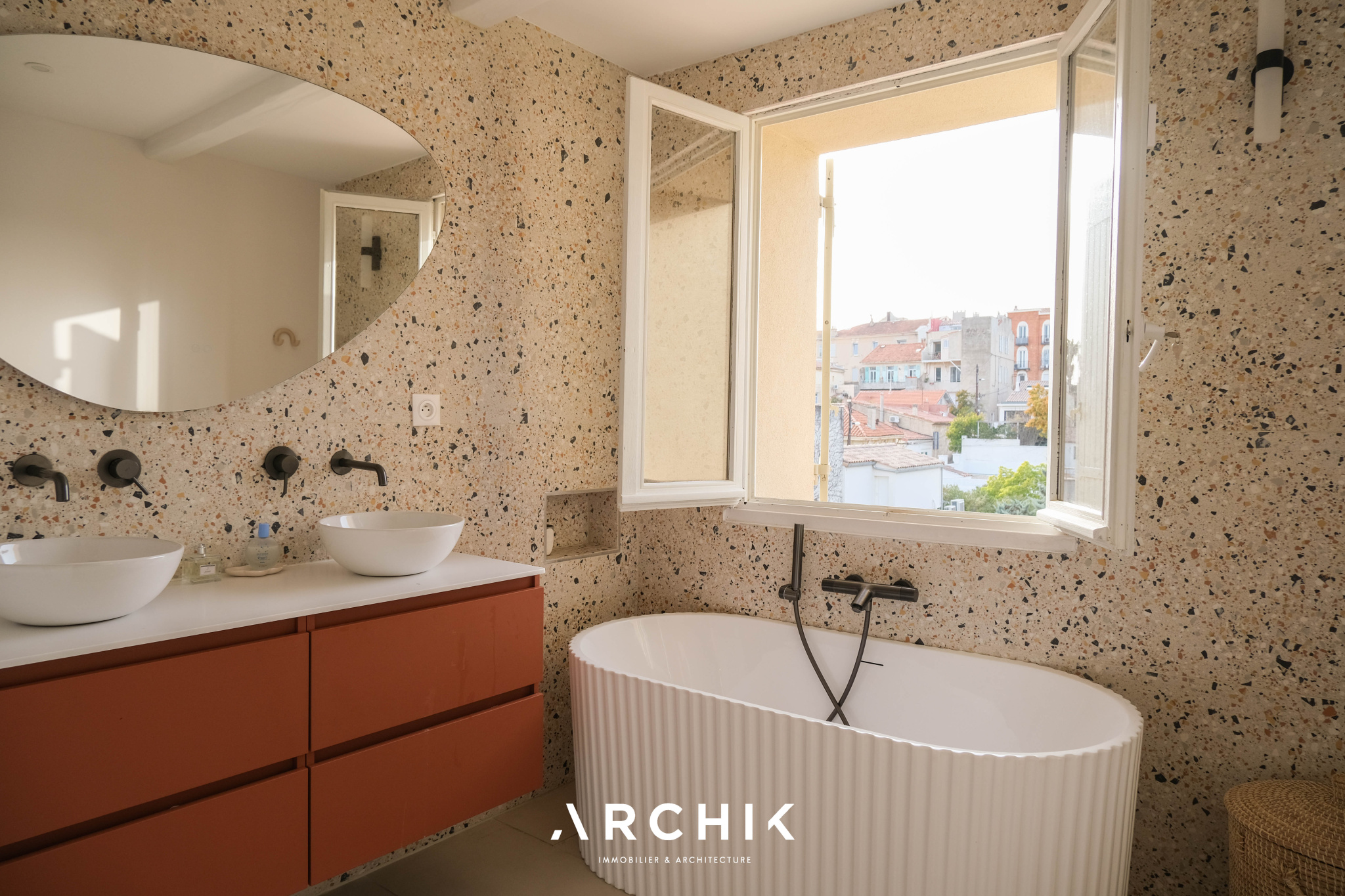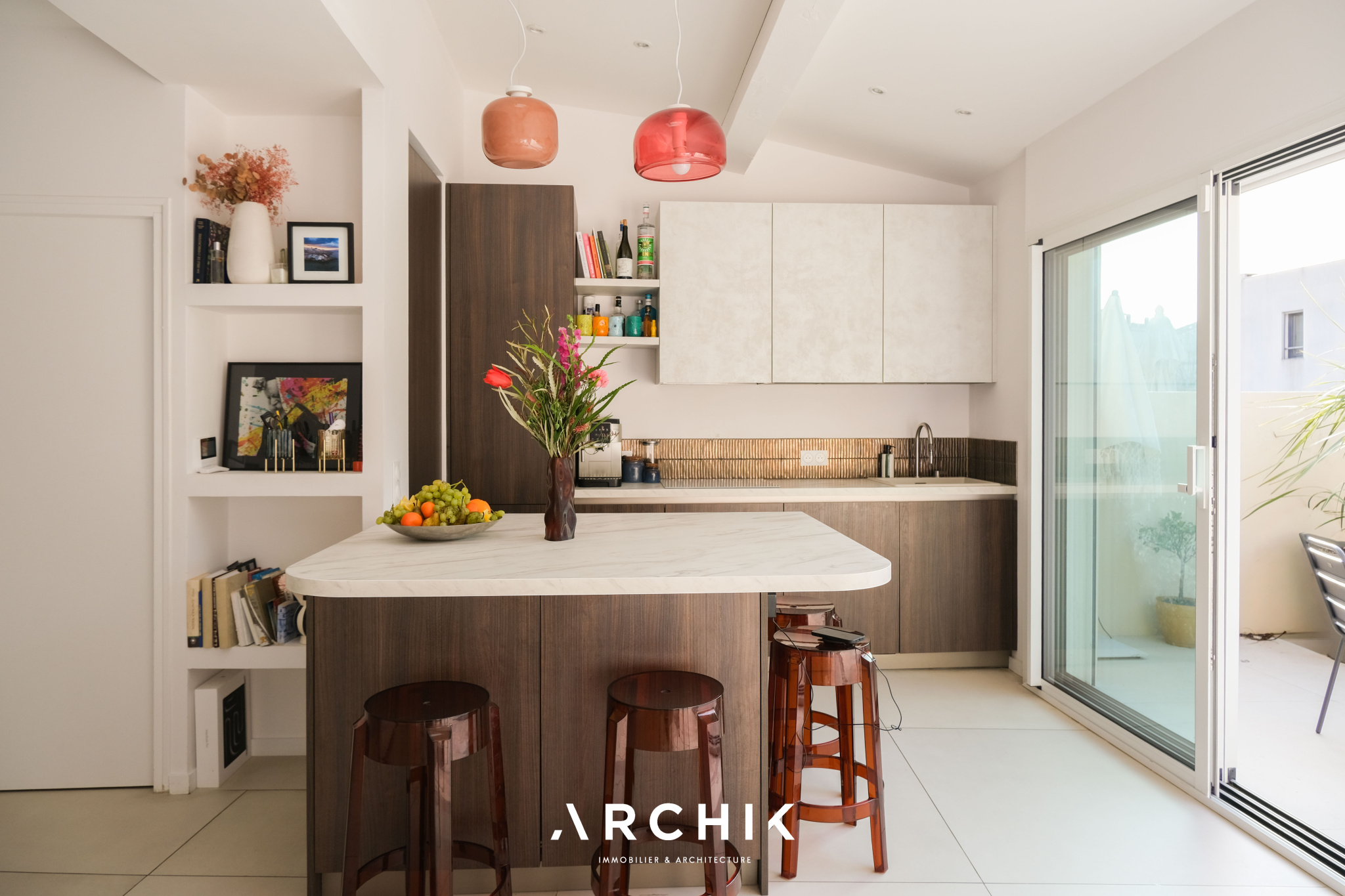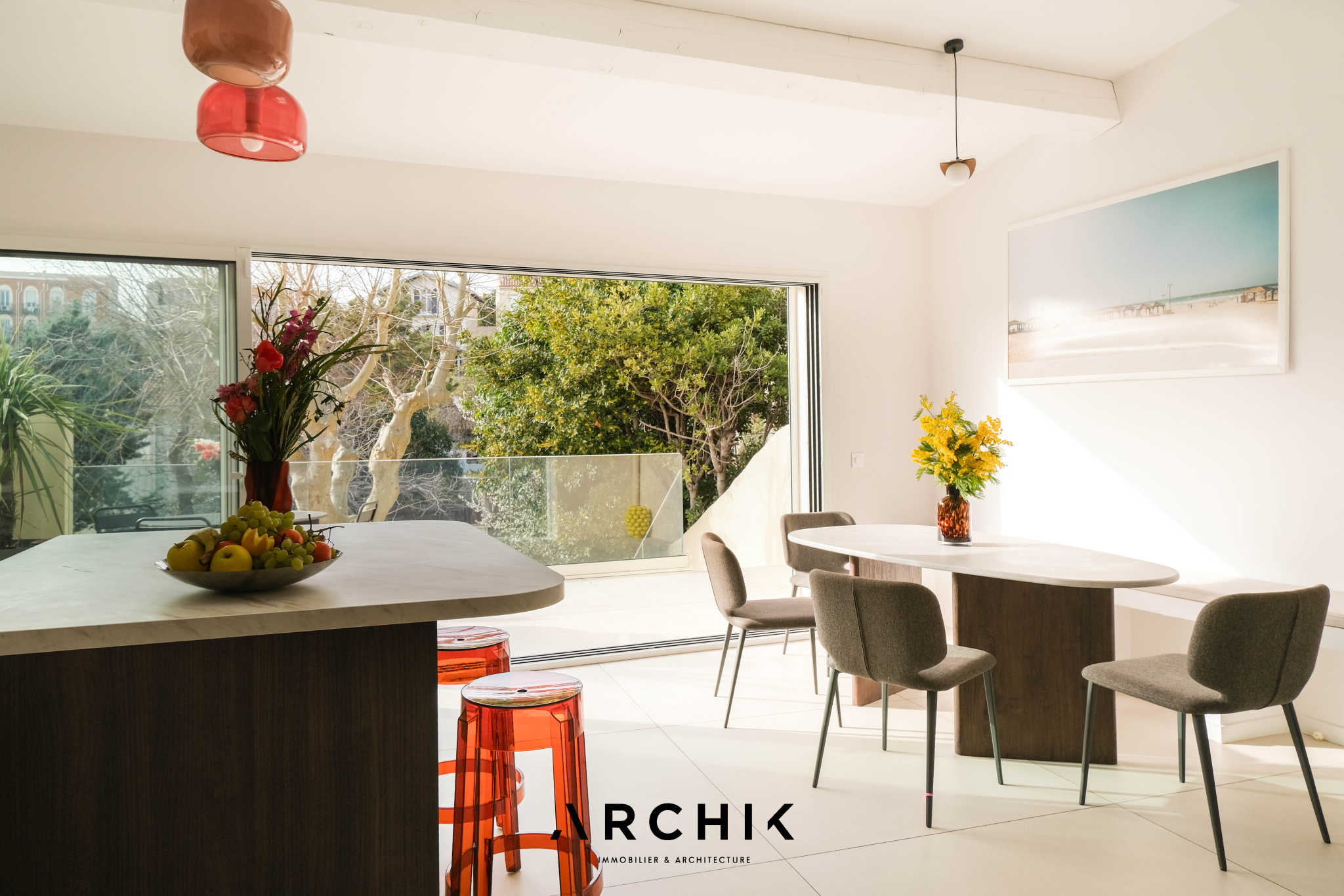 Architecture vernaculaire aux inspirations méditerranéennes, cette maison de 140 m2 entièrement repensée ouvre sur un jardin verdoyant de 300 m2 avec piscine et terrasse et s'insère au sein d'un tissu ancien en plein coeur du quartier de Bompard.
